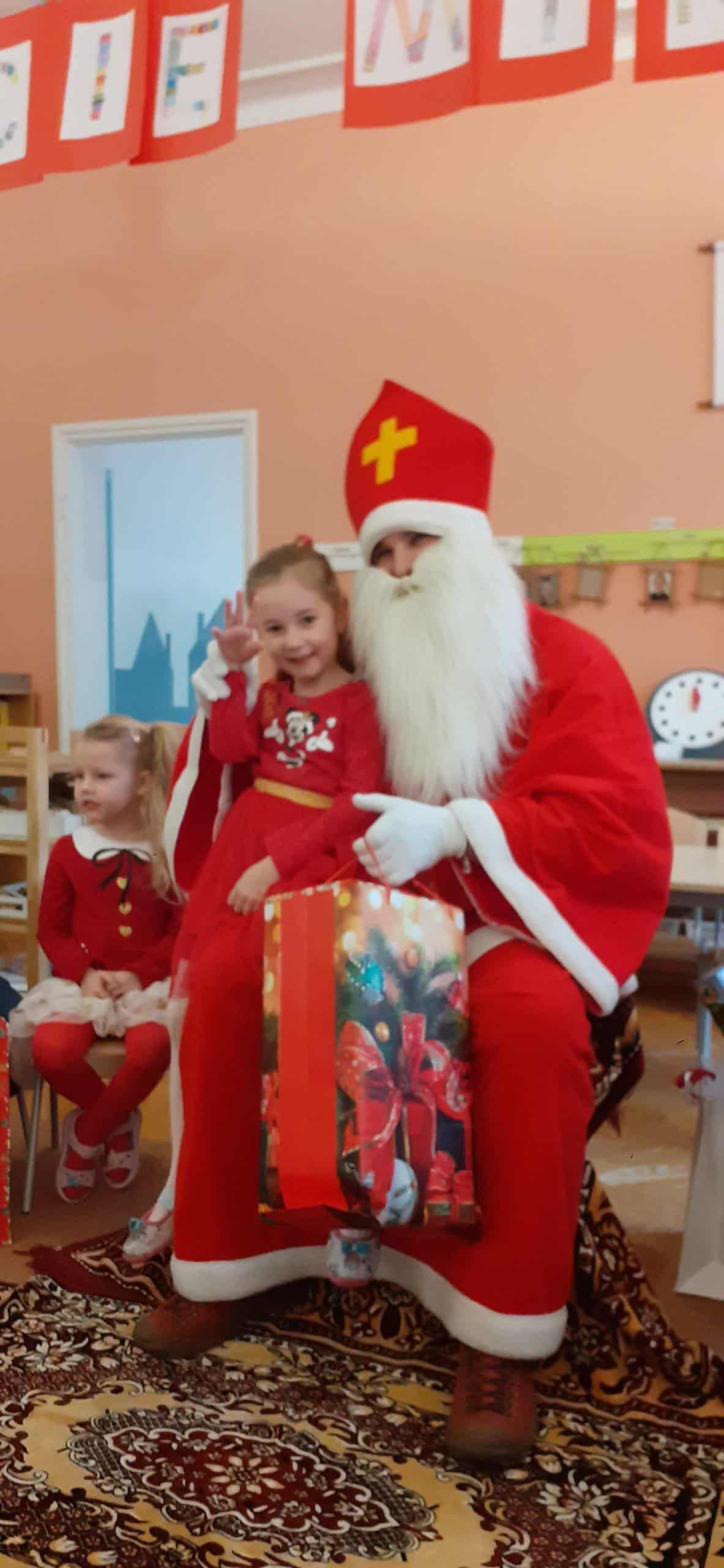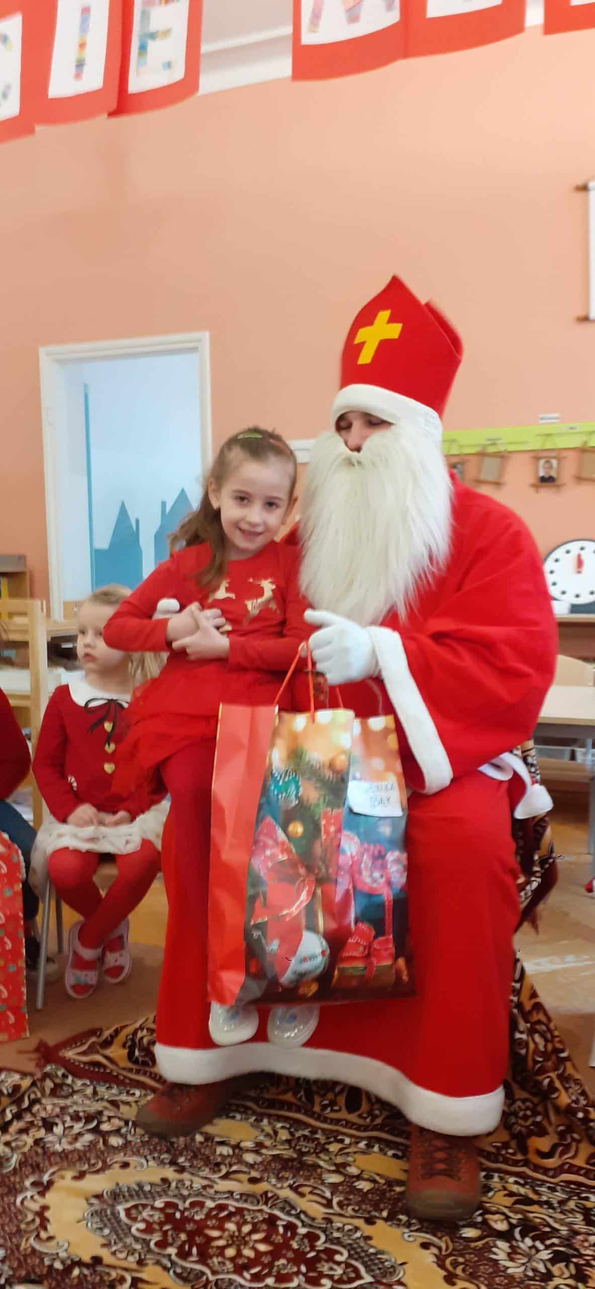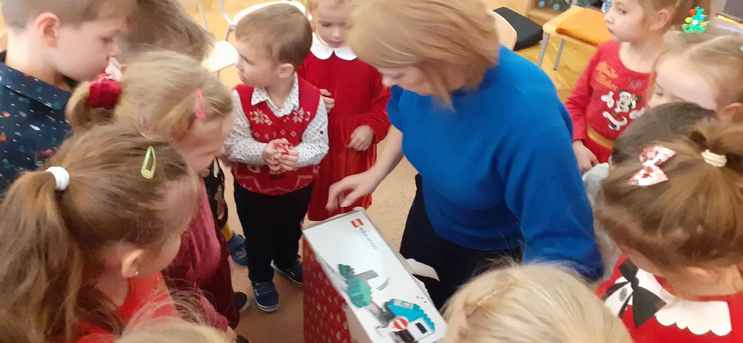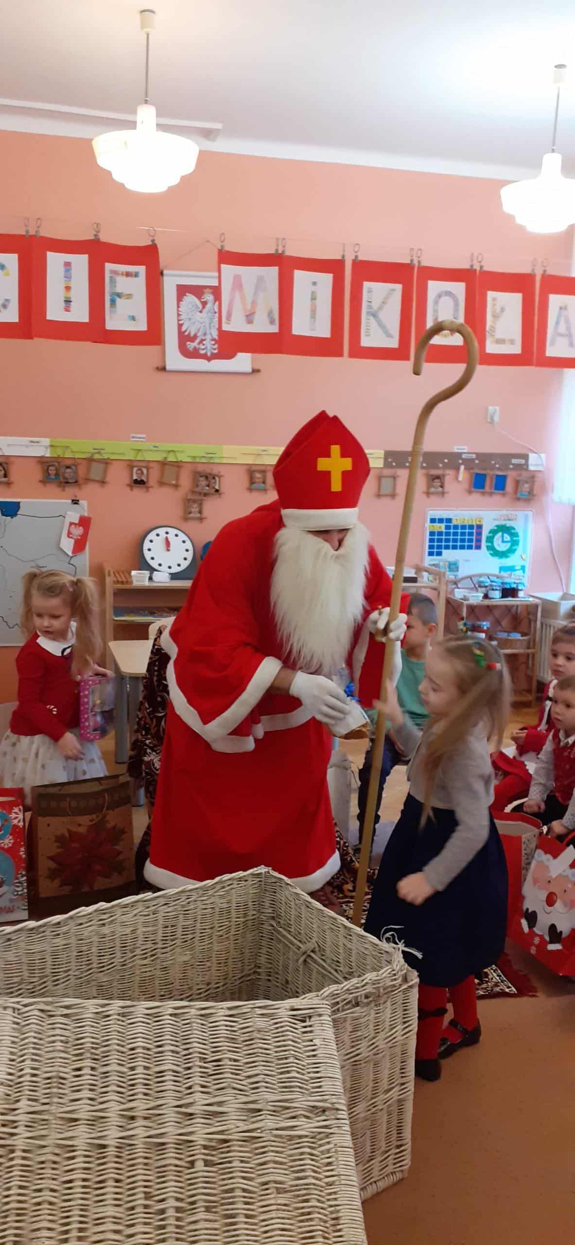 Od rana w całym przedszkolu ogromne poruszenie, wszyscy czekali na wizytę świętego Mikołaja. W odświętnych ubraniach dzieci oczywiście dominował kolor czerwony. Dzień wcześniej dzieci przygotowały piękny powitalny napis „Witamy Cię święty Mikołaju” oraz przygotowały wygodny tron. Zaraz po śniadaniu rozległ się dźwięk dzwoneczka- wszystkie dzieci zareagowały na niego bardzo emocjonalnie. Zaśpiewały powitalną piosenkę. Pojawienie się Mikołaja w sali zajęć zaparło dzieciom dech w piersiach, nastała chwilowa cisza, wszyscy przyglądali się jemu z uwagą. Wyglądał bardzo dostojnie i dość szybko nawiązał z dziećmi serdeczny kontakt. Każde dziecko otrzymało wymarzony prezent, wszyscy byli zachwyceni. Iga w imieniu całej grupy razem z babcią upiekła przepyszne pierniczki i obdarowała nimi nie tylko Mikołaja, ale także inne dzieci. To bardzo serdeczny gest. Na koniec wykonano pamiątkowe zdjęcia indywidualnie i grupowo. A po południu kolejna niespodzianka, wizyta pani Dyrektor i mikołajkowy prezent – ogromny zestaw klocków „Lego Coding Ekspress”do nauki kodowania. Dzieci również były zachwycone. To kolejny wspaniały dzień w naszym przedszkolu. Dziękujemy mamusi Łukasza- pani Milenie za pomoc w organizacji wizyty świętego Mikołaja. To było fantastyczne spotkanie.