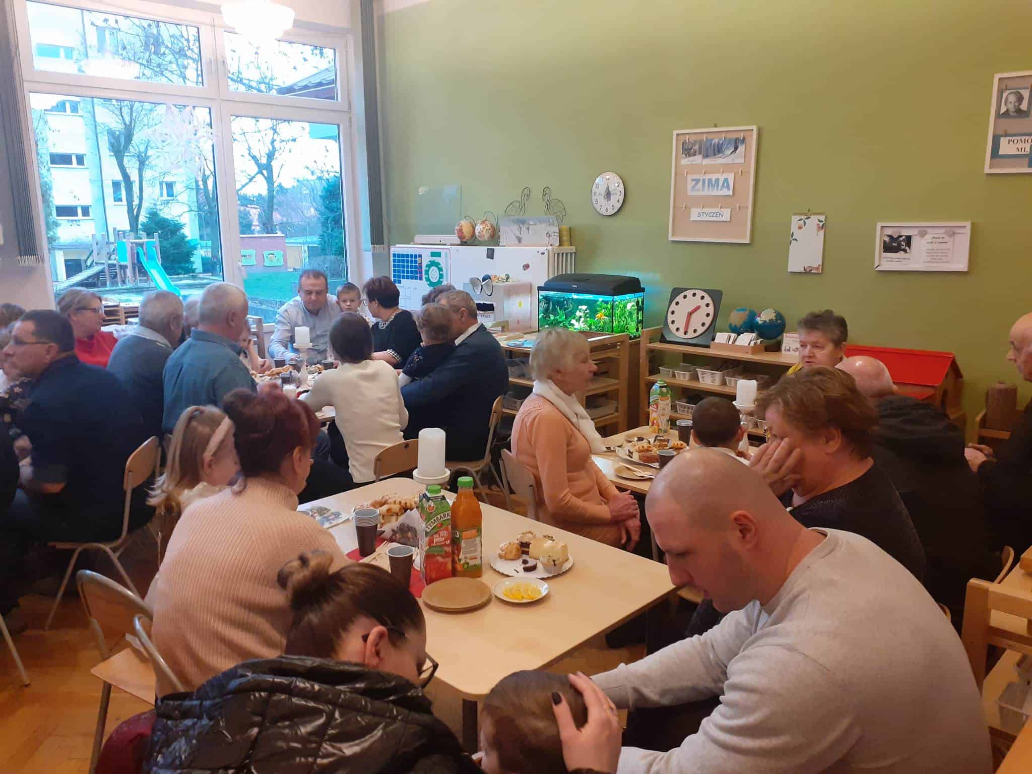 Dzieci z dużym przejęciem odtwarzały swoje role, a Goście ze wzruszeniem odbierali czułe słowa kierowane pod Ich adresem. Po skończonym występie dzieci, wraz z najserdeczniejszymi życzeniami, wręczyły swoim Babciom i Dziadkom przygotowane wcześniej prezenty – w tym roku były to u nas serduszka z masy porcelanowej z odbitą na nich rączką wnuczki lub wnuczka.