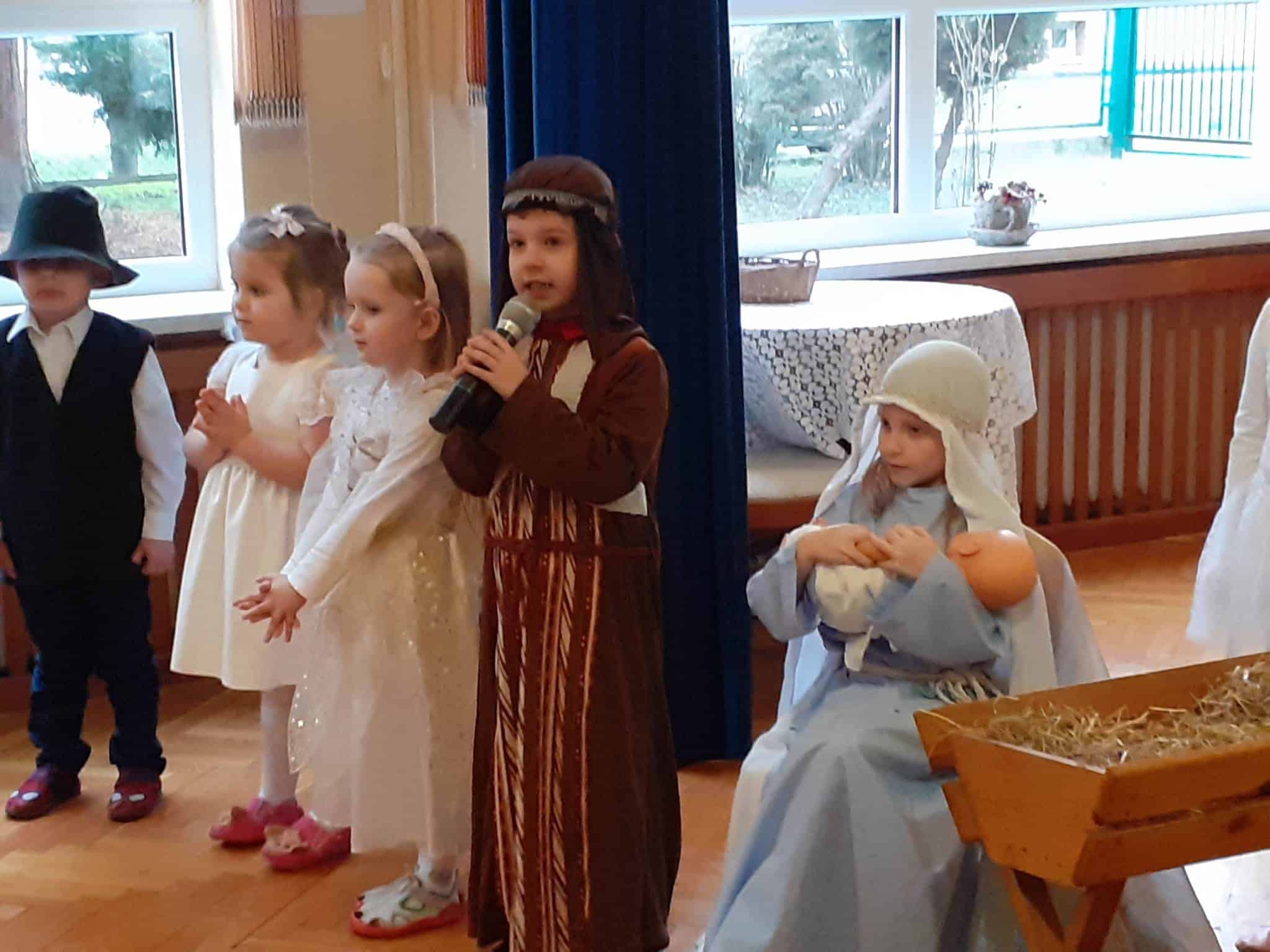 Dzień Babci i Dziadzia to jedno z najpiękniejszych świąt jakie obchodzimy w przedszkolu. W każdym wywołują one bowiem mnóstwo radości i wzruszeń. Tak było i w tym roku w naszej grupie….Na tą szczególną uroczystość dzieci przygotowały program artystyczny, jasełka, który miał być swoistą laurką dla ich kochanych dziadków. Nasze przedszkolaki, swoim występem, chciały gorąco podziękować swoim Babciom i Dziadkom za ogromną miłość, za Ich wielkie serce, cierpliwość, mądrość, opiekę i czas, jaki poświęcają swoim wnuczętom.