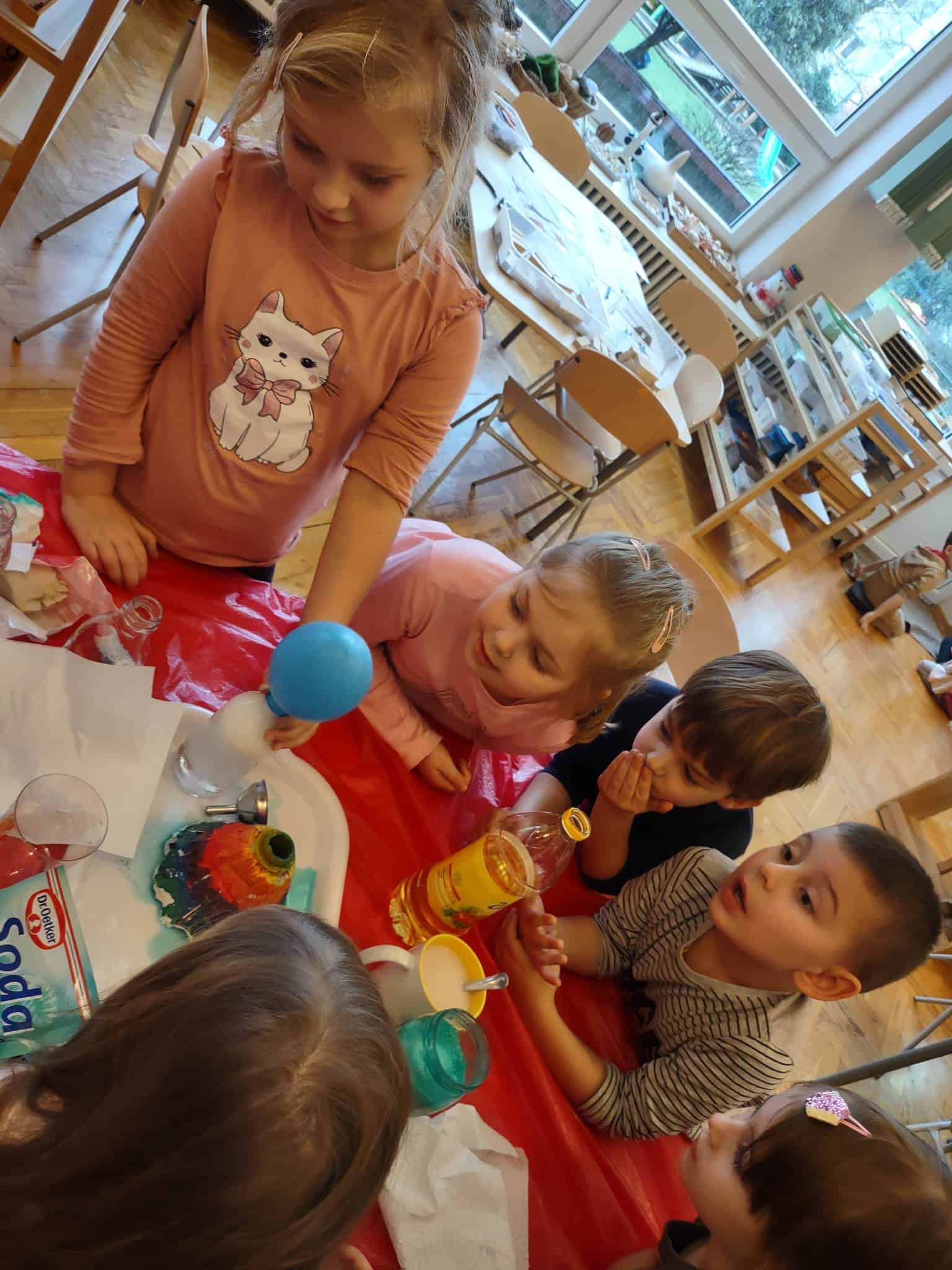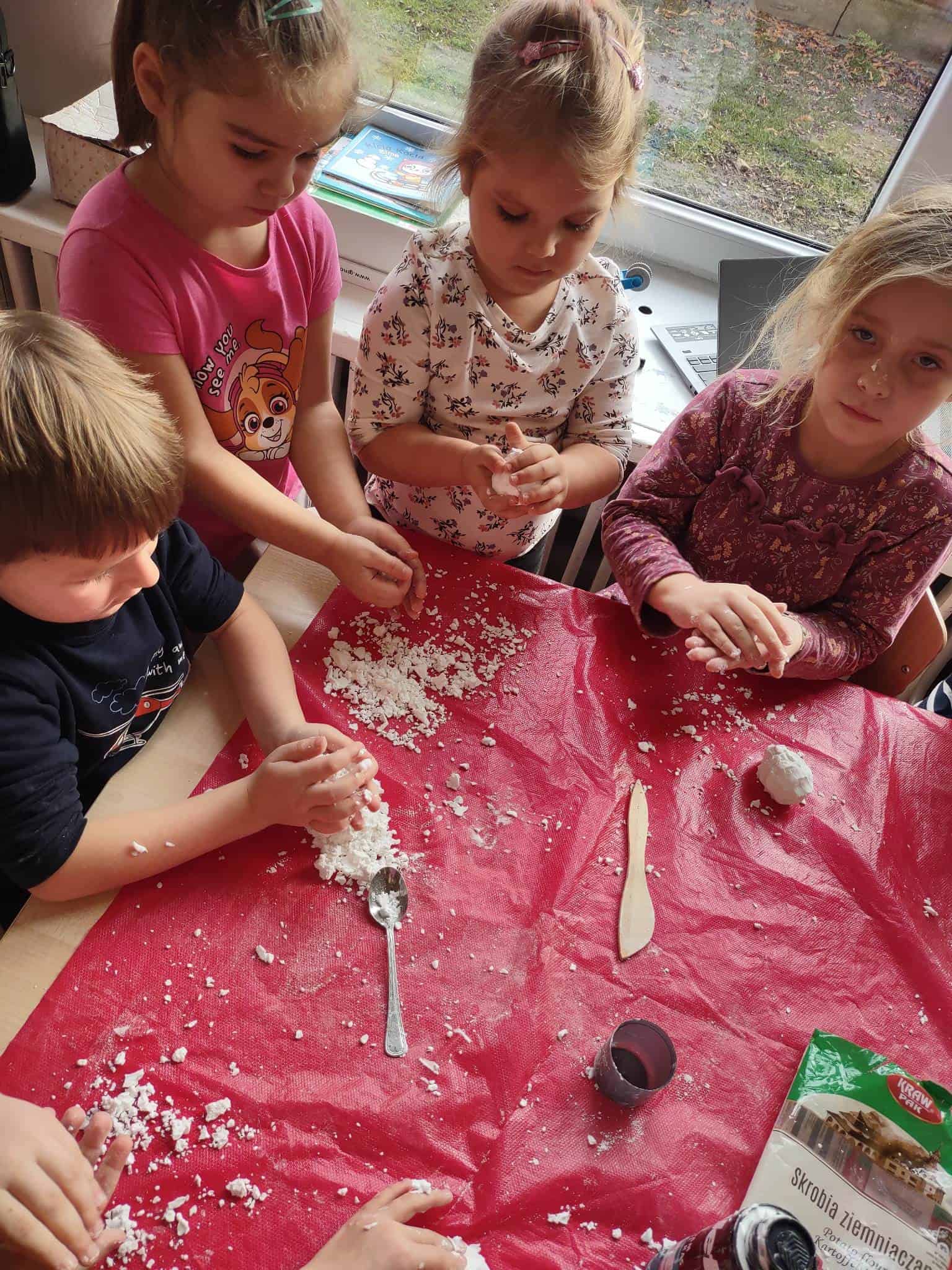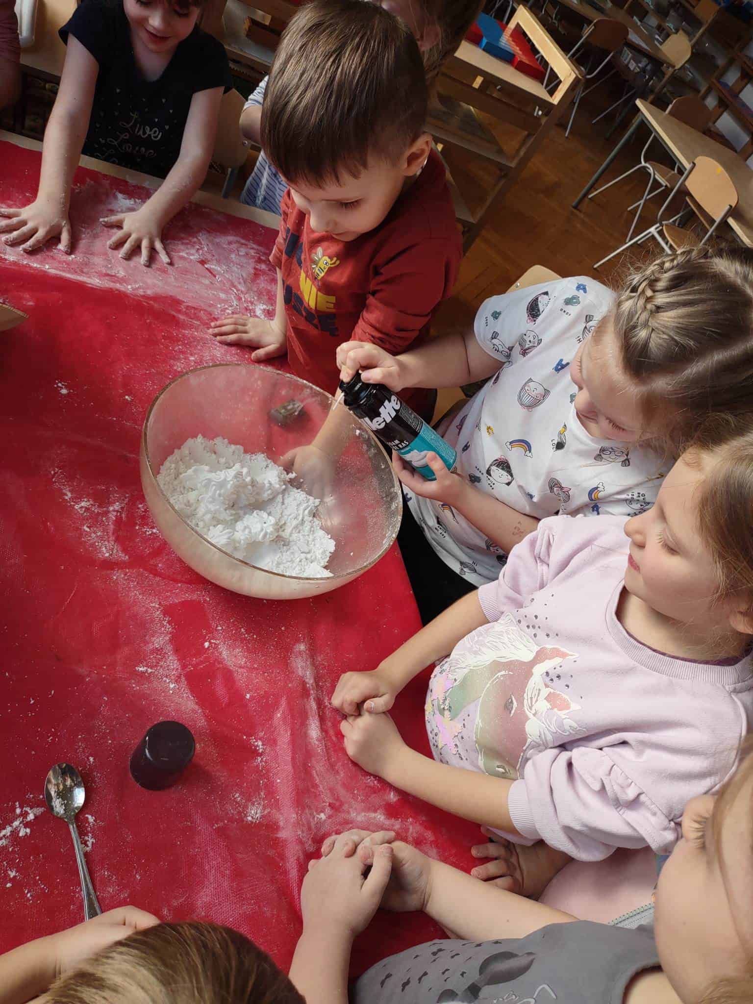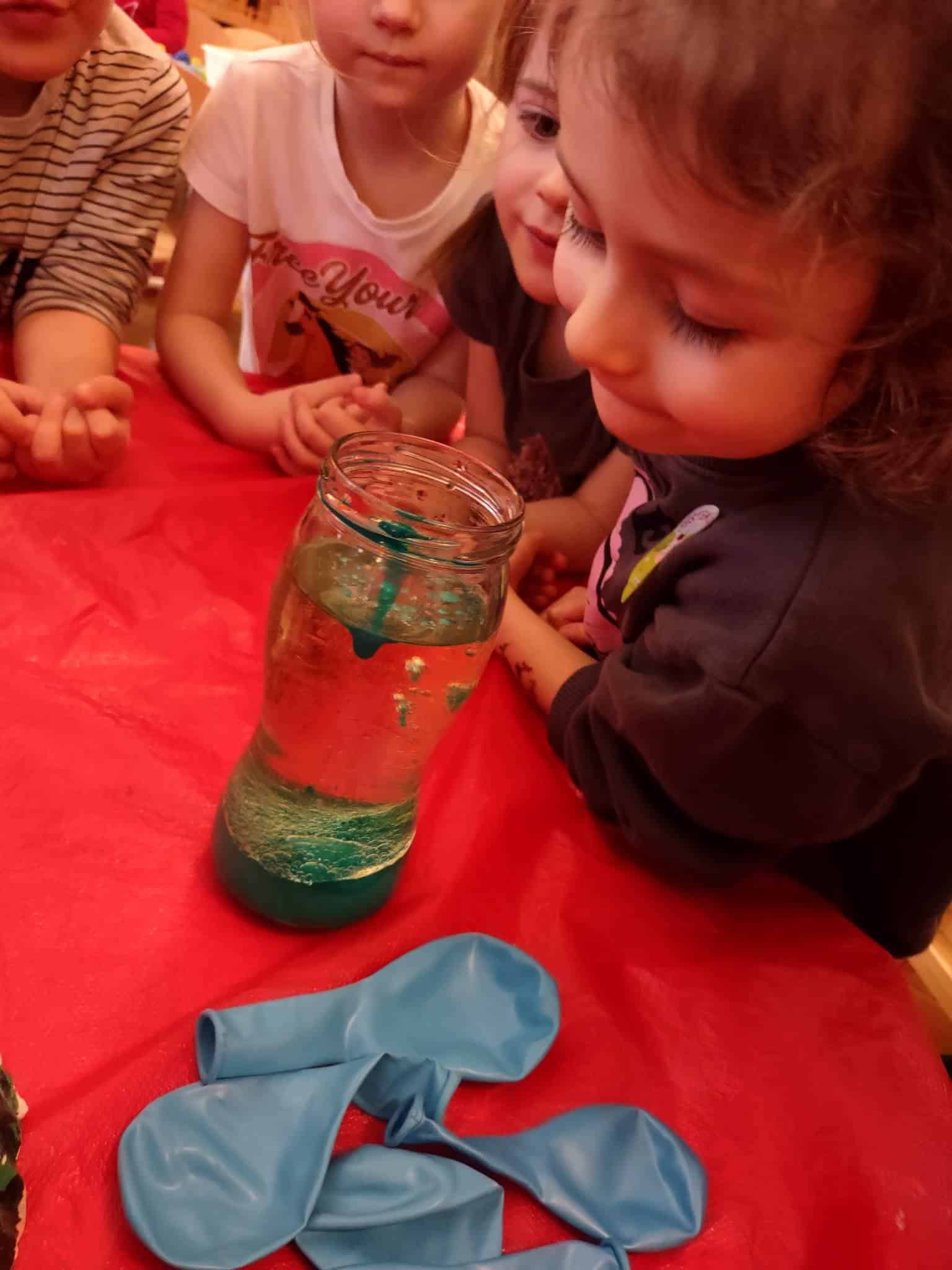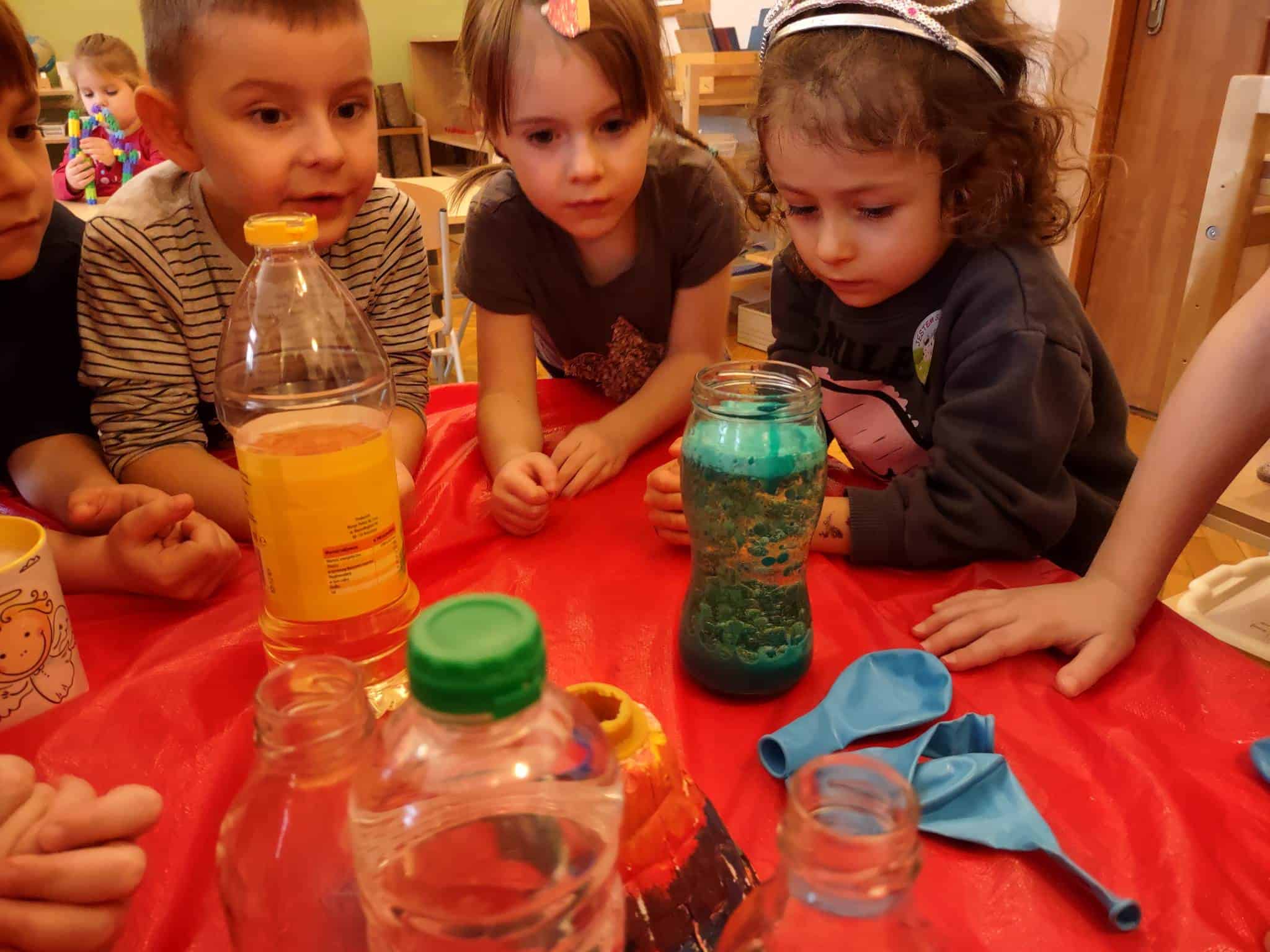 Tworzenie różnorodnych mas plastycznych, doświadczenia z kolorami, zjawiska elektromagnetyczne, czyli co przyciąga magnes? reakcje chemiczne we wnętrzu Ziemi – ciśnienie – czyli próby odpowiedzi na pytanie dlaczego wulkany wybuchają? samopompujące się balony z wykorzystaniem drożdży, poznawanie właściwości powietrza, wędrująca woda, barwienie soli, tworzenie sztucznego śniegu, poznawanie właściwości papieru w połączeniu z wodą…nasza aktywność badawcza była duża, o czym może przekonać poniższa relacja 🙂 Zapraszamy!