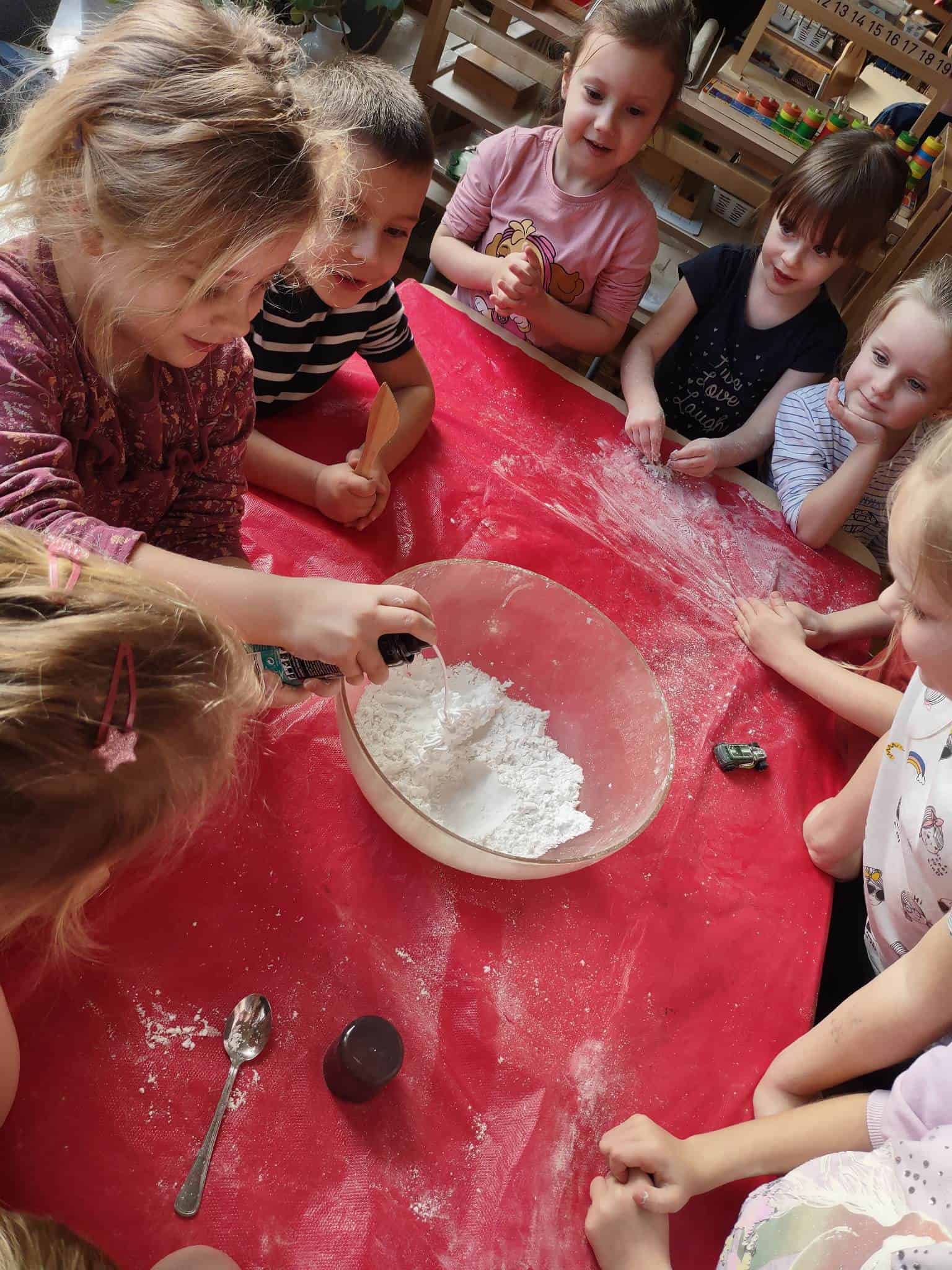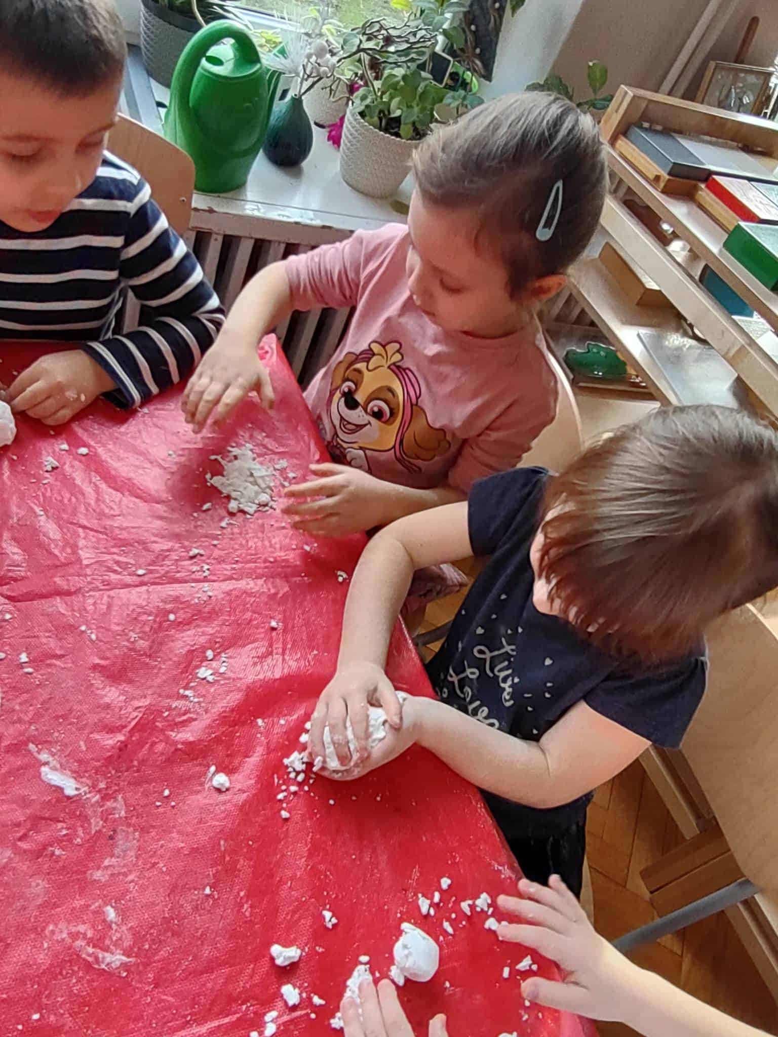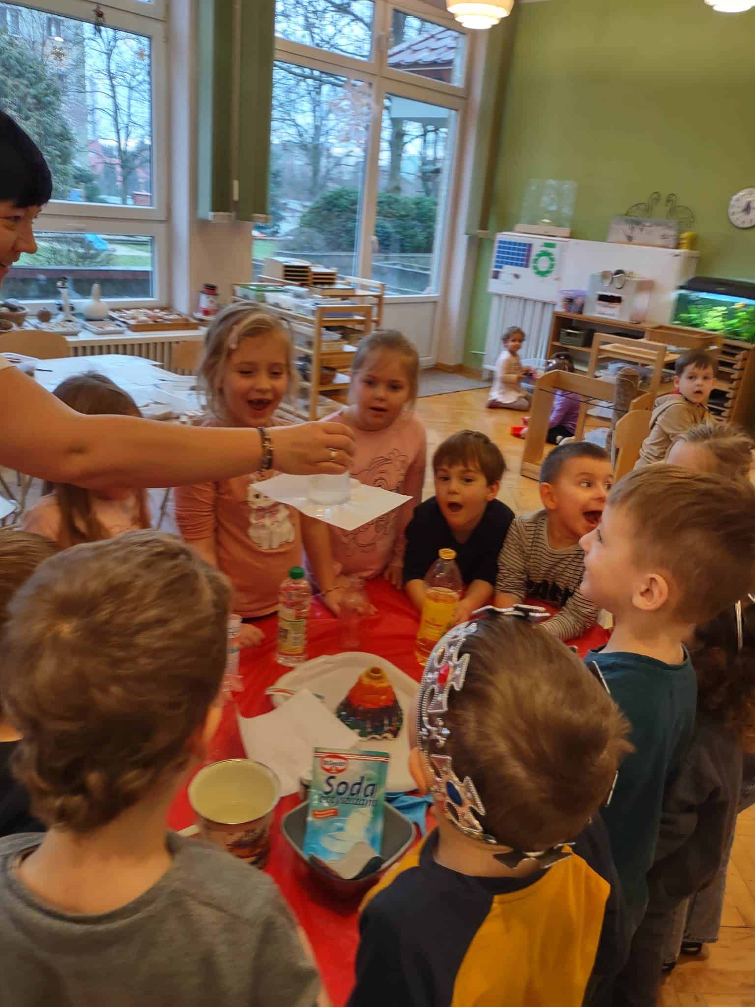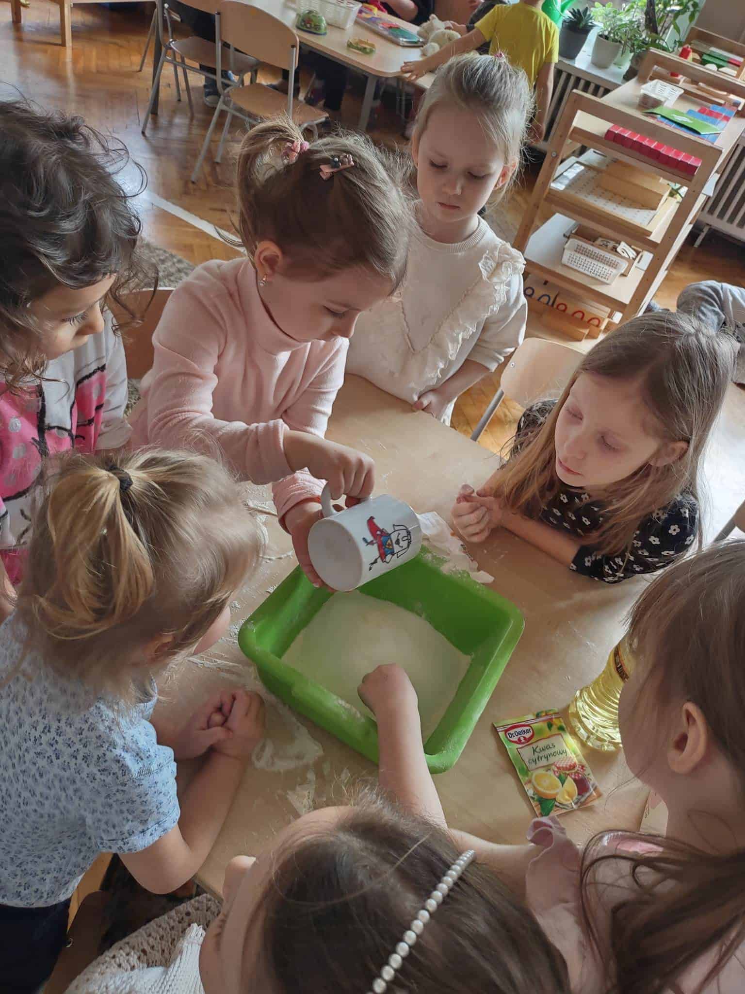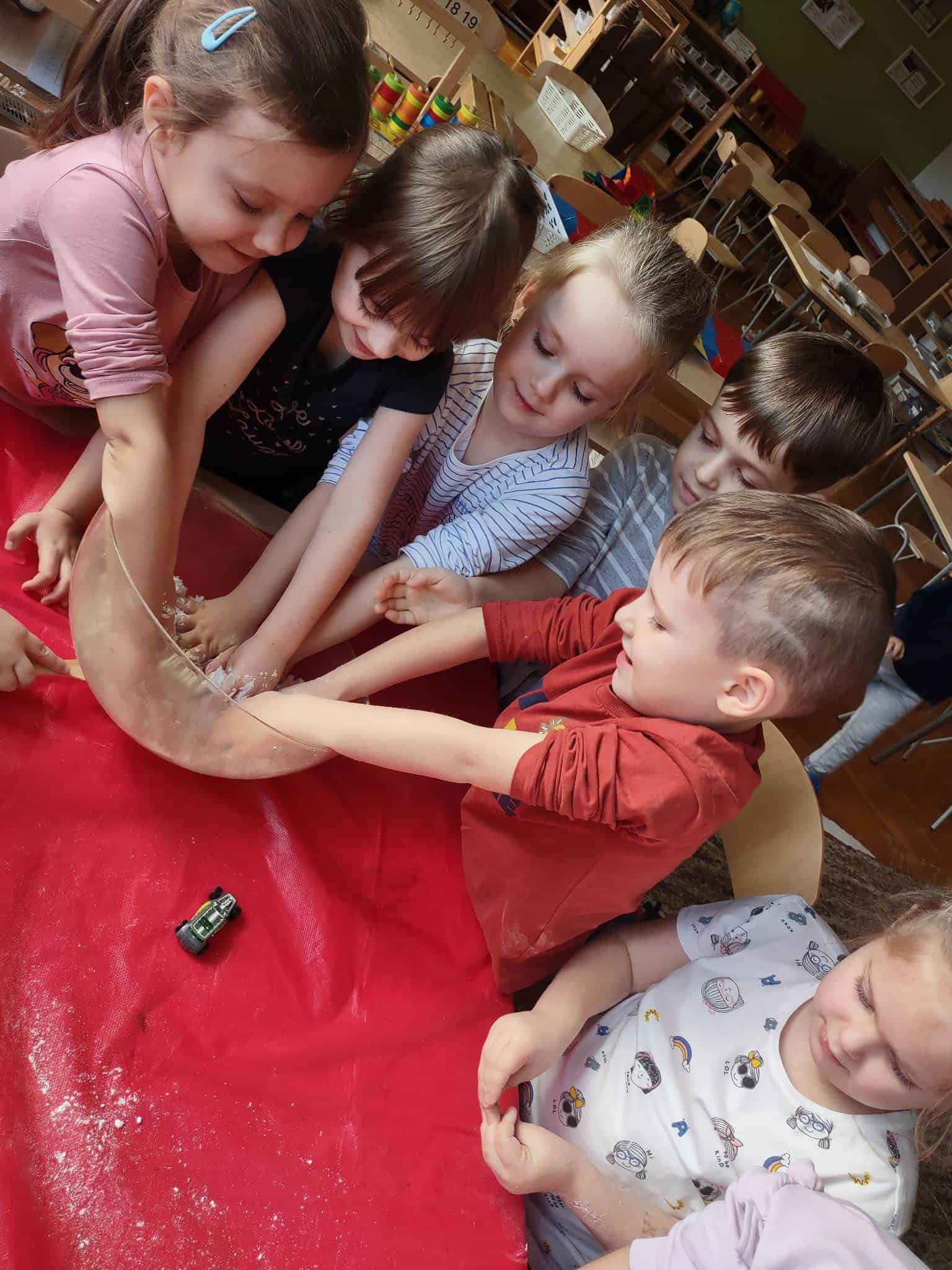 Tworzenie różnorodnych mas plastycznych, doświadczenia z kolorami, zjawiska elektromagnetyczne, czyli co przyciąga magnes? reakcje chemiczne we wnętrzu Ziemi – ciśnienie – czyli próby odpowiedzi na pytanie dlaczego wulkany wybuchają? samopompujące się balony z wykorzystaniem drożdży, poznawanie właściwości powietrza, wędrująca woda, barwienie soli, tworzenie sztucznego śniegu, poznawanie właściwości papieru w połączeniu z wodą…nasza aktywność badawcza była duża, o czym może przekonać poniższa relacja 🙂 Zapraszamy!