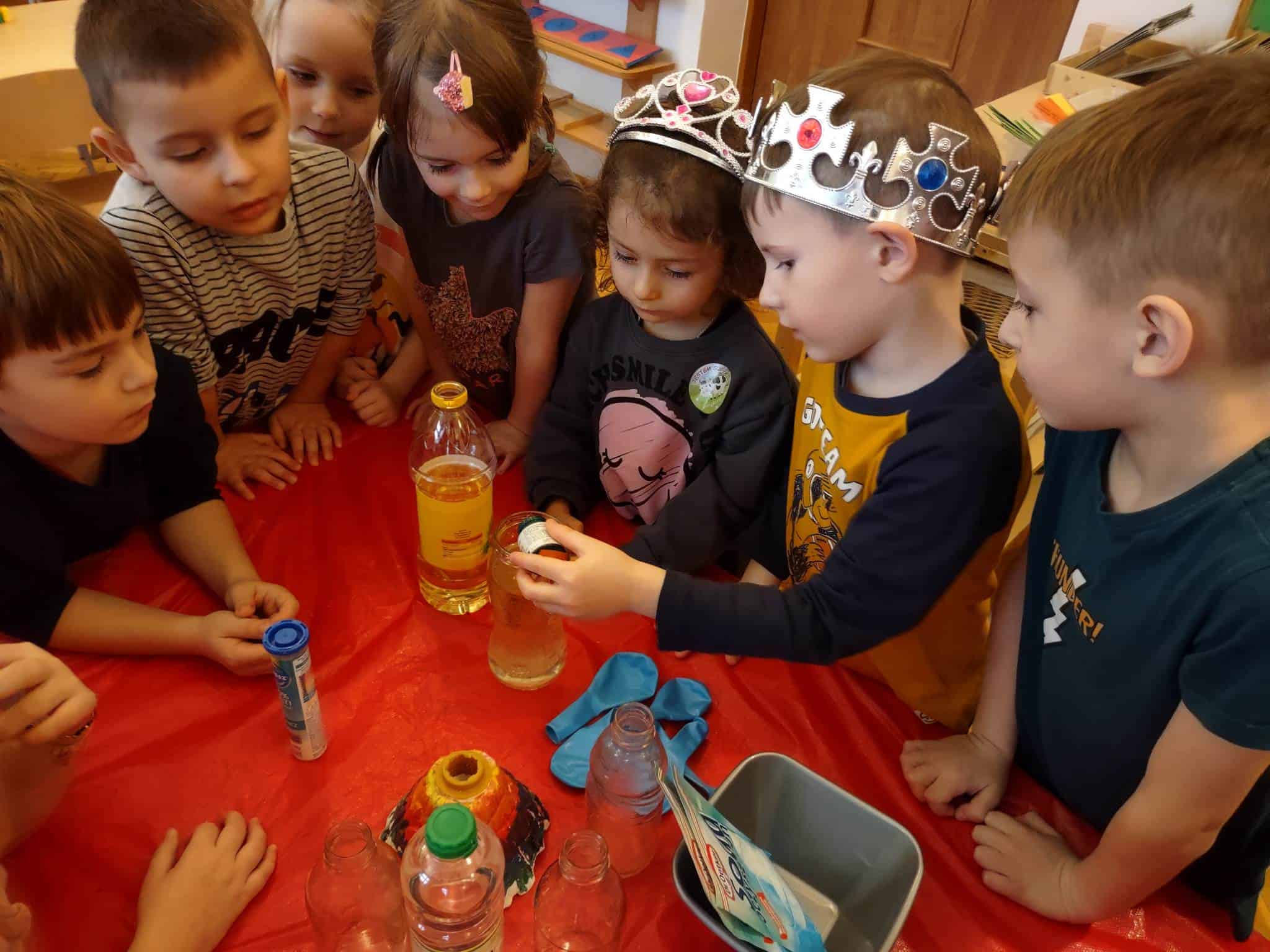 W naszej grupie, oprócz realizacji projektów ogólnopolskich, realizujemy również program własny „Działam, doświadczam, odkrywam,, gdzie, w trakcie swych różnorodnych działań, zabaw badawczych i samodzielnego dochodzenia do wiedzy, dzieci poznają zjawiska z dziedziny chemii a także z niektórych działów fizyki. Podczas tych zajęć dzieci rozwijały zainteresowanie otaczających je światem, jego różnorodnością i pięknem.
