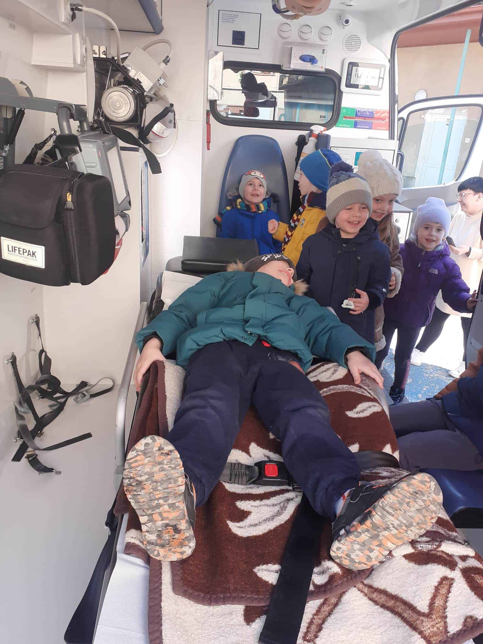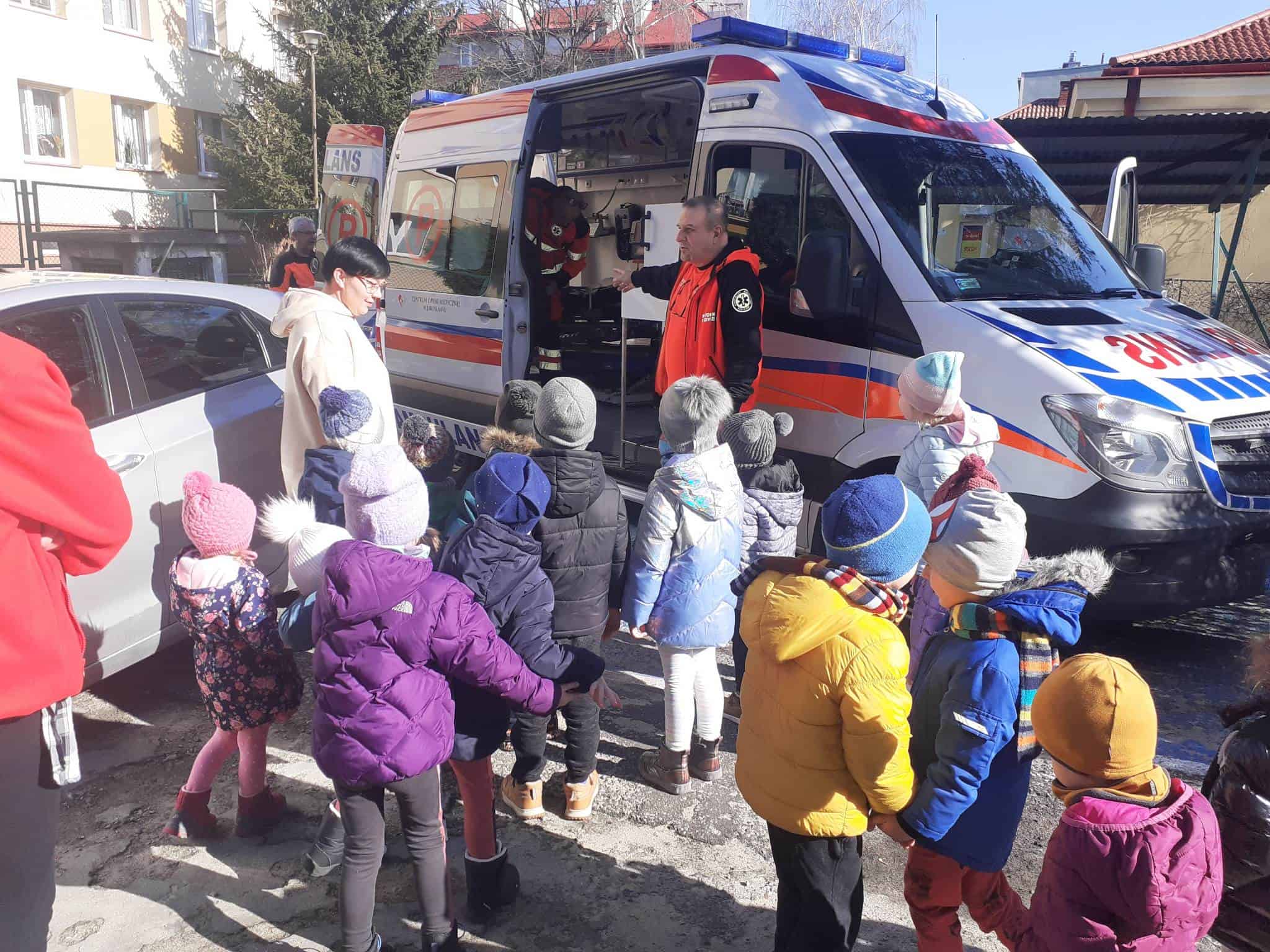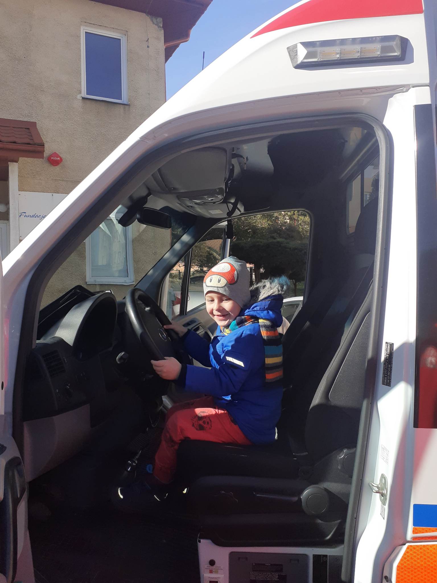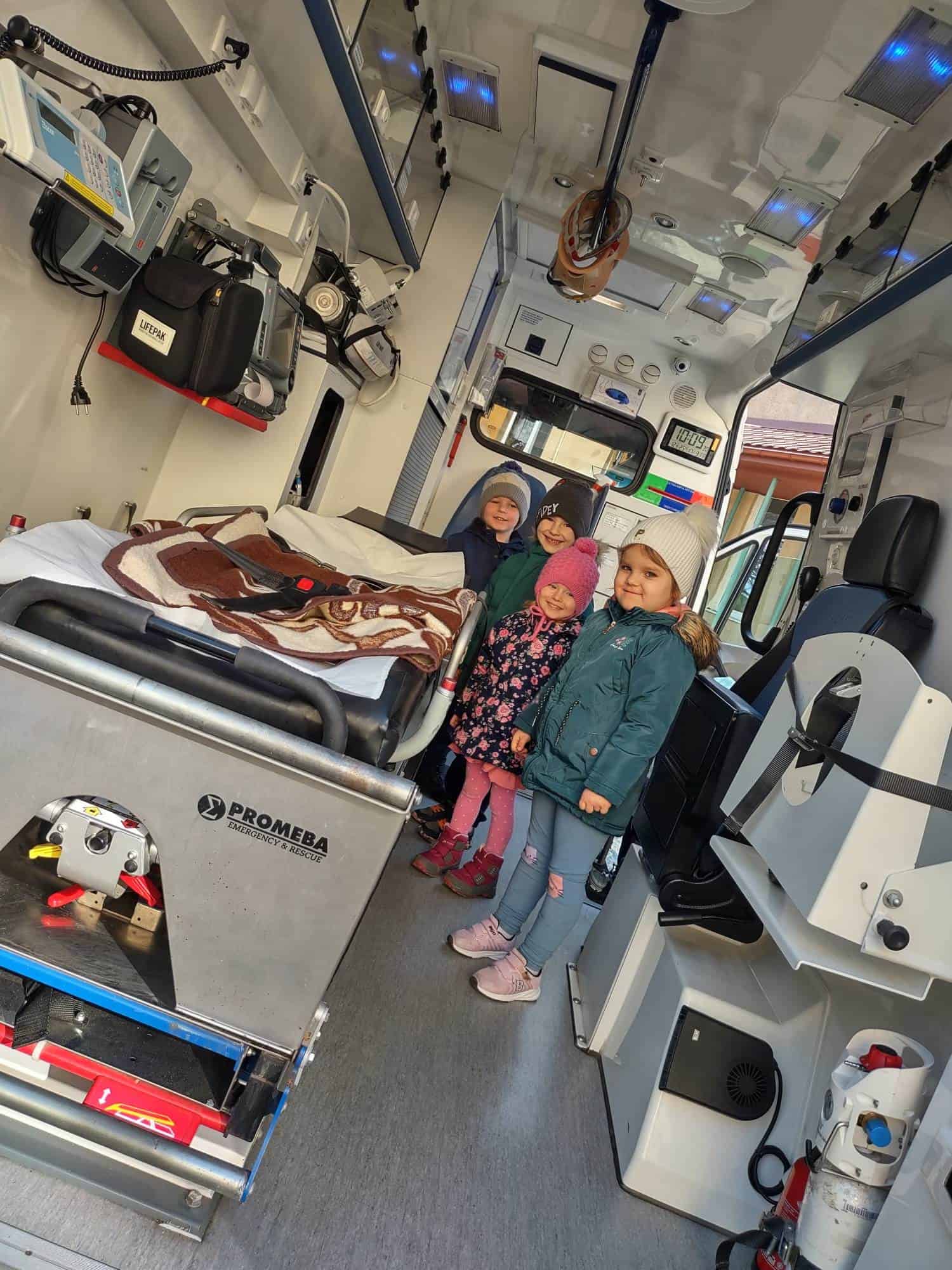 Ogromną niespodzianką i dużą radością dla dzieci okazała się możliwość obejrzenia wnętrza karetki pogotowia ratunkowego. Przedszkolaki mogły usiąść za kierownicą, wejść do środka i zobaczyć jej wyposażenie. Cóż to było za przeżycie!!