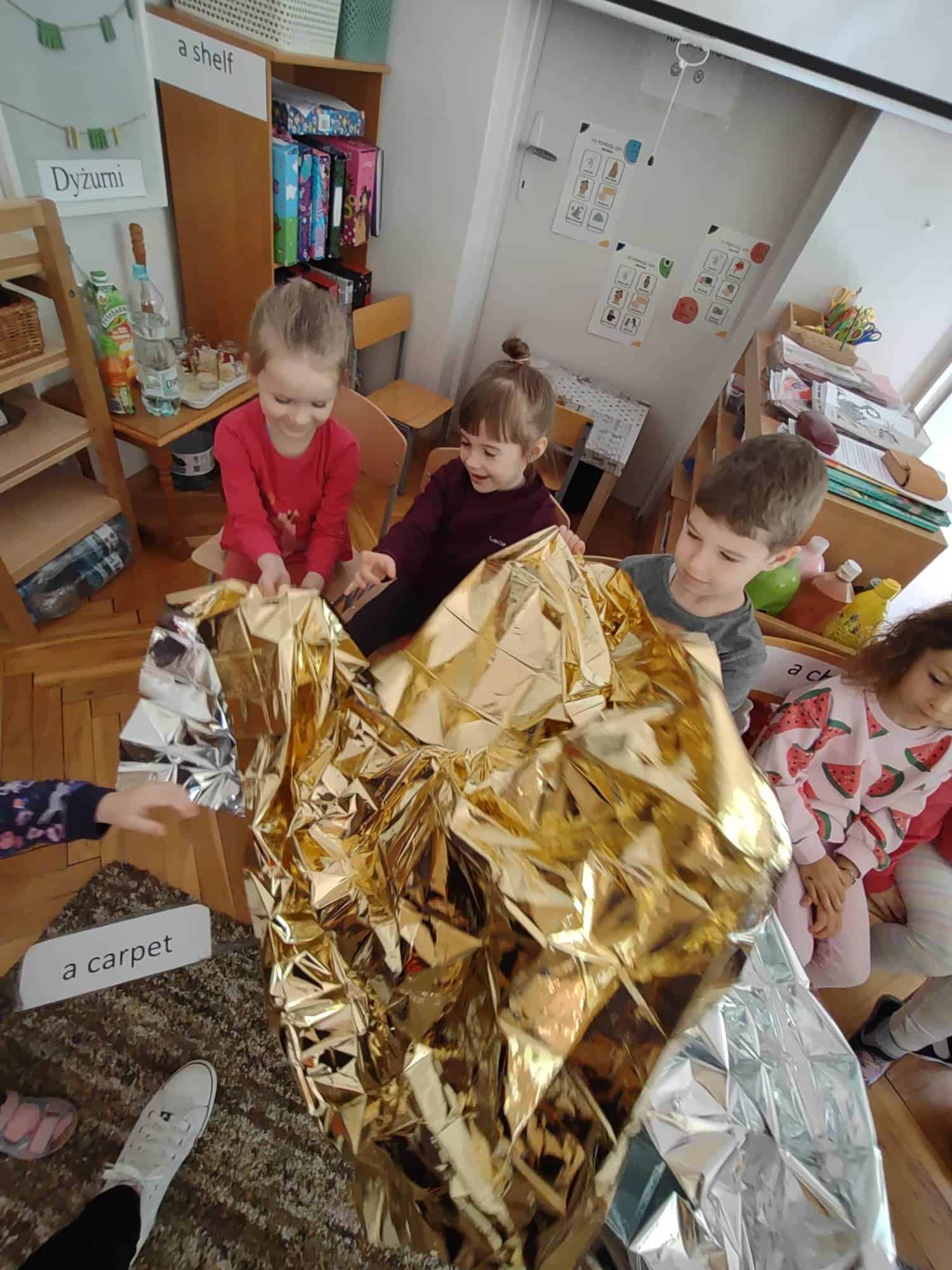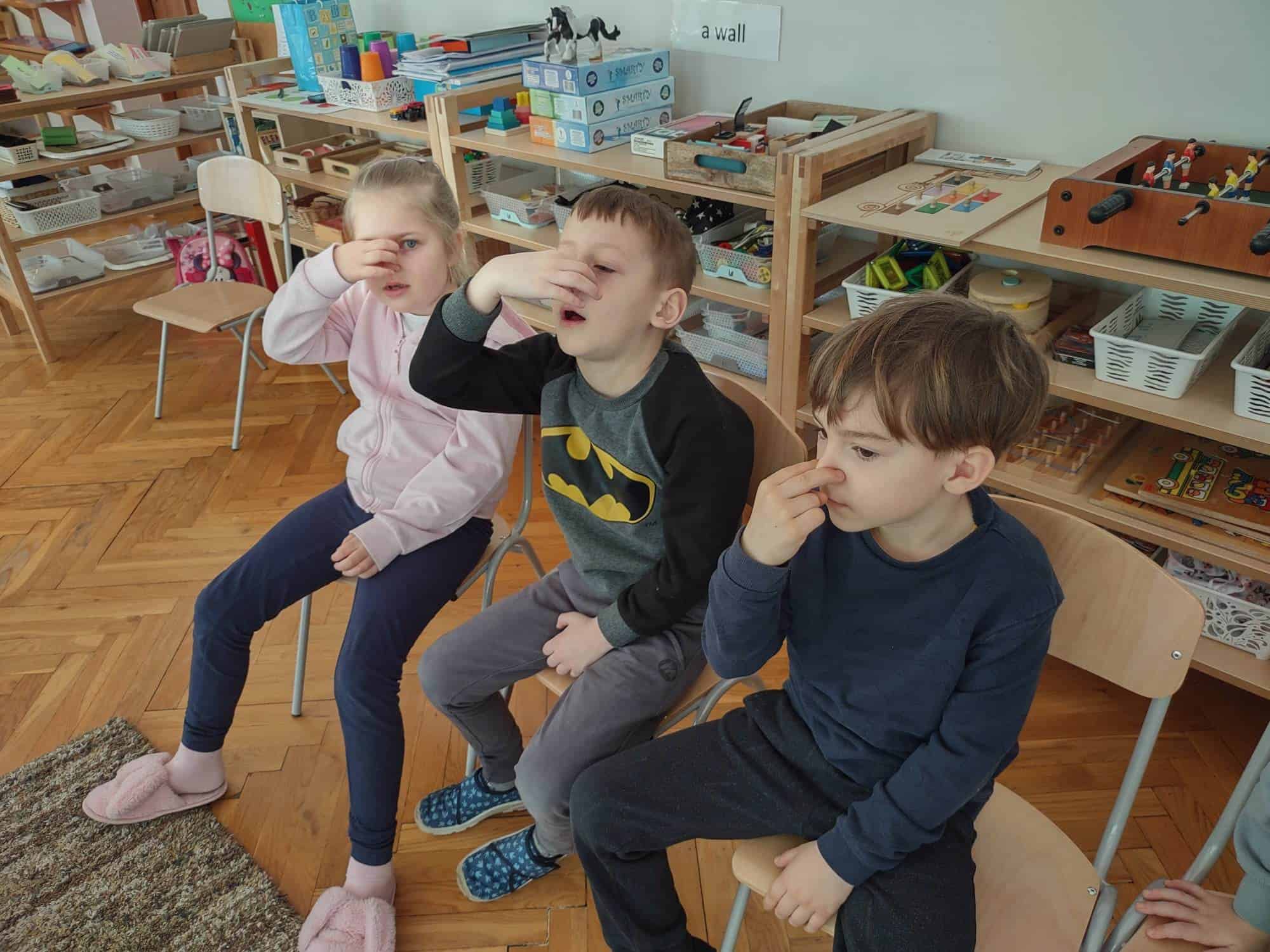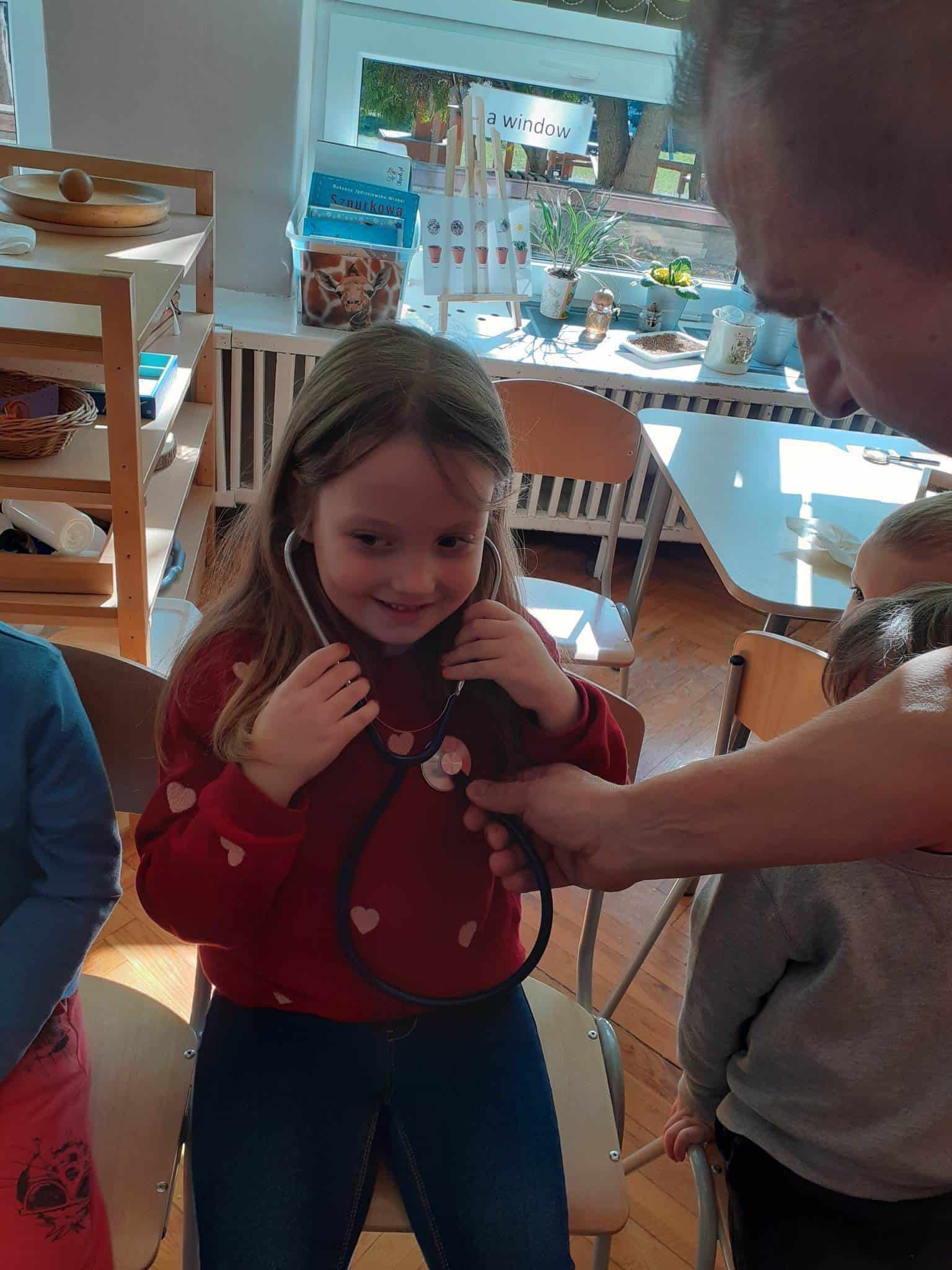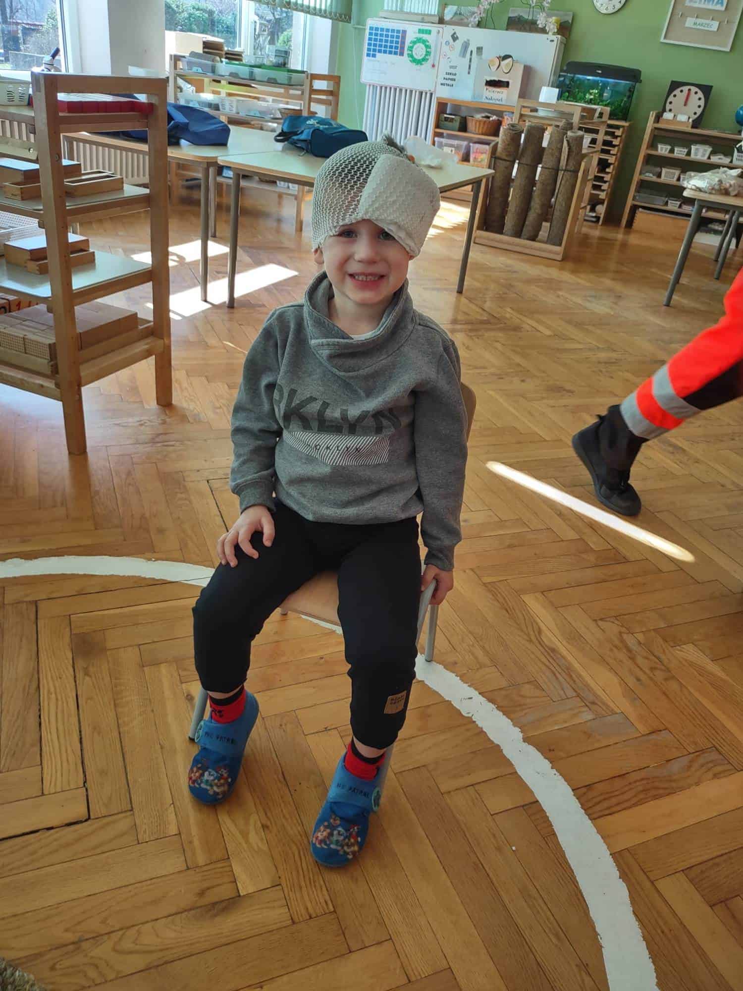 To było nie tylko bardzo miłe, ale przede wszystkim bardzo ważne spotkanie! Dzieci zostały przeszkolone z zakresu wykonywania prostych czynności udzielania pierwszej pomocy oraz prawidłowego zachowania się w czasie wypadku lub w innych sytuacjach zagrożenia życia i zdrowia. Panowie pokazali dzieciom jak wygląda strój ratownika – wytłumaczyli dlaczego ma on właśnie pomarańczowy kolor, wyjaśnili nam również na czym polega ich praca oraz czym zajmują się poszczególne służby ratunkowe. Następnie przedszkolaki miały okazję wysłuchać informacji na temat udzielania pierwszej pomocy w przypadku zadławienia lub zatrzymaniu akcji serca. Dzieci uczyły się jak należy sprawdzać przytomność osoby poszkodowanej. Ważną rzeczą było także utrwalenie sobie numerów alarmowych służb ratowniczych oraz zasad bezpiecznej zabawy. Dzieci dowiedziały się także w jaki sposób rozmawiać przez telefon z dyspozytorem oraz jak można udzielić komuś pierwszej pomocy, zanim przyjedzie pogotowie ratunkowe. Zdobyta wiedza i ćwiczenia praktyczne sprawiły, że poczuliśmy się „małymi ratownikami”, bo właśnie takie znaczki na koniec otrzymaliśmy od Pana Patryka 🙂