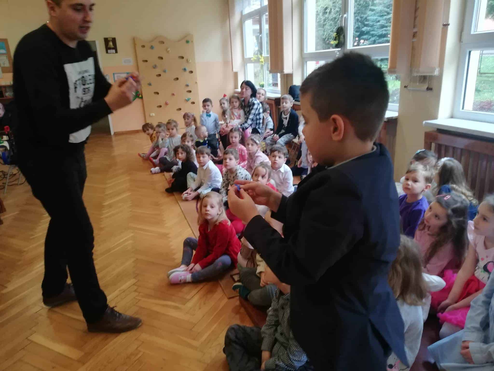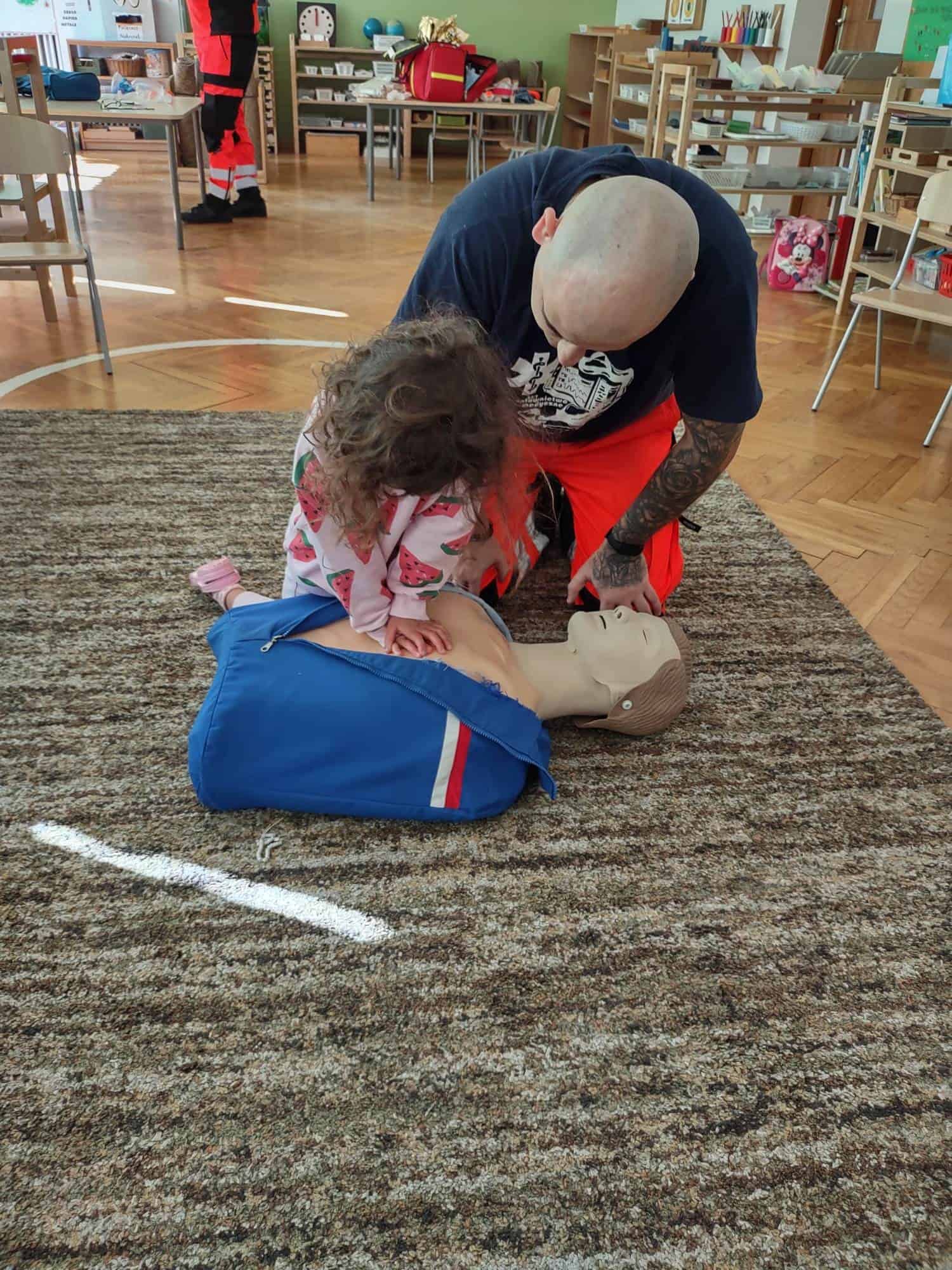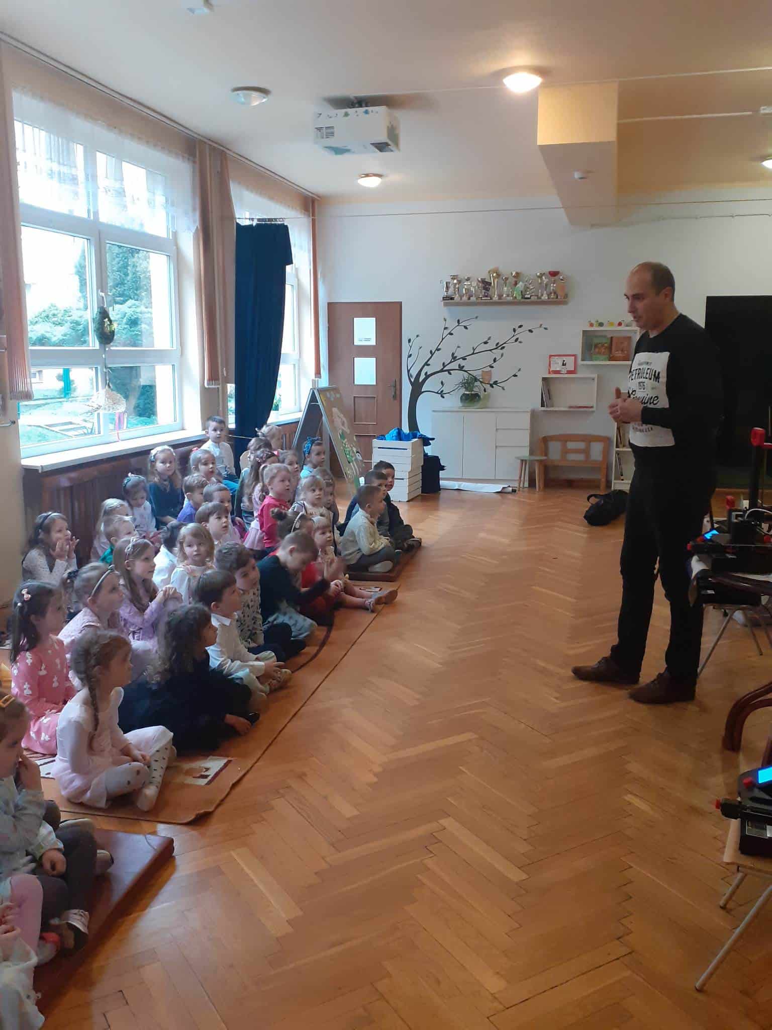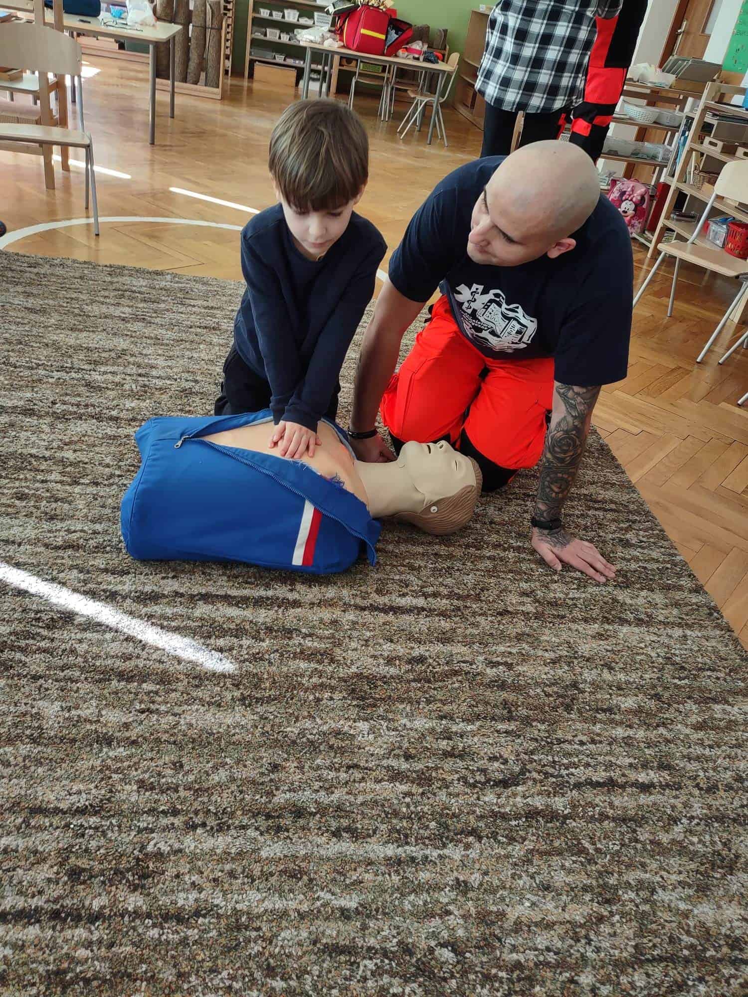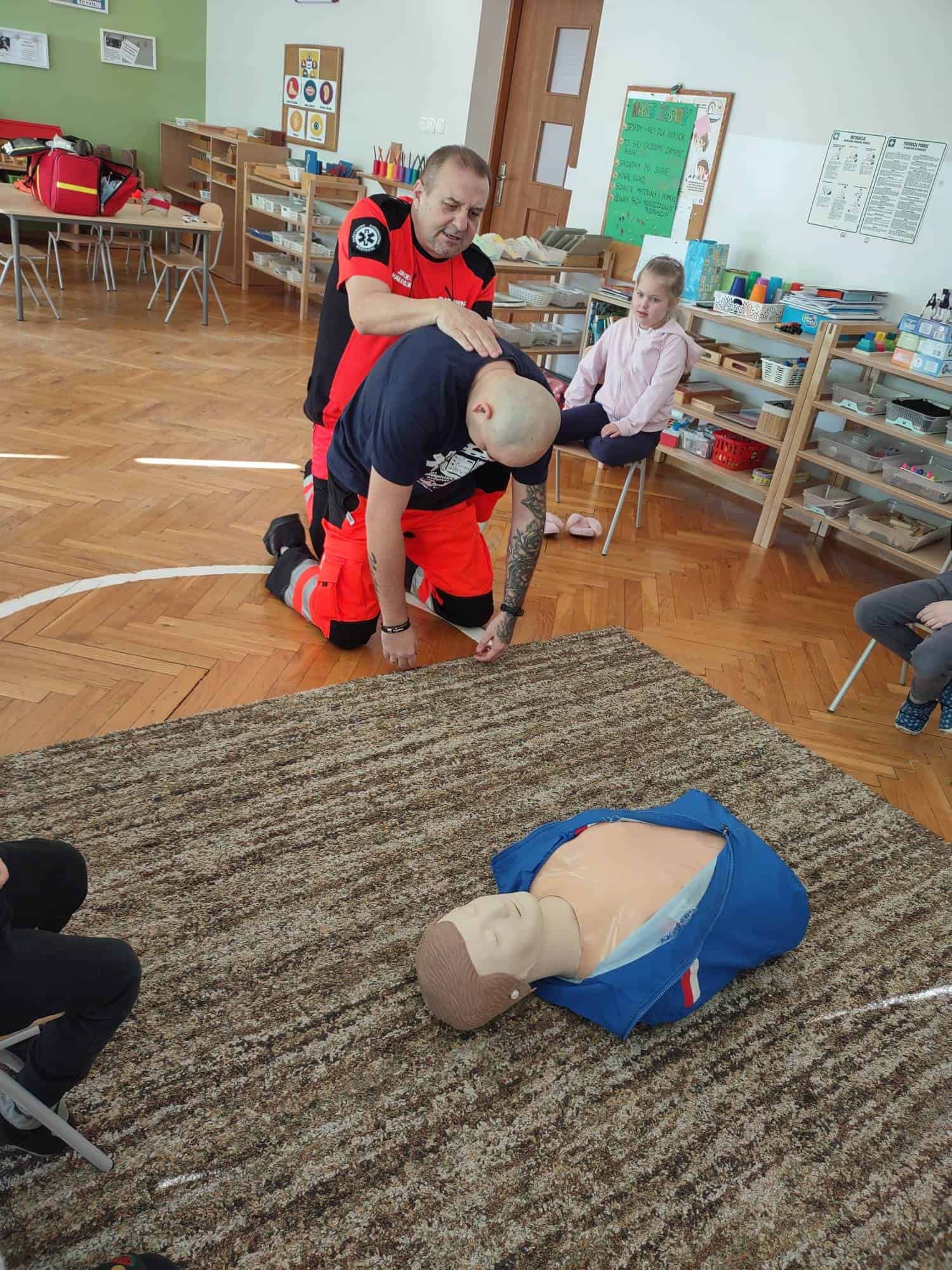 Bardzo dziękujemy Panu Jackowi i Panu Patrykowi za przybycie, za tak fantastycznie i twórczo przeprowadzone warsztaty. Dziękujemy również Pani Kasi, mamusi naszego Adrianka, za zaaranżowanie tego spotkania 🙂 Mamy nadzieję, że spotkanie to pomogło zaszczepić wśród dzieci ideę konieczności pomocy osobom potrzebującym, i że nasze przedszkolaki nigdy nie przejdą obojętnie obok człowieka potrzebującego ratunku i będą wiedziały jak mogą pomóc. Dzięki takiej lekcji dzieci nauczyły się wielu ważnych rzeczy, które w przyszłości, być może, przyczynią się do uratowania komuś życia!