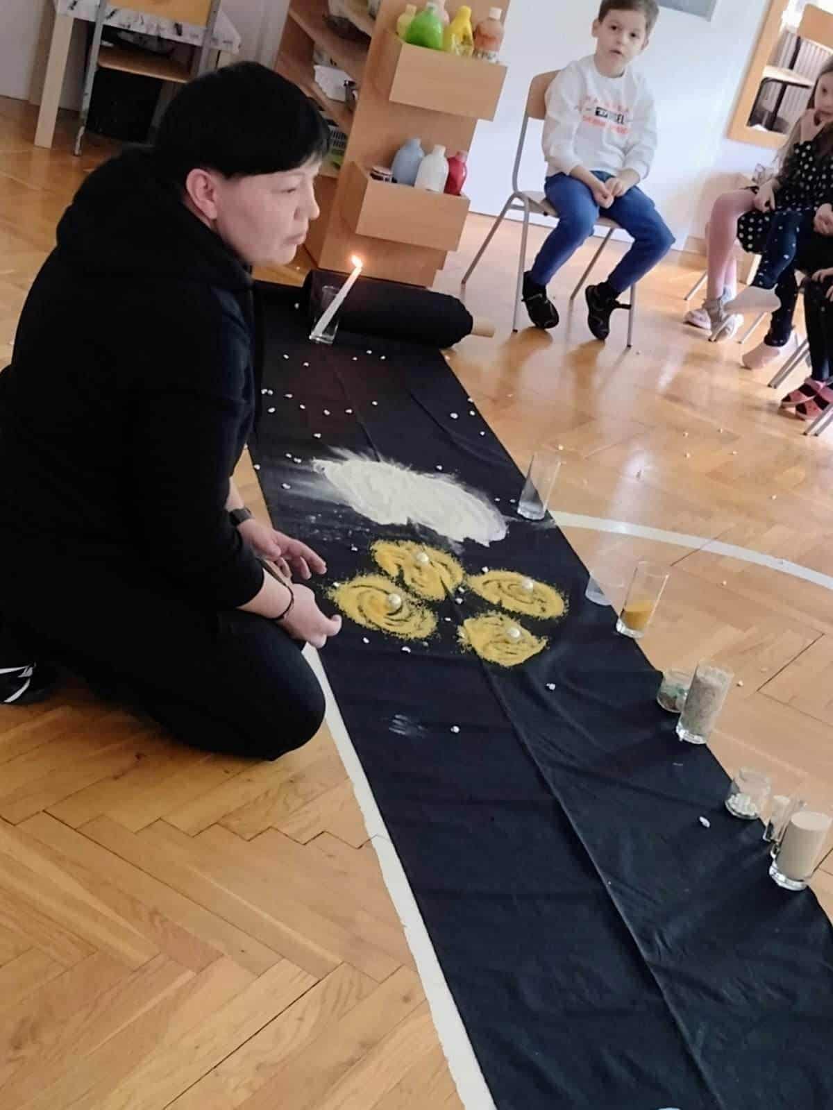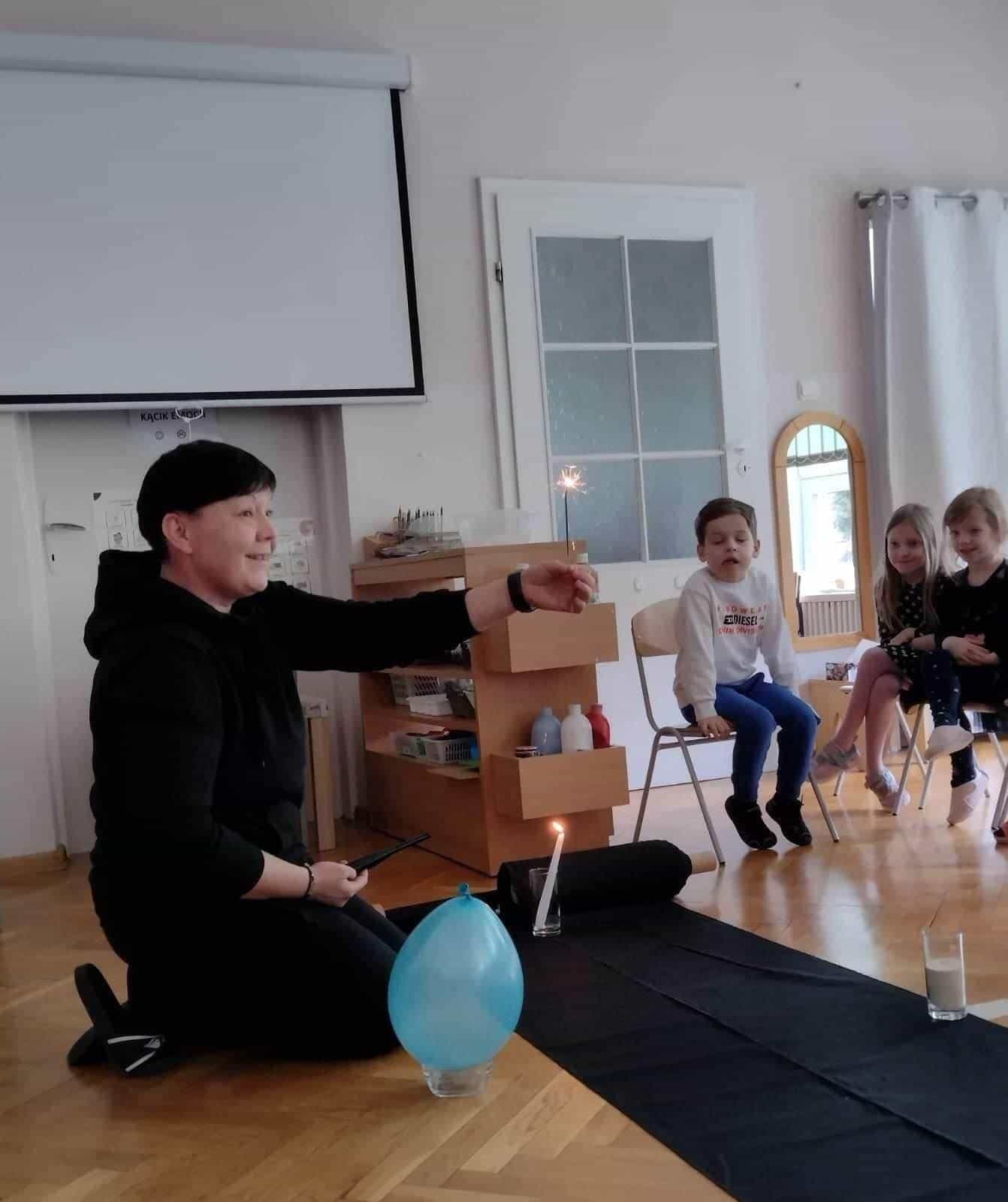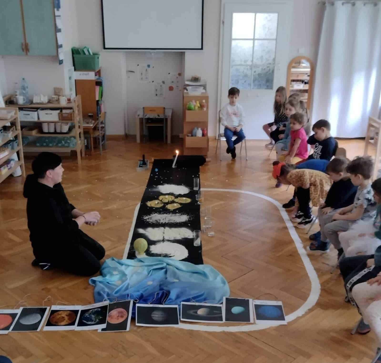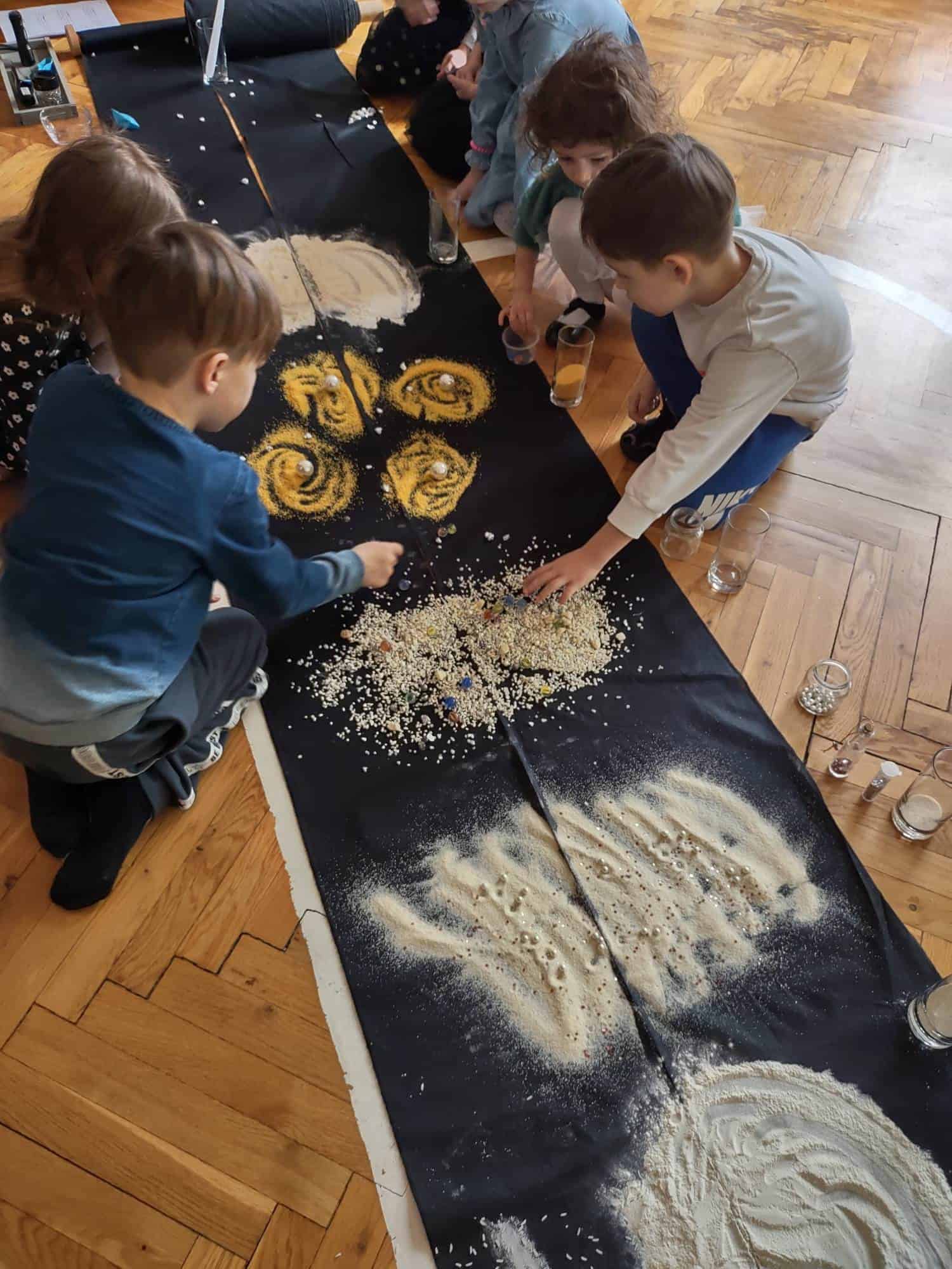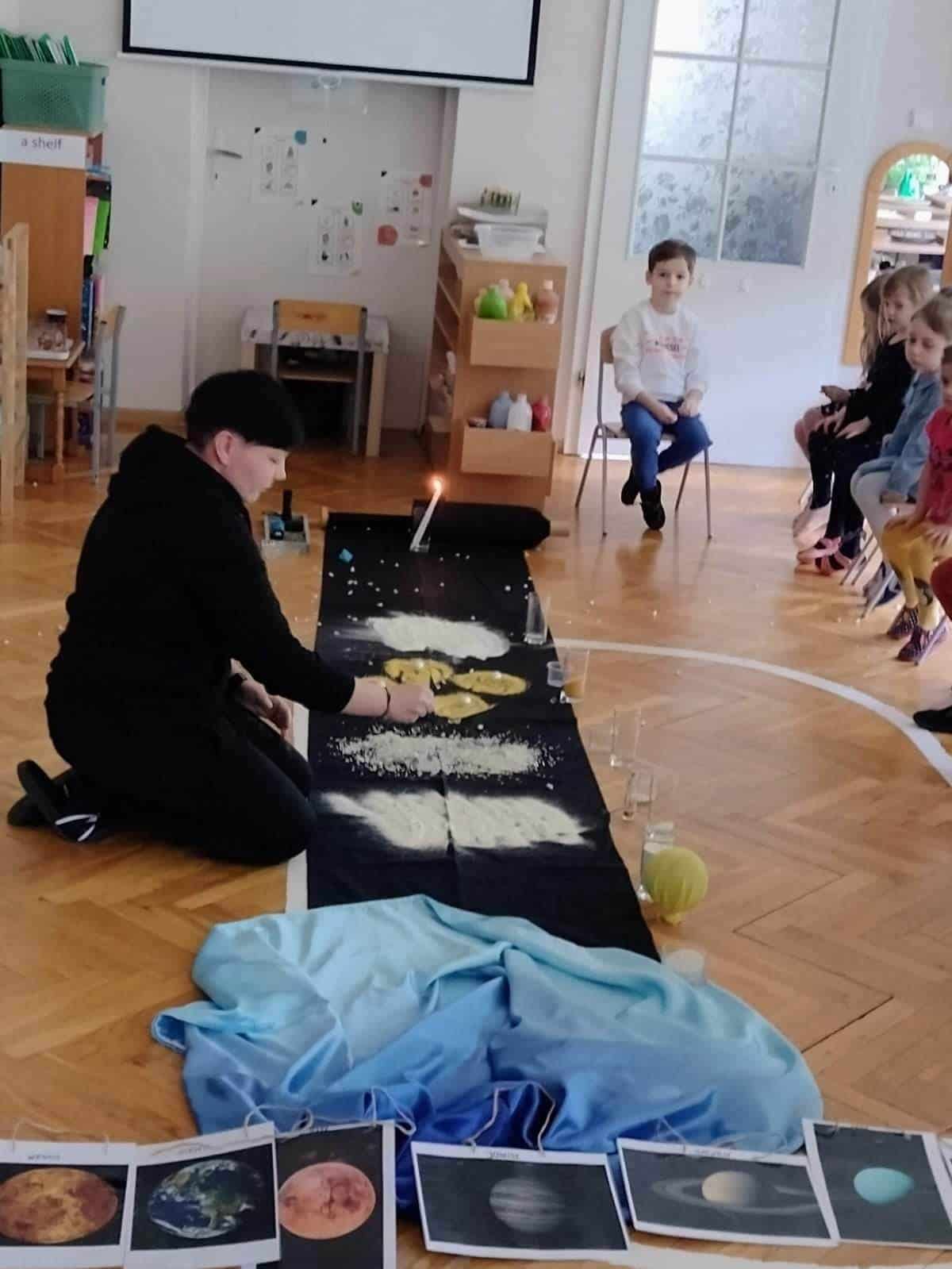 Przygotowaliśmy stanowisko pracy, wyłożyliśmy na stolik warzywa i owoce i zabraliśmy się do dzieła. Każdy samodzielnie drylował nasiona z owoców i warzyw, po czym następował proces umieszczania tych nasion w ziemi. Jeszcze tylko podlać, podpisać i gotowe. W ten sposób zostały zasadzone pomidory, papryka, ogórki, jabłka, gruszki, cebula i awokado.