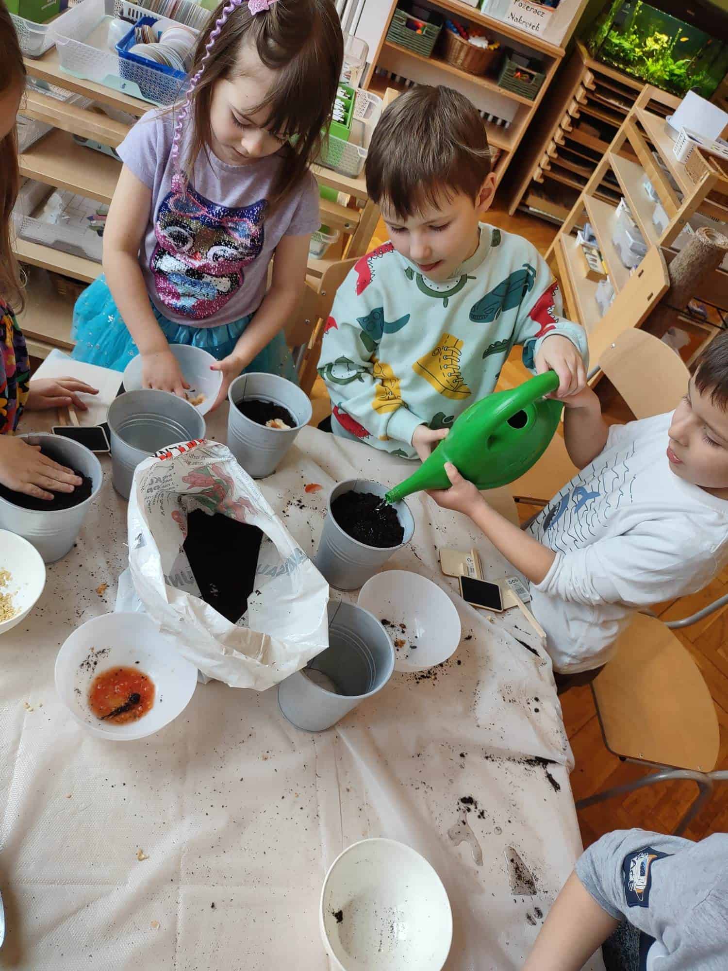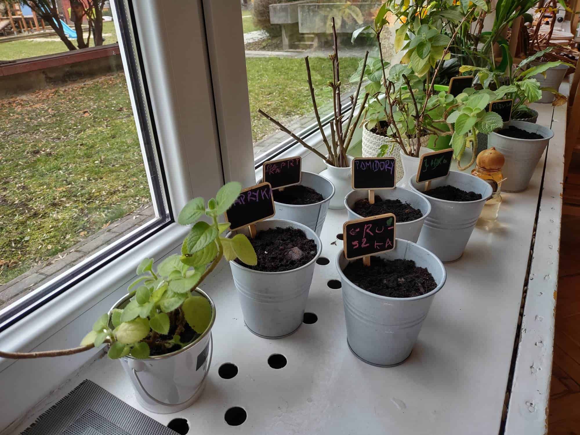 Teraz zostaje nam tylko pieczołowicie doglądać naszych upraw, dbać o ich odpowiednie nawilżanie i nasłonecznienie, aby później móc wszystko zabrać i zasadzić na naszej Edukacyjnej Ścieżce Przyrodniczej, a w środku lata cieszyć się z własnych zbiorów 🙂