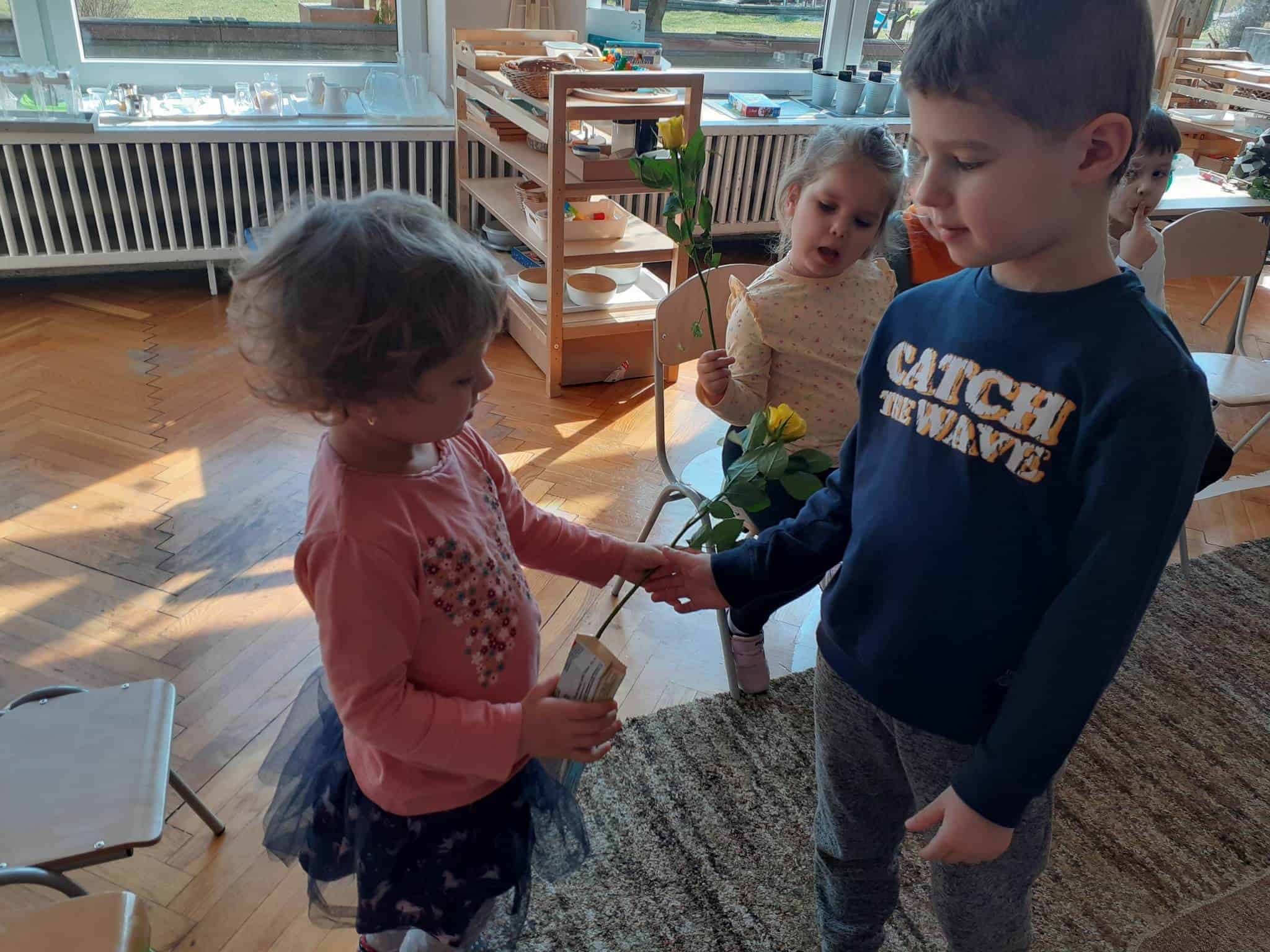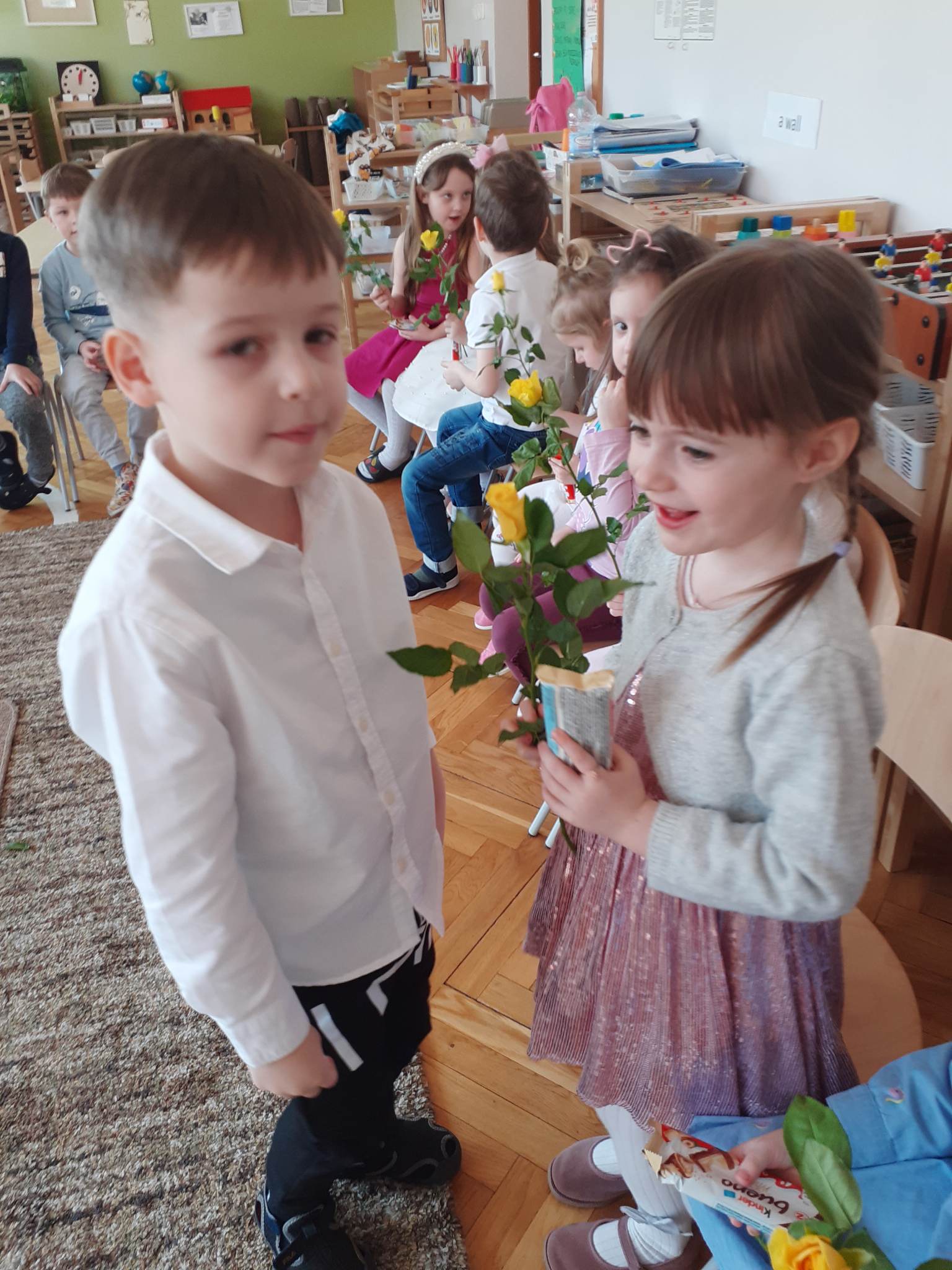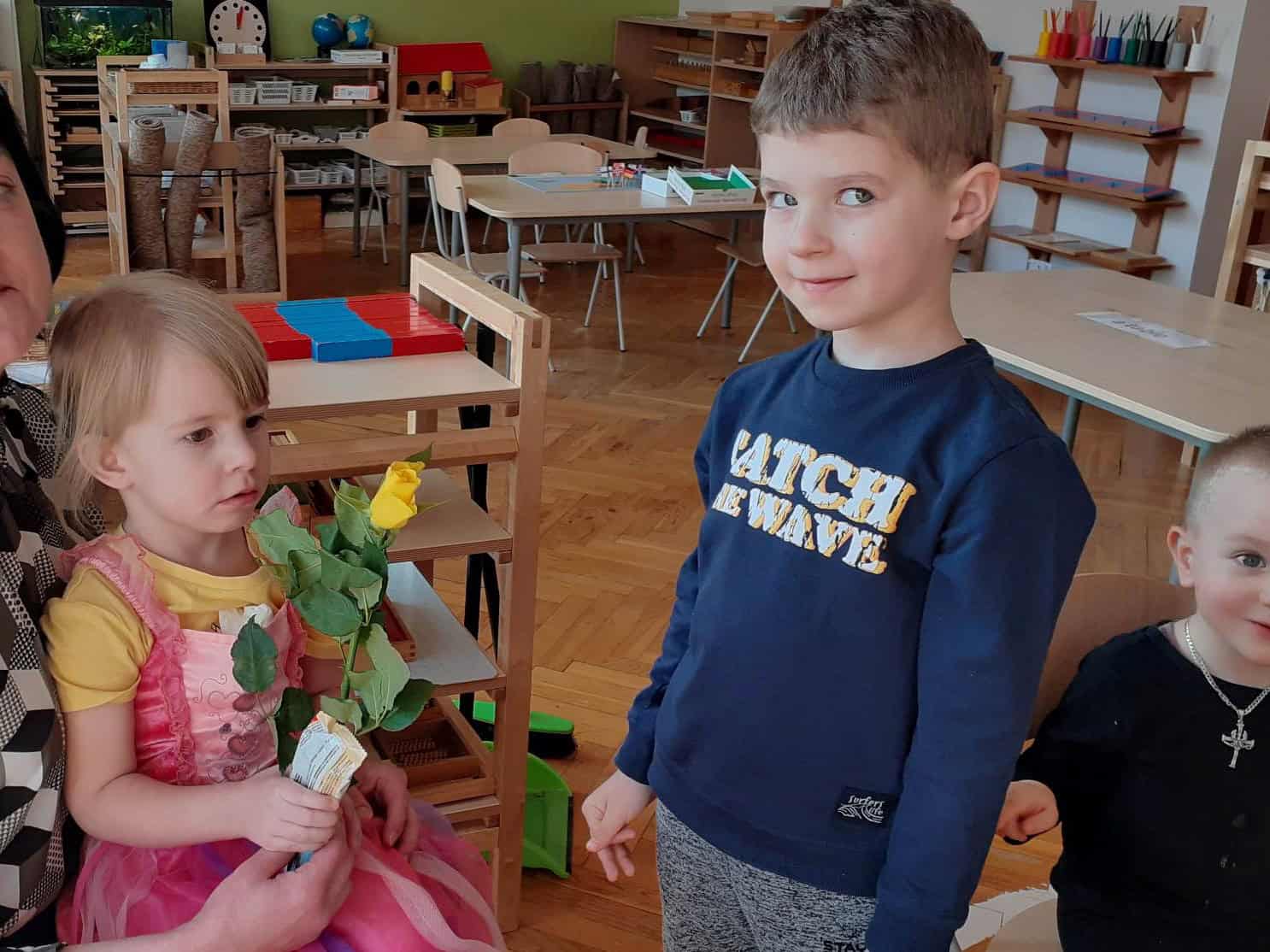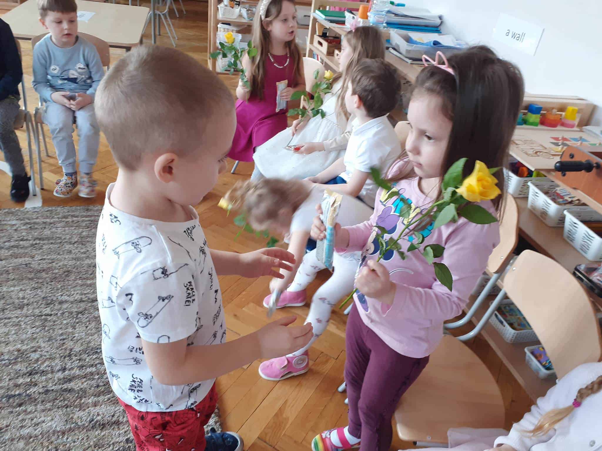 8 marca to wyjątkowy dzień w roku, gdyż swoje święto obchodzą wszystkie kobiety, zarówno te duże, jak i te małe. Dzień ten był dla nas doskonałą okazją do rozmów na temat roli i znaczenia kobiet w naszym życiu. Rozmawialiśmy o tym jak ważna jest mama, babcia i ciocia, poznaliśmy również zawody jakie wykonują kobiety, a później było już tylko świątecznie 🙂 Nasi chłopcy fantastycznie przygotowali się do obchodów tego święta. Nie obyło się bez pięknych życzeń, kolorowych tulipanów i przepysznych słodkości 🙂