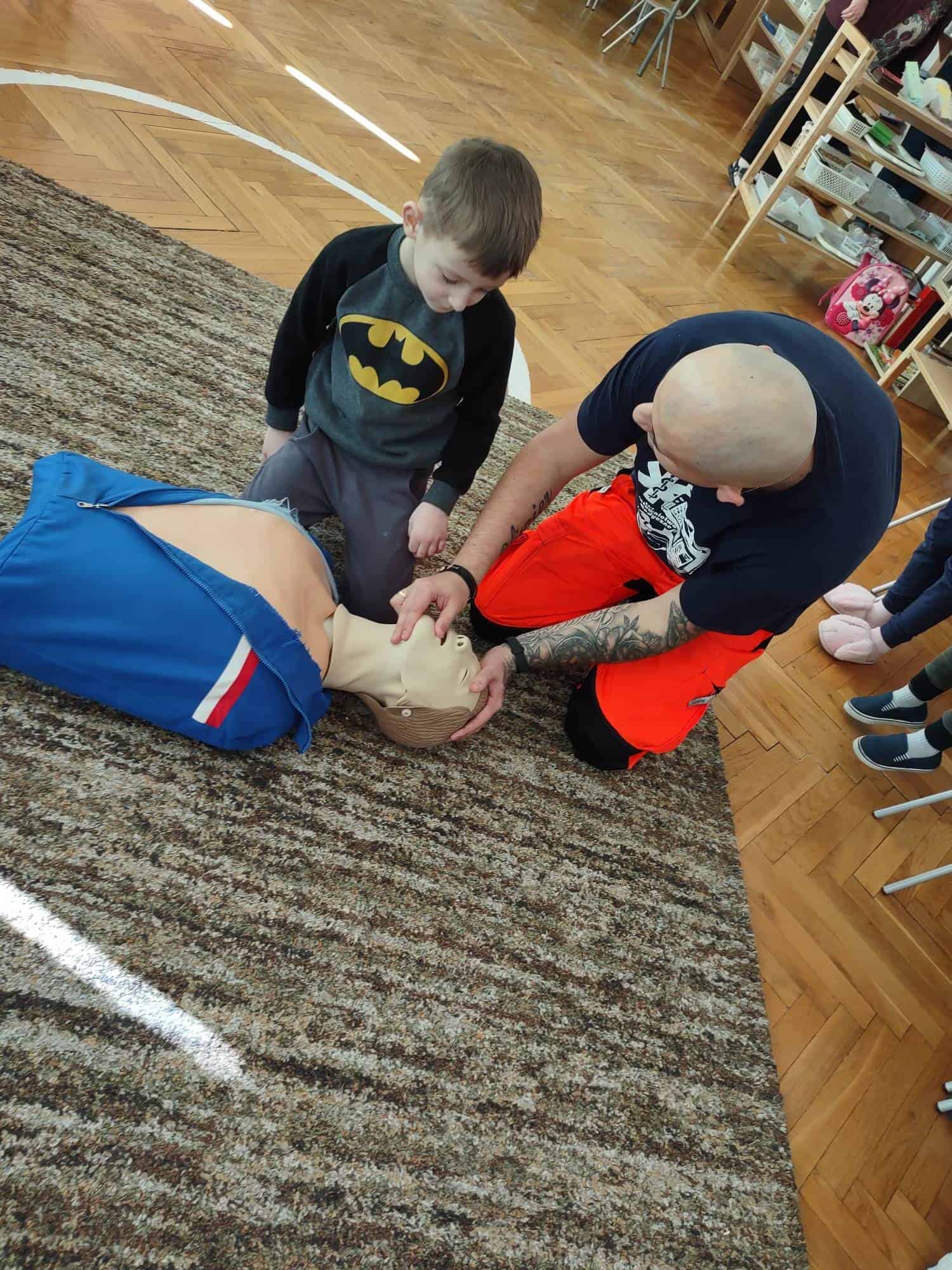 Bardzo dziękujemy Panu Jackowi i Panu Patrykowi za przybycie, za tak fantastycznie i twórczo przeprowadzone warsztaty. Dziękujemy również Pani Kasi, mamusi naszego Adrianka, za zaaranżowanie tego spotkania 🙂 Mamy nadzieję, że spotkanie to pomogło zaszczepić wśród dzieci ideę konieczności pomocy osobom potrzebującym, i że nasze przedszkolaki nigdy nie przejdą obojętnie obok człowieka potrzebującego ratunku i będą wiedziały jak mogą pomóc. Dzięki takiej lekcji dzieci nauczyły się wielu ważnych rzeczy, które w przyszłości, być może, przyczynią się do uratowania komuś życia!