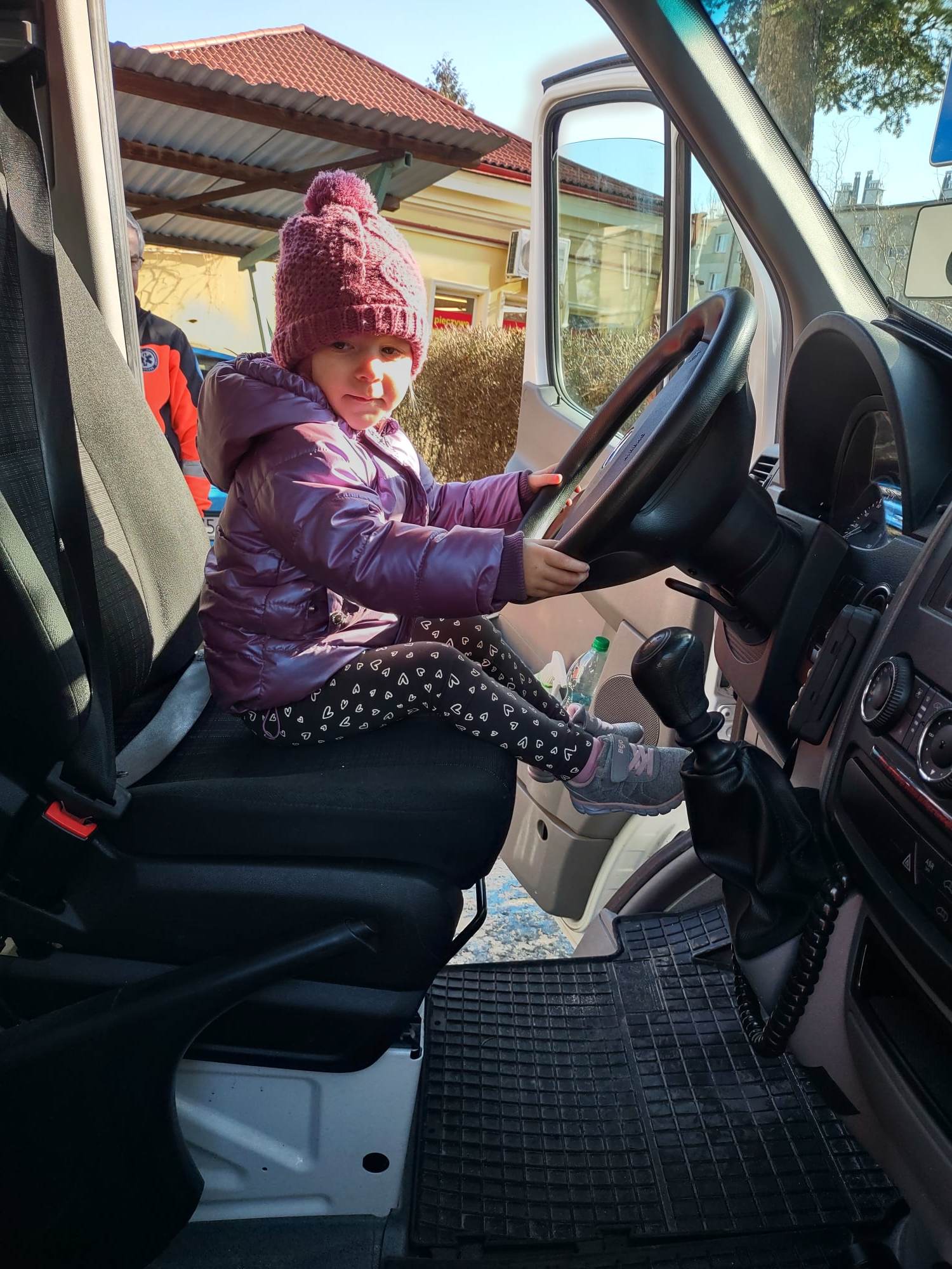 Ogromną niespodzianką i dużą radością dla dzieci okazała się możliwość obejrzenia wnętrza karetki pogotowia ratunkowego. Przedszkolaki mogły usiąść za kierownicą, wejść do środka i zobaczyć jej wyposażenie. Cóż to było za przeżycie!!