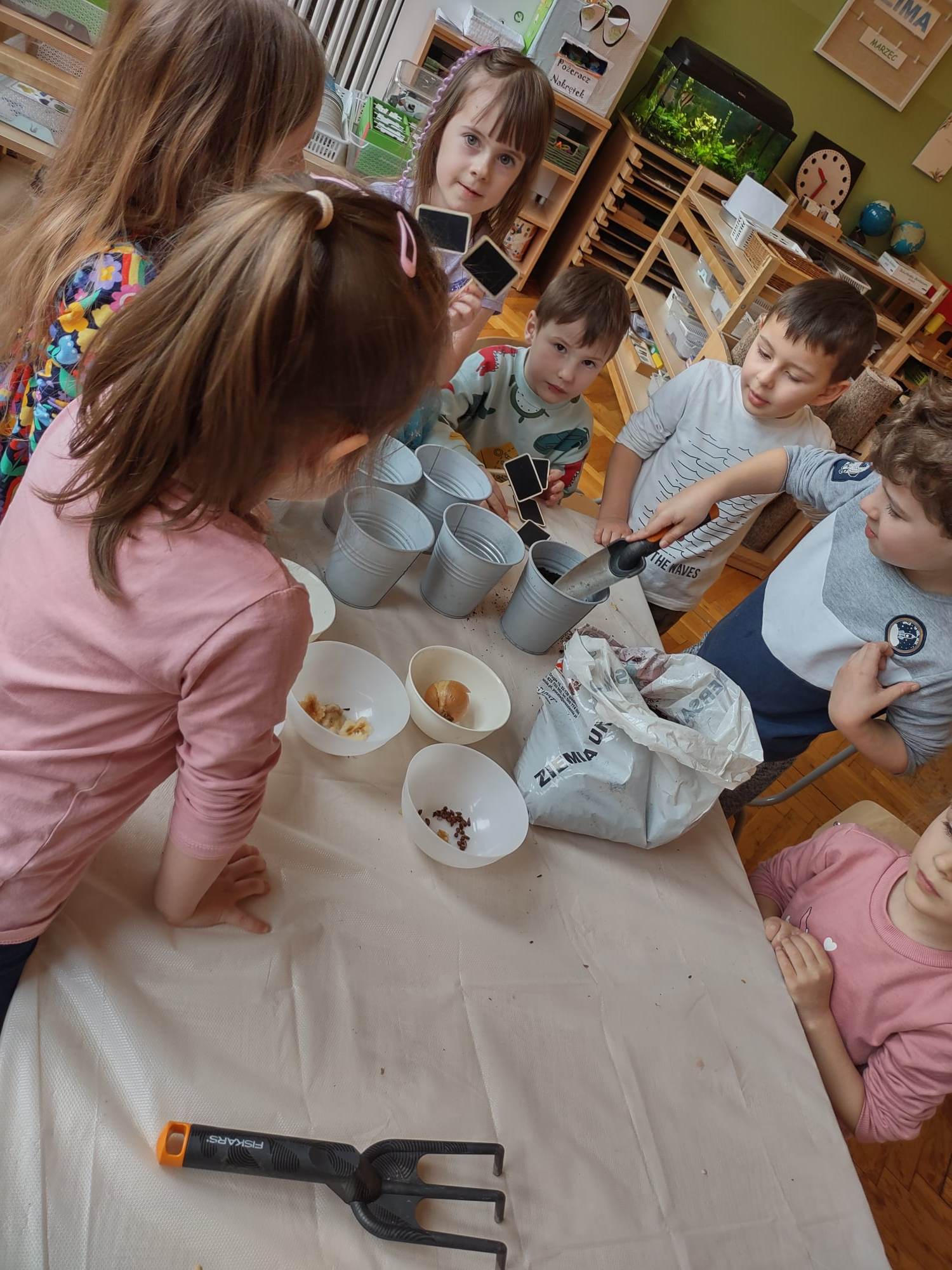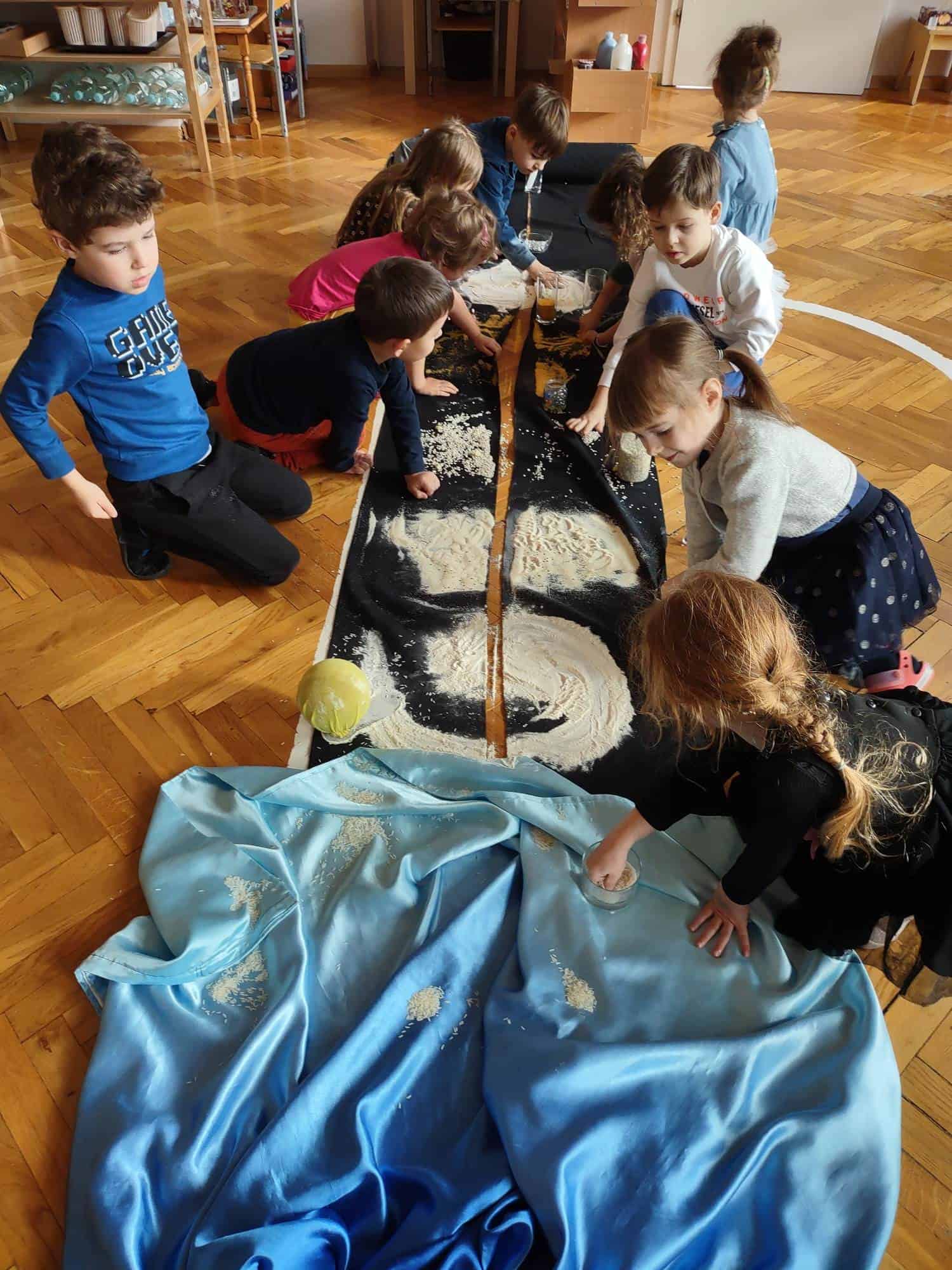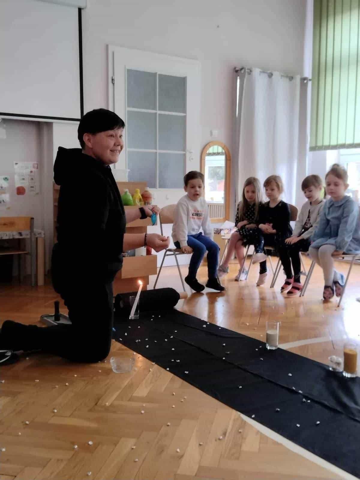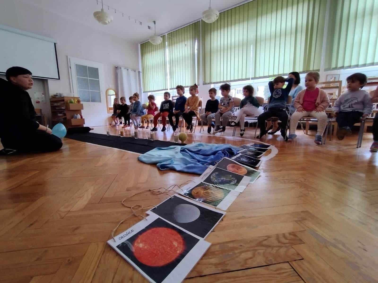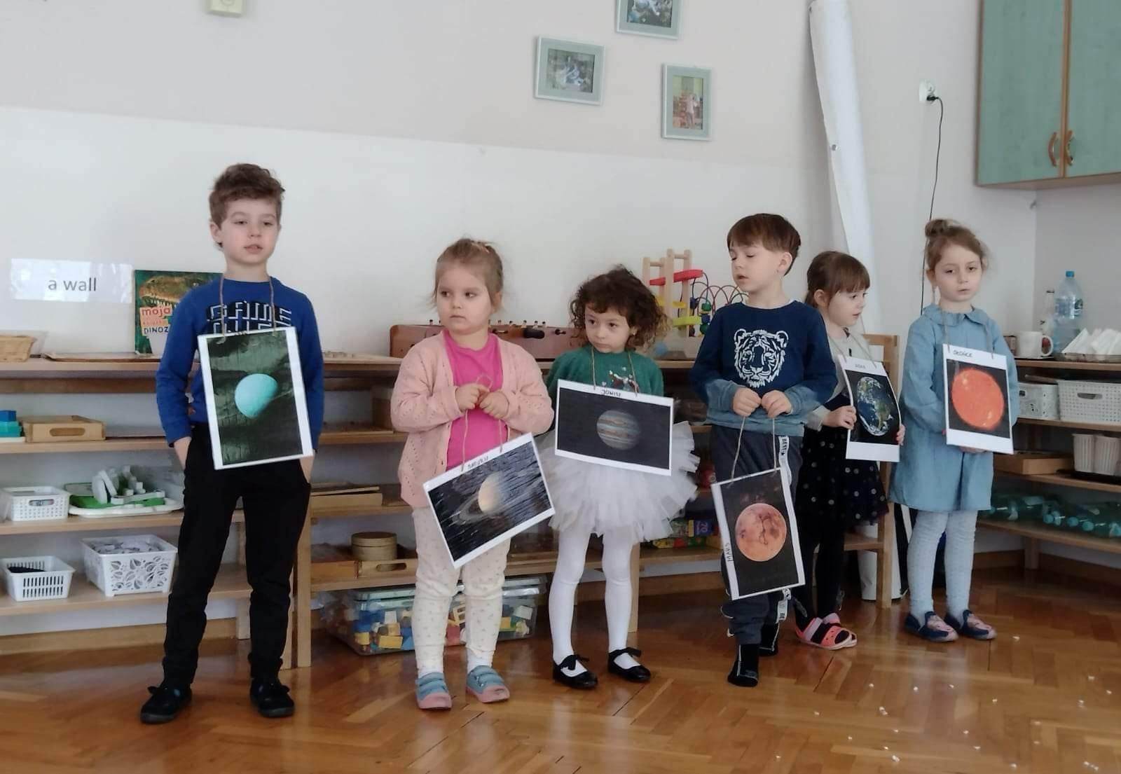 Pedagogika Marii Montessori zachęcała do tego, żeby patrzeć szeroko i pokazywać dzieciom całość świata w przeróżnych odsłonach. Z pewnością bardzo pomocne są w tym nasze montessoriańskie Wielkie Lekcje. Pierwsza z nich – Powstanie Wszechświata – odbyła się w naszej grupie w tym tygodniu. Od wielkiego wybuchu, powstania atomu, tworzeniu się galaktyk, gwiazd i planet, po powstanie kontynentów na naszej planecie. Pierwsza Wielka Lekcja jest chyba najbardziej widowiskowa – brokat, wybuchy i zimne ognie, świecące kamyczki i szklane kulki, to wszystko sprawia, że dzieci przeżywają ją w dużym skupieniu i ciszy. Wielkie Lekcje Montessori są lekcjami jedynie z nazwy. Tak naprawdę z klasyczną lekcją nie mają nic wspólnego. To swego rodzaju pokaz, zaproszenie do magicznego świata wiedzy. Wydarzenie to ma więcej ze spektaklu teatralnego albo pasjonującej opowieści, bowiem Wielkie Lekcje mają dzieci inspirować, zachęcić do poszukiwań, pytań, samodzielnej pracy i pomysłów na własne działania. Nauczyciel nie wyjaśnia nic szczegółowo, nie operuje zbyt trudnymi pojęciami. Jego zadaniem jest dać ogólny obraz. Dla dzieci jest to trochę jak opowieść ze świata fantazji, ale wszystko to, co mówi nauczyciel, jest prawdziwe. Wielka Lekcja nie służy temu, żeby dzieci zrozumiały wszystkie procesy fizyczne i chemiczne, ma ona przede wszystkim zachwycić i zachęcić do zadawania pytań.