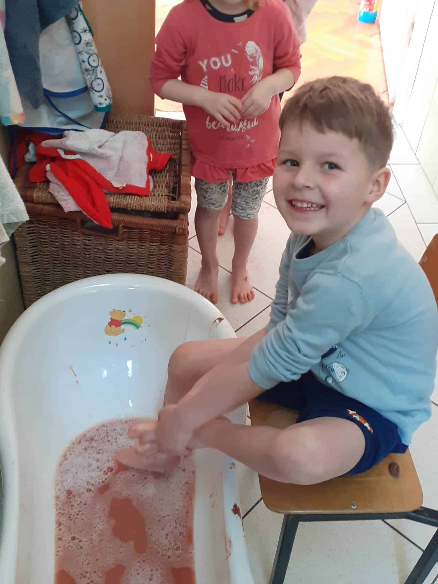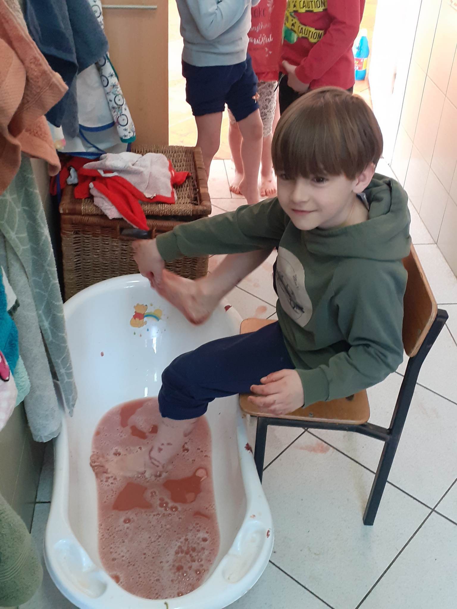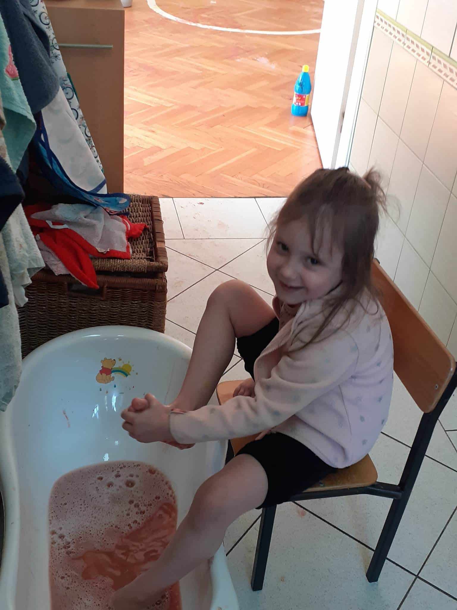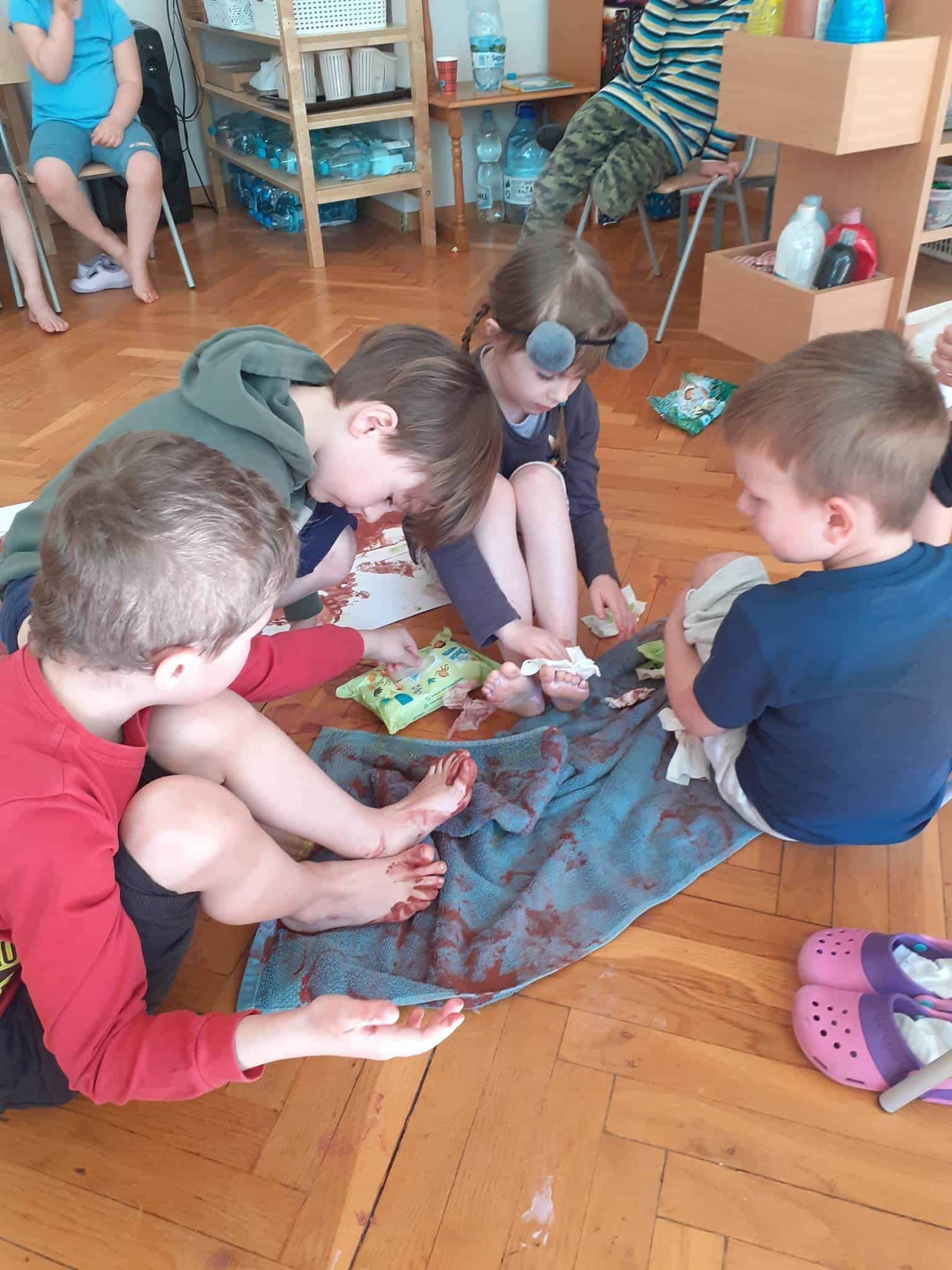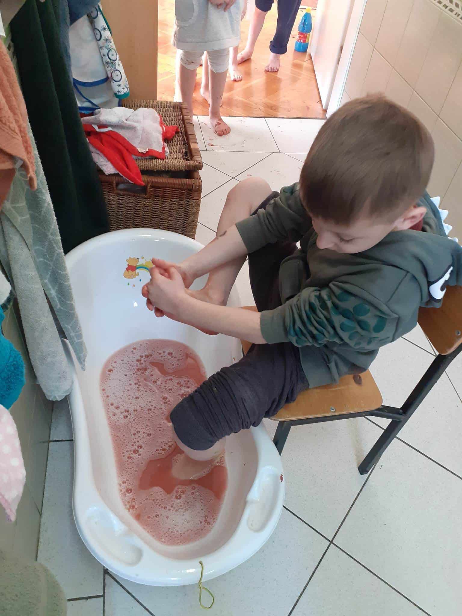 Malowanie stopami to przede wszystkim fantastyczna zabawa, pełna spontanicznych reakcji i zdobywania przez dzieci nowych doświadczeń, ale malowanie stopami, to również doskonałe ćwiczenie wspomagające integrację sensoryczną dziecka, w której główną metodą jest posługiwanie się ruchem. Realizacja tego typu zajęć pozwala na przeprowadzenie doskonałej zabawy plastycznej, na stymulację dotyku oraz kształtowanie się orientacji przestrzennej. Zatem przyjemne z pożytecznym 🙂