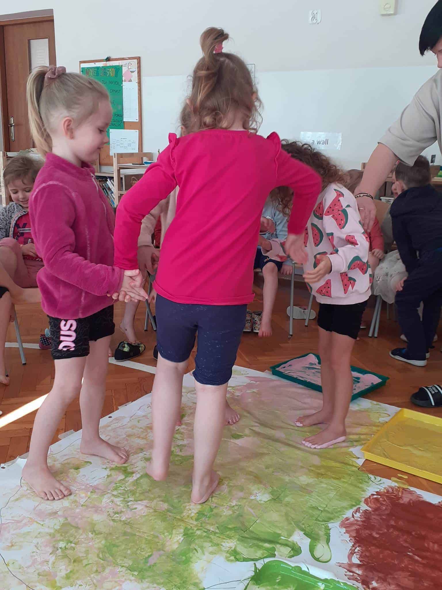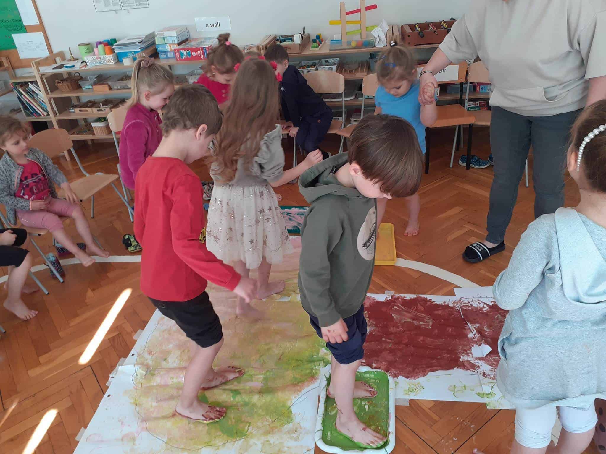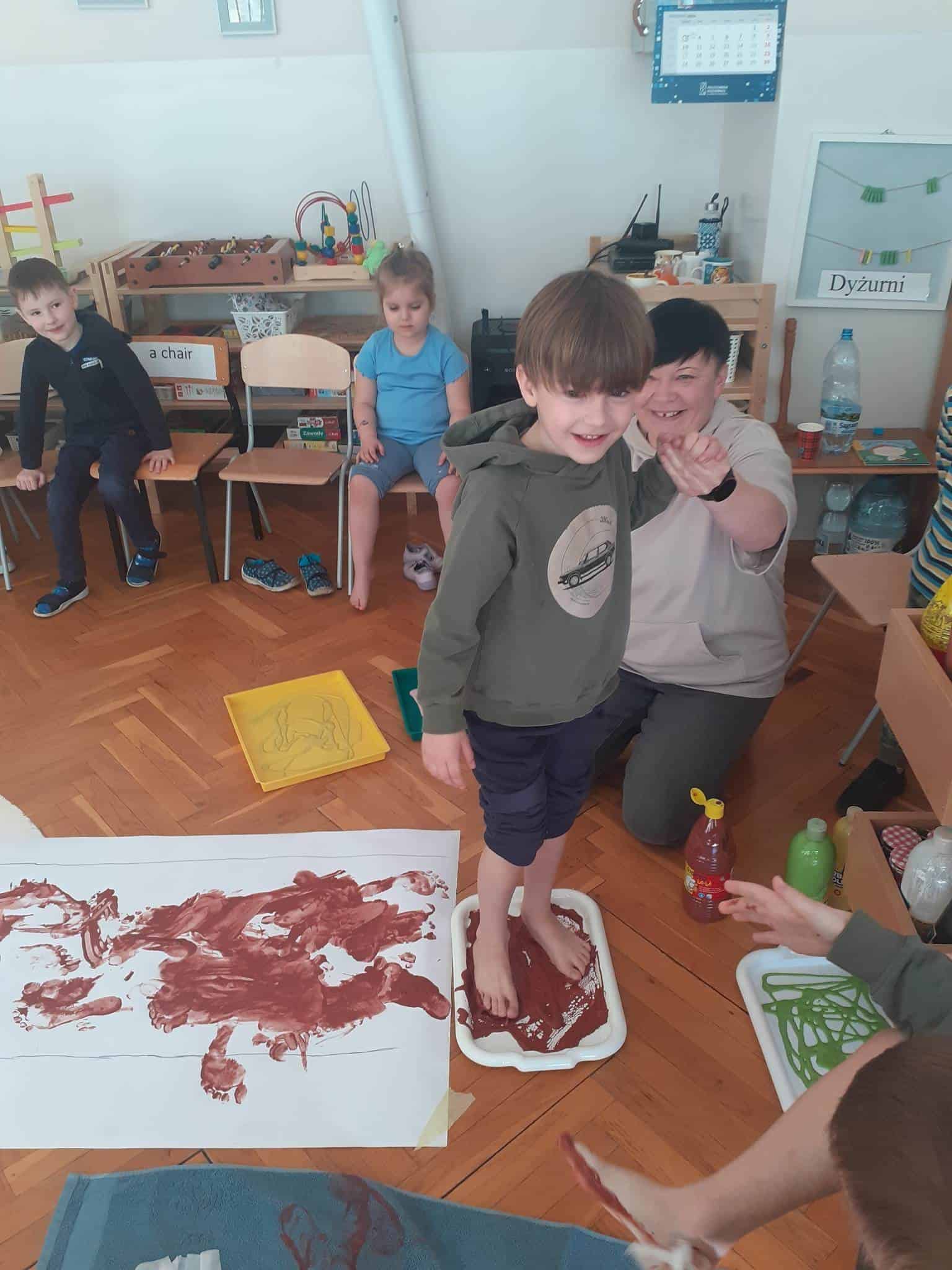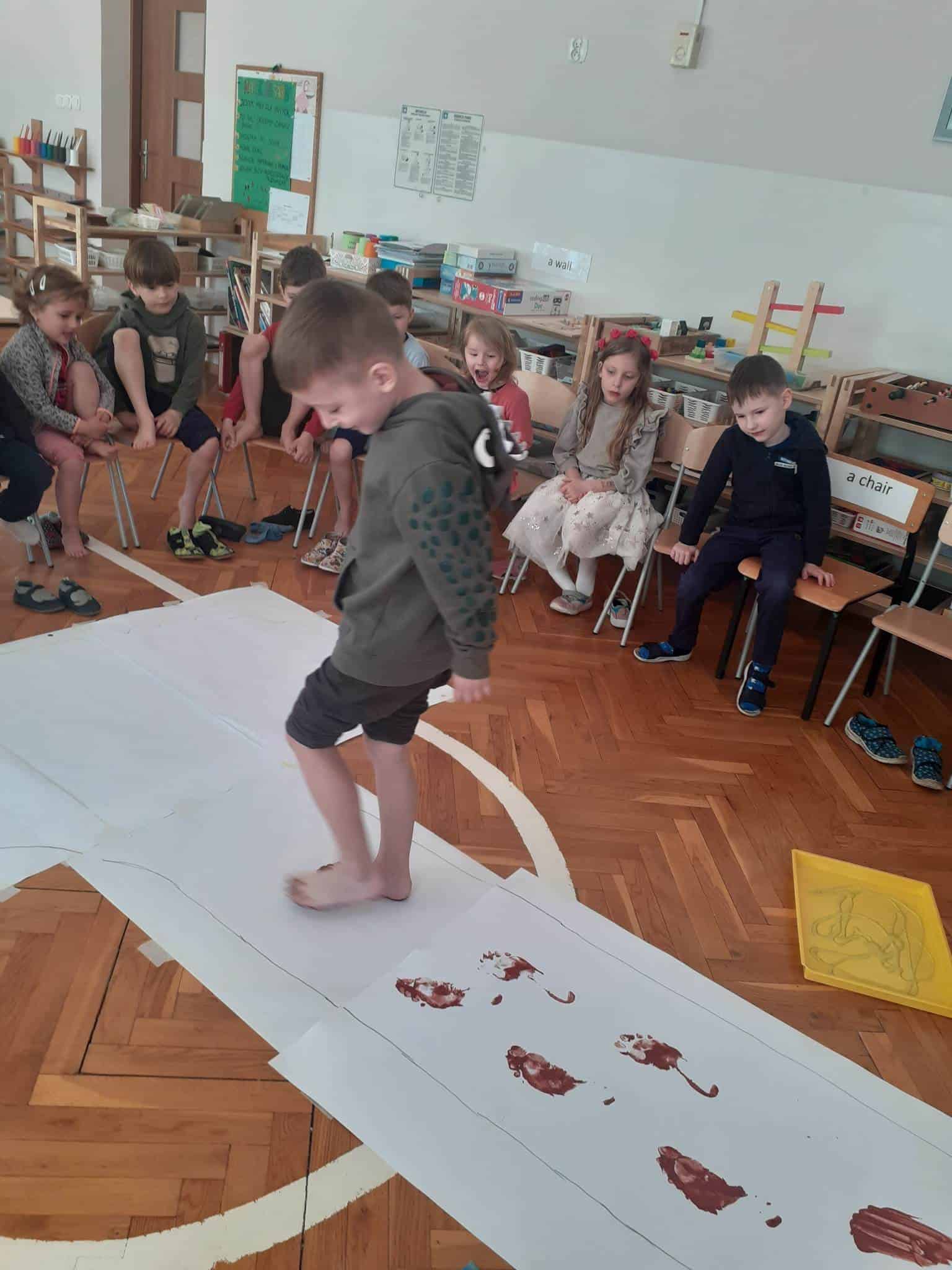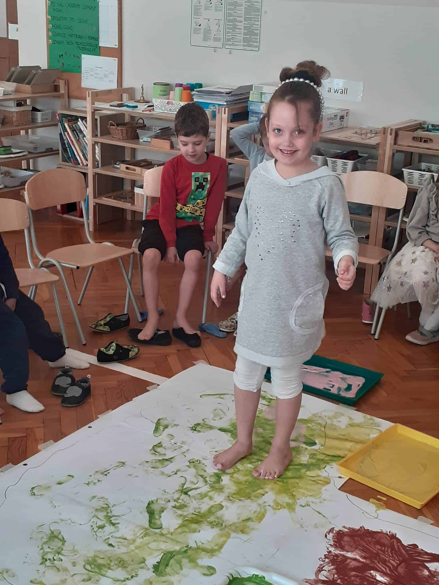 Podczas naszych ostatnich zajęć plastycznych wspólnie wykonaliśmy „Wiosenne drzewo”. Do tworzenia tej pracy pobudziliśmy receptory stóp 🙂 nieco inaczej niż zwykle, dlatego była to bardzo radosna i kreatywna twórczość 🙂