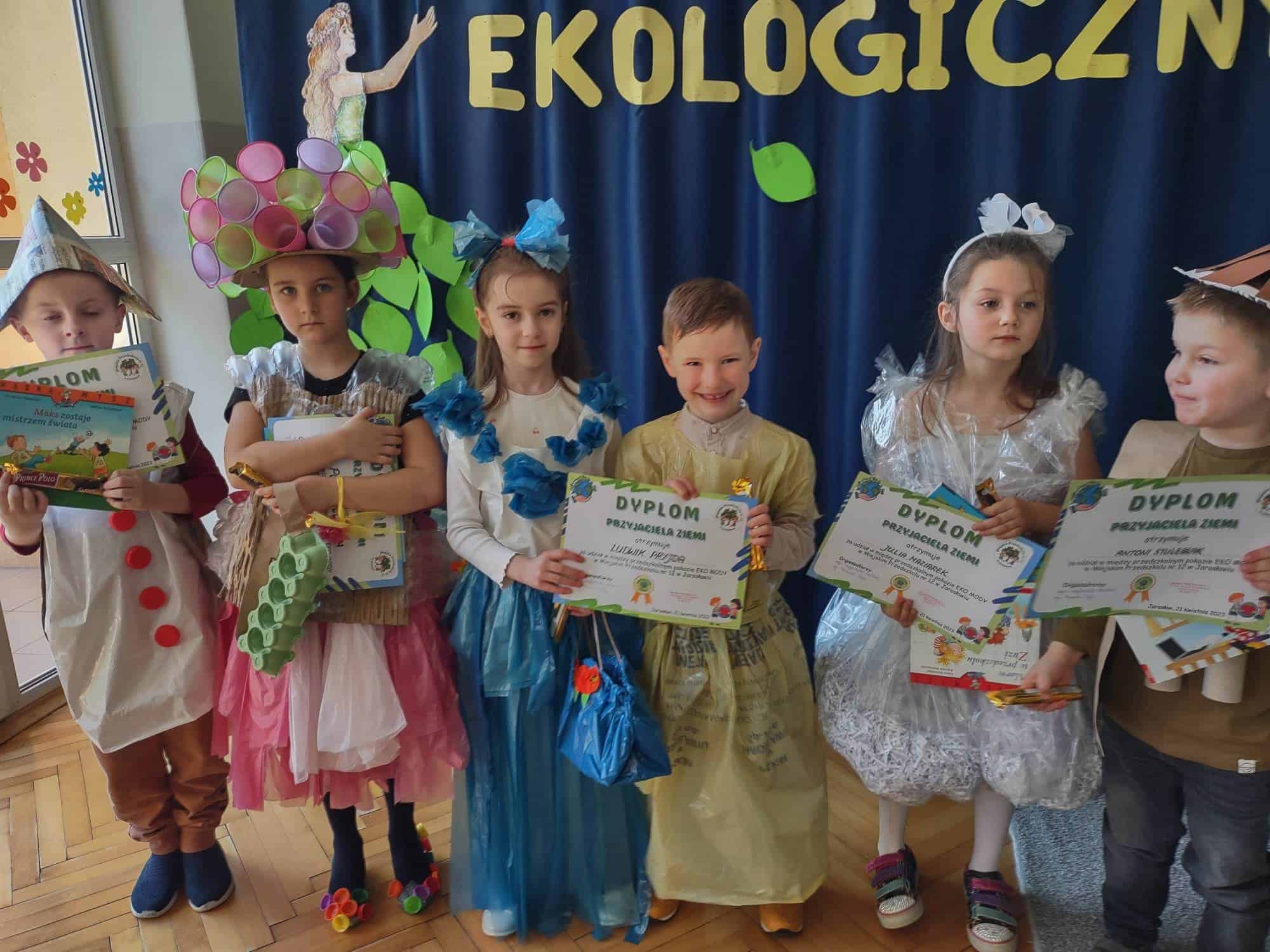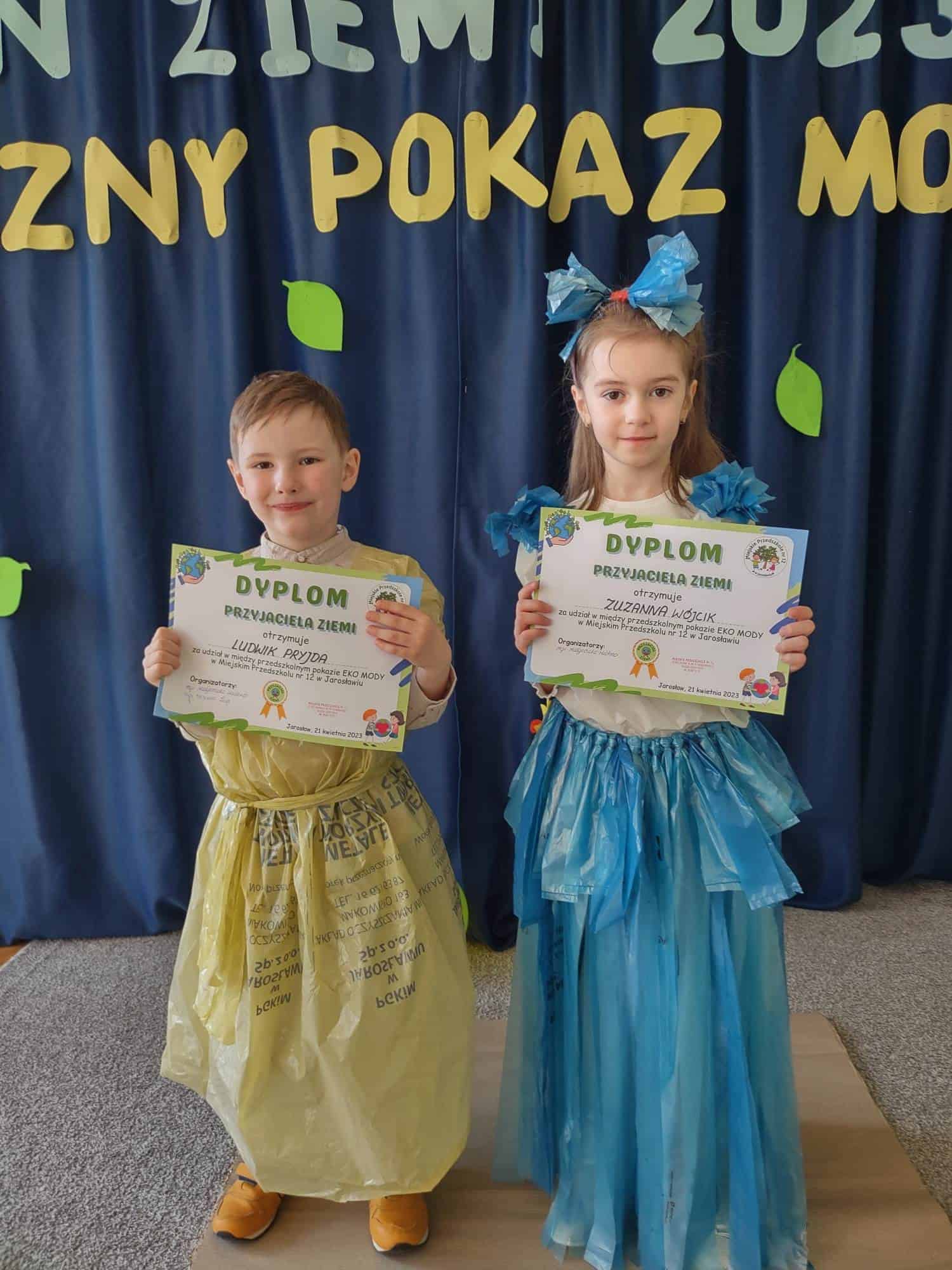Z okazji Dnia Ziemi, Miejskie Przedszkole nr 12, zorganizowało międzyprzedszkolny pokaz mody ekologicznej. Nie zabrakło w nim także przedstawicieli z naszego przedszkola, Zuzi z Grupy Czerwonej i Ludwiczka z Grupy Zielonej, którzy fantastycznie prezentowali się w swoich strojach 🙂 Za prezentację stroju i udział w pokazie dzieci zostały nagrodzone dyplomem, książeczką oraz słodkim upominkiem.