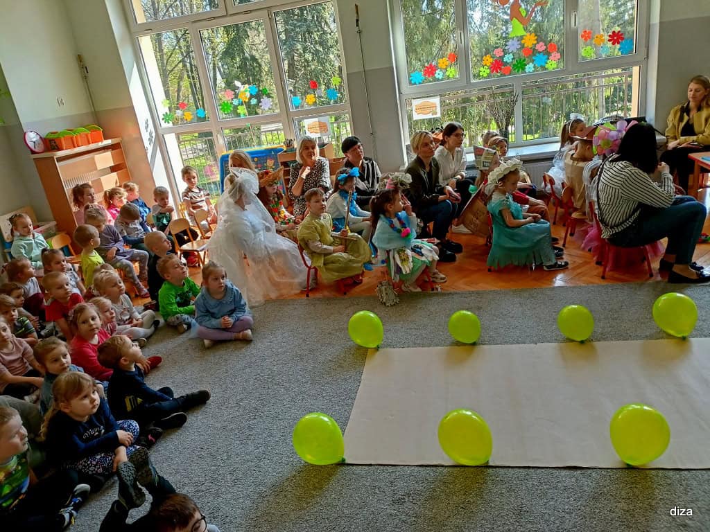W środę 5 kwietnia w naszym przedszkolu zrobiło się bardzo świątecznie. W tym dniu całe przedszkole uczestniczyło w świątecznym Poranku Wielkanocnym przygotowanym przez dzieci i panie z grupy Żółtej. Dzieci uczestniczyły w uroczystej godzince, poznały tradycje wielkanocne, a inscenizacja w wykonaniu dzieci obrazująca zaproszenie i zebranie się rodziny przy udekorowanym świątecznym stole przykrytym białym obrusem pozwoliła jeszcze głębiej przeżyć czas oczekiwania. W ten sposób przeżywaliśmy przedświąteczny czas w radosnej atmosferze, dzieląc się jajkiem i składając sobie wzajemnie świąteczne życzenia.