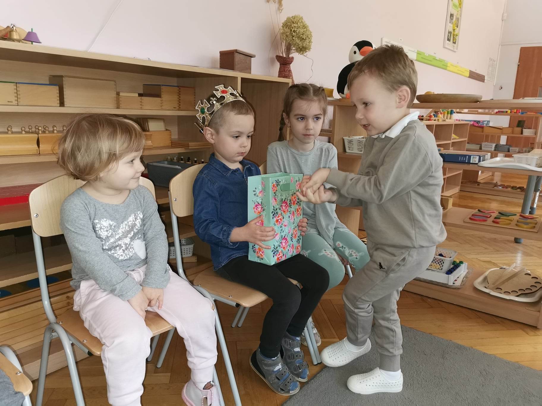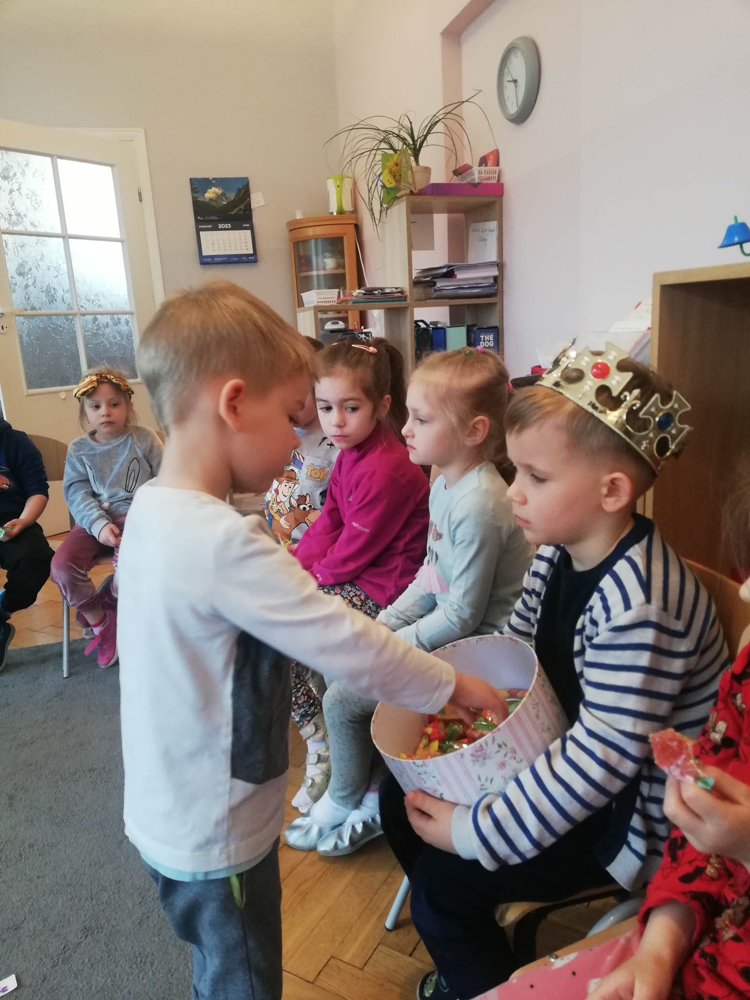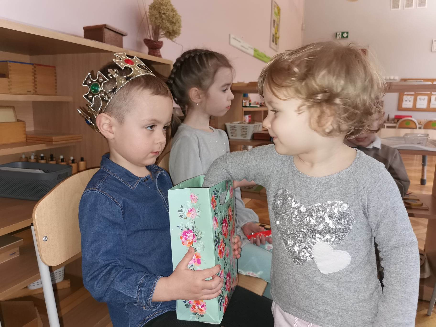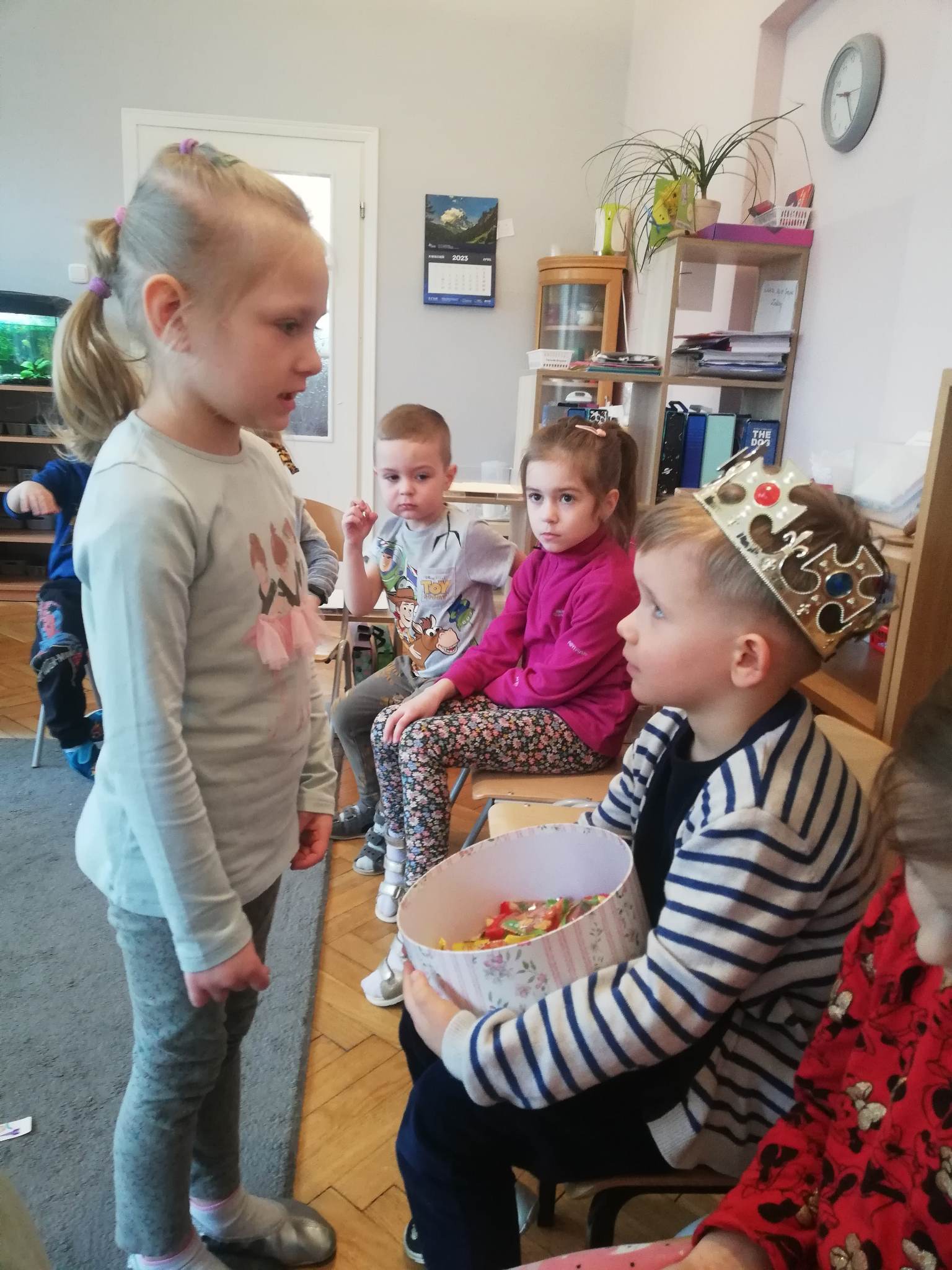 Urodziny świętowaliśmy zgodnie z montessoriańskim zwyczajem, śpiewaliśmy Sto lat, składaliśmy piękne życzenia, a także częstowaliśmy się słodyczami.