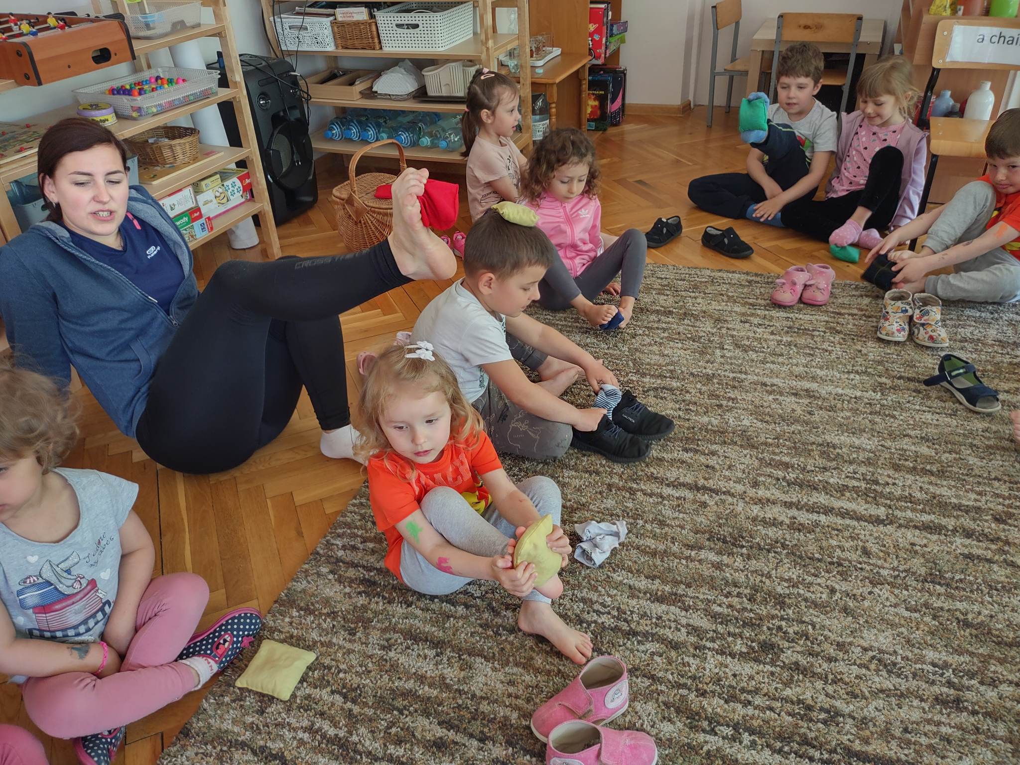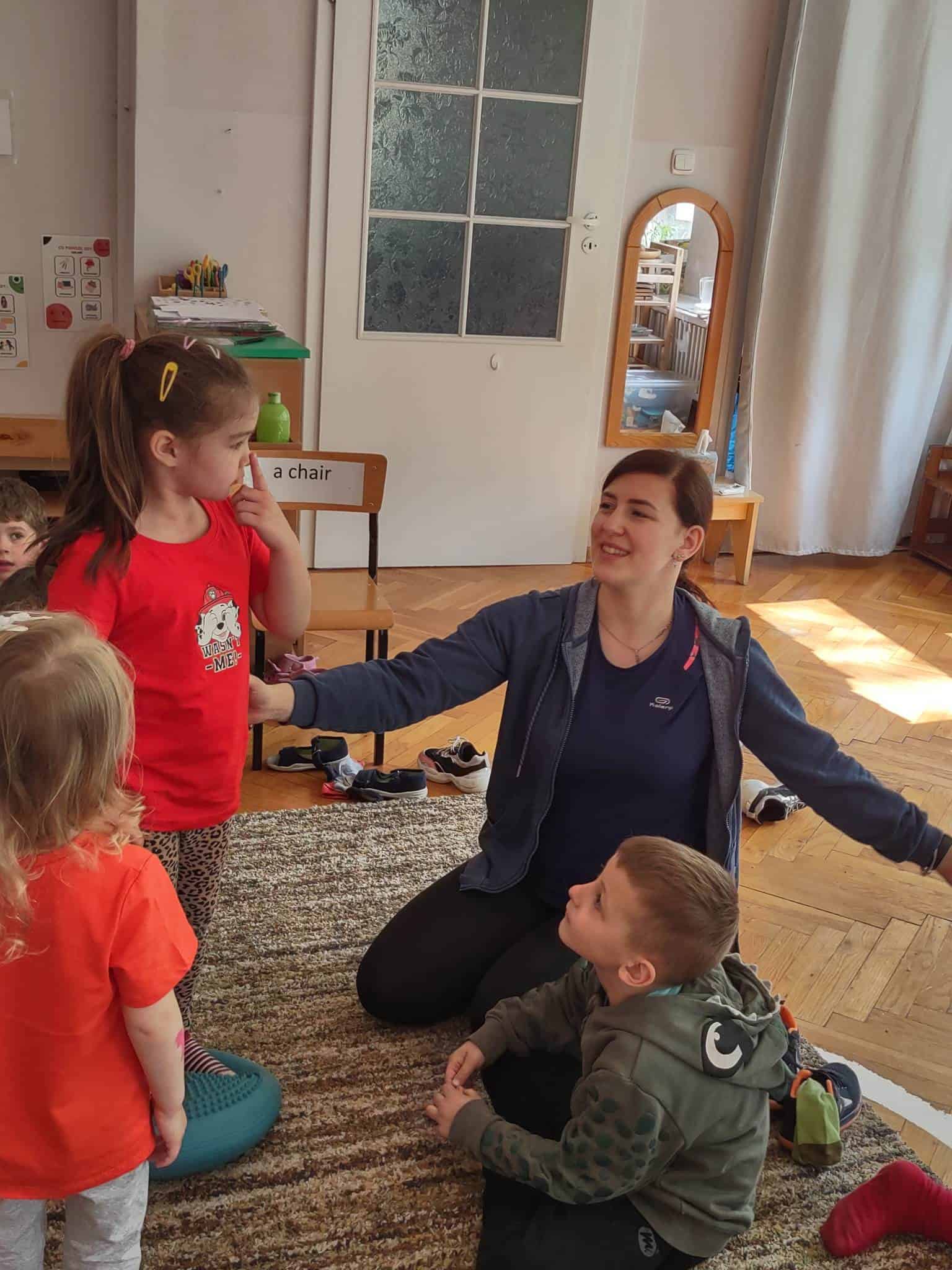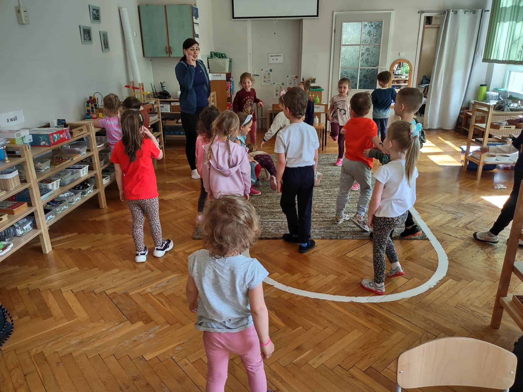 Zajęcia były bardzo ciekawe i pochłonęły dzieci w zupełności 🙂 Pani Gabrysia w krótkim czasie nawiązała świetny kontakt z grupą, która współpracowała i ochoczo brała udział w ćwiczeniach 🙂