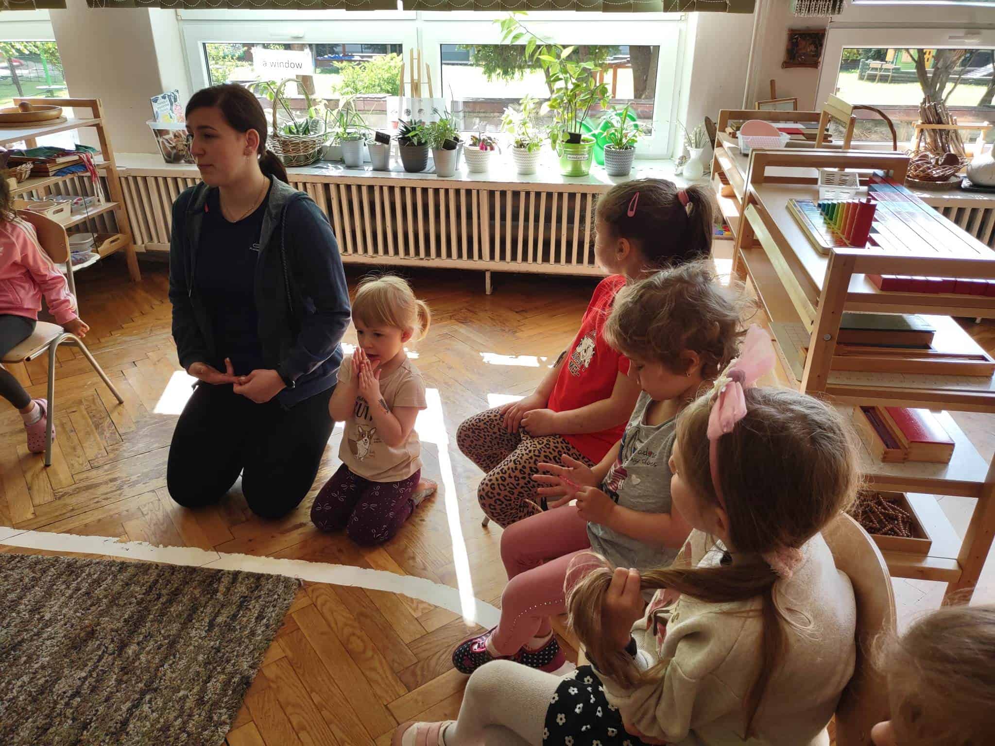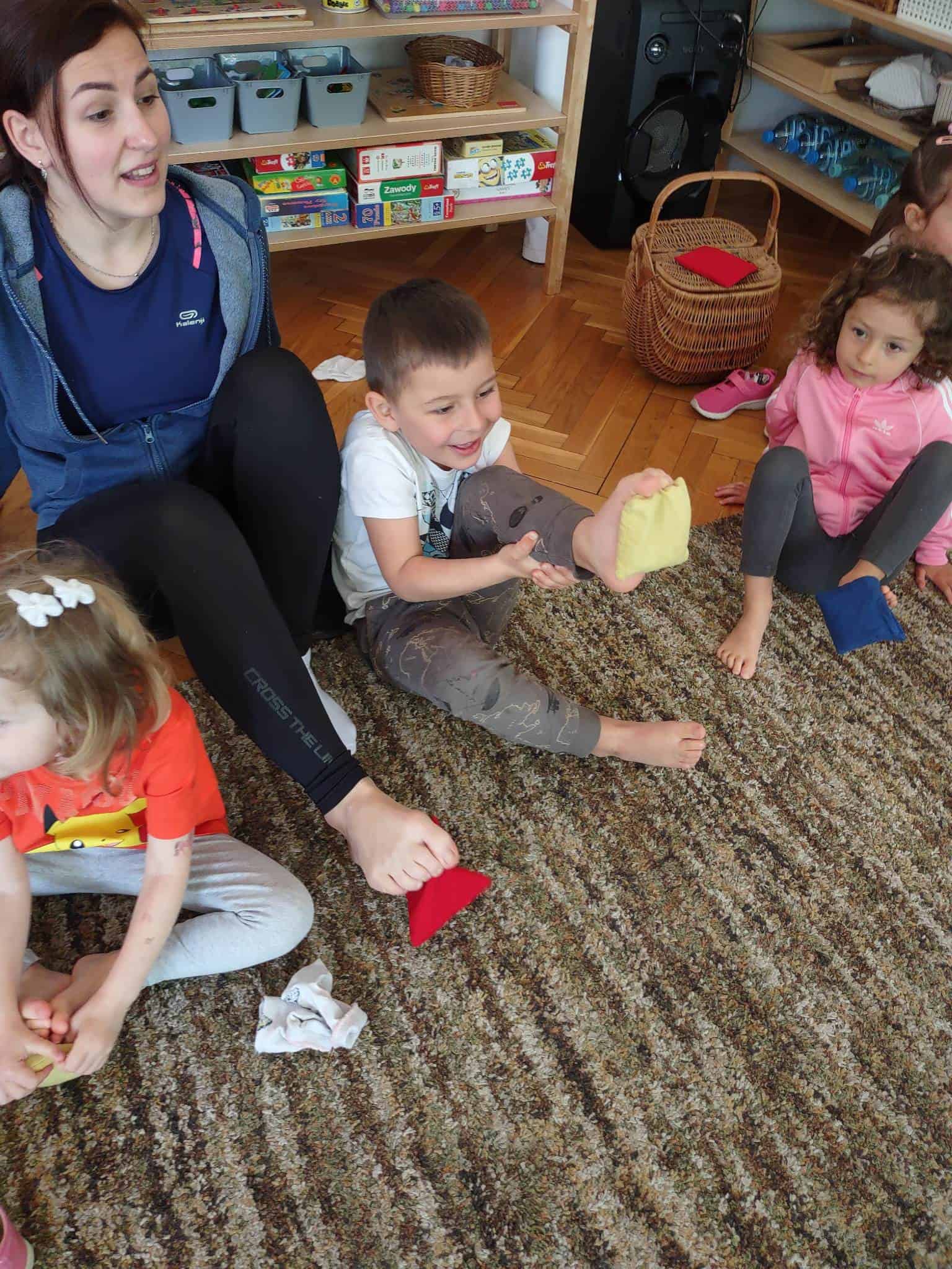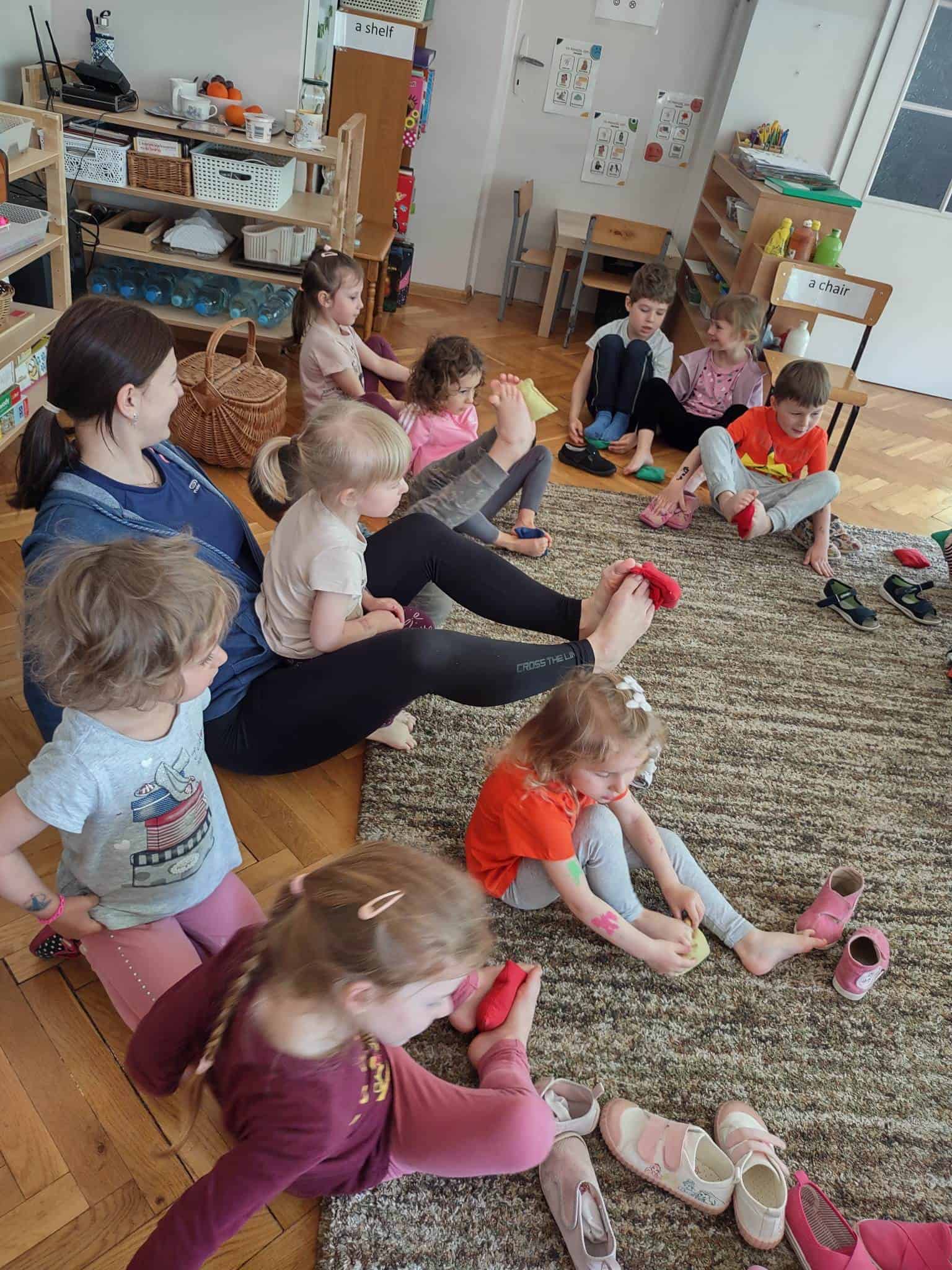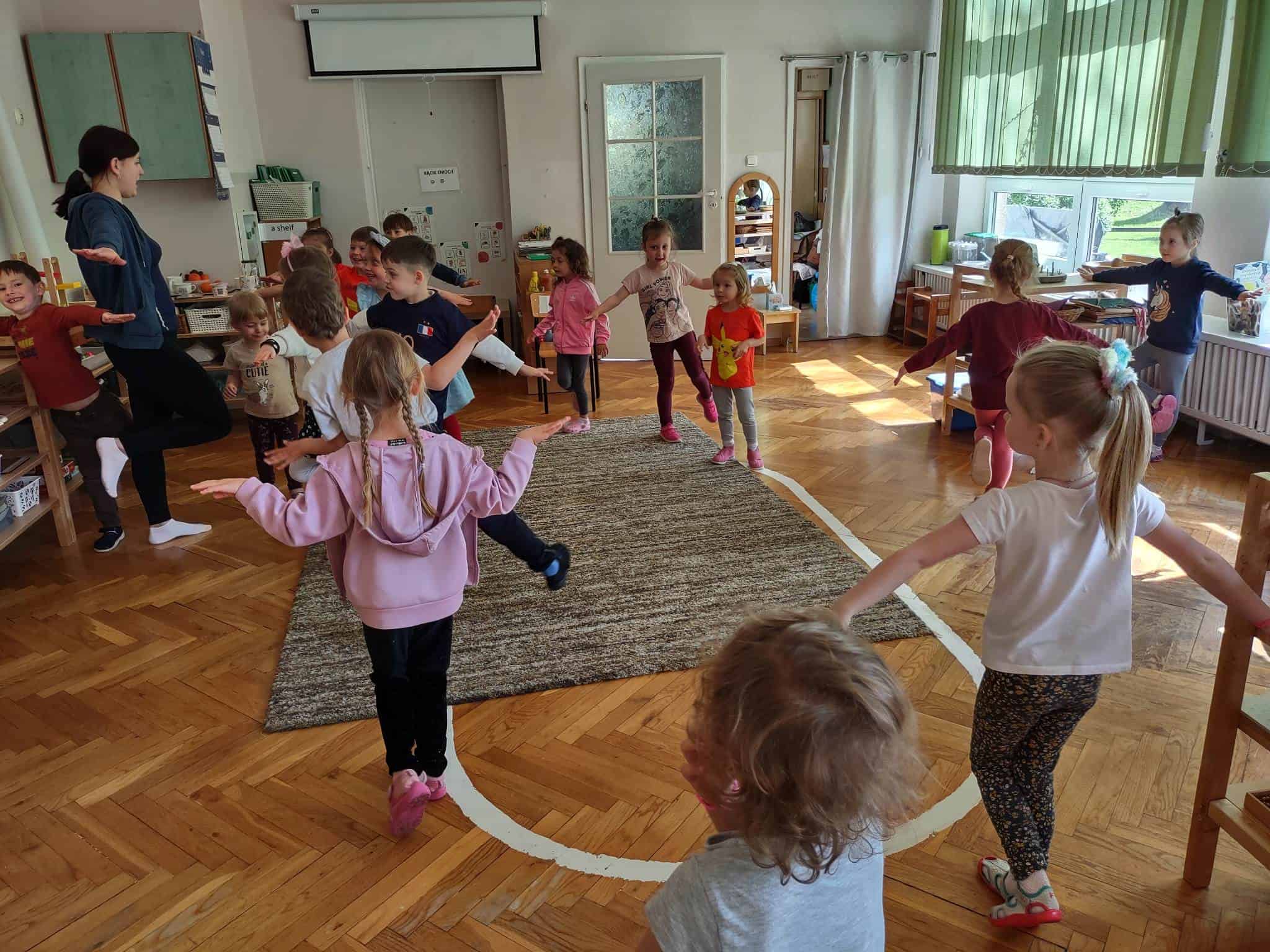 Zajęcia były bardzo ciekawe i pochłonęły dzieci w zupełności 🙂 Pani Gabrysia w krótkim czasie nawiązała świetny kontakt z grupą, która współpracowała i ochoczo brała udział w ćwiczeniach 🙂