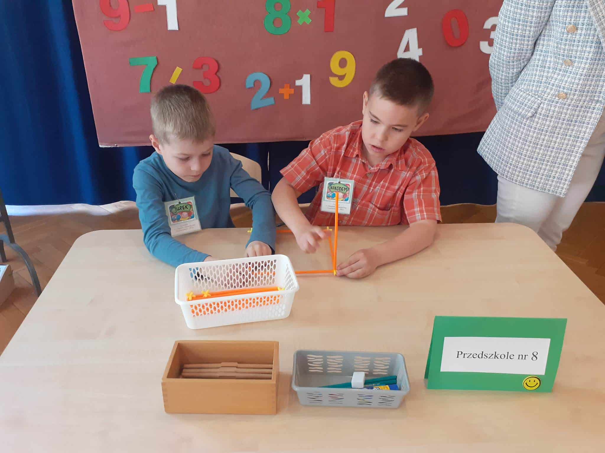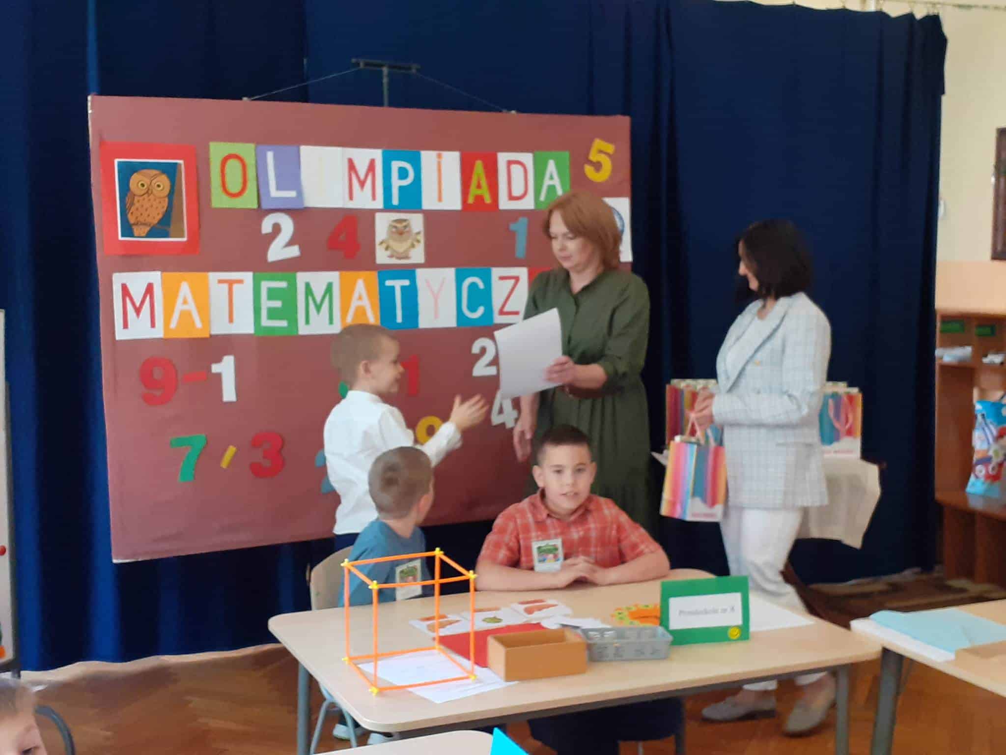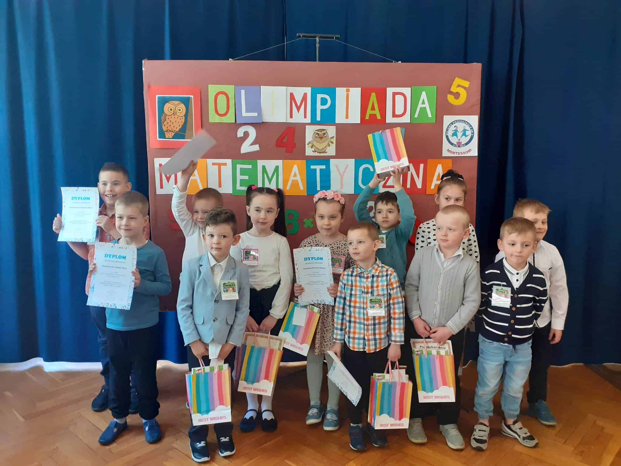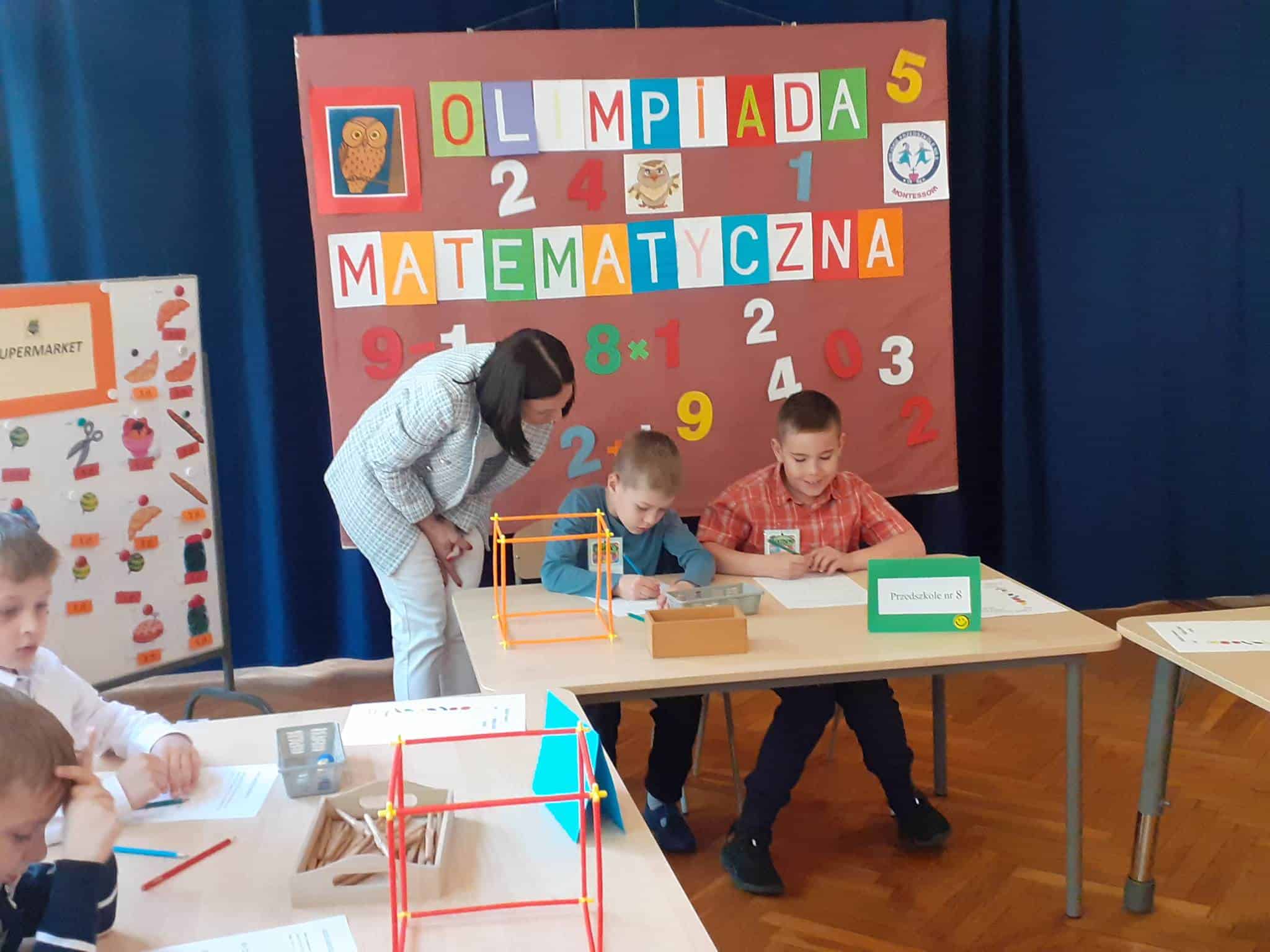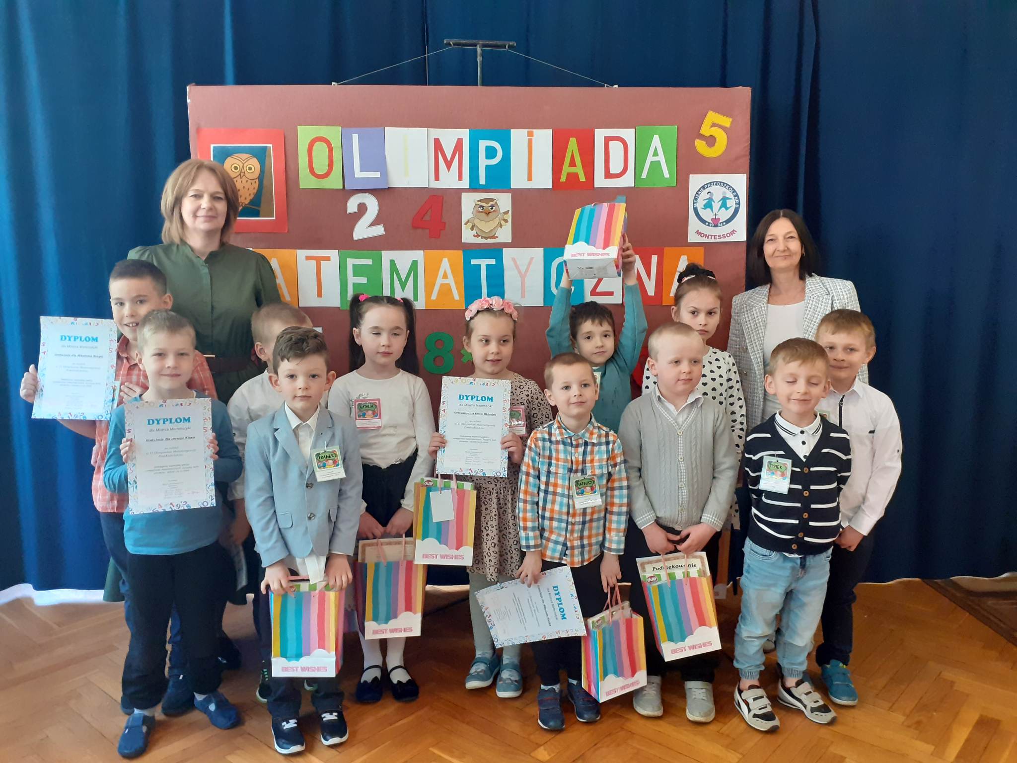Kształcenie pojęć matematycznych w wielu przedszkolnym powinno opierać się na różnorodnych zabawach i ćwiczeniach. Ważne jest aby pozytywne myślenie o matematyce kształtować już od najmłodszych lat, bowiem matematyka jest częścią naszej codzienności, jest wokół nas i ma zastosowanie w różnych dziedzinach życia. Warto już przedszkolakom pokazywać, że jest to bardzo interesująca i przydatna dziedzina nauki. Mając to na uwadze w MP nr 8 Montessori w Jarosławiu zorganizowano Olimpiadę Matematyczną dla Przedszkolaków. Do rywalizacji stanęły dwuosobowe zespoły dzieci 5 i 6 letnich z jarosławskich przedszkoli nr 1,3,8,9,10 i 11. Było to wyjście naprzeciw potrzebom dzieci uzdolnionym matematycznie oraz zachęcanie do uczenia się matematyki poprzez zabawę. Zadania konkursowe zostały przygotowane nie tylko w oparciu o treści zawarte w podstawie programowej wychowania przedszkolnego i były to zadania o różnym stopniu trudności. Dzieci mogły wykazać się wiedzą i umiejętnościami matematycznymi – znajomością brył geometrycznych, umiejętnością liczenia, dodawania, odejmowania, segregowania , klasyfikowania, tworzenia zbiorów, odczytywania pełnych godzin na zegarze, a także posługiwania się nominałami polskich pieniędzy. Dzieci samodzielnie radziły sobie z rozwiązywaniem zadań, wykazały się umiejętnością pracy w zespole. Mocną stroną dzieci była również umiejętność prezentowania efektów swojej pracy. Udział w olimpiadzie był nowym doświadczeniem dla dzieci przedszkolnych. Olimpiada była również doskonałą okazją do kształcenia i hartowania odporności emocjonalnej dzieci, wyrabianiem gotowości do pokonywania trudności, a także okazją do wyzwalania radości z osiągniętych wyników (radości , satysfakcji , zadowolenia). Nasze Przedszkole reprezentowali Nikodem Motyka z Grupy Czerwonej i Jerzy Kluz z Grupy Pomarańczowej. Każdy z uczestników otrzymał Dyplom Mistrza Matematyki i atrakcyjną nagrodę. Serdecznie gratulujemy.