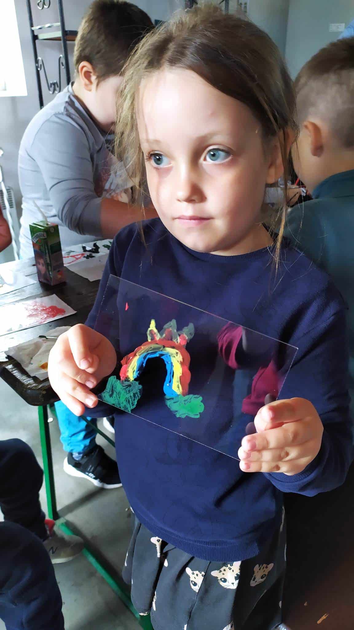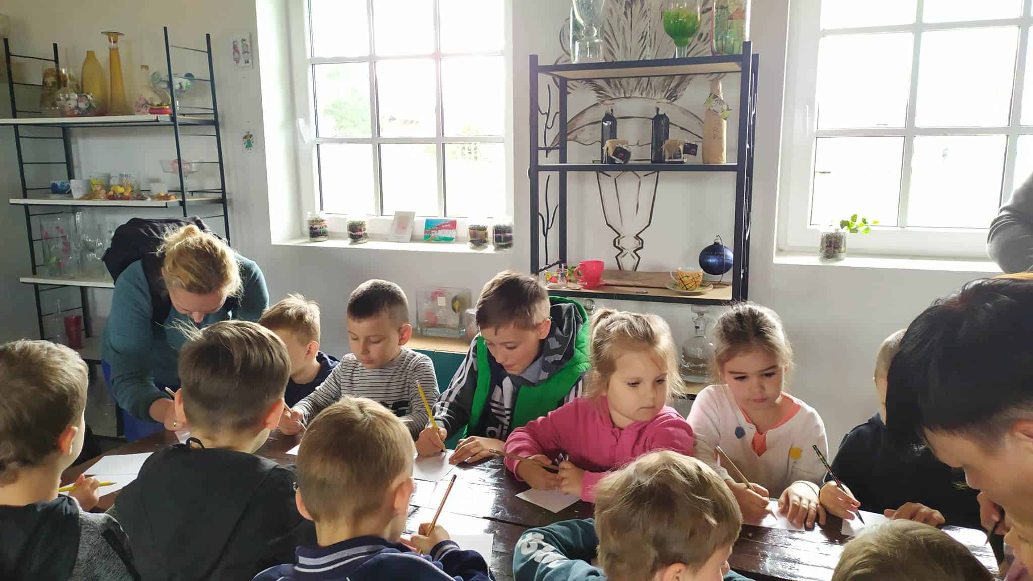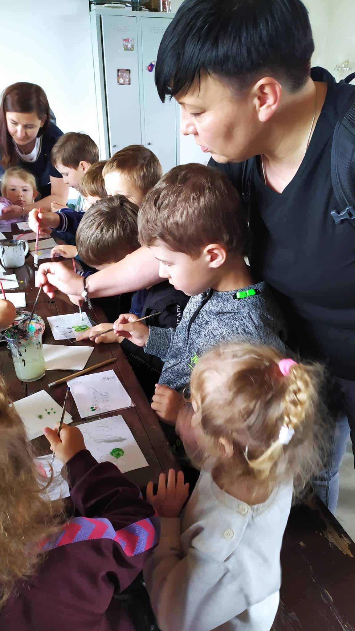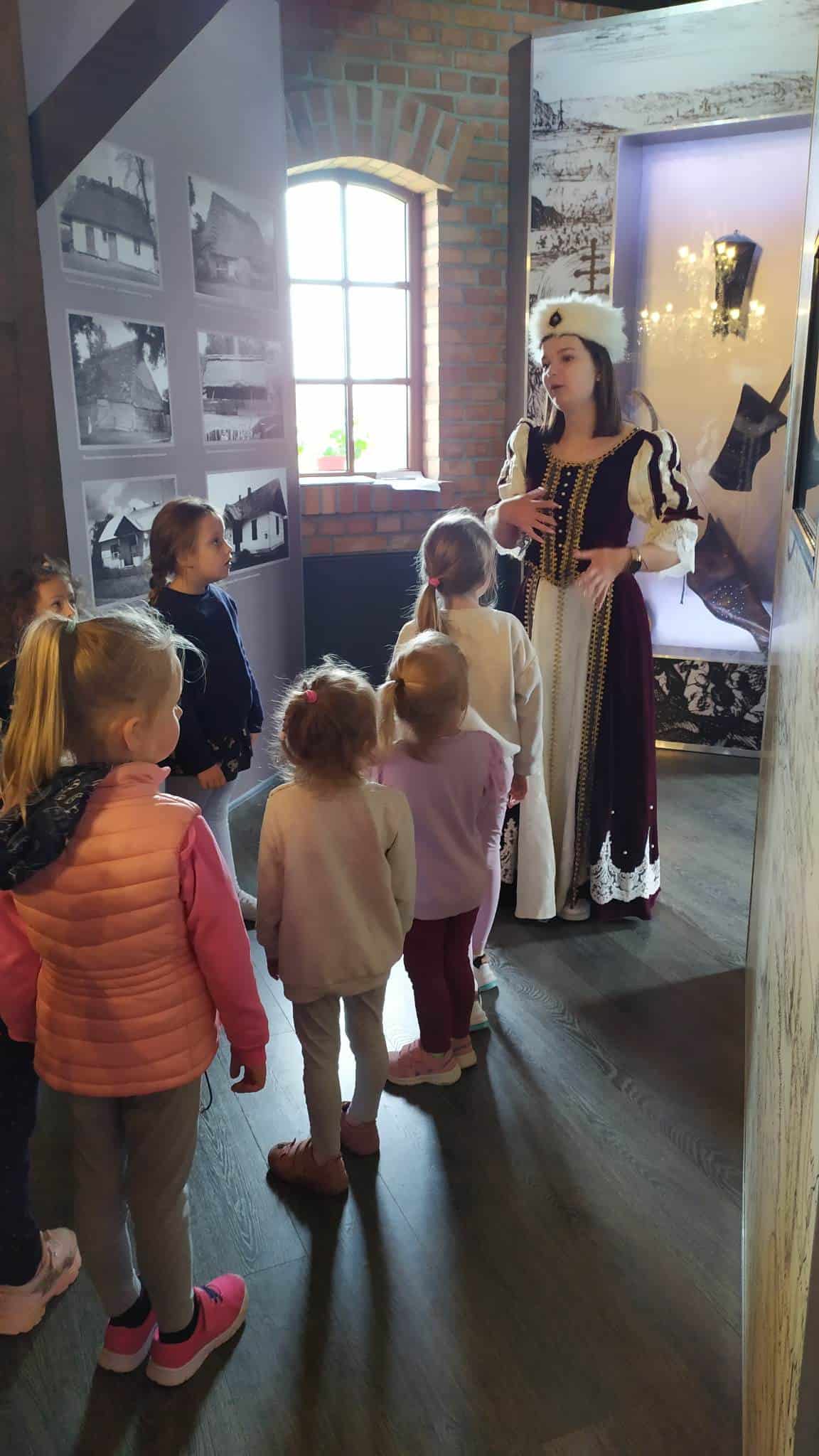 W tym roku szkolnym, Grupa Zielona na swoją końcoworoczną wycieczkę wybrała się do Baszni Dolnej, a dokładnie do wioski tematycznej zwanej Kresową Osadą. Mimo niesprzyjającej pogody dzieci ochoczo podejmowały się różnorodnych działań przygotowanych dla naszej grupy. Mieliśmy możliwość zapoznania się ze sztuką malowania na szkle, wzięliśmy także udział w „żywej lekcji historii”, gdzie za pomocą projekcji komputerowej każdy z uczestników mógł przymierzyć wybrany przez siebie strój – chociaż na krótką chwilę mogliśmy zamienić się w rycerza, giermka czy królewnę 🙂