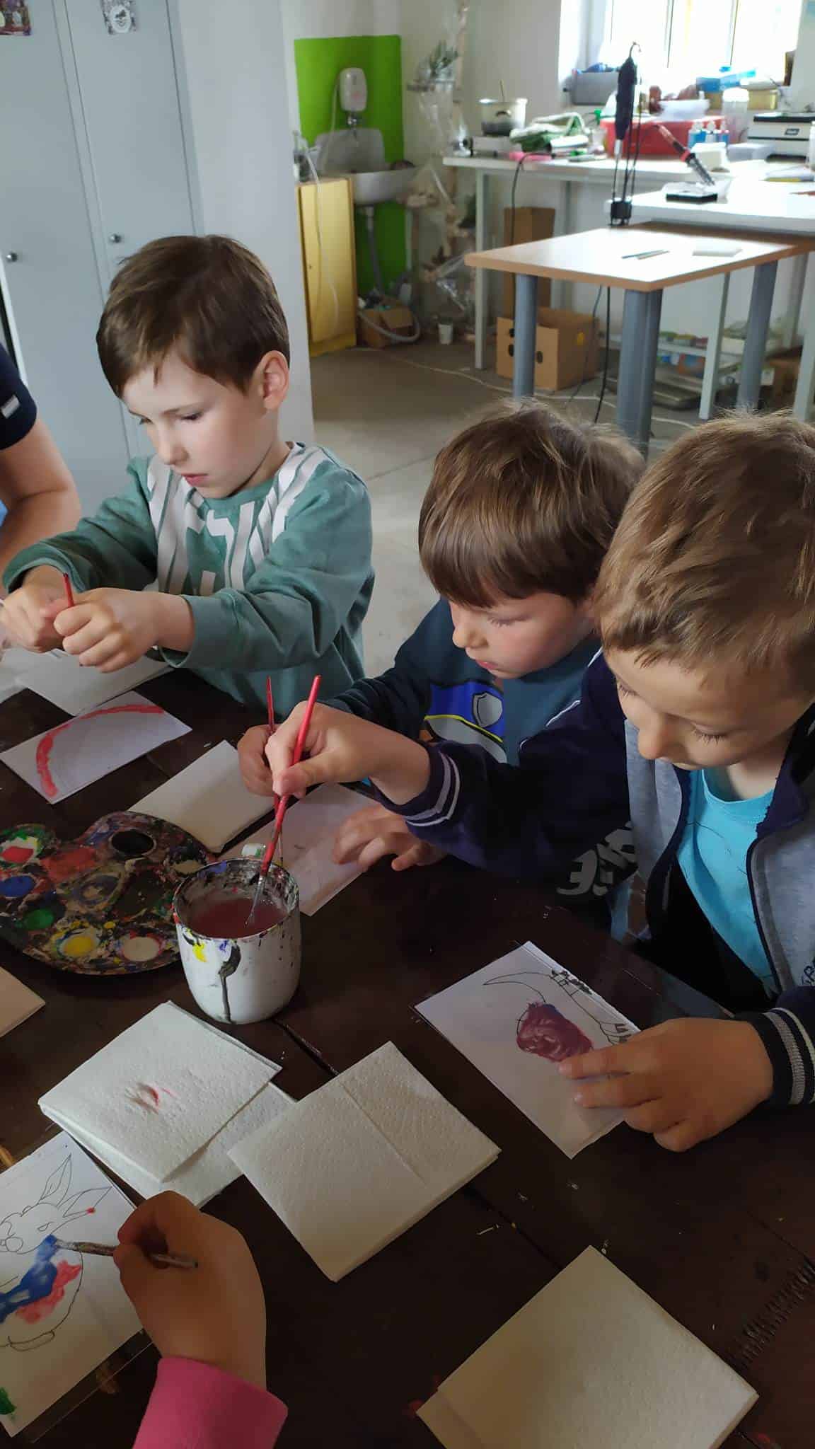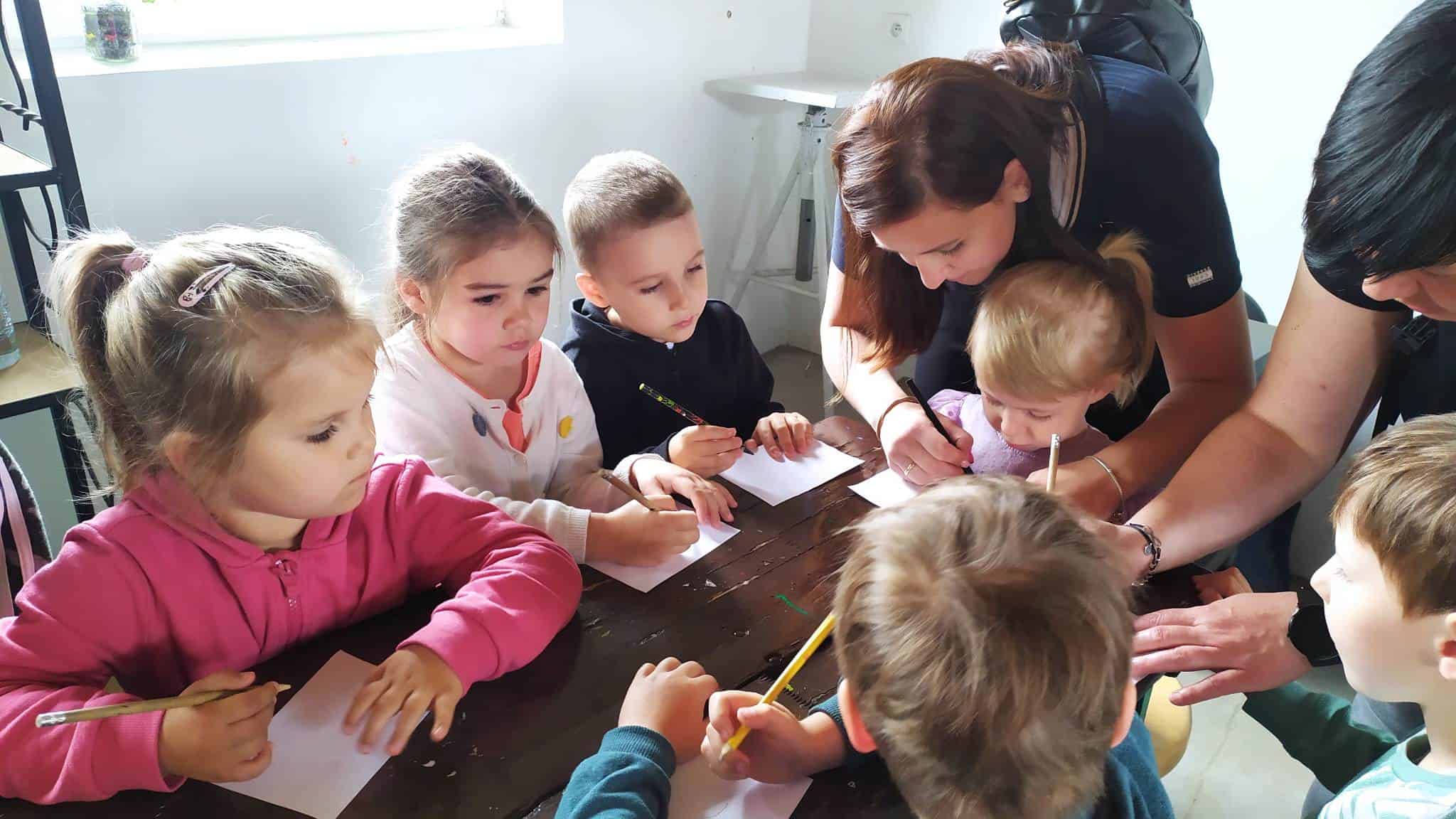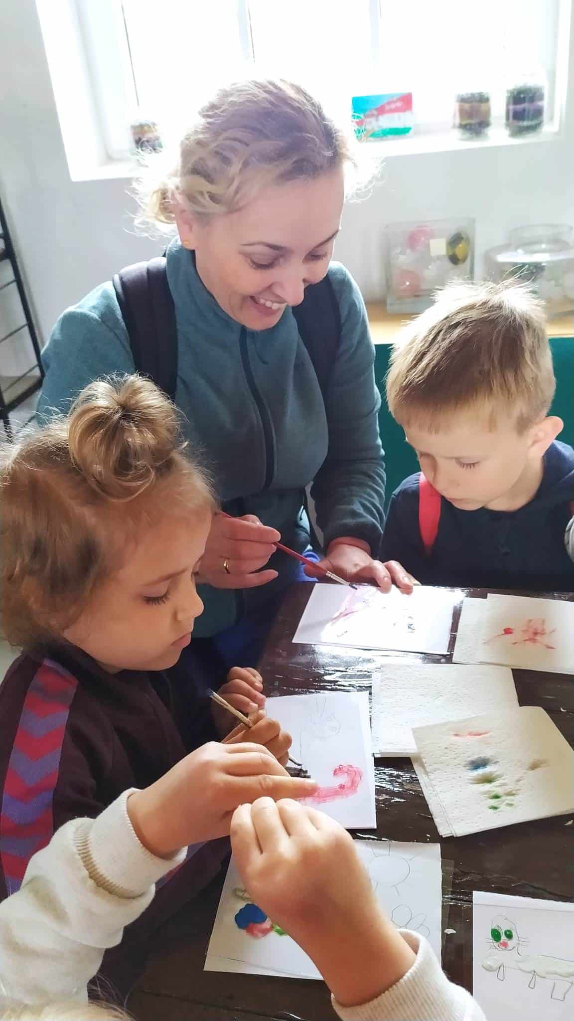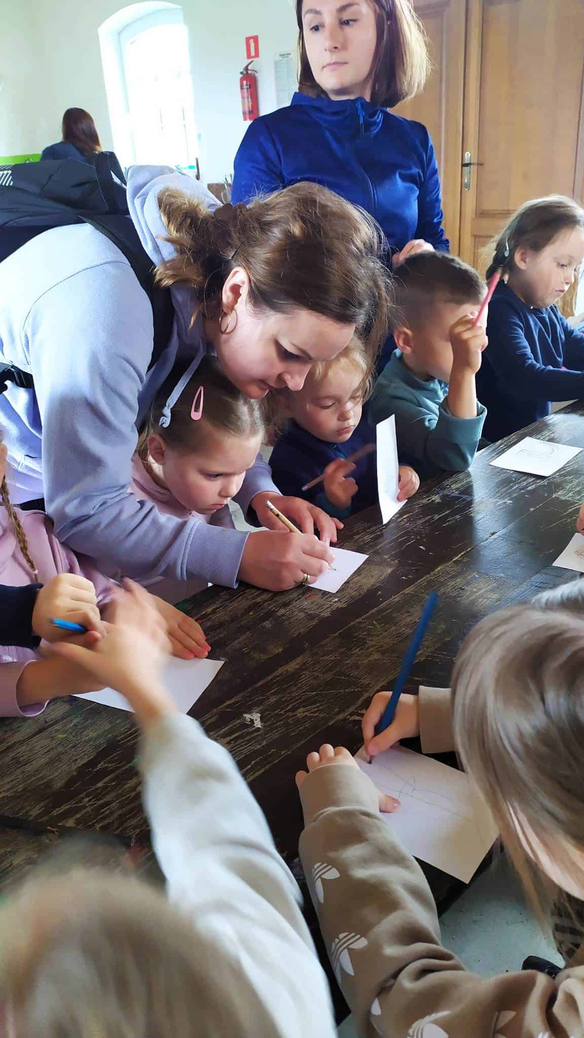 W tym roku szkolnym, Grupa Zielona na swoją końcoworoczną wycieczkę wybrała się do Baszni Dolnej, a dokładnie do wioski tematycznej zwanej Kresową Osadą. Mimo niesprzyjającej pogody dzieci ochoczo podejmowały się różnorodnych działań przygotowanych dla naszej grupy. Mieliśmy możliwość zapoznania się ze sztuką malowania na szkle, wzięliśmy także udział w „żywej lekcji historii”, gdzie za pomocą projekcji komputerowej każdy z uczestników mógł przymierzyć wybrany przez siebie strój – chociaż na krótką chwilę mogliśmy zamienić się w rycerza, giermka czy królewnę 🙂