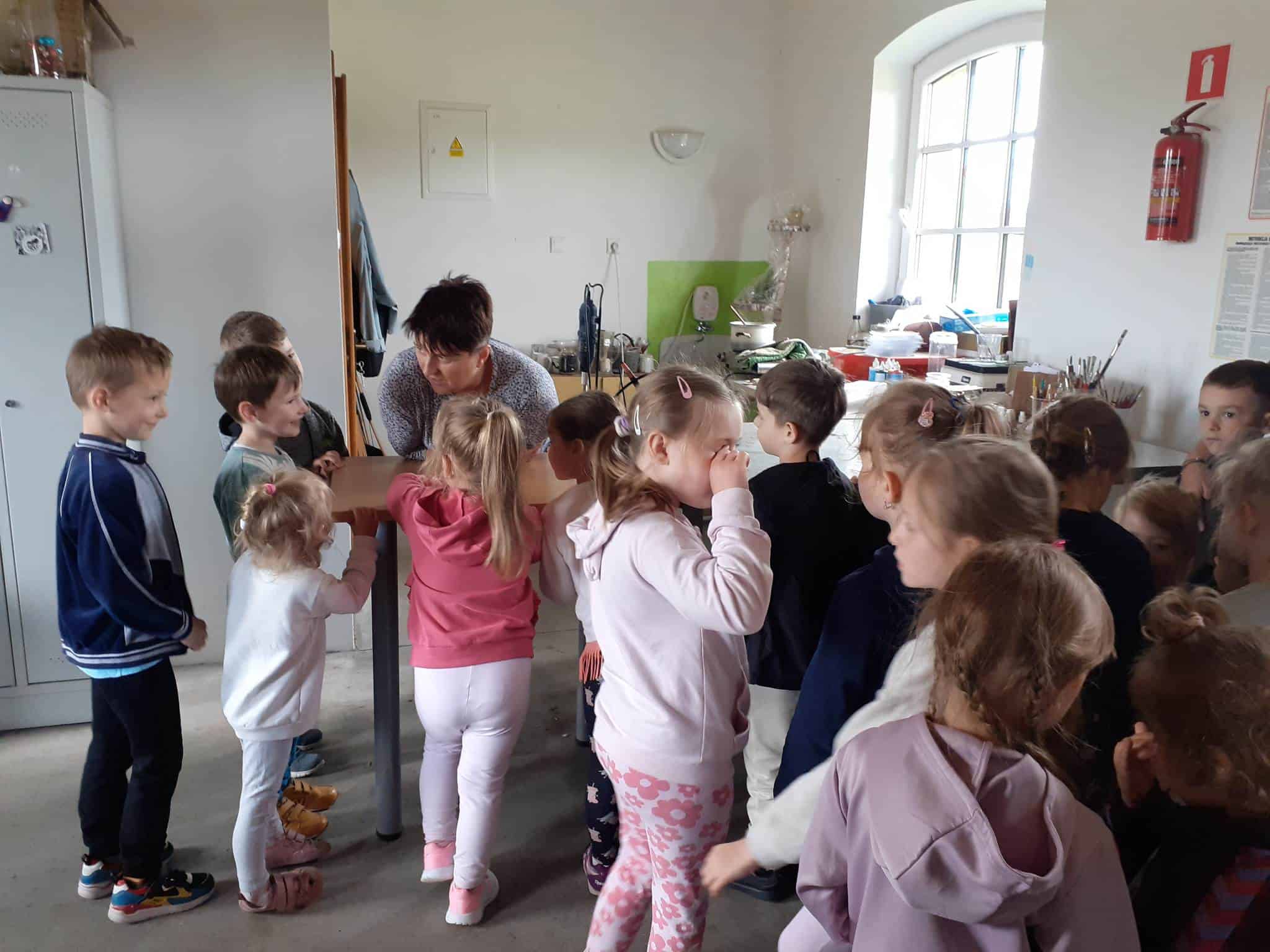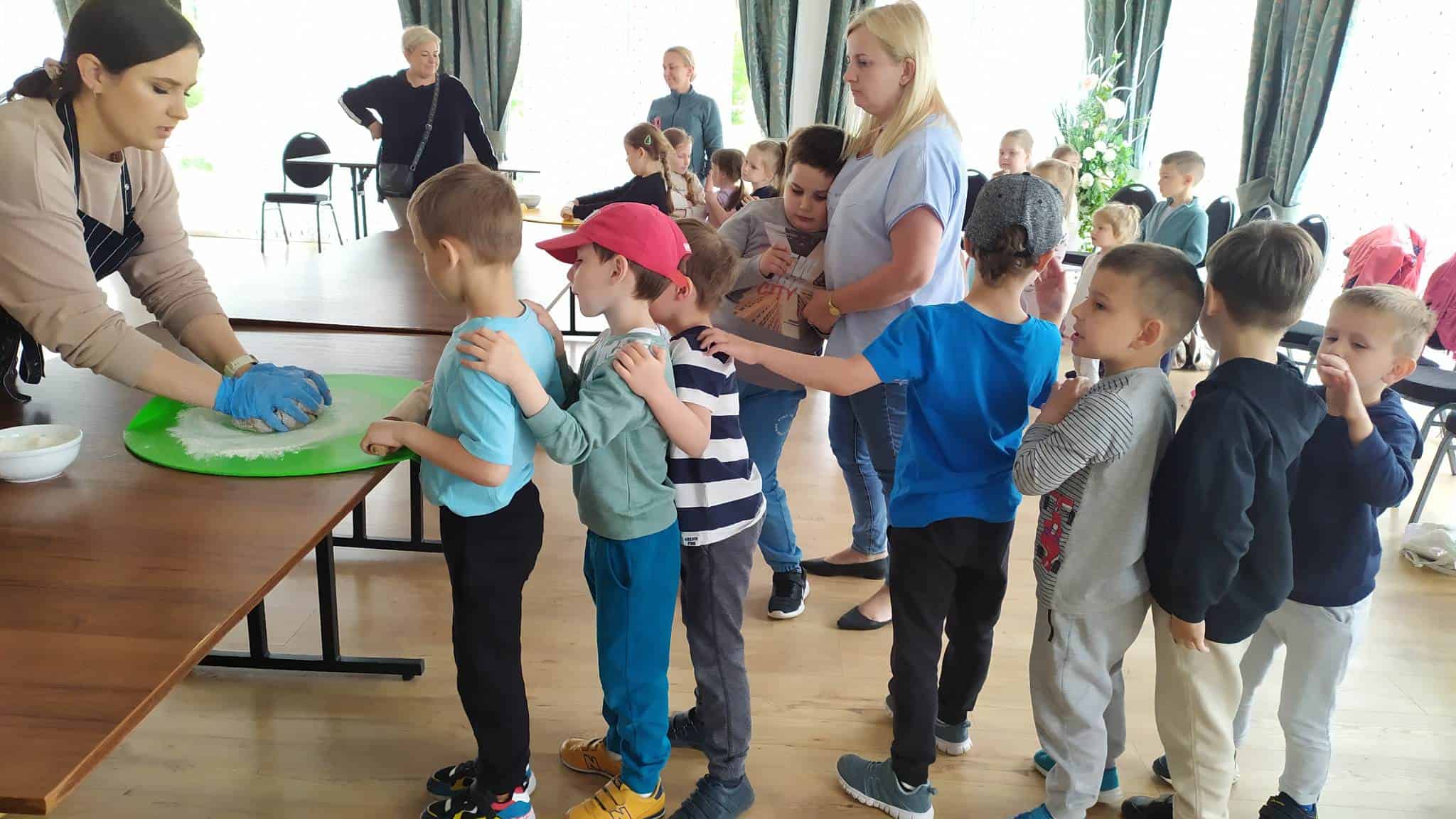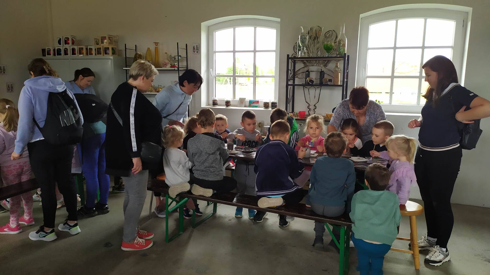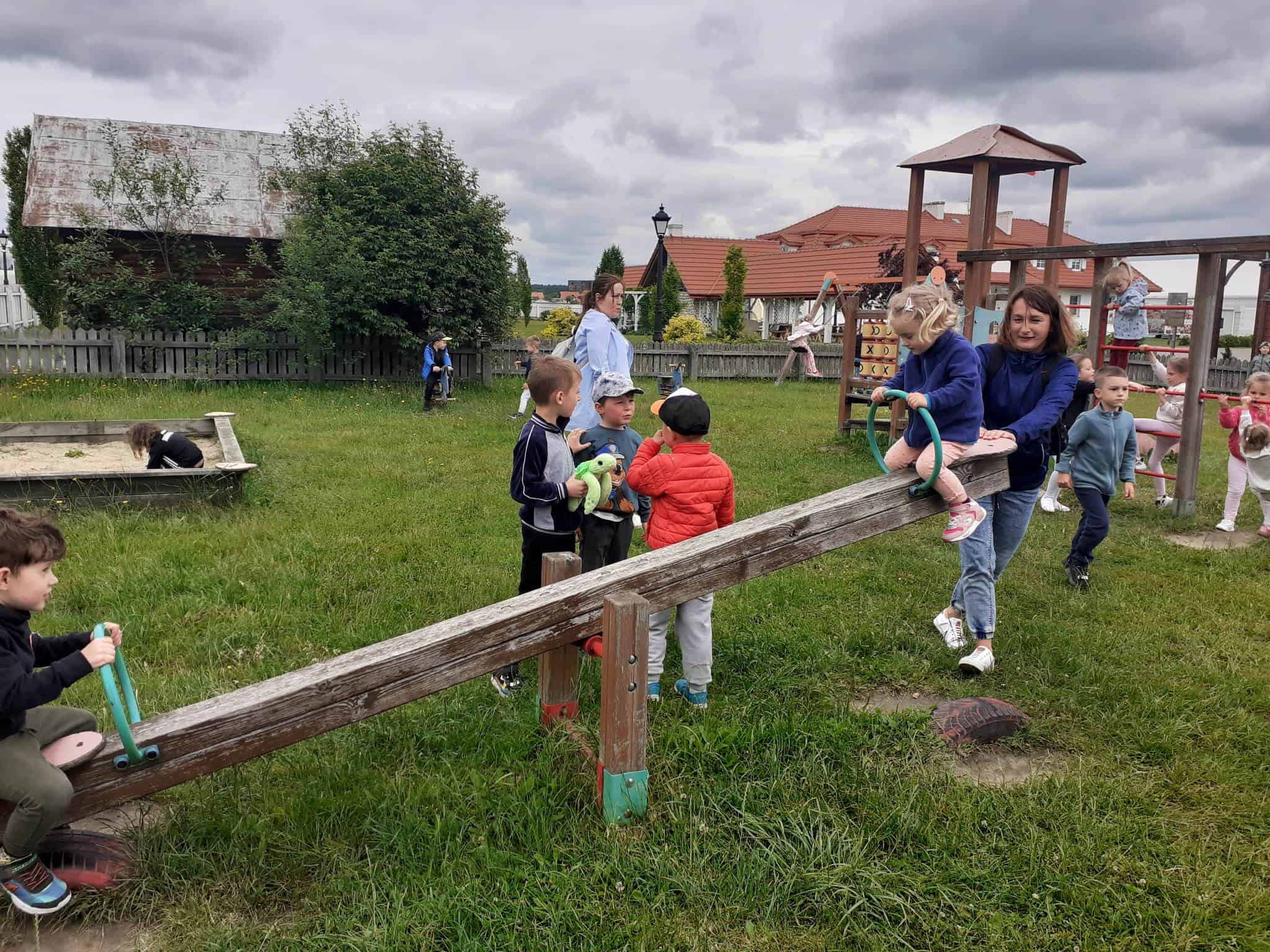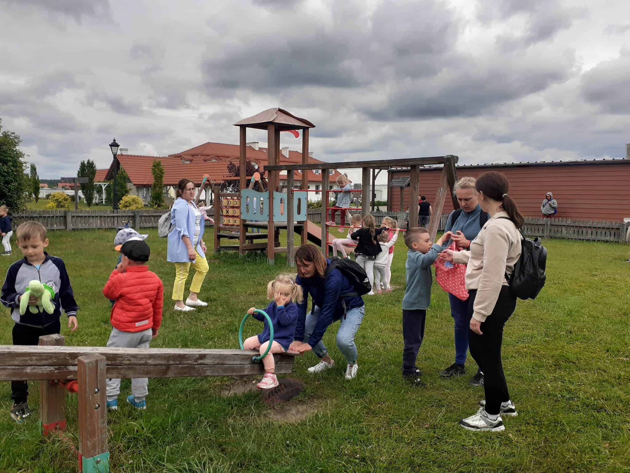 Na sam koniec wzięliśmy udział w warsztatach robienia pierniczków, które potem zajadaliśmy z ogromnym apetytem. Kiedy nadeszła pora powrotu, zza ciemnych chmur wyjrzało słońce dając sygnał, że jeszcze przez chwilę możemy skorzystać z placu zabaw znajdującego się na terenie obiektu. Zabawom nie było końca, bo plac zabaw okazał się dla naszych dzieci bardzo ciekawą atrakcją. Zmęczeni, ale uśmiechnięci wróciliśmy do naszego przedszkola 🙂