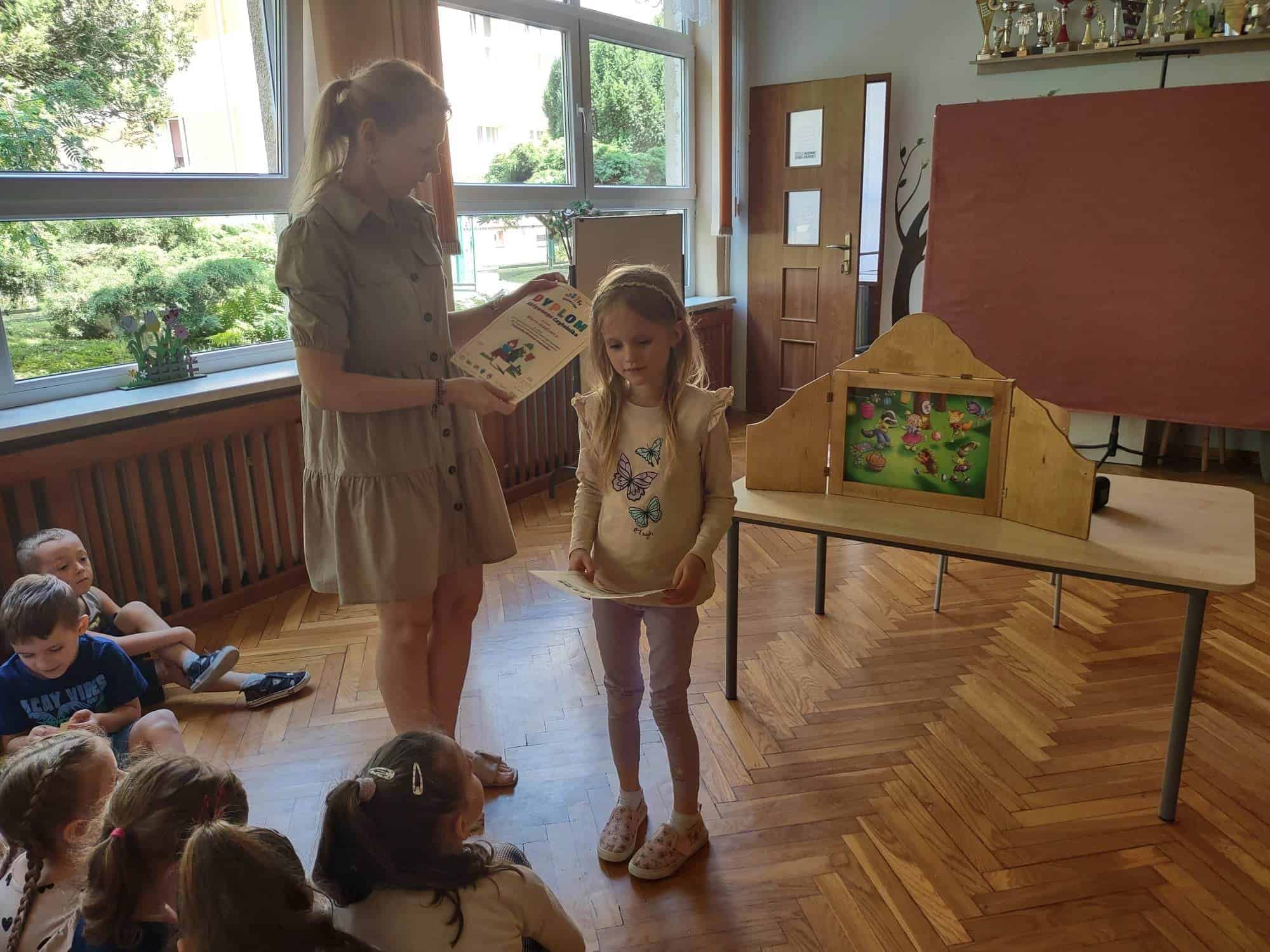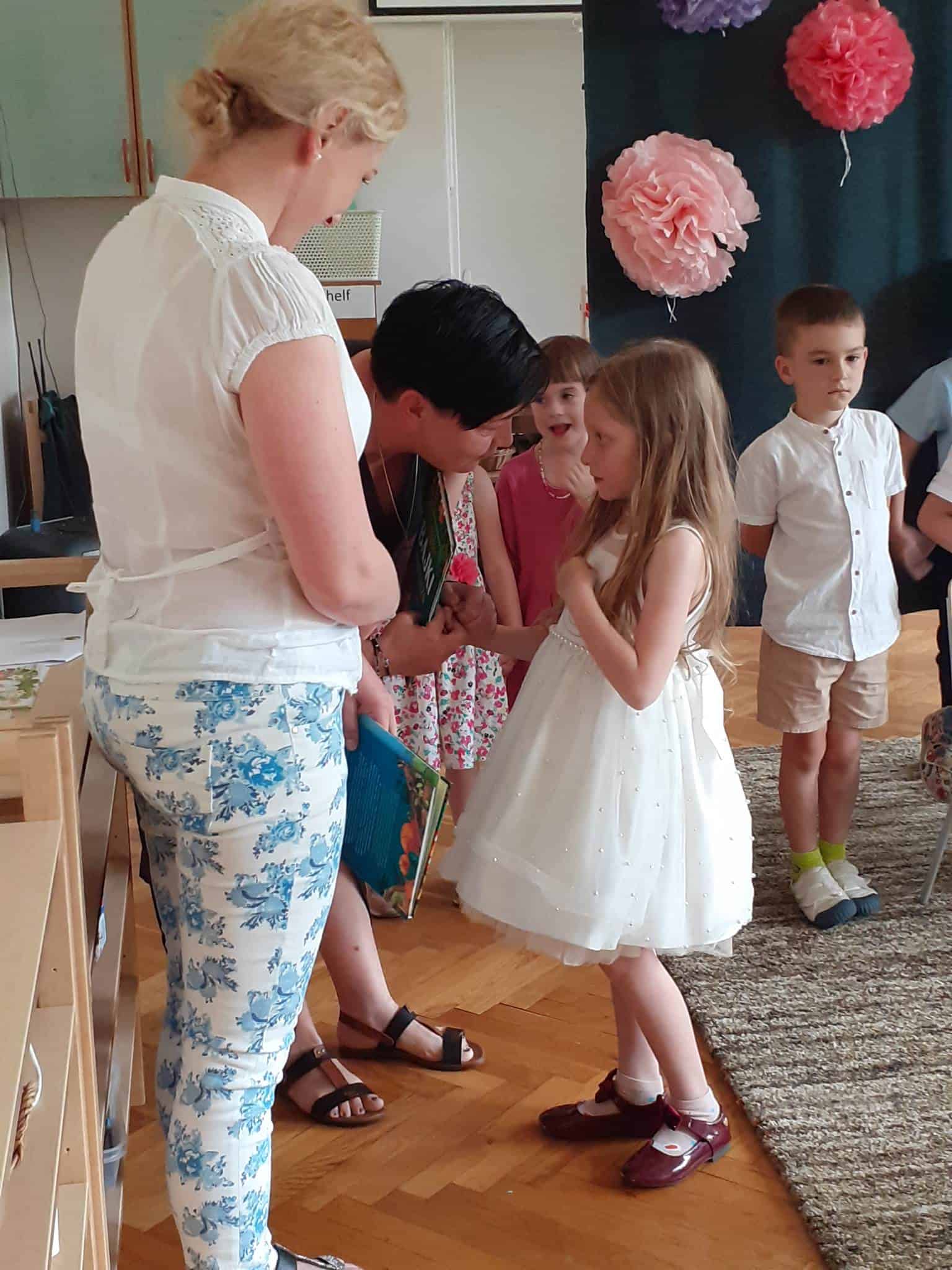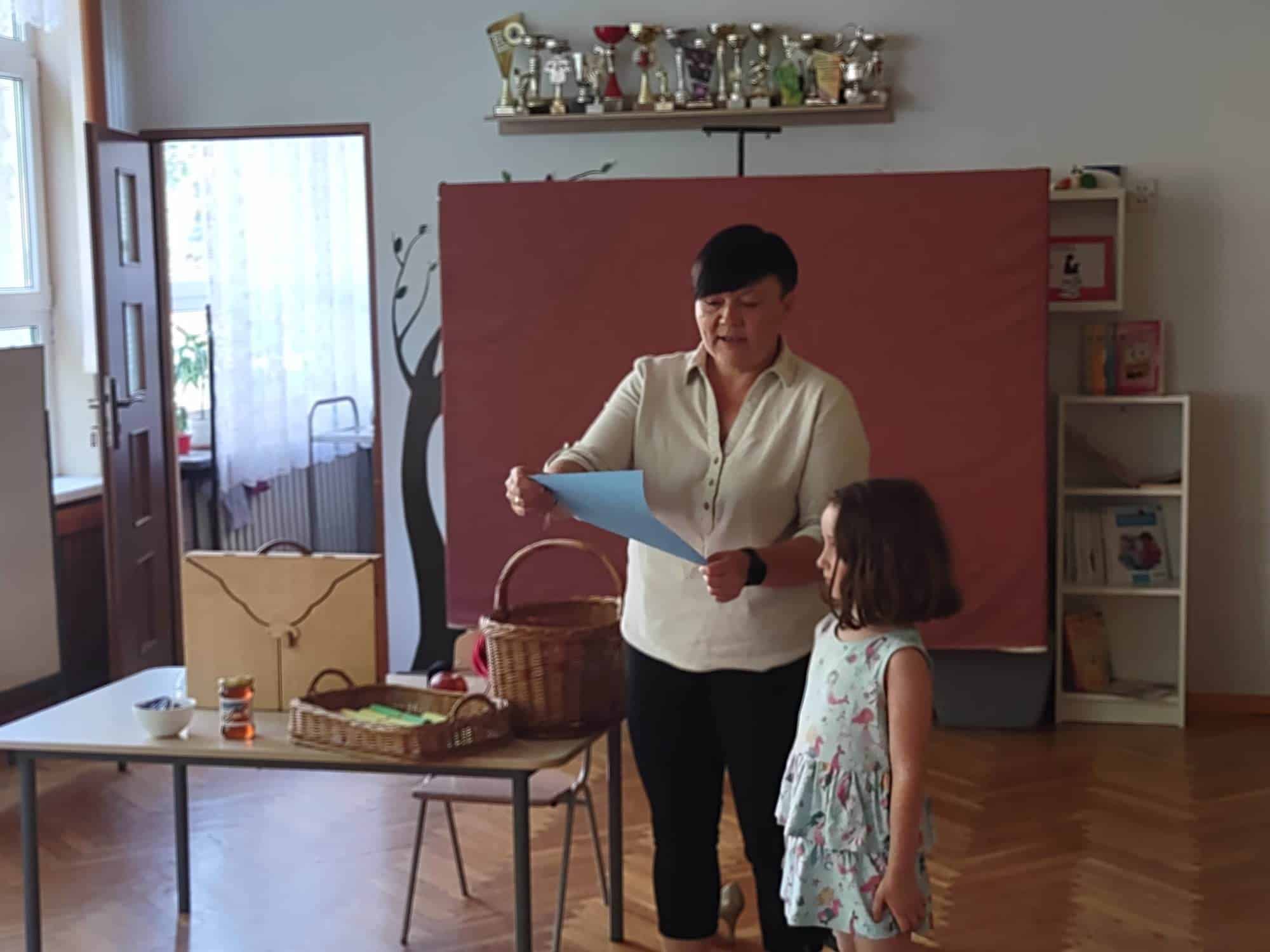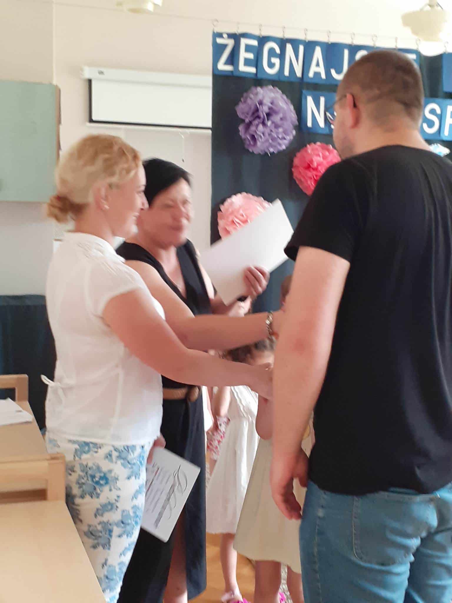 Po występie naszym kochanym absolwentom zostały wręczone dyplomy, pamiątkowe zdjęcia i nagrody książkowe. Również Rodzice, za całoroczną współpracę, zaangażowanie i wszelkie dodatkowe działania na rzecz grupy i przedszkola otrzymali podziękowania.