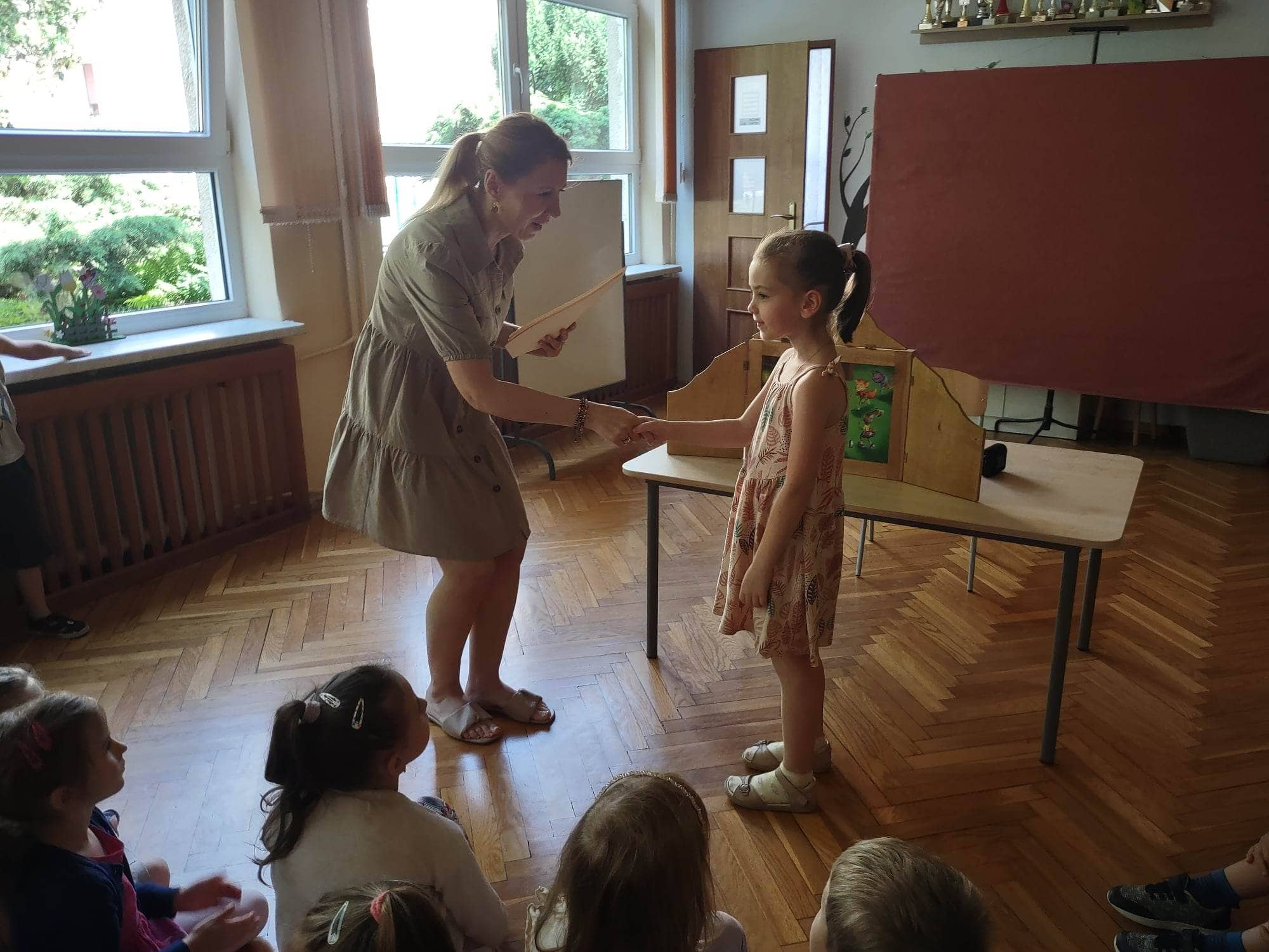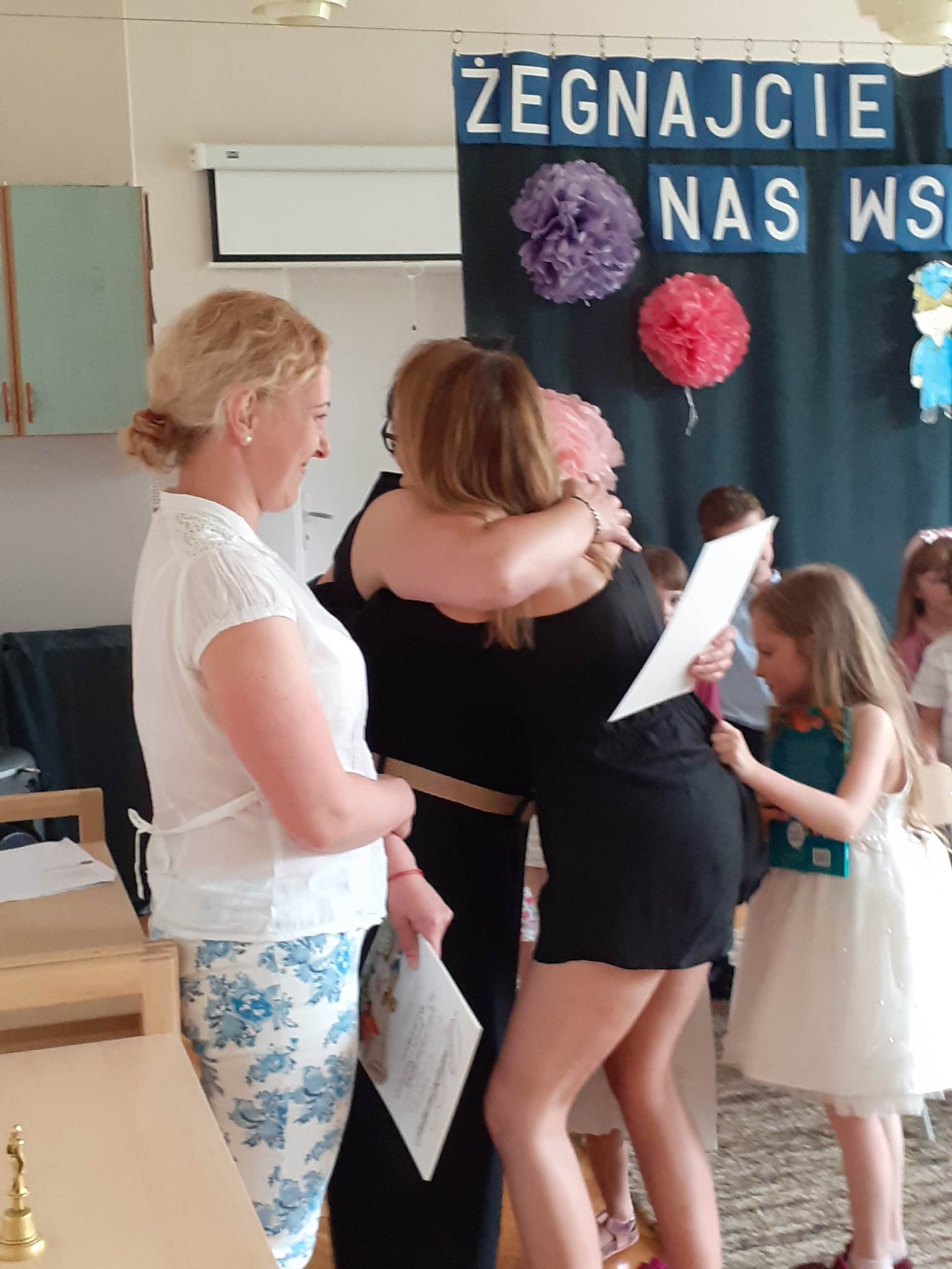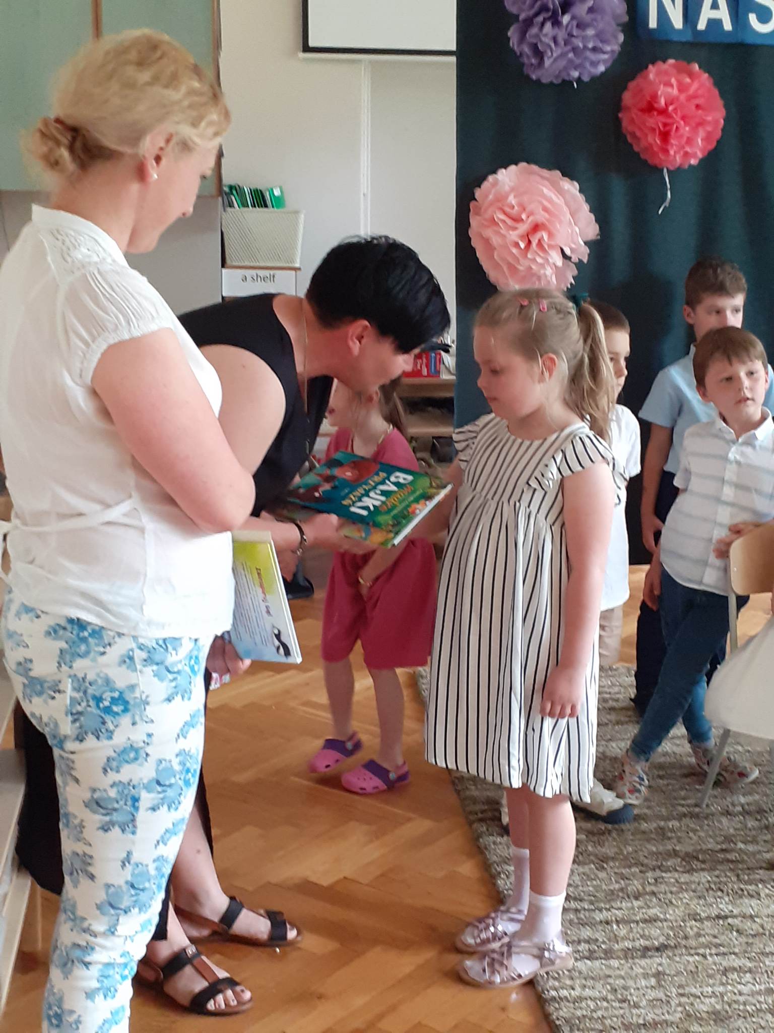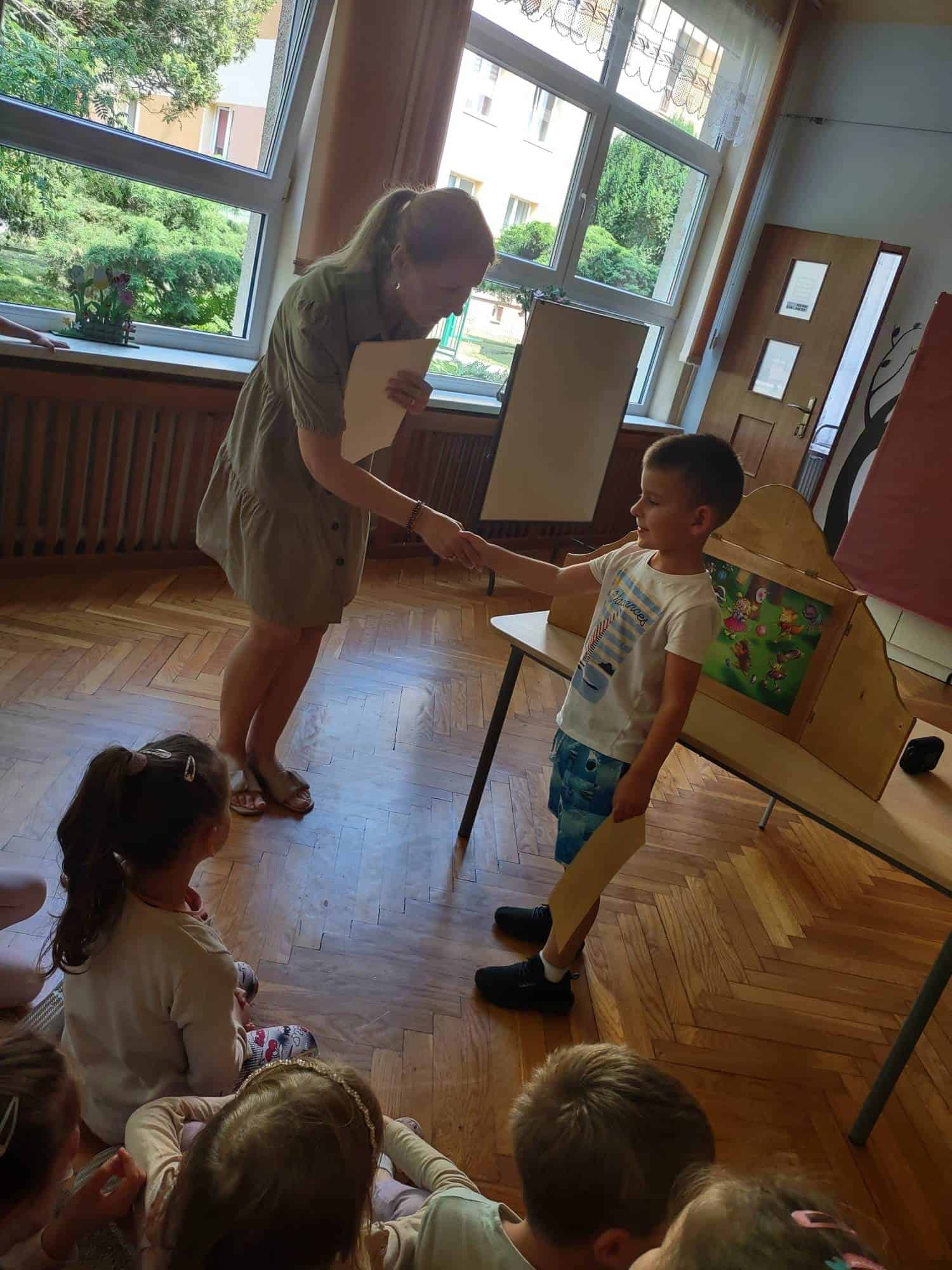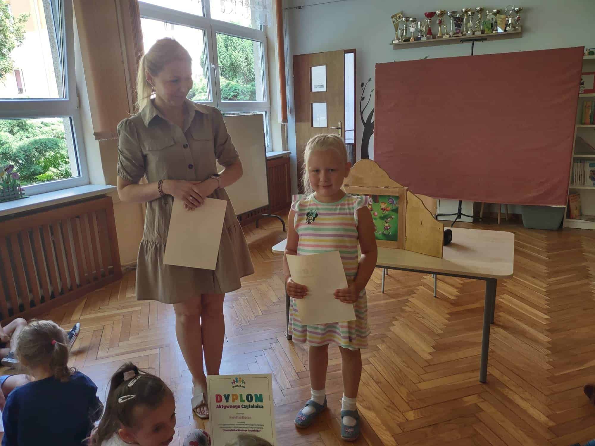 Po występie naszym kochanym absolwentom zostały wręczone dyplomy, pamiątkowe zdjęcia i nagrody książkowe. Również Rodzice, za całoroczną współpracę, zaangażowanie i wszelkie dodatkowe działania na rzecz grupy i przedszkola otrzymali podziękowania.