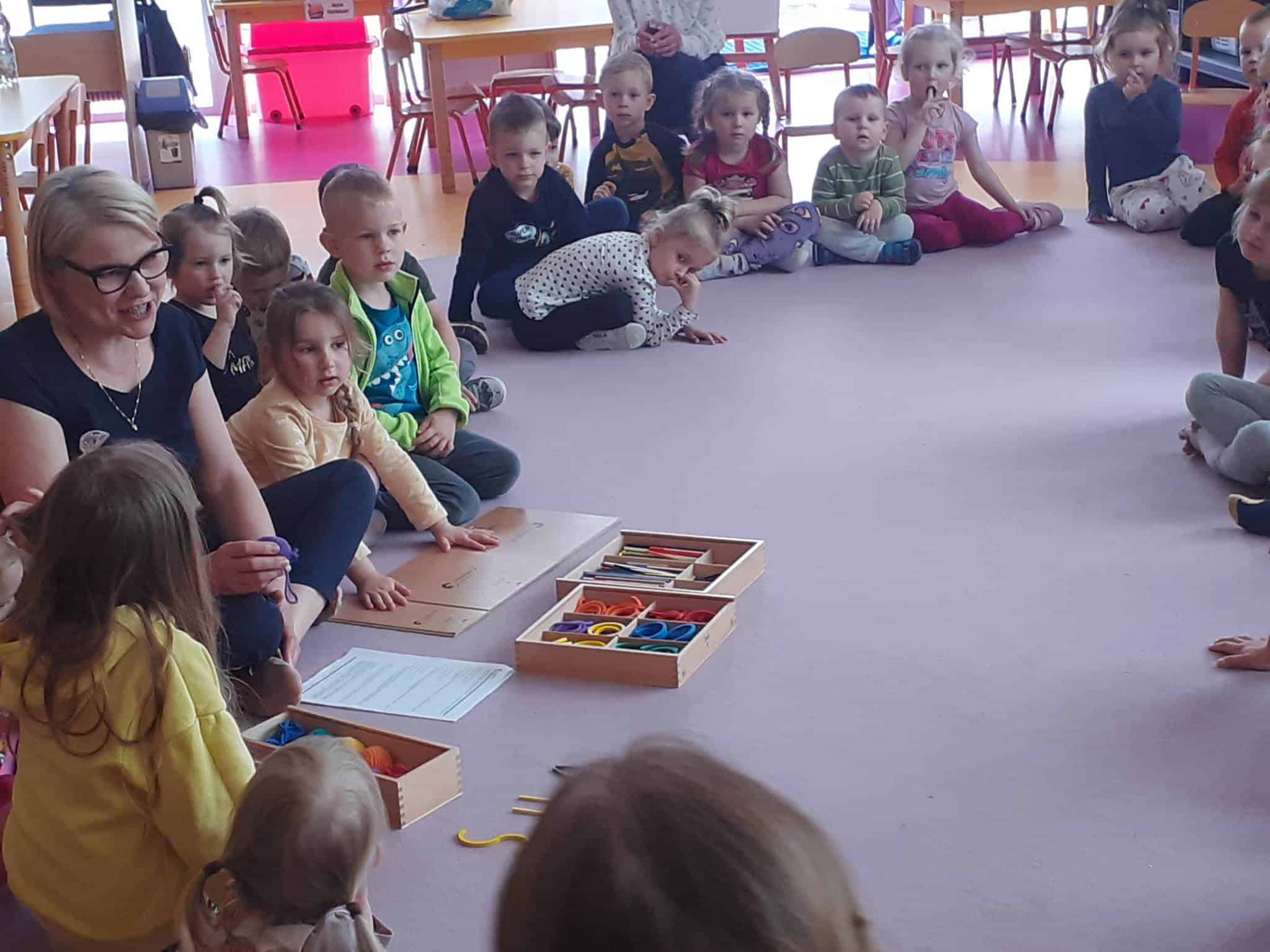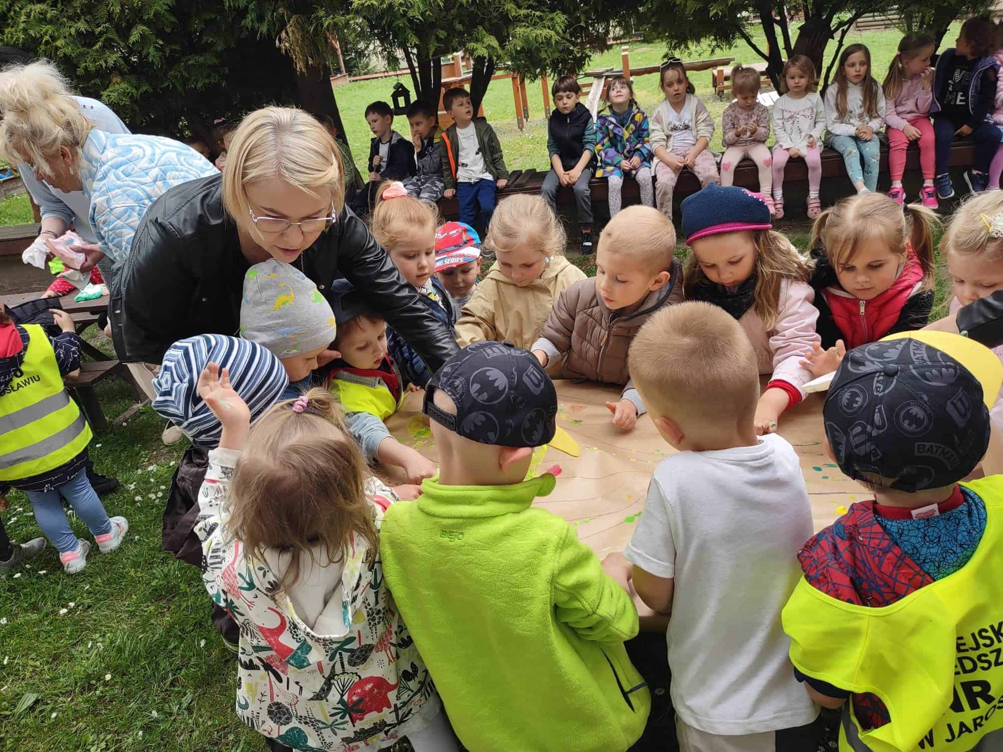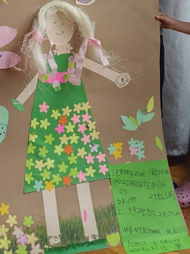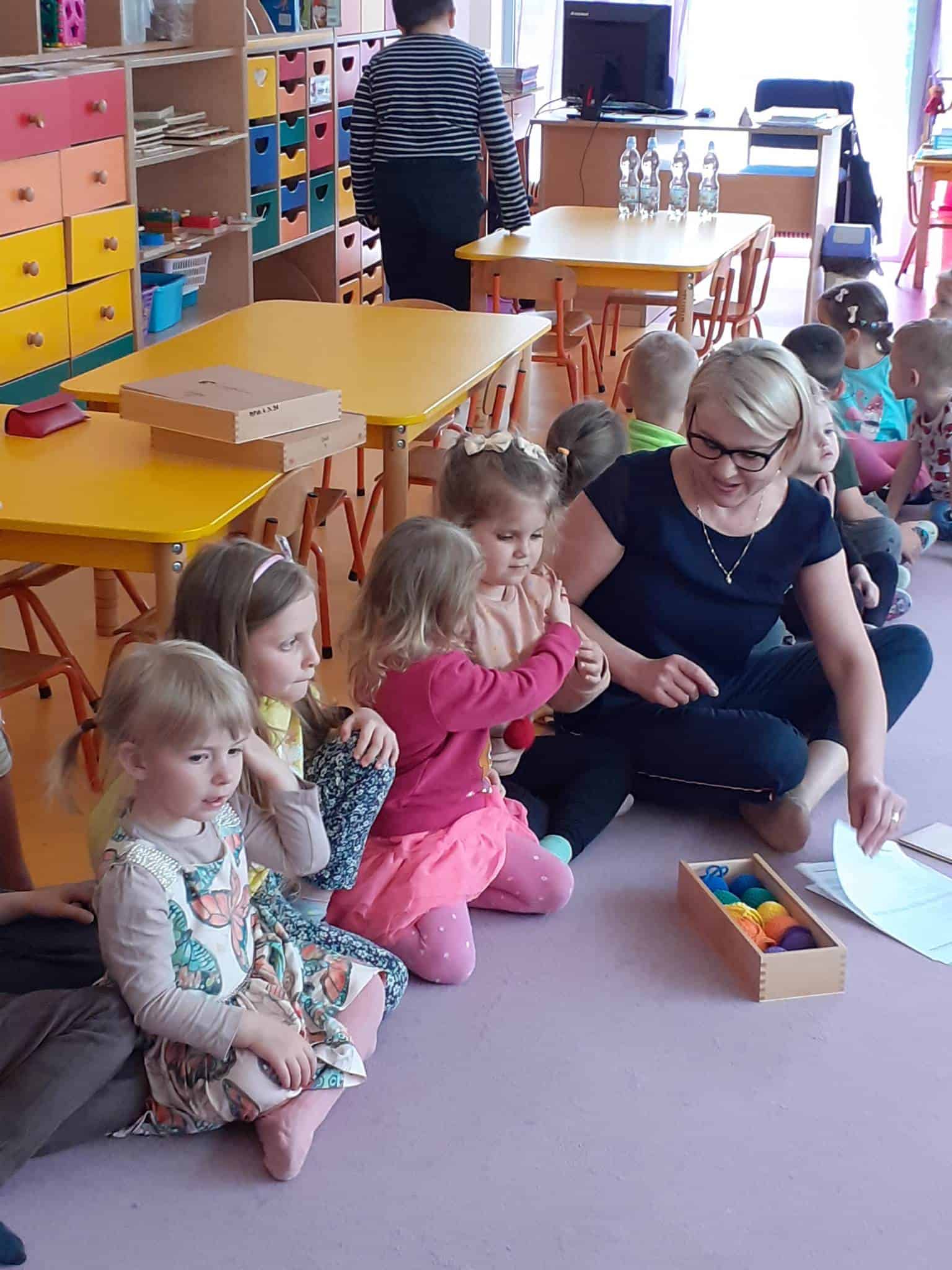 Mijający rok szkolny obfitował w naszej grupie w wiele działań związanych ze współpracą w środowisku lokalnym, w tym między innymi, z Grupą Motylki z Miejskiego Przedszkola nr 10 w Jarosławiu. Prze kilka miesięcy mieliśmy przyjemność wymieniać się doświadczeniami i pomysłami. Pamiętaliśmy o sobie wzajemnie podczas różnych działań. Grupa Motylki regularnie wysyłała do nas korespondencję, po otworzeniu której mogliśmy podziwiać ich przepiękne kwartalniki opisujące i obrazujące ważniejsze wydarzenia minionych tygodni, otrzymywaliśmy także karteczki z życzeniami świątecznymi oraz prace plastyczne. My także dzieliśmy się z nimi swoimi pomysłami – zrobiliśmy piękny plakat Pani Wiosny, który zawisł dumnie przy ich przygrupowej tablicy, zaprosiliśmy całą grupę do naszego przedszkolnego ogrodu, aby wspólnie udać się na obserwacje przyrodnicze na naszej Edukacyjnej Ścieżce, a na naszym tarasie ogrodowym zorganizowaliśmy zajęcia plastyczne, podczas których dzieci tworzyły wspólnie plakat wiosennego drzewa. Podsumowaniem naszych całorocznych działań była wizyta w Grupie Motylków, gdzie Pani Jola, wychowawca grupy, przeprowadziła dla nas fantastyczne zajęcia edukacyjne z wykorzystaniem darów Froebla. Wróciliśmy bogatsi o nową wiedzę i doświadczenia 🙂 Chcąc pokazać odrobinę naszej przestrzeni również przygotowaliśmy dla nich warsztaty – dzieci odkrywały ciszę, gdyż zajęcia te były związane z lekcjami ciszy, które są cechą charakterystyczną pedagogiki Montessori wedle której pracuje nasze przedszkole. Ogromną radością dla dzieci był także czas wspólnej zabawy – odkrywania nowego otoczenia i poznawania się wzajemnie.