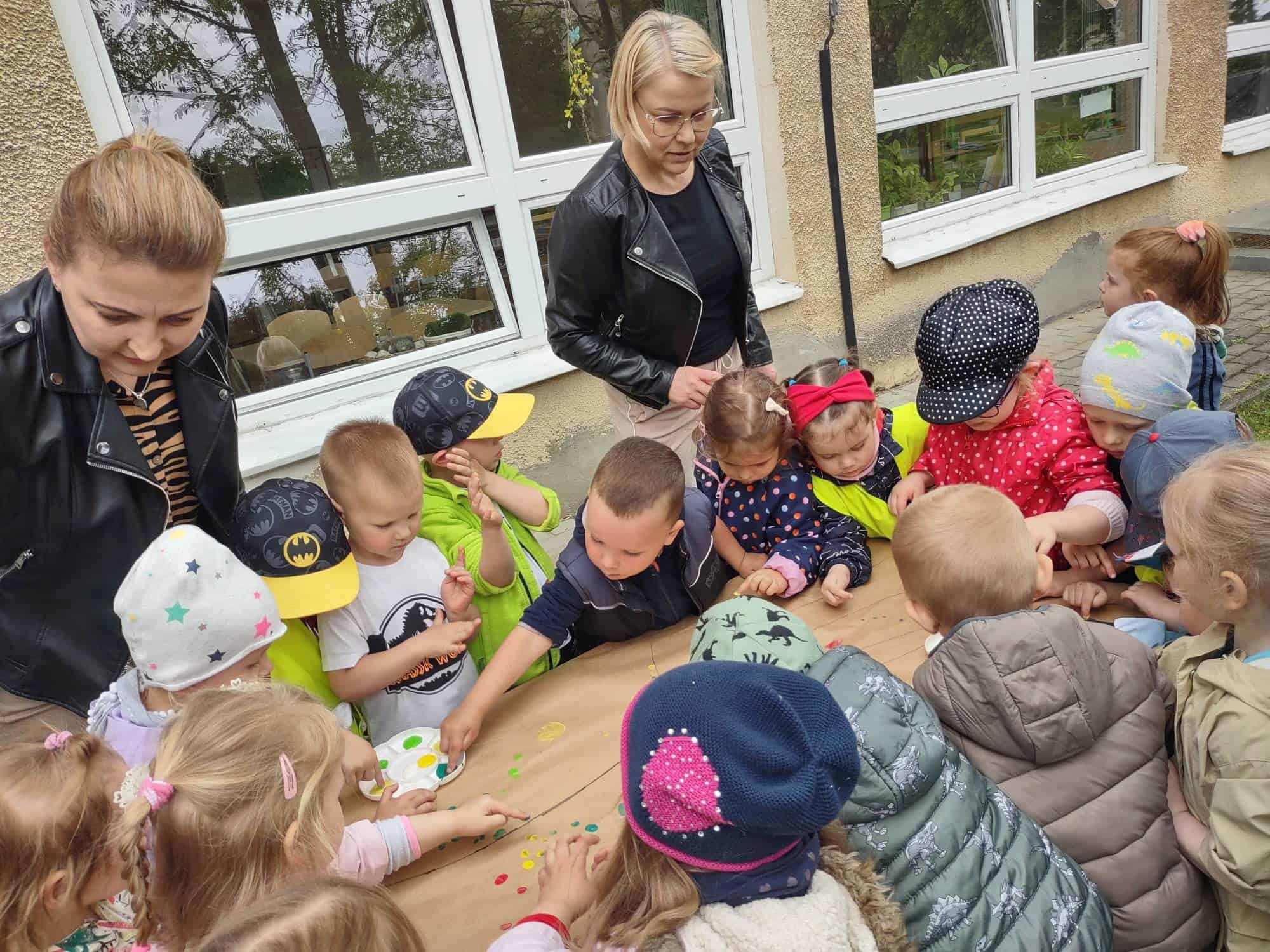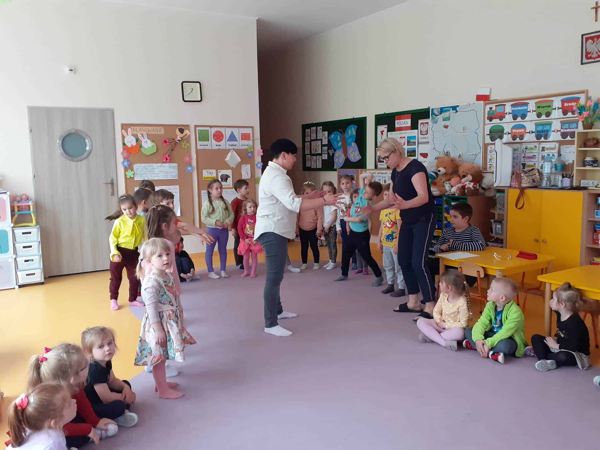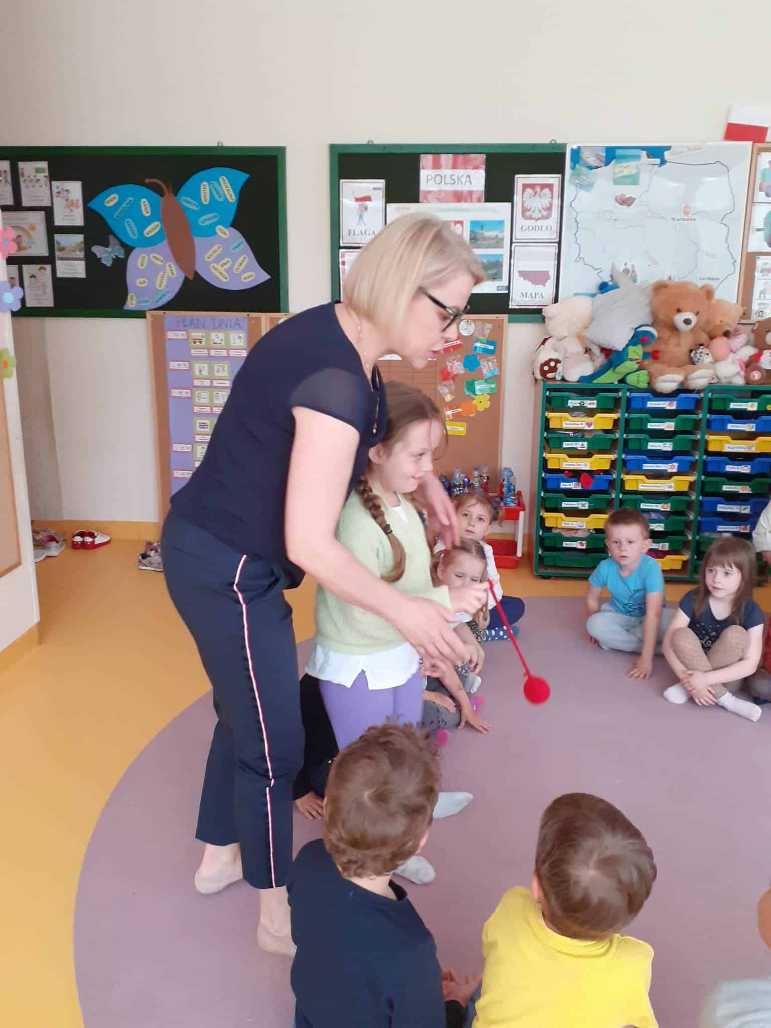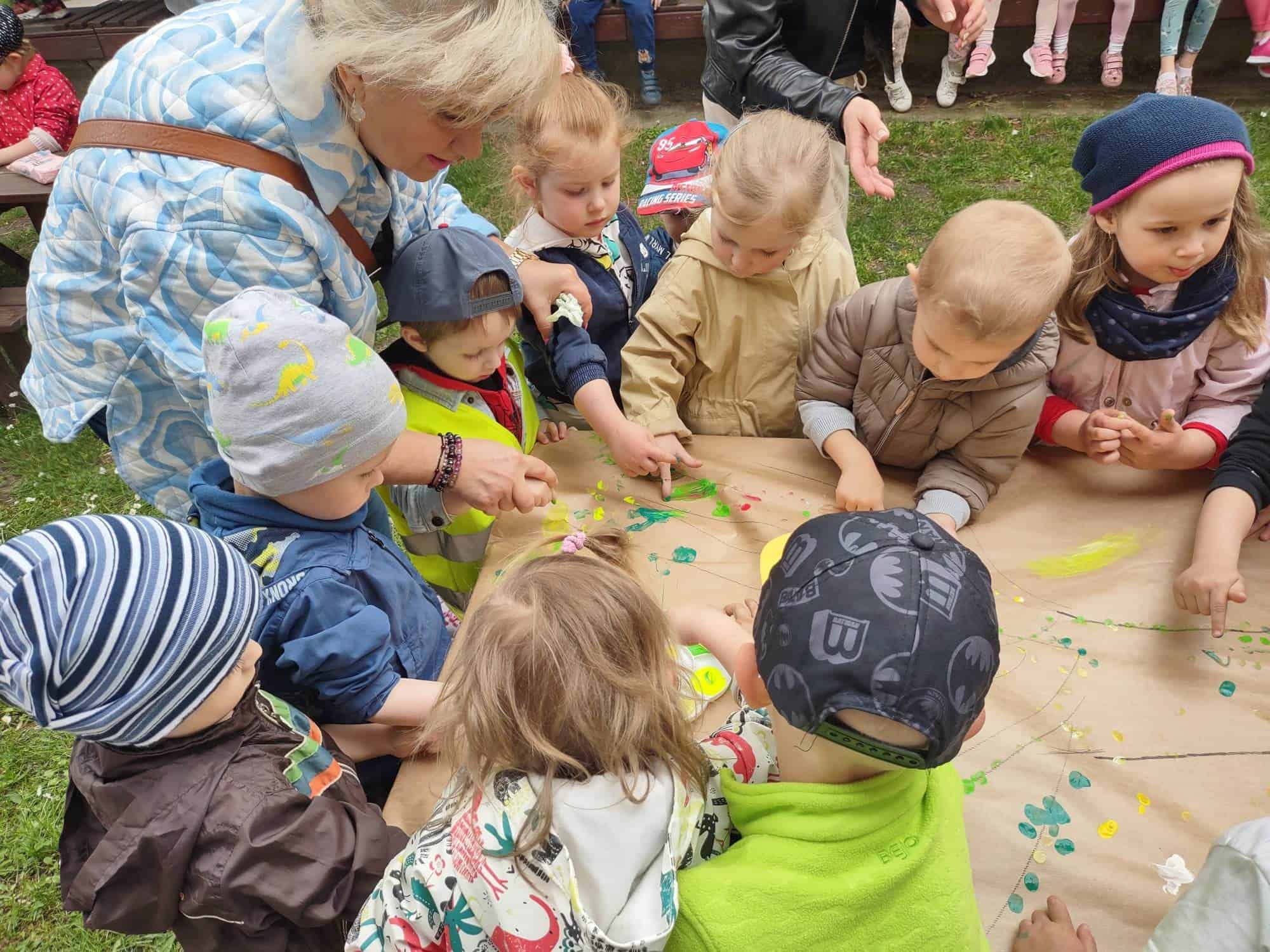 Mijający rok szkolny obfitował w naszej grupie w wiele działań związanych ze współpracą w środowisku lokalnym, w tym między innymi, z Grupą Motylki z Miejskiego Przedszkola nr 10 w Jarosławiu. Prze kilka miesięcy mieliśmy przyjemność wymieniać się doświadczeniami i pomysłami. Pamiętaliśmy o sobie wzajemnie podczas różnych działań. Grupa Motylki regularnie wysyłała do nas korespondencję, po otworzeniu której mogliśmy podziwiać ich przepiękne kwartalniki opisujące i obrazujące ważniejsze wydarzenia minionych tygodni, otrzymywaliśmy także karteczki z życzeniami świątecznymi oraz prace plastyczne. My także dzieliśmy się z nimi swoimi pomysłami – zrobiliśmy piękny plakat Pani Wiosny, który zawisł dumnie przy ich przygrupowej tablicy, zaprosiliśmy całą grupę do naszego przedszkolnego ogrodu, aby wspólnie udać się na obserwacje przyrodnicze na naszej Edukacyjnej Ścieżce, a na naszym tarasie ogrodowym zorganizowaliśmy zajęcia plastyczne, podczas których dzieci tworzyły wspólnie plakat wiosennego drzewa. Podsumowaniem naszych całorocznych działań była wizyta w Grupie Motylków, gdzie Pani Jola, wychowawca grupy, przeprowadziła dla nas fantastyczne zajęcia edukacyjne z wykorzystaniem darów Froebla. Wróciliśmy bogatsi o nową wiedzę i doświadczenia 🙂 Chcąc pokazać odrobinę naszej przestrzeni również przygotowaliśmy dla nich warsztaty – dzieci odkrywały ciszę, gdyż zajęcia te były związane z lekcjami ciszy, które są cechą charakterystyczną pedagogiki Montessori wedle której pracuje nasze przedszkole. Ogromną radością dla dzieci był także czas wspólnej zabawy – odkrywania nowego otoczenia i poznawania się wzajemnie.