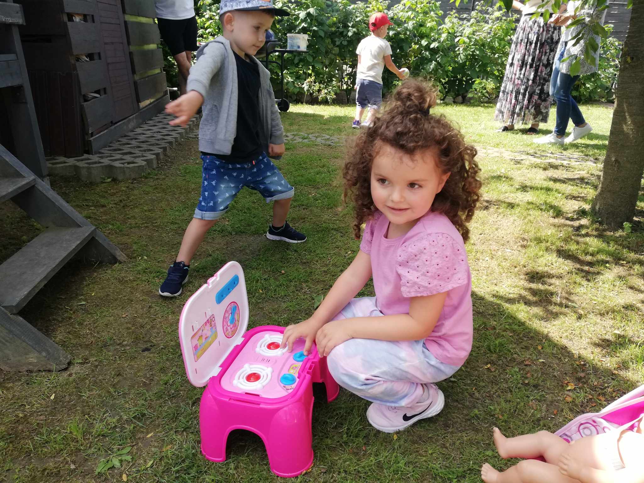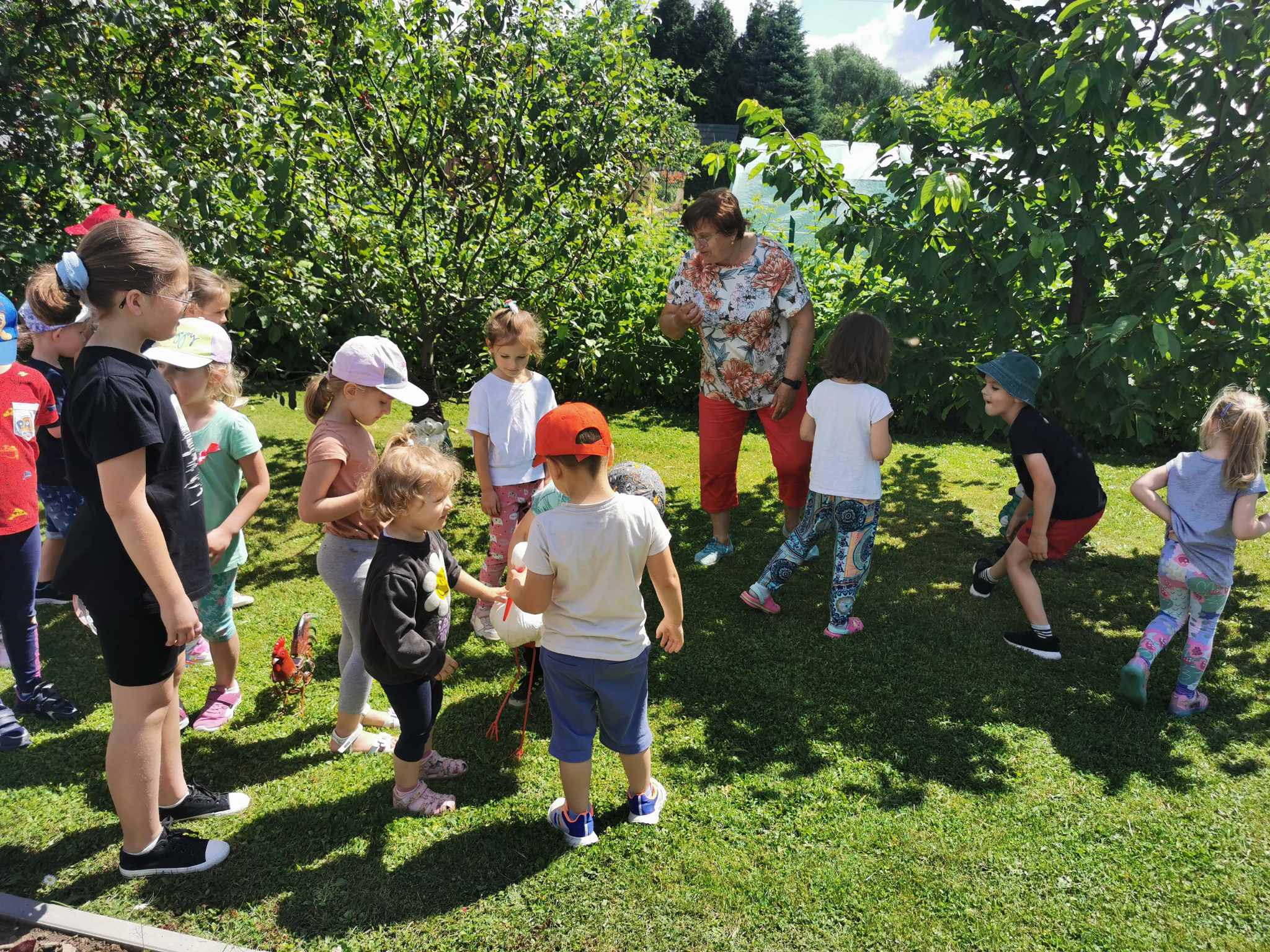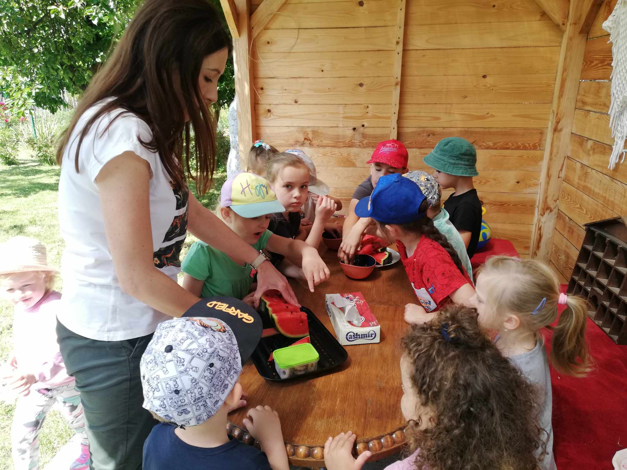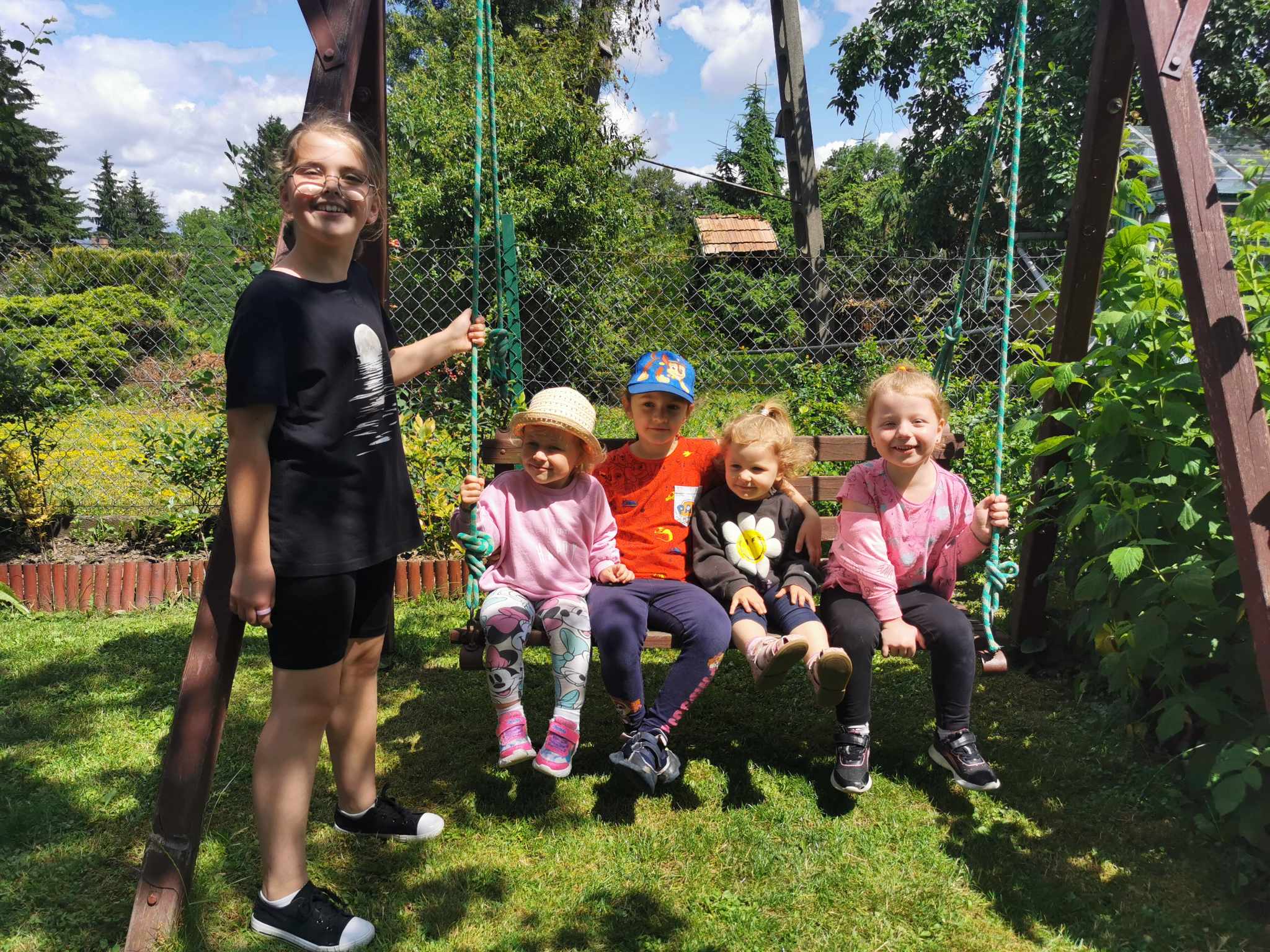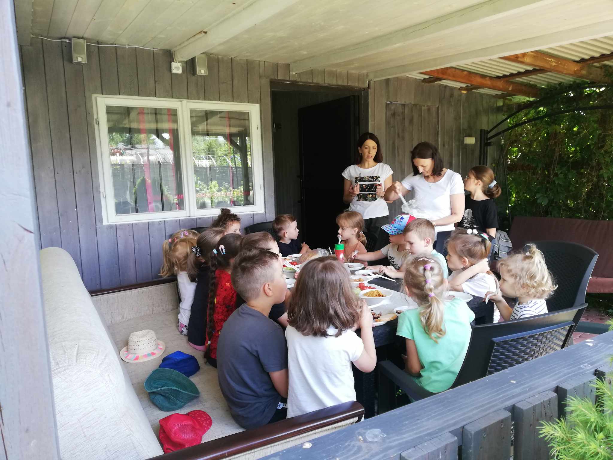 Korzystając z zaproszenia rodziców Madzi wybraliśmy się na pożegnalny piknik na działkę. Dziękujemy Pani Małgosi i Panu Maciejowi za przygotowanie wspaniałego pikniku, pyszną kiełbaskę, przekąski oraz wytworzenie wspaniałej atmosfery do wspólnej zabawy i spędzenia czasu na łonie przyrody. Dziękujemy również rodzicom i dziadkom Ninki, którzy mają po sąsiedzku swoje działki, na które nas również zaprosili. Przedszkolaki zajadały tam pyszne owoce oraz słuchały opowieści Pani Marysi na temat upraw na działce.