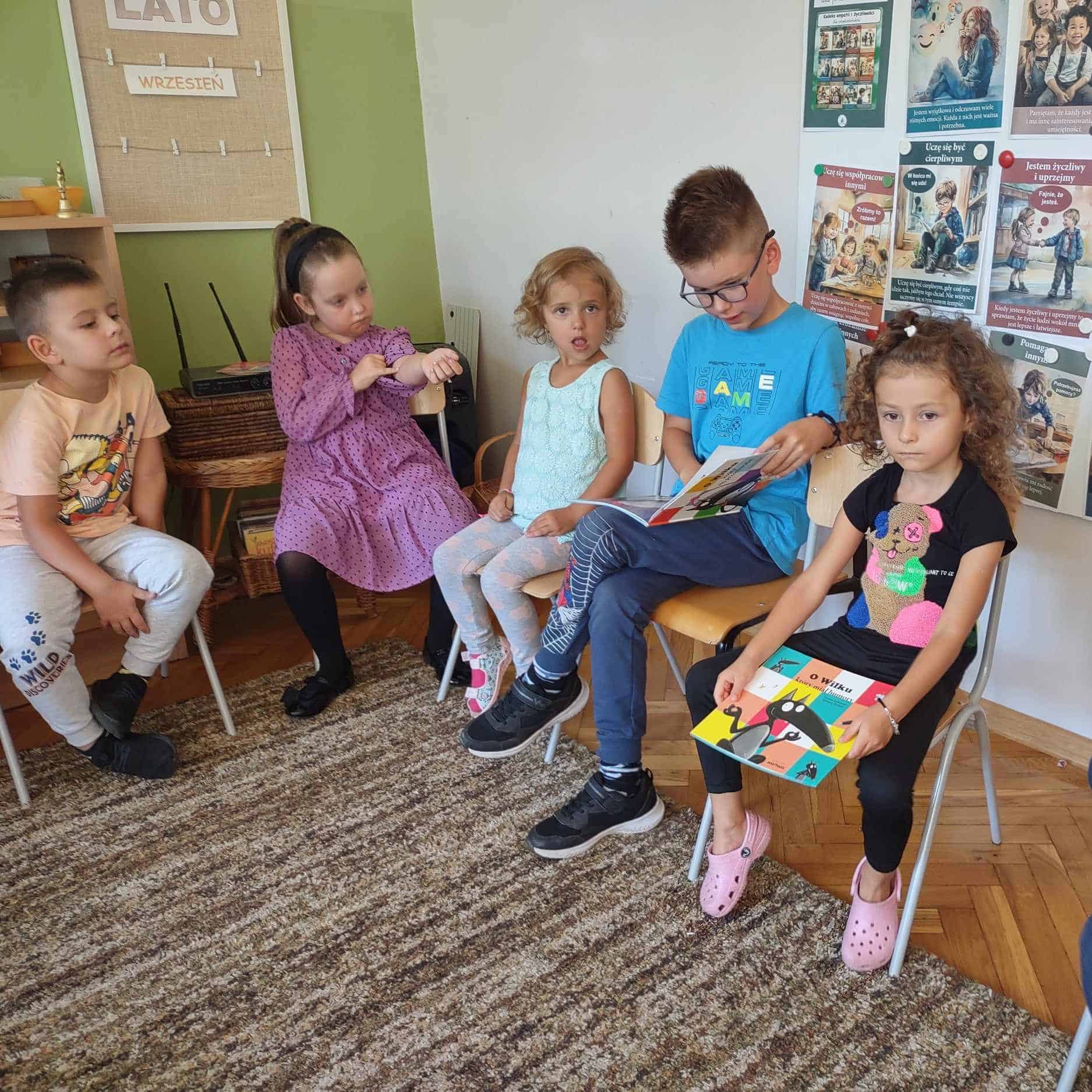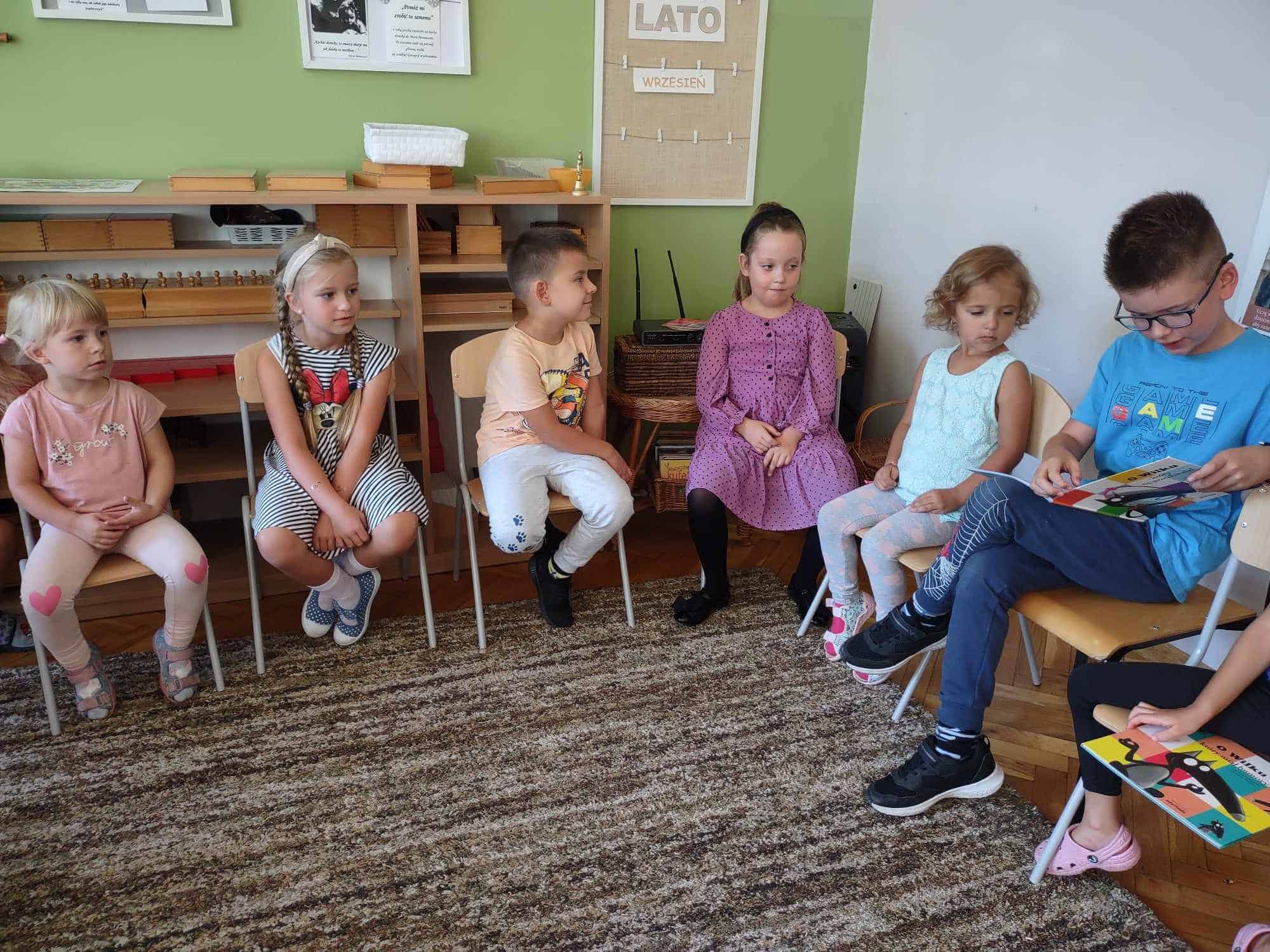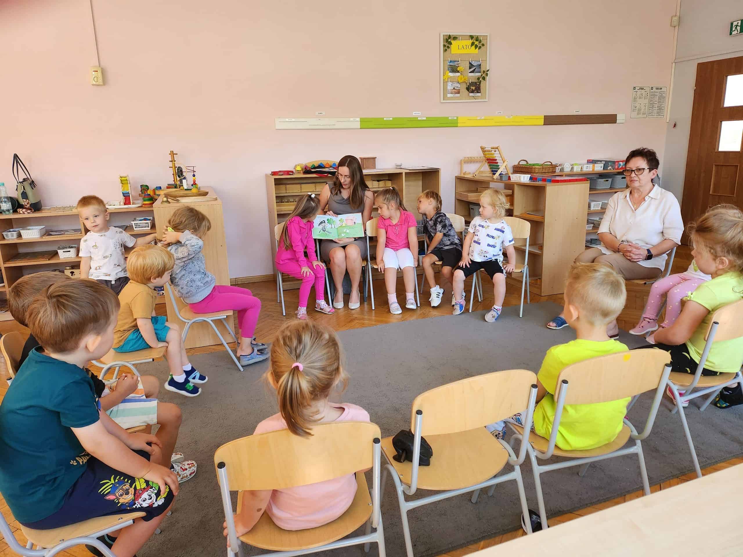 Czytanie dzieciom literatury jest mądrym sposobem spędzania z nimi czasu oraz najlepszą inwestycją w ich przyszłość. W ramach akcji czytelniczej, którą promujemy w naszym przedszkolu od wielu lat, odwiedzają nas członkowie rodzin naszych przedszkolaków. Wizyty te sprawiają dzieciom dużo radości. Dzieci są dumne z tego, że miejsce nauczyciela – miejsce gdzie siedzi jego pani zajmuje jego mamusia, tatuś, czy inna bliska osoba. W tym roku szkolnym akcję czytelniczą w naszej grupie rozpoczęła Pani Monika – mamusia Maciusia. Odwiedziła nas we wtorek 5 września. Przeczytała dzieciom dwa opowiadania: „O wilku, który poleciał w kosmos” oraz „O wilku, który chciał zmienić kolor”. Dzieci z zainteresowaniem słuchały, po czym odpowiadały na pytania naszego Gościa.