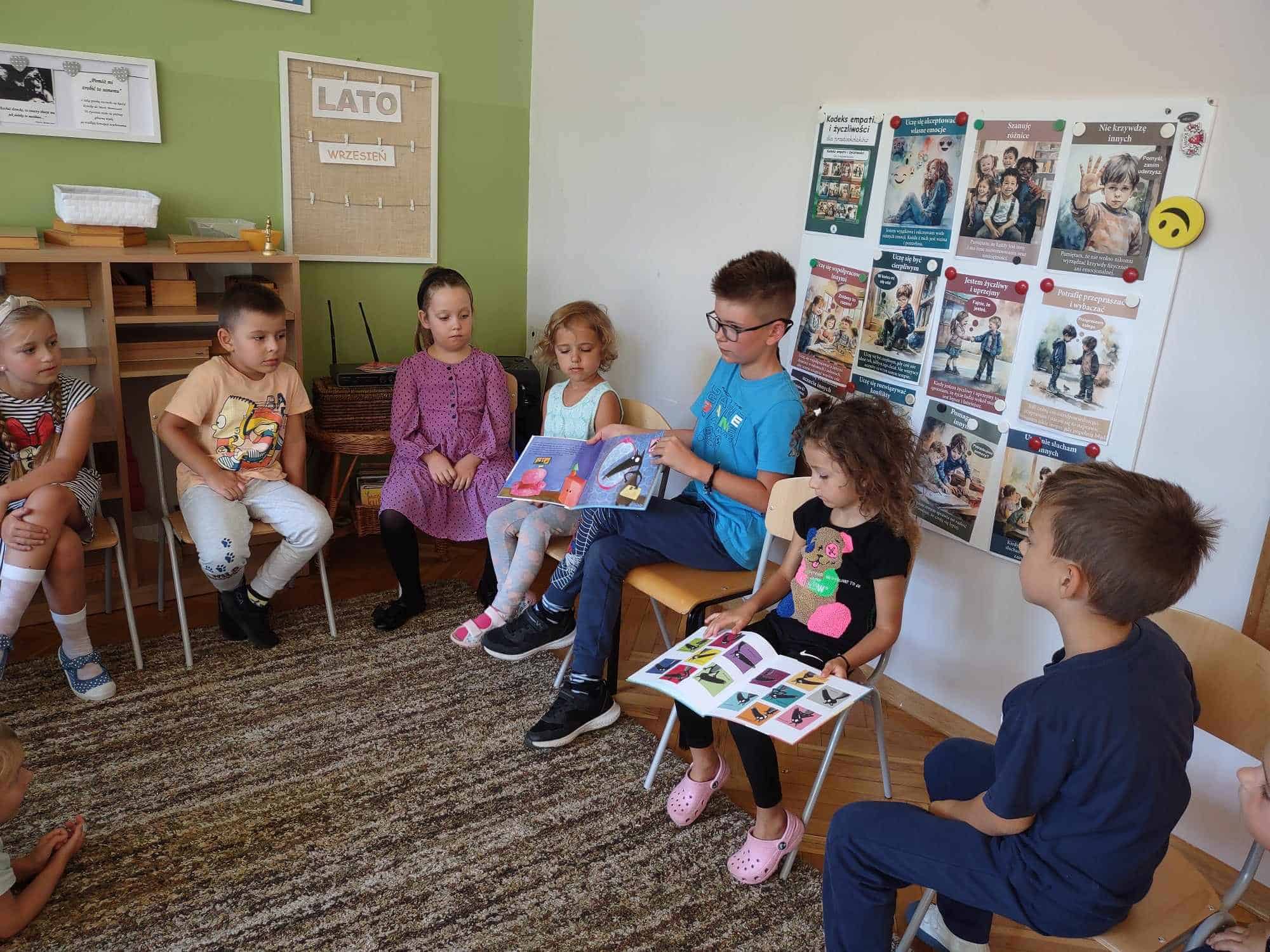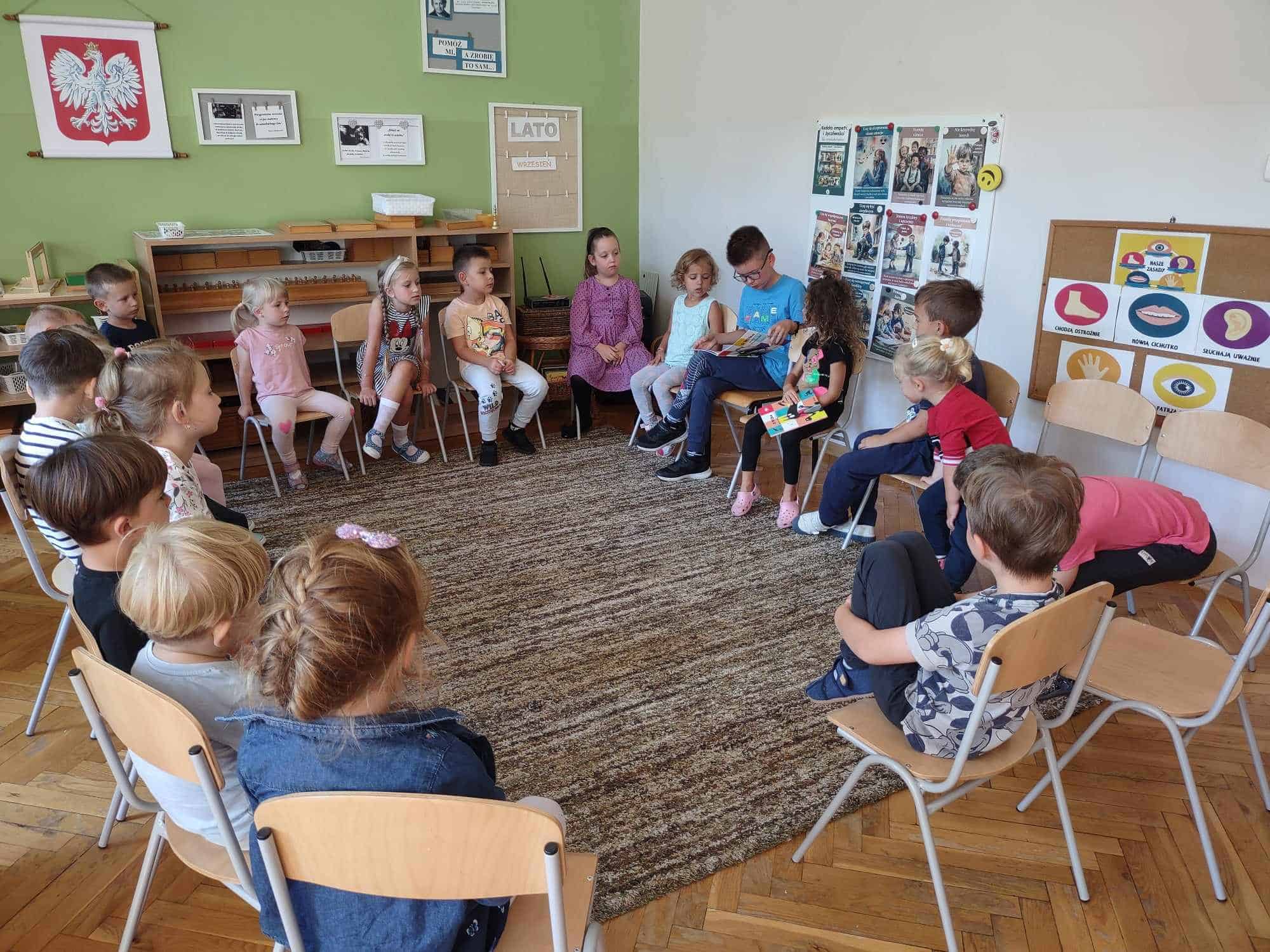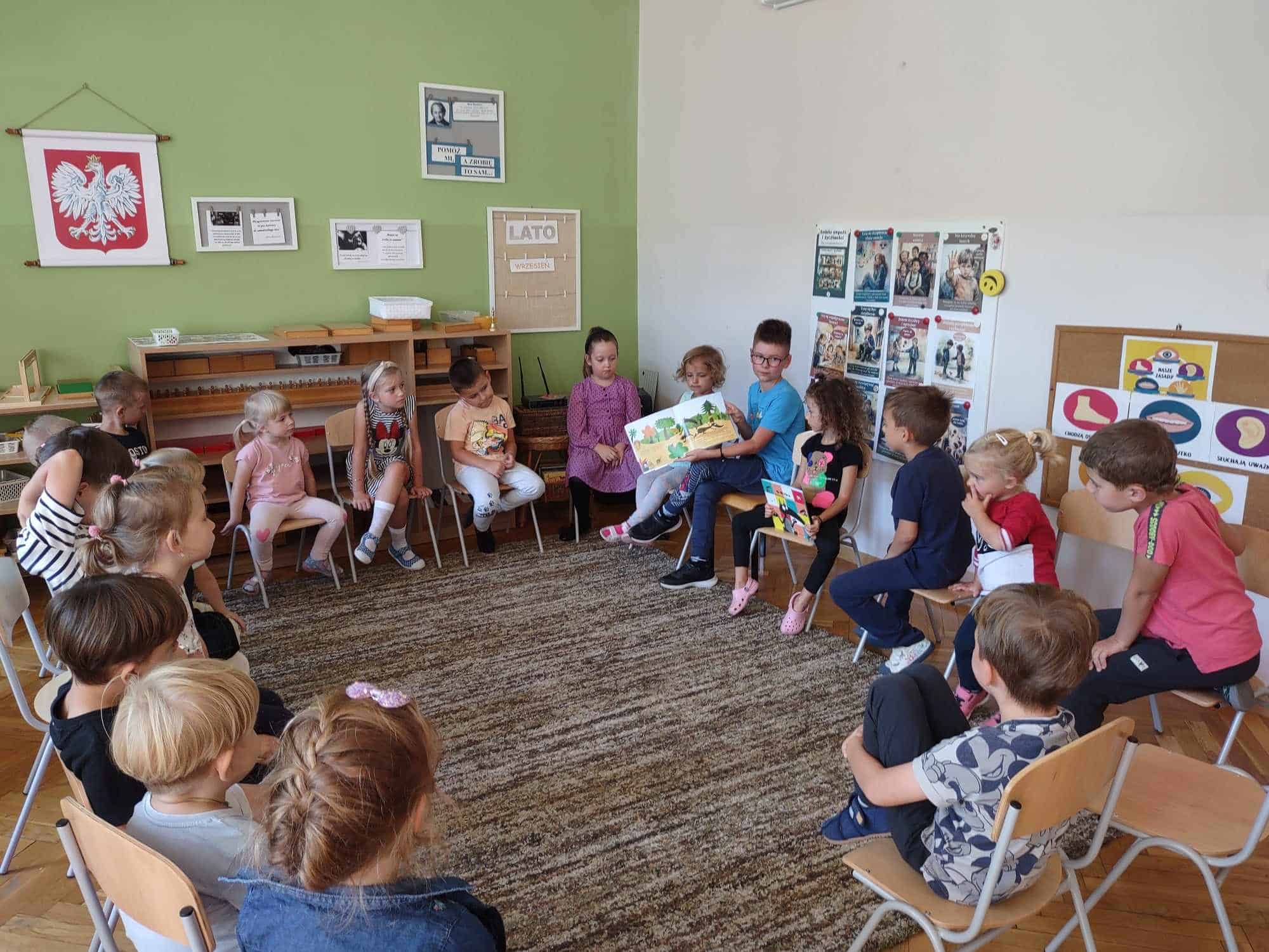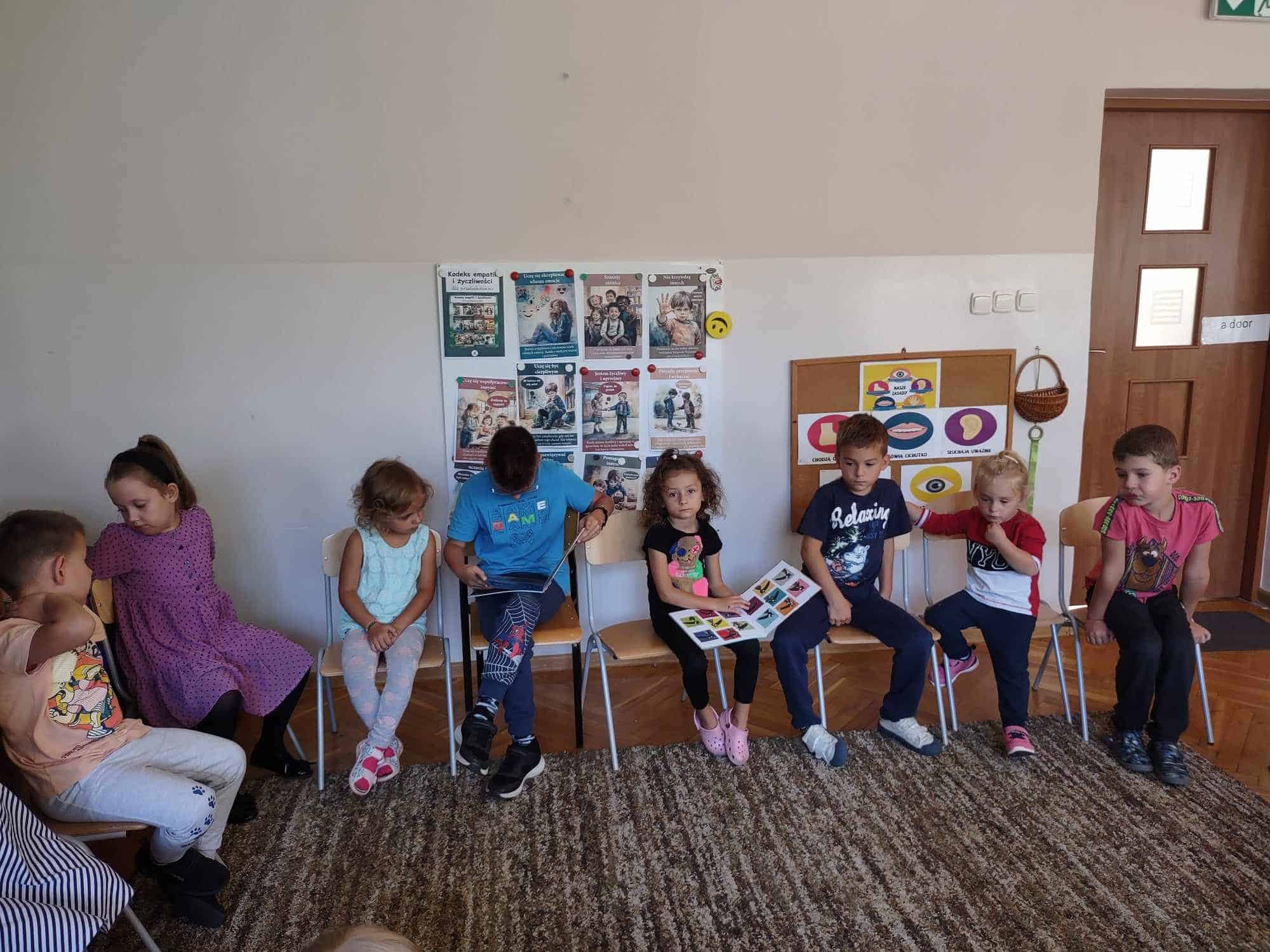 Czytanie dzieciom literatury jest mądrym sposobem spędzania z nimi czasu oraz najlepszą inwestycją w ich przyszłość. W ramach akcji czytelniczej, którą promujemy w naszym przedszkolu od wielu lat, odwiedzają nas członkowie rodzin naszych przedszkolaków. Wizyty te sprawiają dzieciom dużo radości. Dzieci są dumne z tego, że miejsce nauczyciela – miejsce gdzie siedzi jego pani zajmuje jego mamusia, tatuś, czy inna bliska osoba. W tym roku szkolnym akcję czytelniczą w naszej grupie rozpoczęła Pani Monika – mamusia Maciusia. Odwiedziła nas we wtorek 5 września. Przeczytała dzieciom dwa opowiadania: „O wilku, który poleciał w kosmos” oraz „O wilku, który chciał zmienić kolor”. Dzieci z zainteresowaniem słuchały, po czym odpowiadały na pytania naszego Gościa.