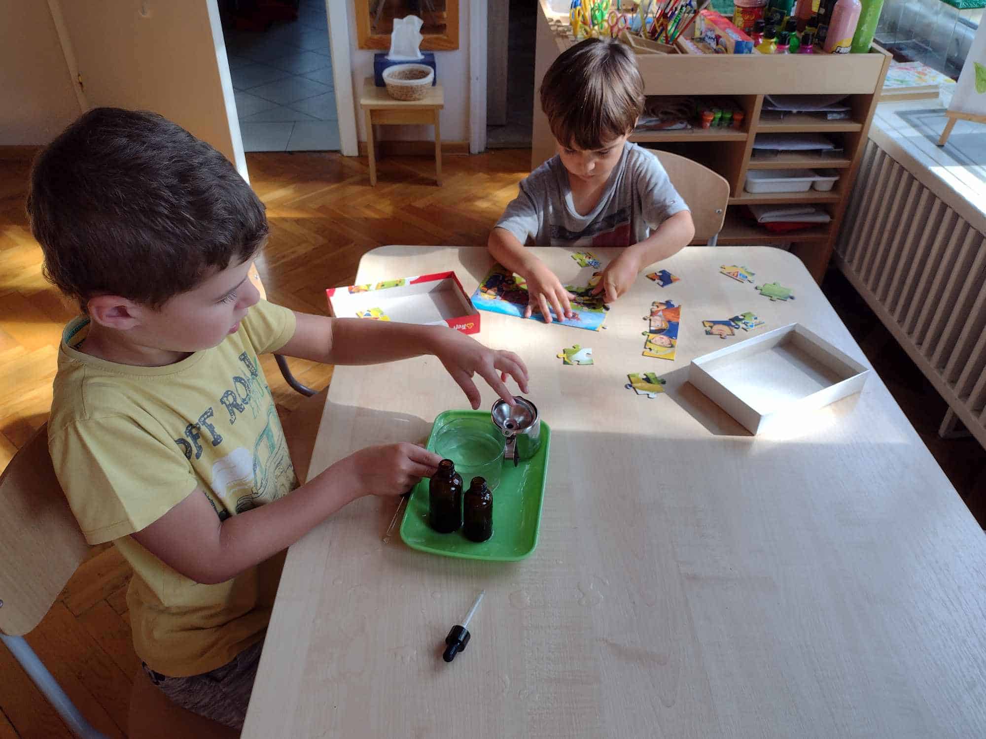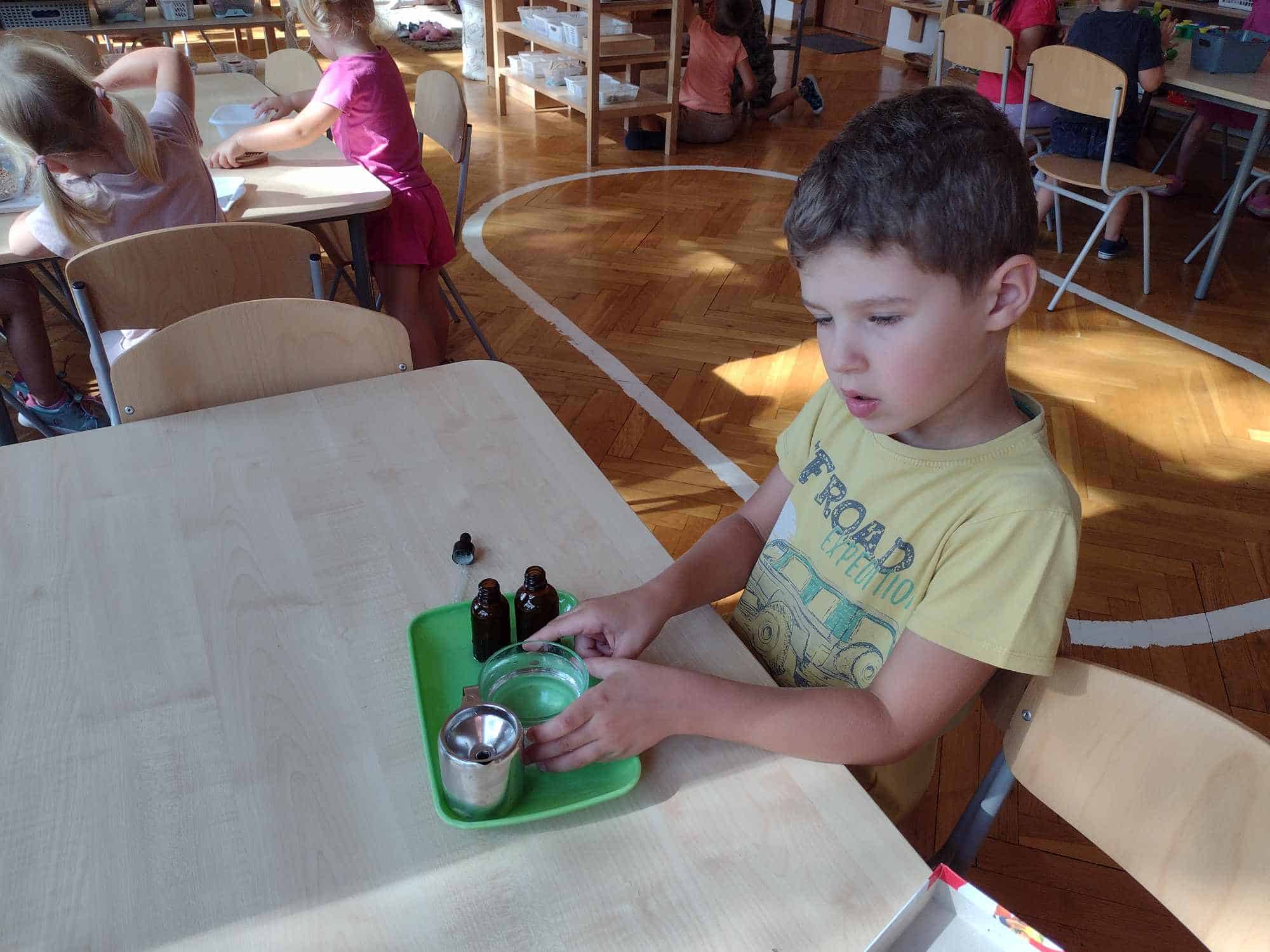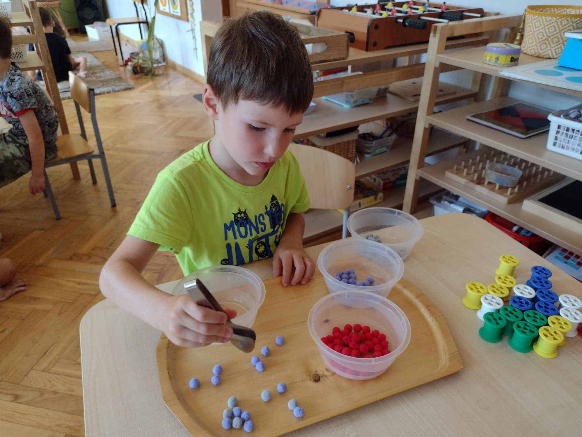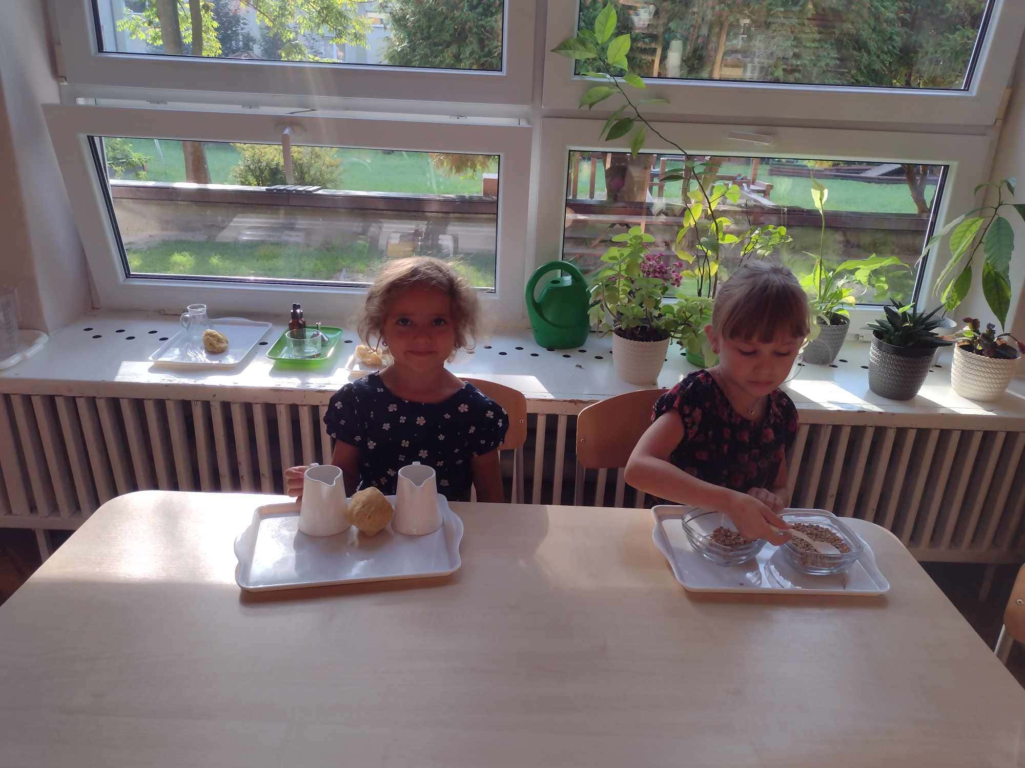 Wszelkie ziarna są doskonałym materiałem do doskonalenia czynności dnia praktycznego, które wspaniale rozwijają koordynację ruchową motoryki małej (która jest ściśle związana z przygotowaniem ręki do pisania), koncentrację uwagi, precyzję, a także pomagają osiągnąć samodzielność. Te ćwiczenia najbardziej wciągnęły najmłodszych członków naszej grupy.