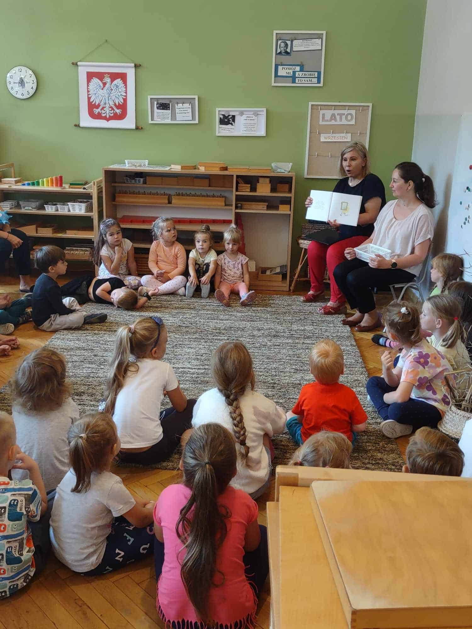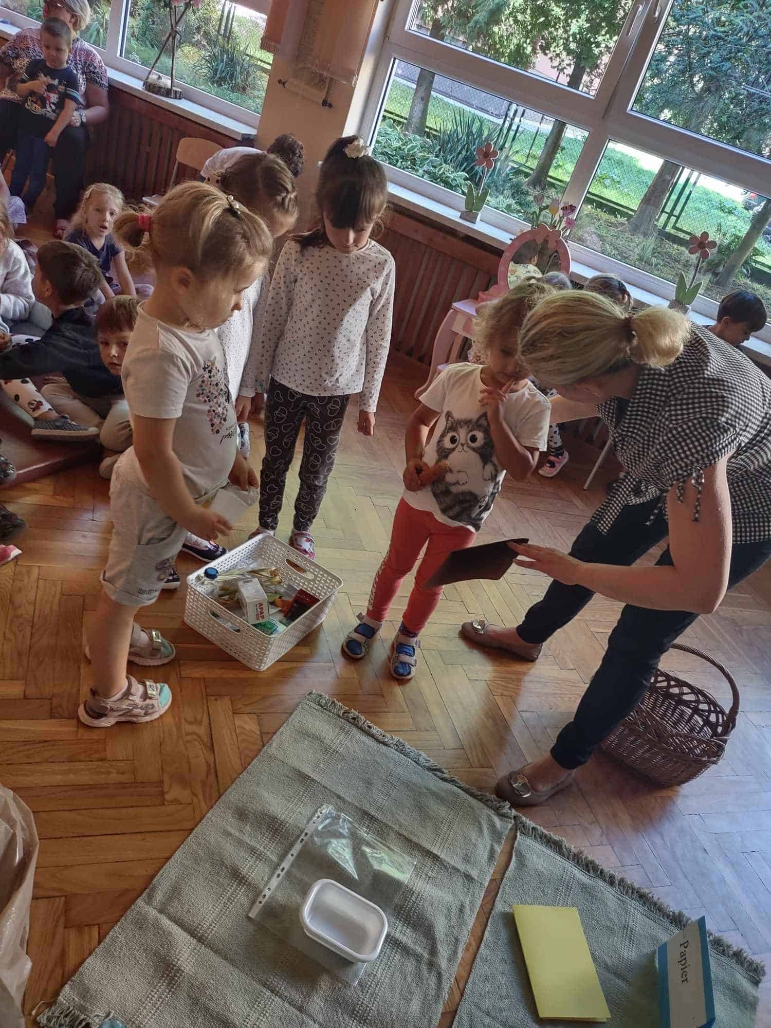 Był też czas na uważne wysłuchiwanie, które ziarna wydają najcichszy dźwięk podczas uderzania w kartkę – wszyscy orzekli jednoznacznie, że są to ziarenka maku. A była przy tym cisza jak makiem zasiał…Później zrobiło się już trochę głośniej, bo postanowiliśmy trochę pomuzykować: rytmizowaliśmy tekst „Siała baba mak”, dzieci wystukiwały rytm na instrumentach perkusyjnych, poznały znaczenie słów „forte” i „piano”. Zatańczyliśmy też do piosenki „Zasiali górale” i pobawiliśmy się w „Koło młyńskie”.