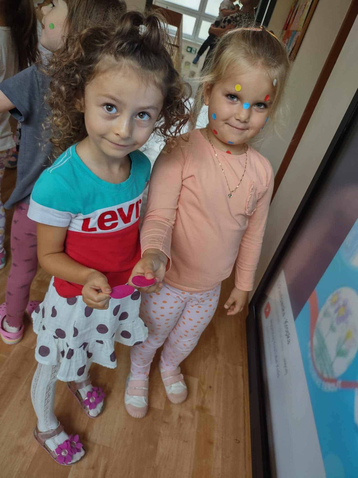 Po wysłuchaniu tej historii i my zaczęliśmy odkrywać pokłady swojej kreatywności, odwagi i wiary w siebie. Dzieci, pod czujnym okiem naszych gości, realizowały różne aktywności z kropką w roli głównej, która, jak mogliśmy się przekonać, potrafiła odmienić sposób patrzenia na siebie. Pomogła uwierzyć!