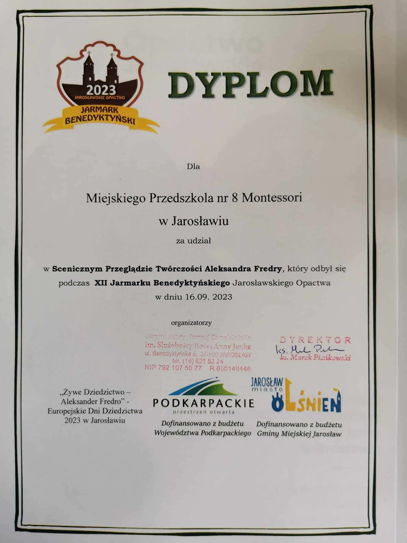 Dzisiaj nasze przedszkole wzięło udział w Scenicznym Przeglądzie Twórczości Aleksandra Fredry, który odbył się podczas w XII JARMARKU BENEDYKTYŃSKIEGO w Jarosławskim Opactwie.