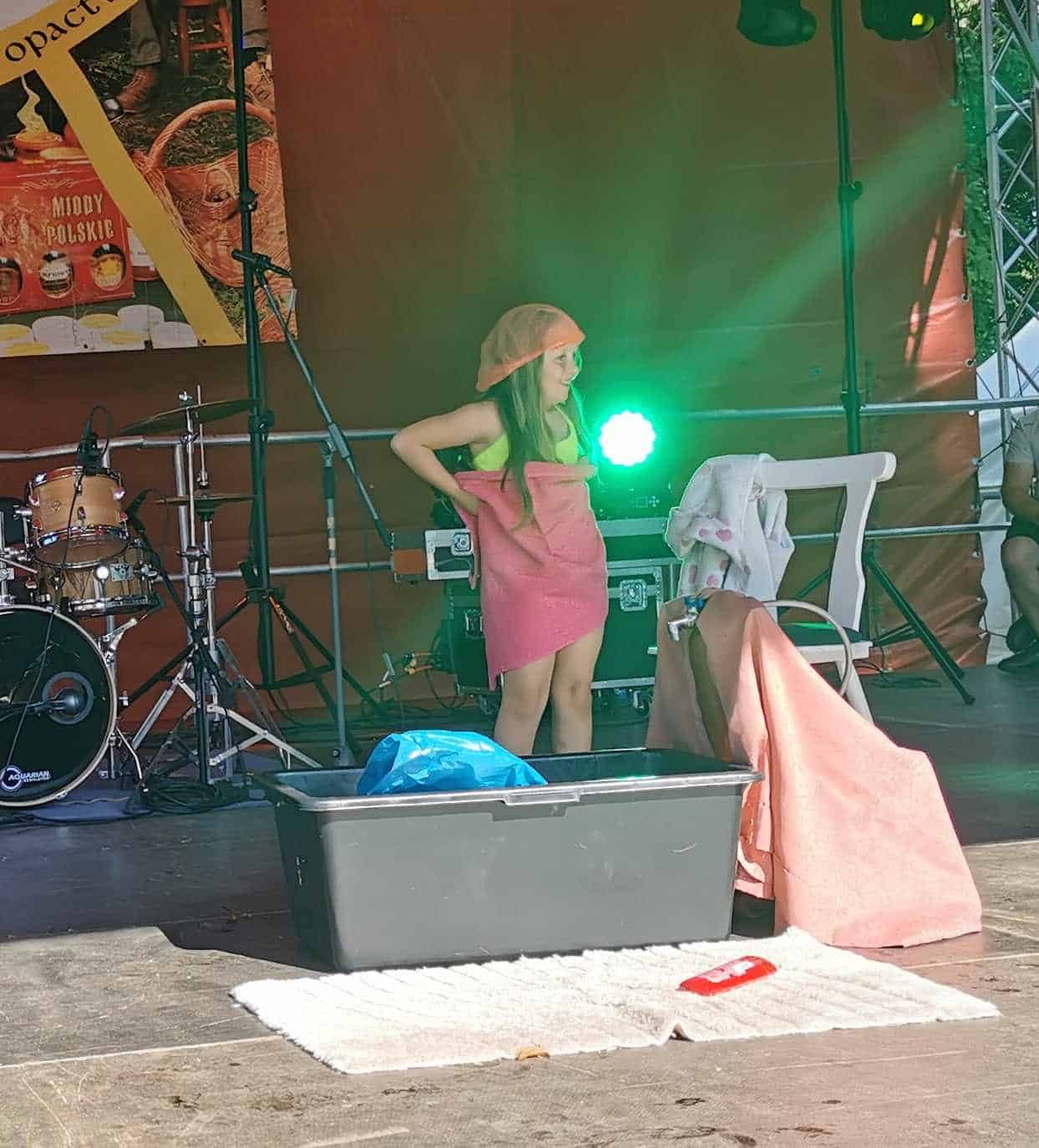 Blanka Mokrzyńska z grupy Zielonej oraz Kornel Zaborniak z grupy Czerwonej godnie reprezentowali nasze przedszkole. Przedszkolaki zaprezentowały się w wierszu „Małpa w kąpieli”. Stroje, rekwizyty oraz gra aktorska wywołały ogromne brawa wśród publiczności. Mali artyści oraz opiekunowie otrzymali słodkie wypiekane serce oraz słoiczek z konfiturami. Wyroby te powstały w Jarosławskim Opactwie.