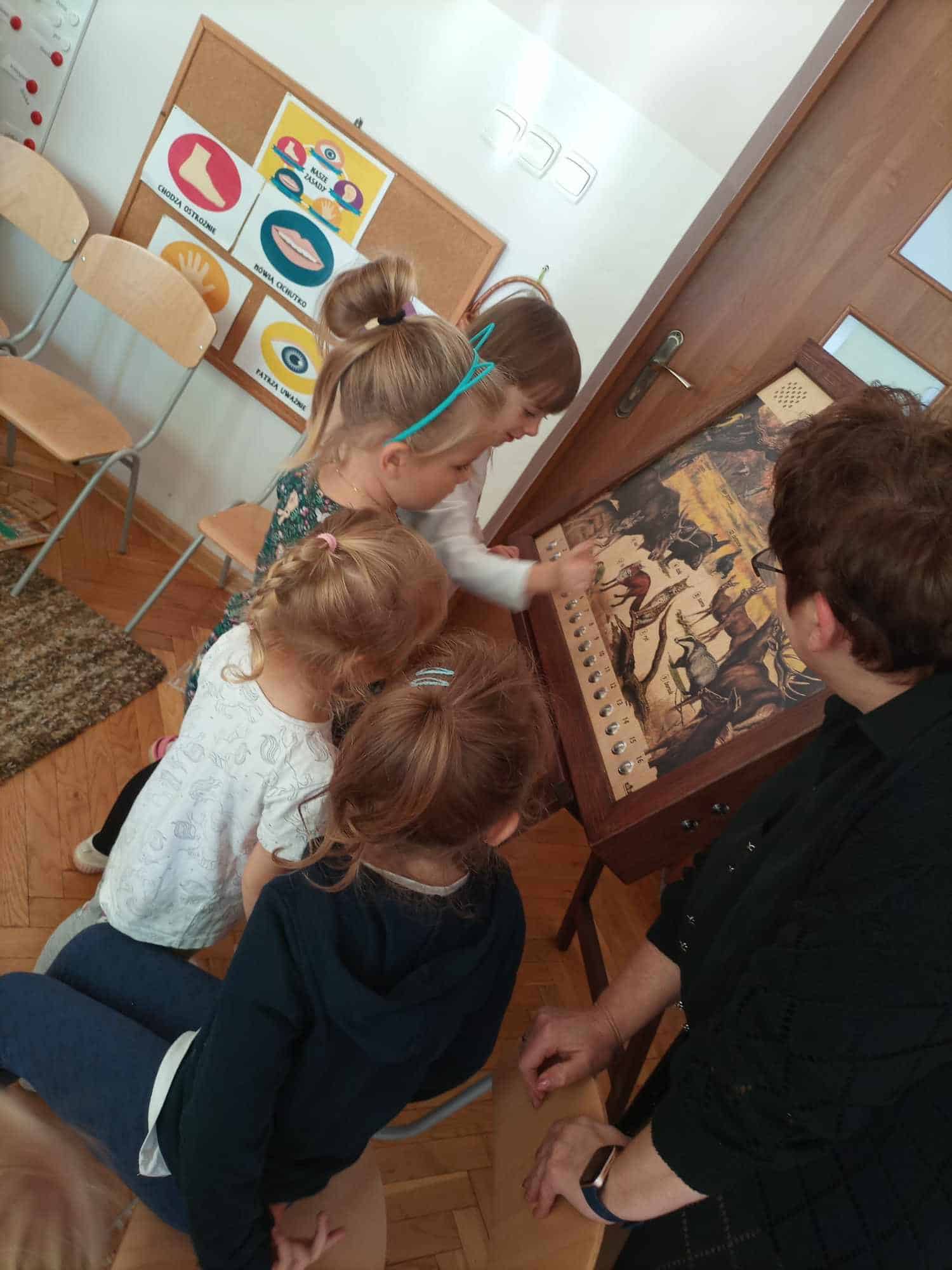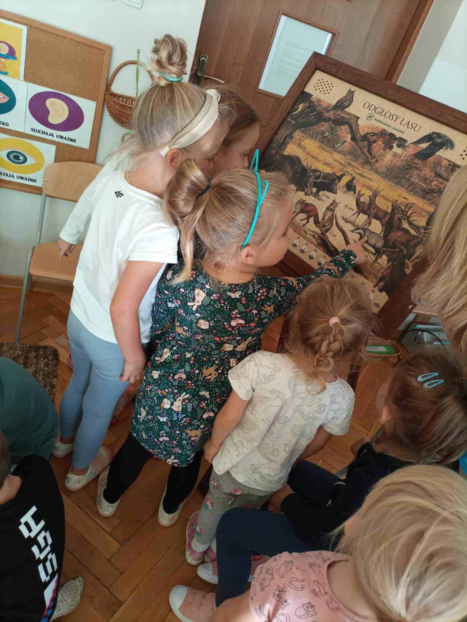 Wspaniałą atrakcją dla dzieci okazała się tablica odgłosów zwierząt leśnych, którą przywiózł do nas nasz gość. Dzieci były oczarowane tym rekwizytem. Dużo radości sprawiło im odgadywanie poszczególnych odgłosów zwierzyny leśnej. Niektóre z tych odgłosów bardzo nas zadziwiały, bo nigdy nie przypuszczalibyśmy, że właśnie takie dźwięki wydają akurat te zwierzęta. To było fantastyczne doświadczenie😍