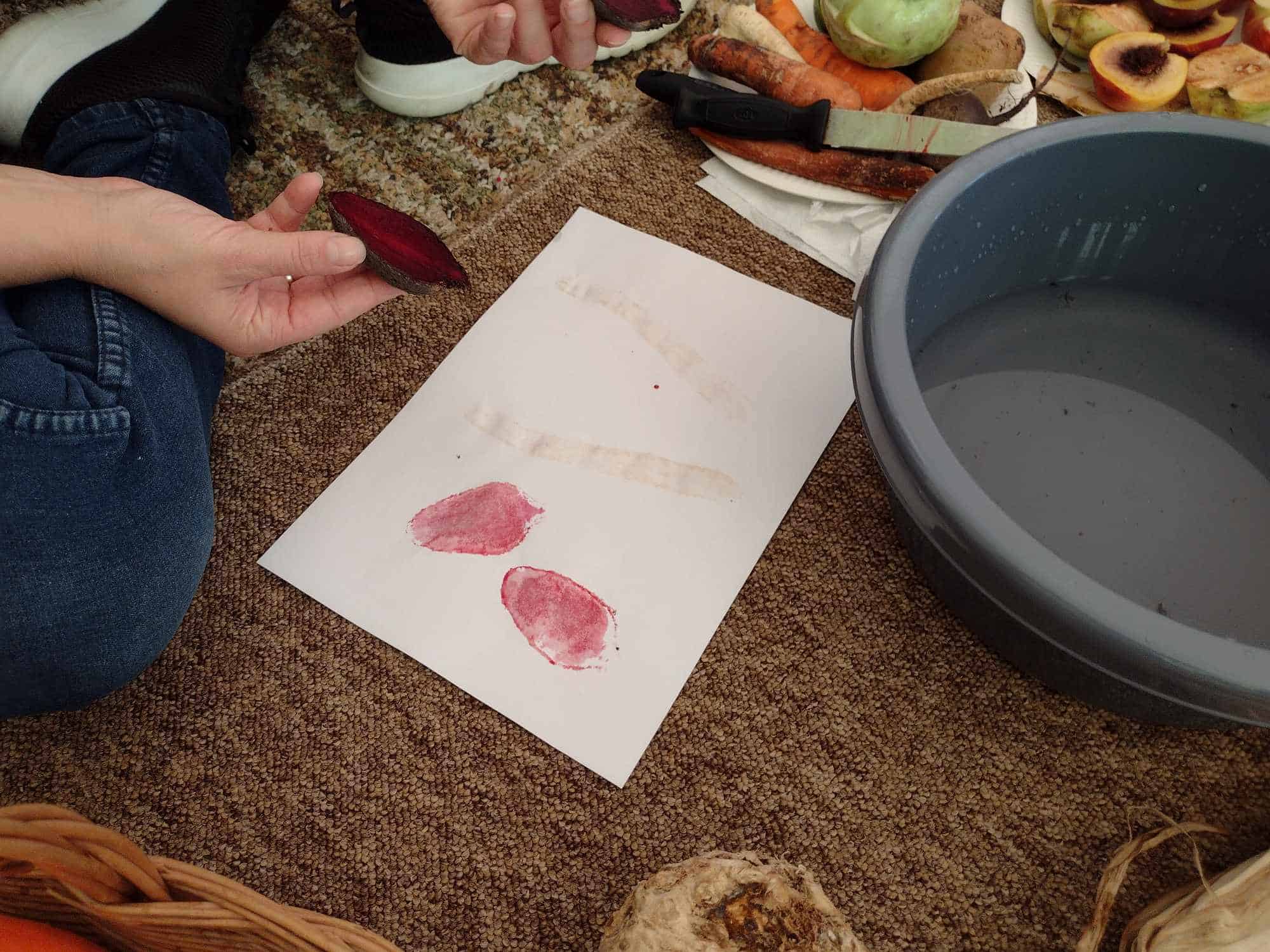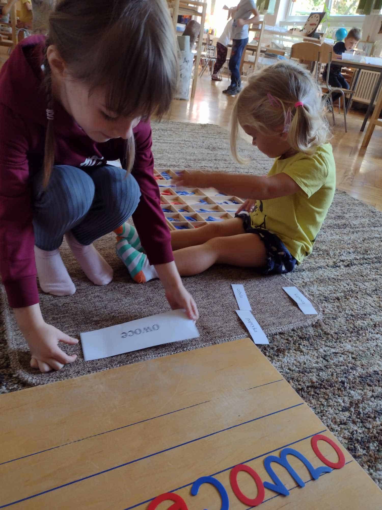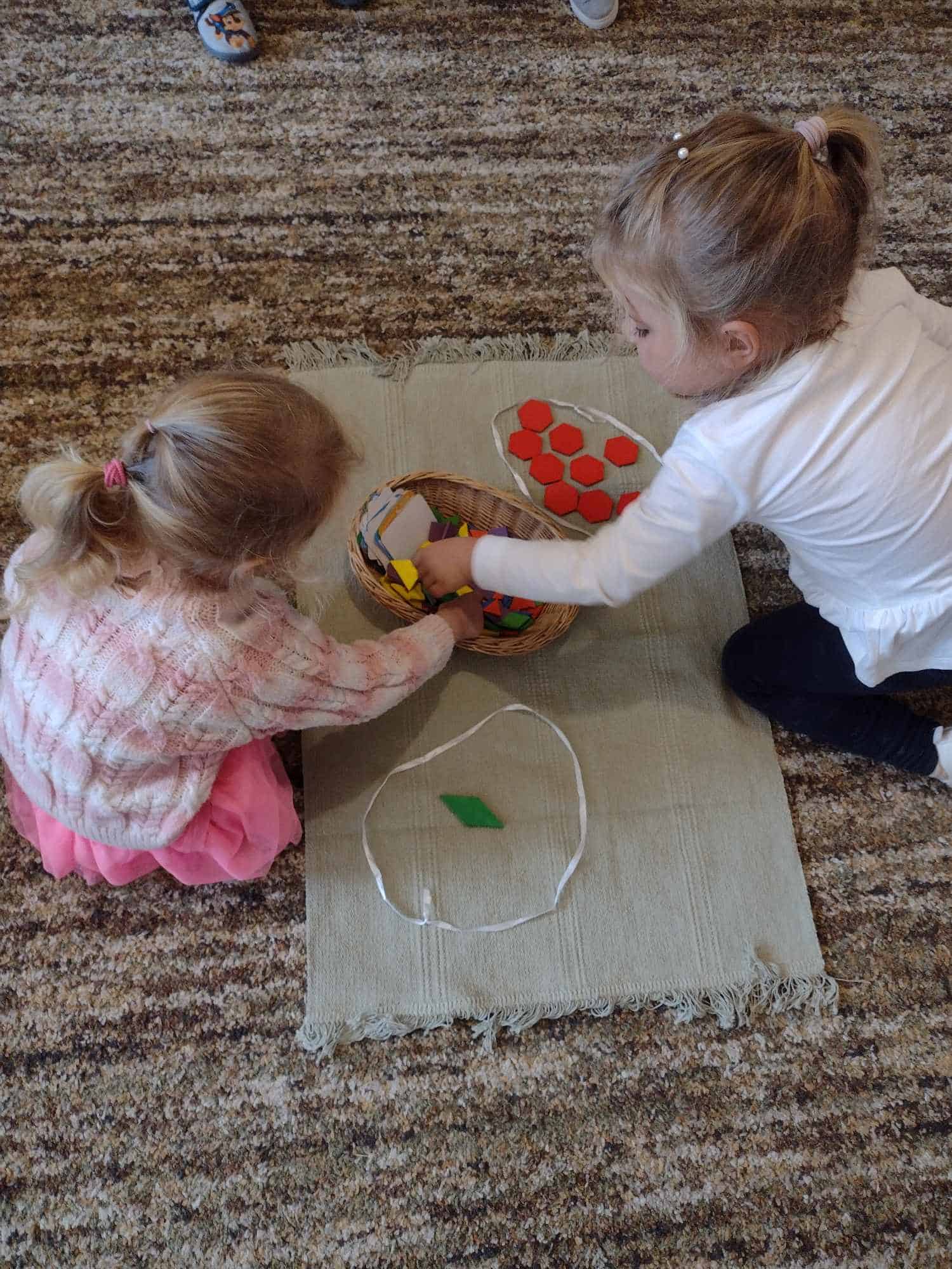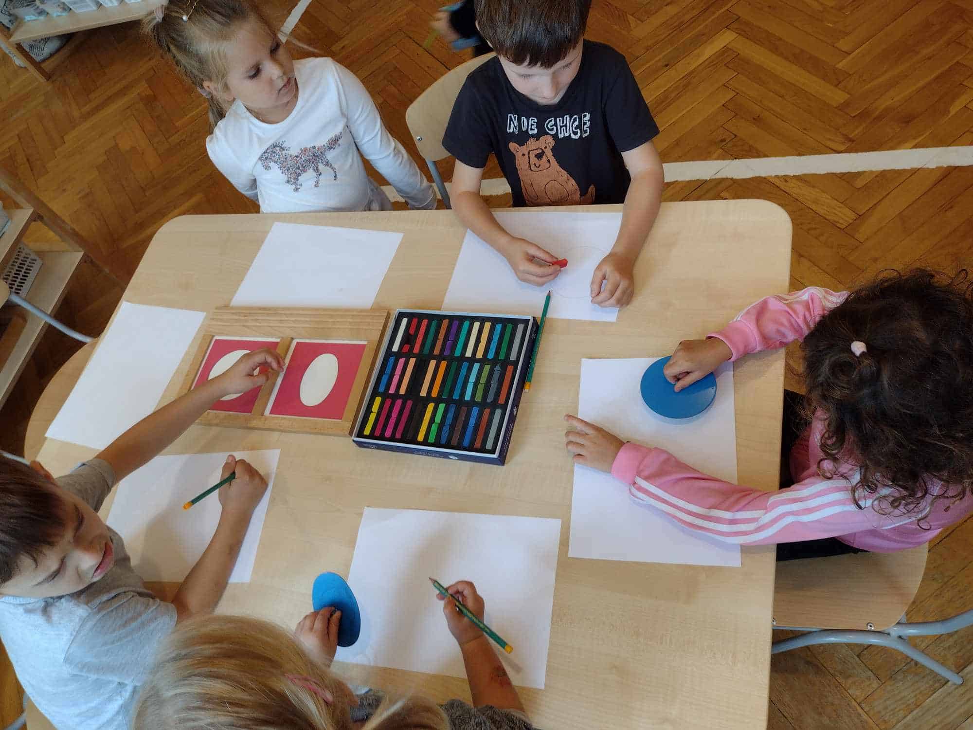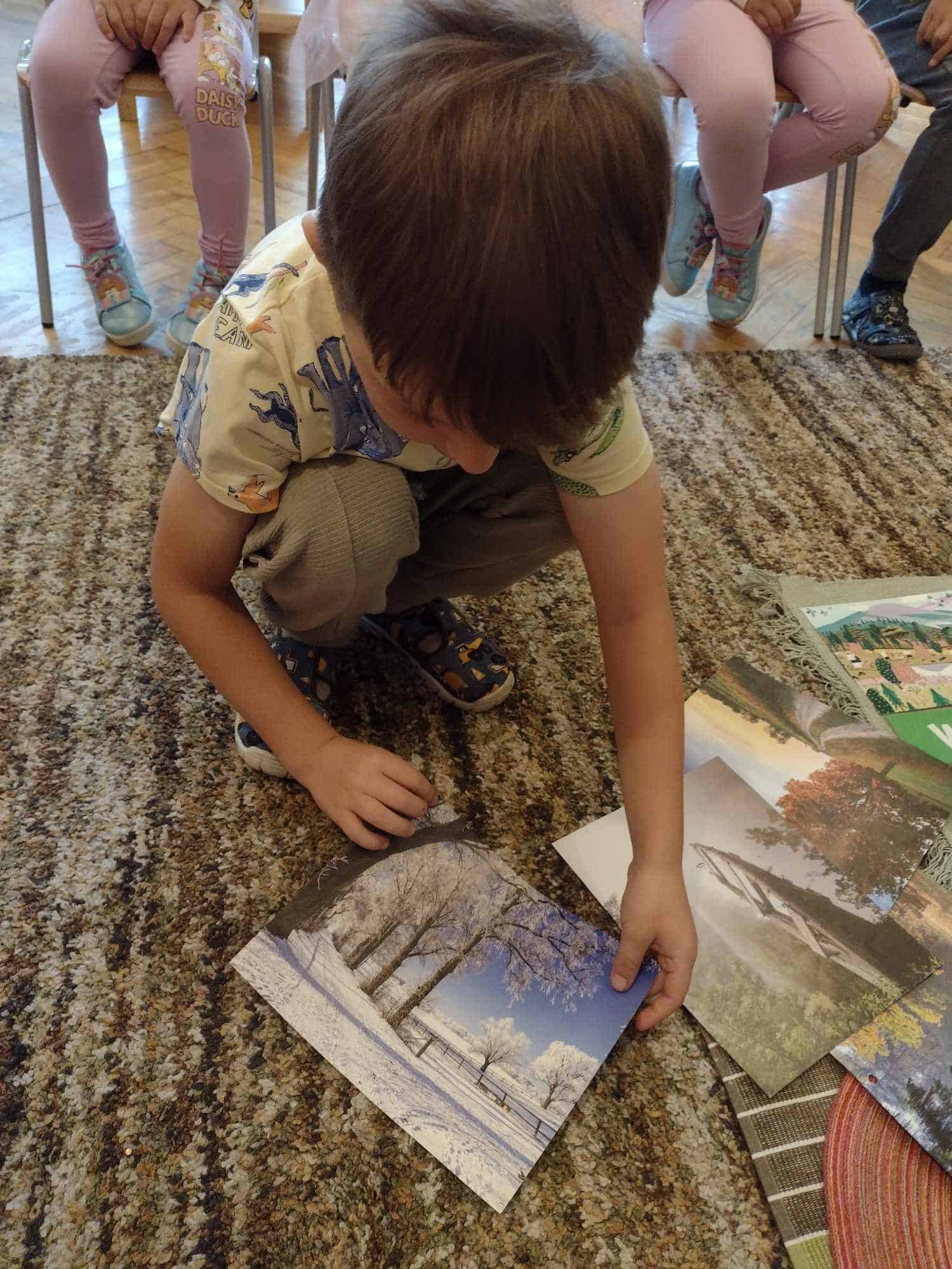 W ostatnim tygodniu dzieci z grupy zielonej przywitały Jesień, która zawitała także do ich sali. Na początku tygodnia przypomnieliśmy sobie nazwy pór roku i dopasowaliśmy nazwy do ilustracji. Później dzieci zaprosiły Jesień do sali – przyszła z pełnym koszem owoców i warzyw, a w torebce przyniosła jesienną pogodę i jesienne zagadki. Dzieci oglądały dary jesieni z grządek, ogrodów i sadów, nazywały je, a także rozdzieliły na zbiór owoców i warzyw. Starszaki dobierały podpisy do owoców i warzyw. Tworzyliśmy też zbiory w danym kolorze, a także zbiory figur geometrycznych i przeliczaliśmy elementy w zbiorach. Nauczyliśmy się piosenki o Jesieni z pełnym koszem, wspólnie zaśpiewaliśmy i zagraliśmy na instrumentach. Aby usprawnić motorykę małą i przygotować rękę do pisania, dzieci pracowały z metalowymi matrycami, odrysowując kształty owoców (jabłka gruszki i śliwki), które następnie wypełniały suchymi pastelami. Poznaliśmy też budowę dyni przy pomocy kart trójdzielnych, a następnie użyliśmy prawdziwej dyni – dzieci wskazywały poszczególne elementy, wyłuskiwały i przeliczały pestki. Graliśmy też w dyniowe kręgle. Był też czas na owocowe wyszywanki, pracę z szorstkim, ruchomym i żłobionym alfabetem. Rozmawialiśmy o przygotowaniu jedzenia do spożycia, myliśmy owoce, oglądaliśmy i porównywaliśmy wnętrze owoców i warzyw. Mówiliśmy o witaminach, które zawarte są w owocach i warzywach, sprawdzaliśmy jakie kolory pozostawiają warzywne stemple. Chłopcy intensywnie zajęli się łuskaniem fasoli i orzechów, a na koniec mogliśmy spróbować jak smakują przyniesione przez dzieci dary Jesieni.