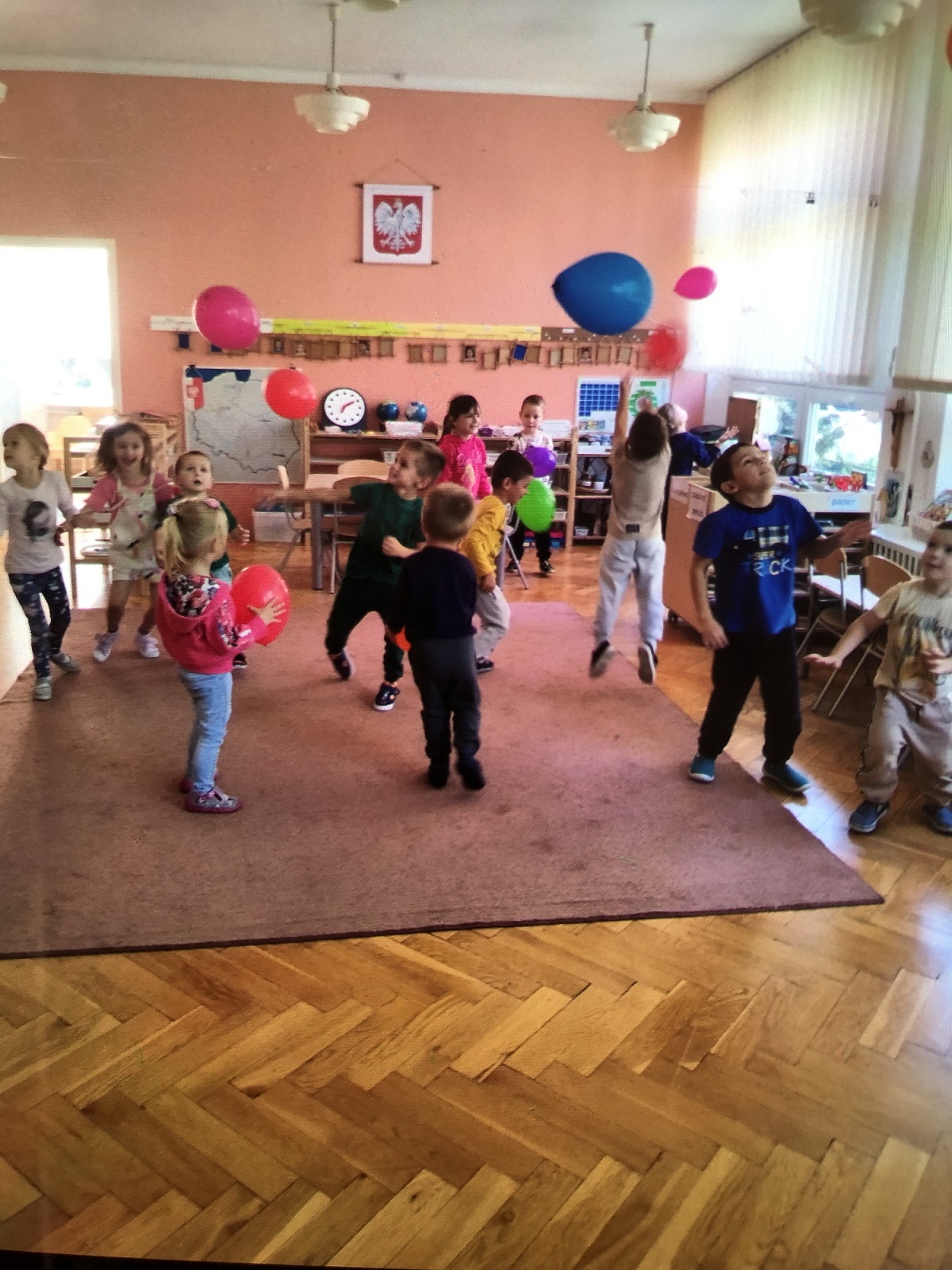 Były tańce, zabawy ruchowe, zabawy z chustą Klanza oraz balonami. Dziewczynki na koniec wręczyły chłopcom prezenty oraz złożyły życzenia. Był to dzień pełen wrażeń, radości i dobrej zabawy.