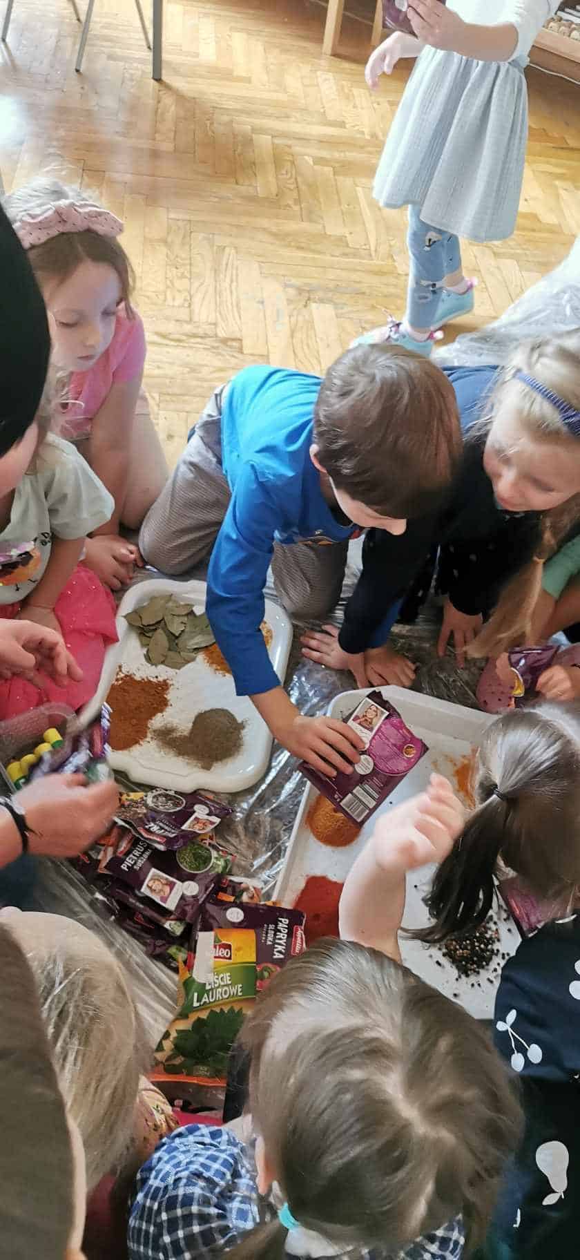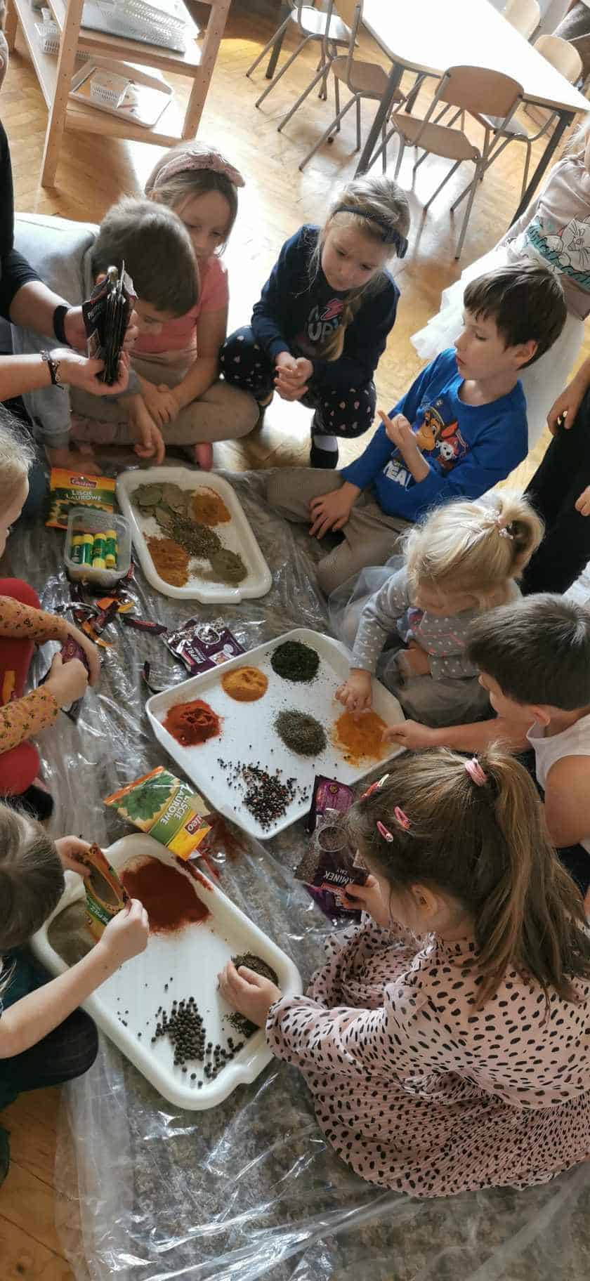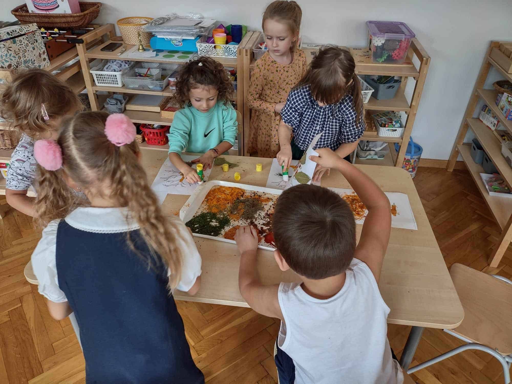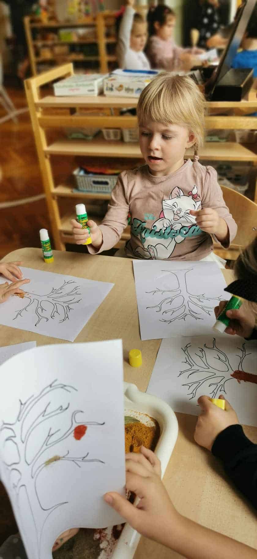 Motywem przewodnim większości jesiennych prac są oczywiście drzewa. Piękne jesienne kolory towarzyszą im niezmiennie. Dzieci z Grupy Zielonej, chcąc jeszcze bardziej „zanurzyć” się w kolorach jesieni postanowiły wykonać drzewo jesienne przy użyciu kleju i … przypraw ☺️, tak dokładnie przypraw dostępnych w każdej kuchni. Do naszych prac wykorzystaliśmy czerwoną paprykę, pieprz czarny, ziołowy i kolorowy, kminek, kurkumę, curry, ziele angielskie, liść laurowy, gałkę muszkatołowa, majeranek, bazylię, koperek i rozmaryn. Malowanie przyprawami było dla nas nie tylko fantastyczną zabawą, ale także ciekawą lekcją, podczas której nazywaliśmy poszczególne przyprawy i uczyliśmy się je rozróżniać po wyglądzie i zapachu. To był bardzo twórczo i pachnąco spędzony czas 😍