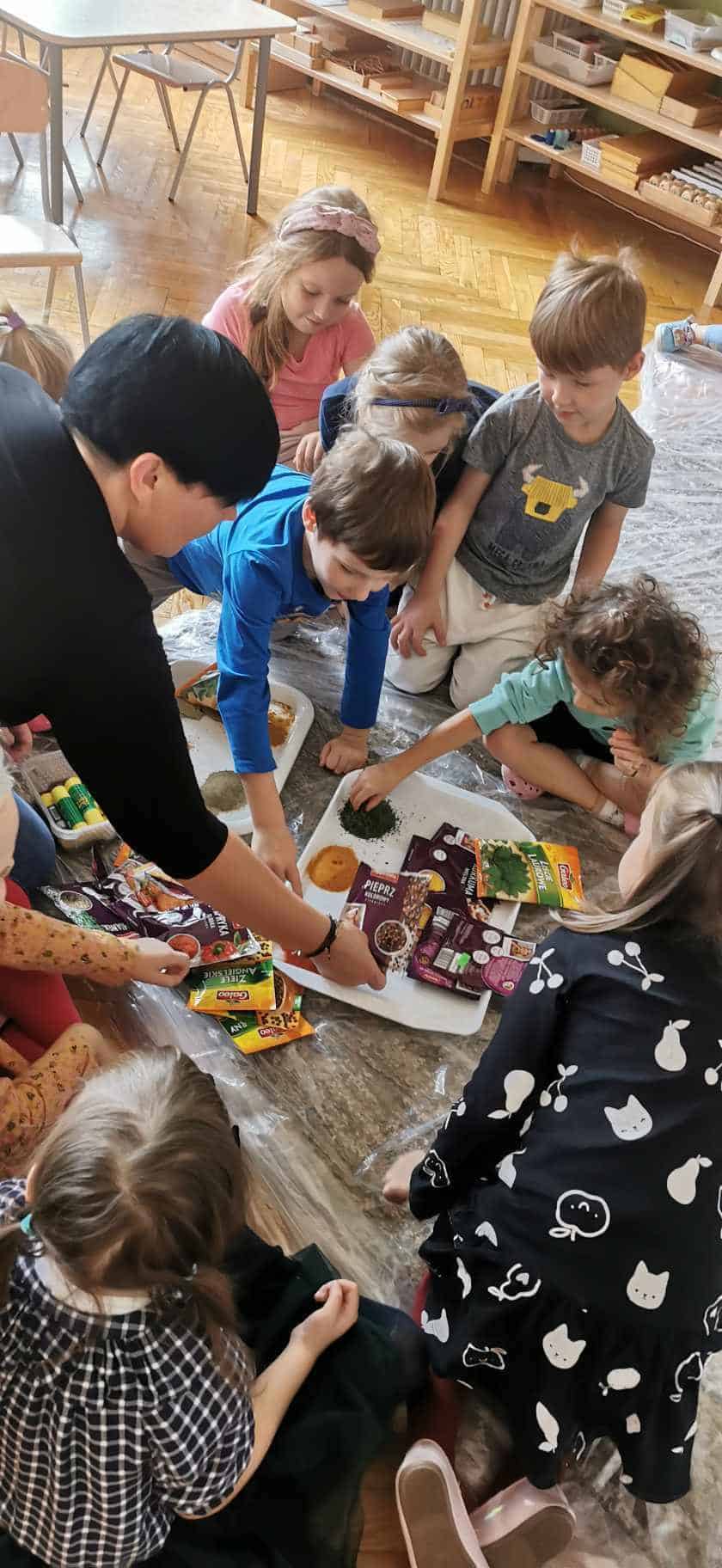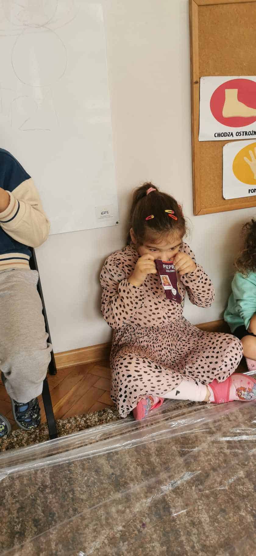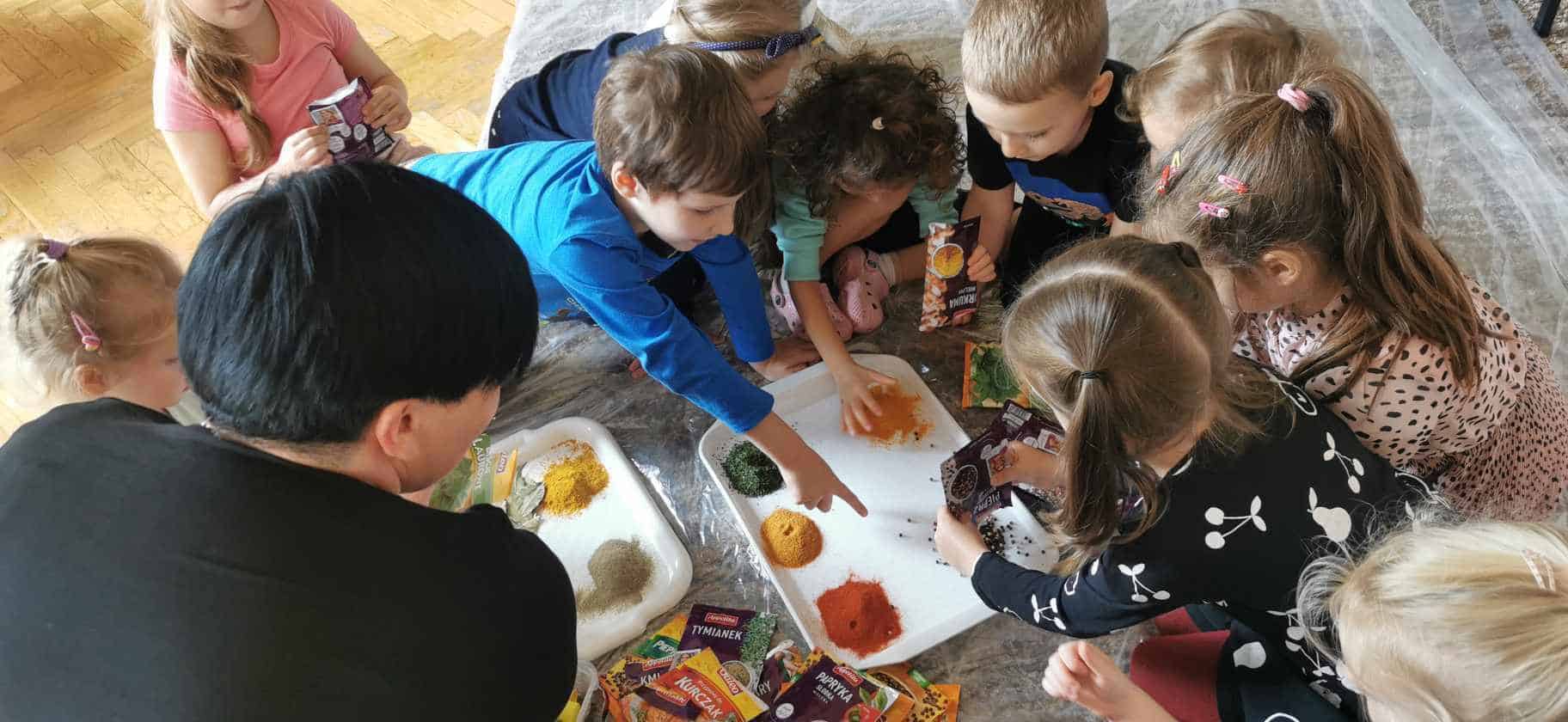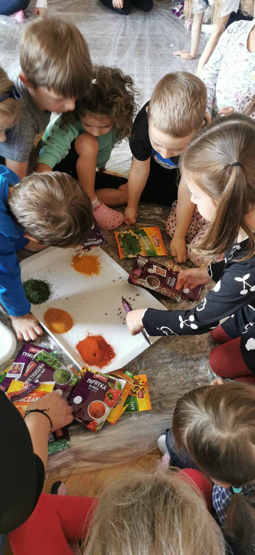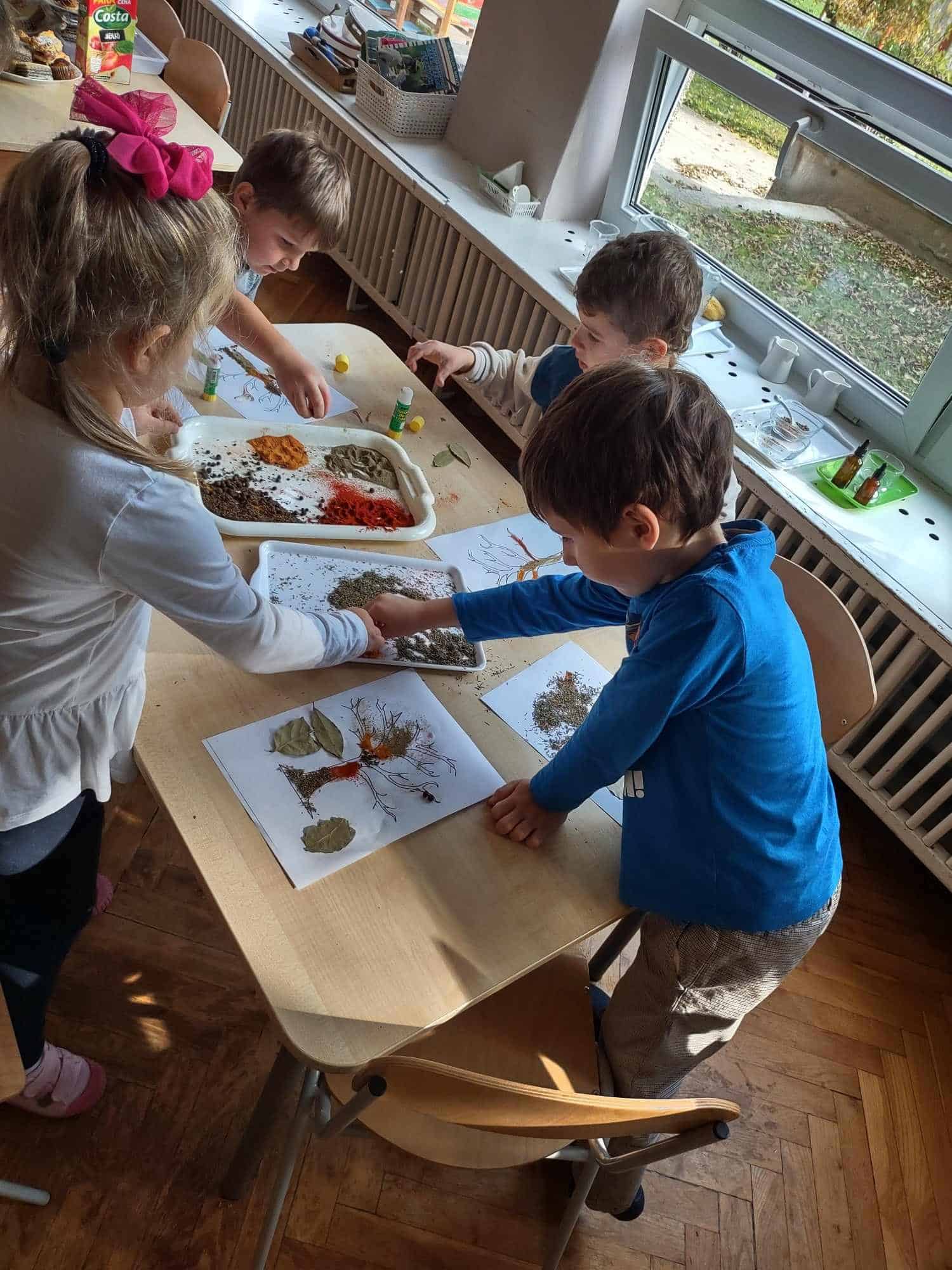 Motywem przewodnim większości jesiennych prac są oczywiście drzewa. Piękne jesienne kolory towarzyszą im niezmiennie. Dzieci z Grupy Zielonej, chcąc jeszcze bardziej „zanurzyć” się w kolorach jesieni postanowiły wykonać drzewo jesienne przy użyciu kleju i … przypraw ☺️, tak dokładnie przypraw dostępnych w każdej kuchni. Do naszych prac wykorzystaliśmy czerwoną paprykę, pieprz czarny, ziołowy i kolorowy, kminek, kurkumę, curry, ziele angielskie, liść laurowy, gałkę muszkatołowa, majeranek, bazylię, koperek i rozmaryn. Malowanie przyprawami było dla nas nie tylko fantastyczną zabawą, ale także ciekawą lekcją, podczas której nazywaliśmy poszczególne przyprawy i uczyliśmy się je rozróżniać po wyglądzie i zapachu. To był bardzo twórczo i pachnąco spędzony czas 😍