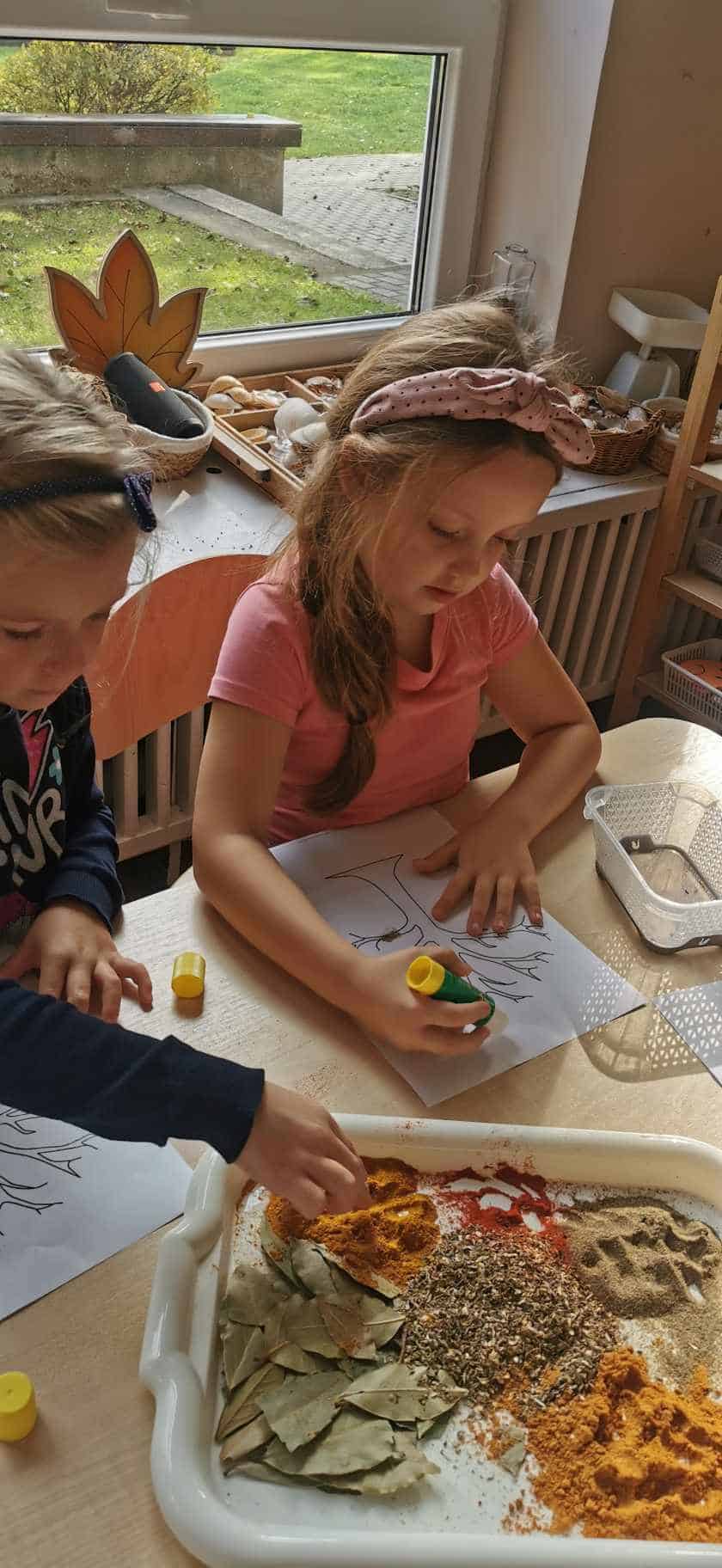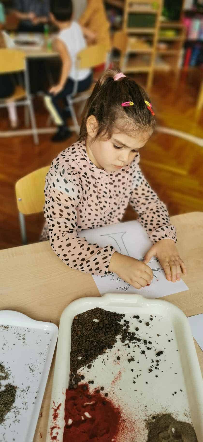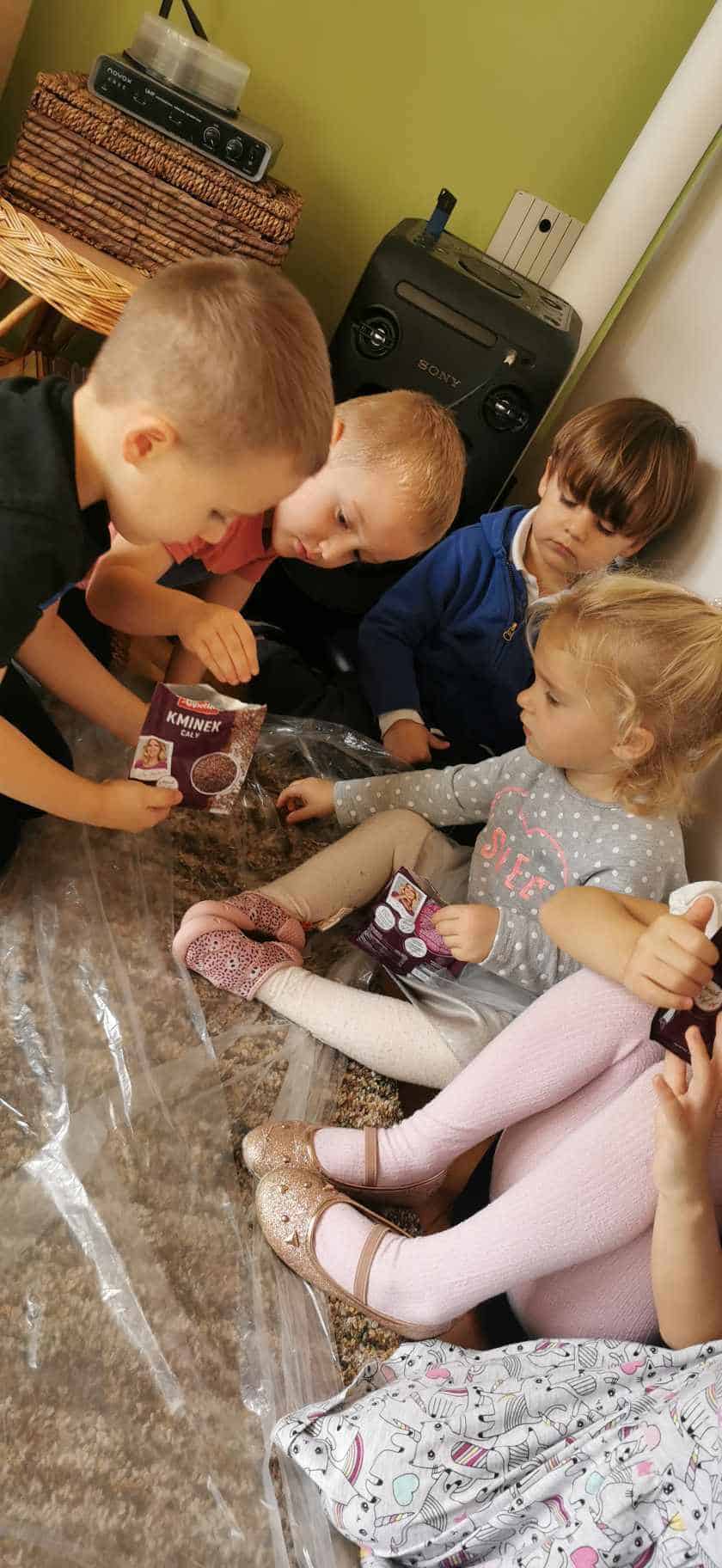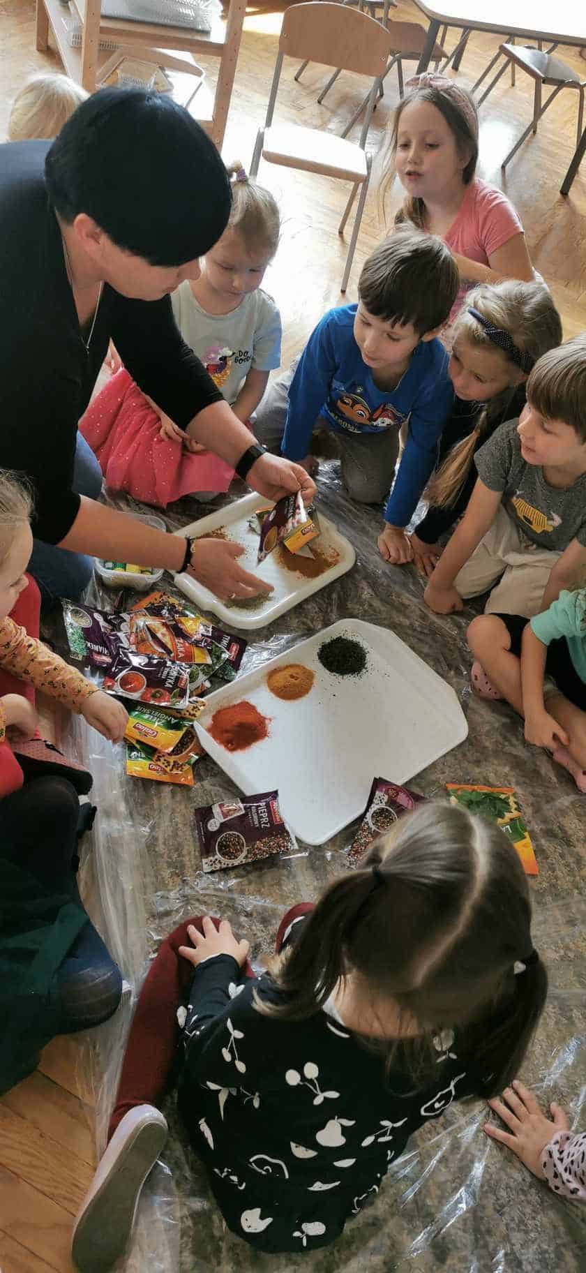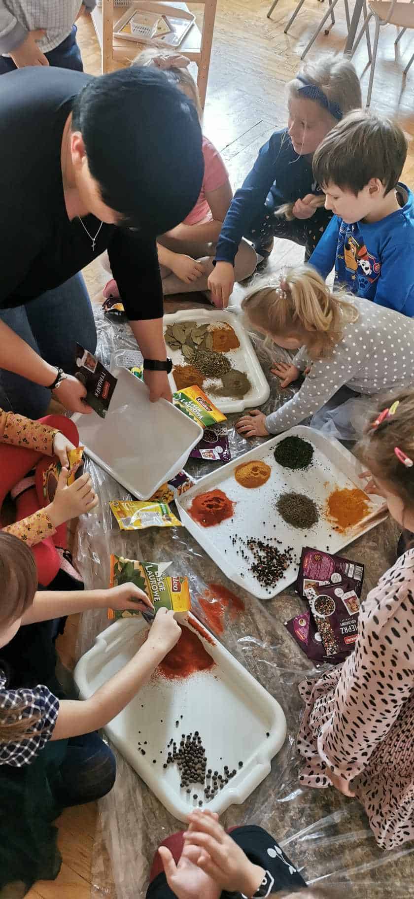 Motywem przewodnim większości jesiennych prac są oczywiście drzewa. Piękne jesienne kolory towarzyszą im niezmiennie. Dzieci z Grupy Zielonej, chcąc jeszcze bardziej „zanurzyć” się w kolorach jesieni postanowiły wykonać drzewo jesienne przy użyciu kleju i … przypraw ☺️, tak dokładnie przypraw dostępnych w każdej kuchni. Do naszych prac wykorzystaliśmy czerwoną paprykę, pieprz czarny, ziołowy i kolorowy, kminek, kurkumę, curry, ziele angielskie, liść laurowy, gałkę muszkatołowa, majeranek, bazylię, koperek i rozmaryn. Malowanie przyprawami było dla nas nie tylko fantastyczną zabawą, ale także ciekawą lekcją, podczas której nazywaliśmy poszczególne przyprawy i uczyliśmy się je rozróżniać po wyglądzie i zapachu. To był bardzo twórczo i pachnąco spędzony czas 😍