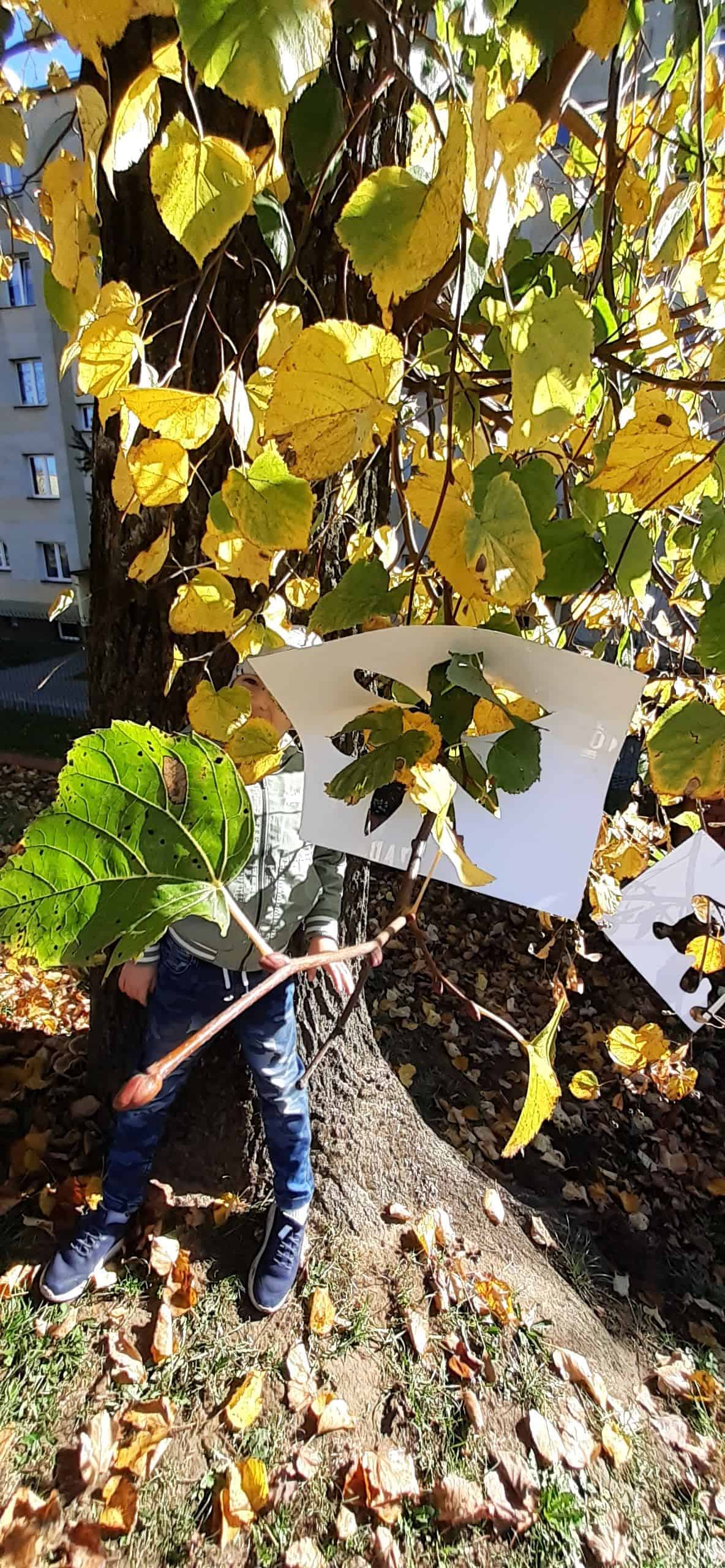 Jesień to pora roku, która nie cieszy się często największą popularnością. Dla niektórych jest to czas szarości, pluchy i nostalgii. Ale pogoda nam sprzyja, świeci słońce, jest ciepło, pięknie i kolorowo. Była to wspaniała okazja do poszukiwania najpiękniejszych jesiennych okazów i jesiennych barw. Tym bardziej, że nasz ogród przedszkolny ubrany jest w brązy, czerwienie, żółcienie a promienie słońca przenikają przez korony drzew – jest jednym słowem pięknie. Zadaniem dzieci było za pomocą szablonów wychwycić piękno jesieni oraz pokazać jej różnorodność kolorystyczną. Efekty poszukiwań dzieci są doskonałe. Brawo.