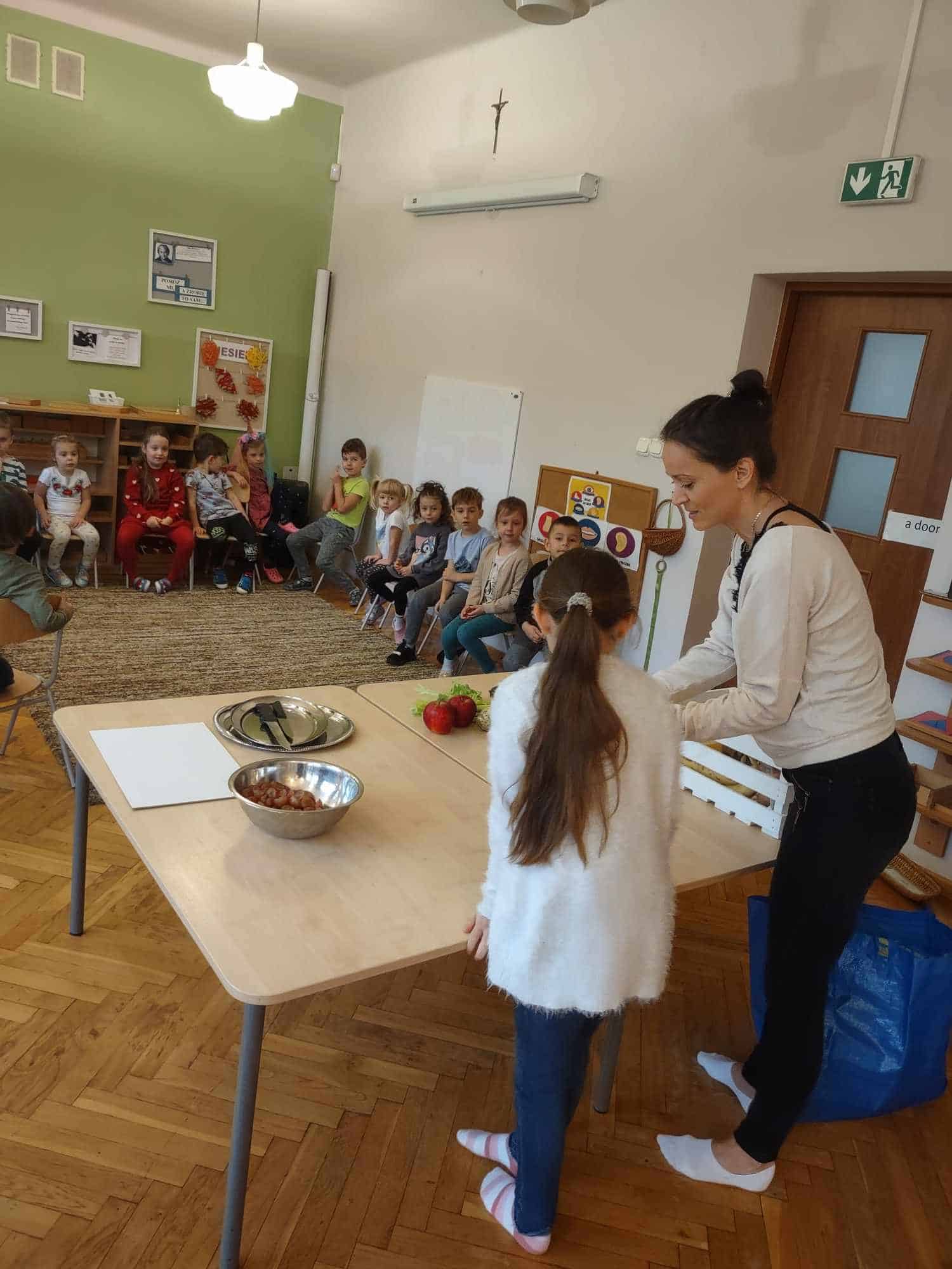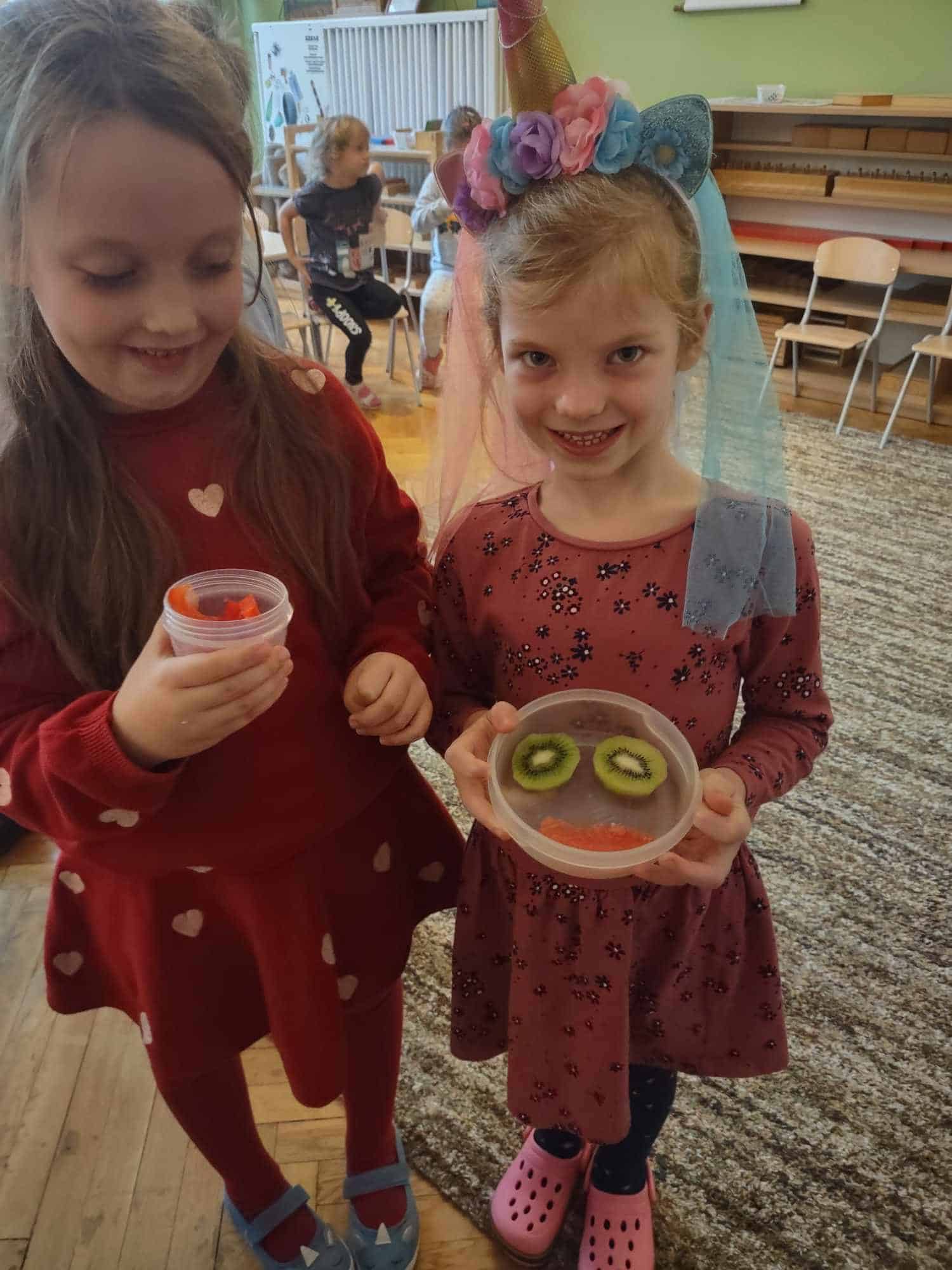 We wtorek, 31 października, mieliśmy niezmierną przyjemność powitać w naszych progach fantastycznych gości – Panią Madzię i Nel – absolwentkę naszej grupy, które odwiedziły nas i zabrały wszystkich w niebywałą podróż, podróż do świata zmysłów, gdyż odwiedziny naszych gości to nie była taka zwykła, koleżeńska wizyta, ale Pani Madzia wraz z Nel przygotowały dla naszych przedszkolaków bardzo ciekawe zajęcia o wdzięcznym tytule „Smakowanie – zgadywanie. Rozpoznawanie owoców i warzyw po smaku i zapachu”