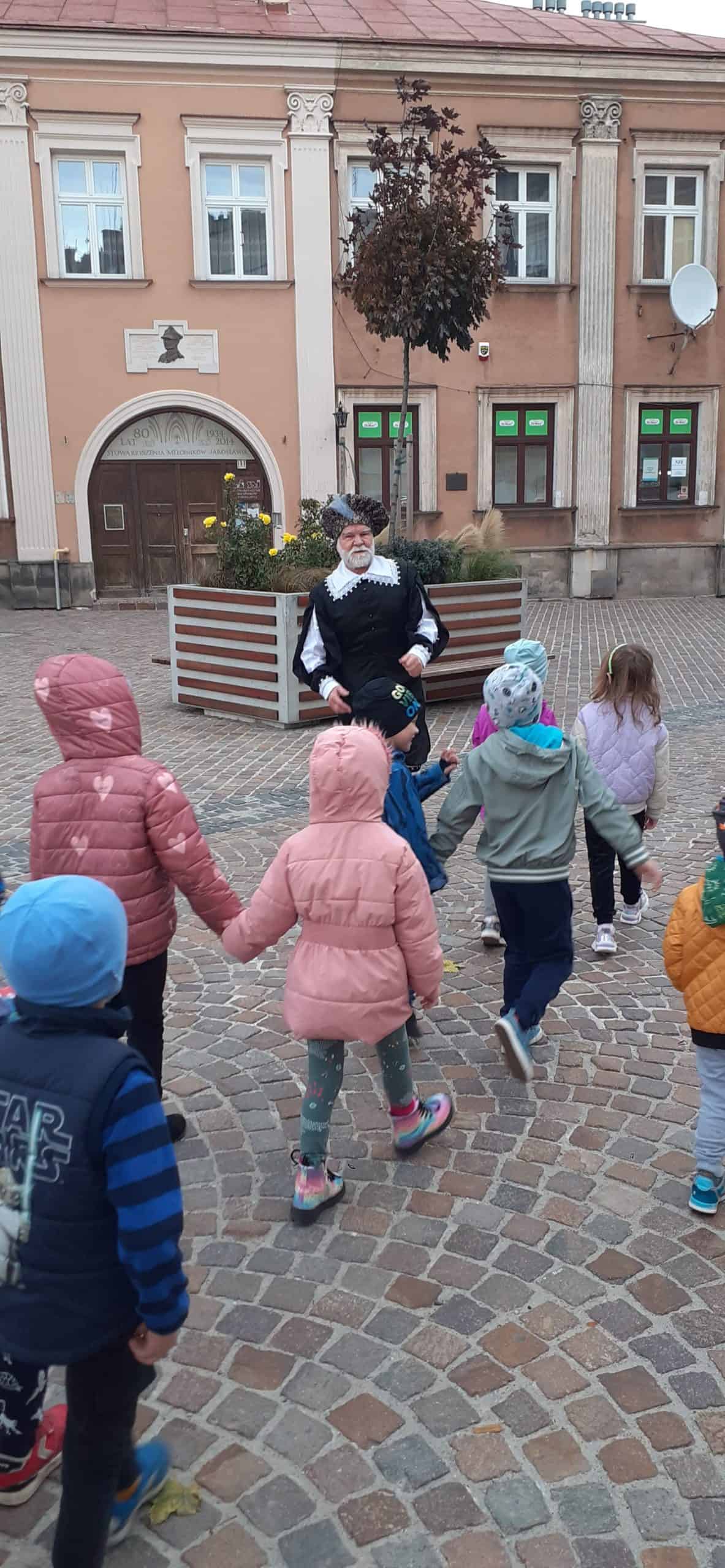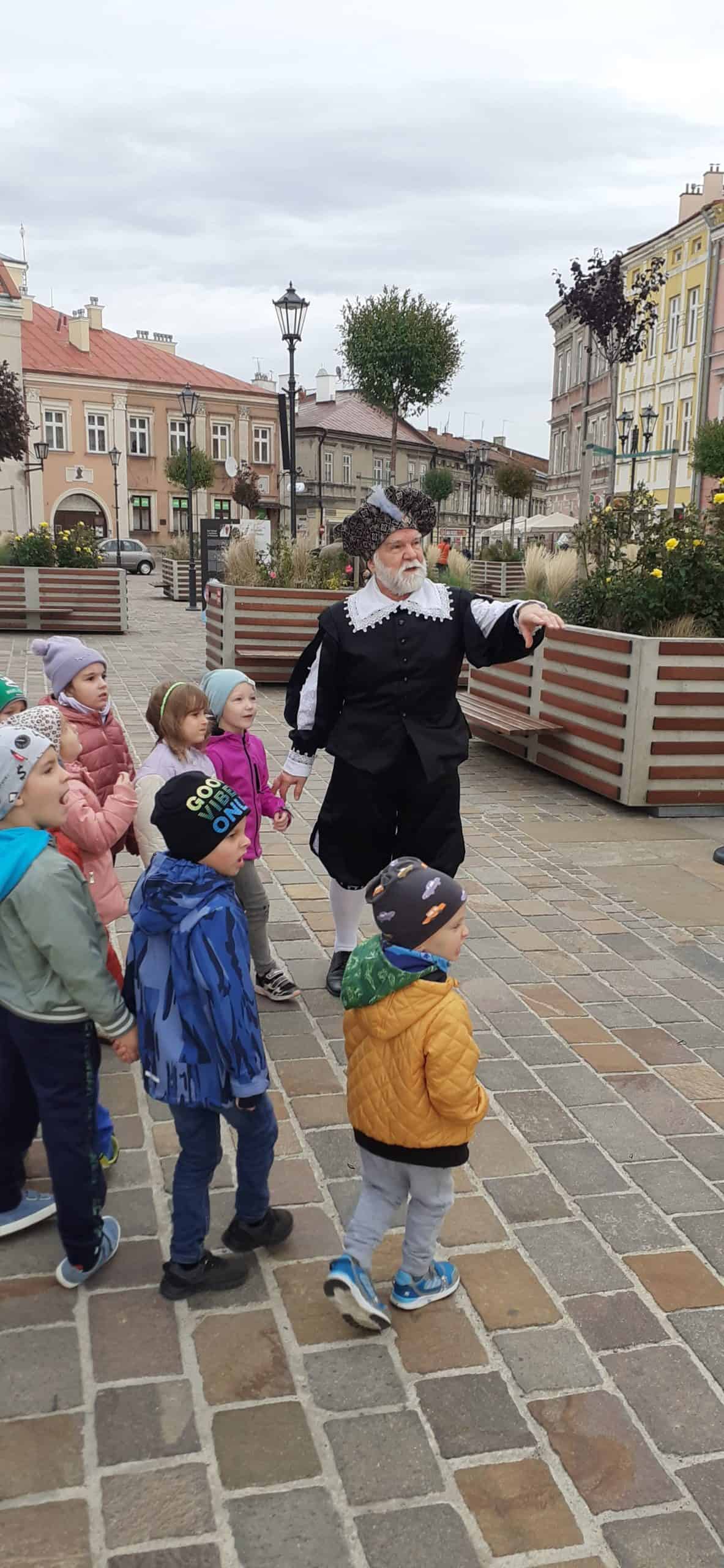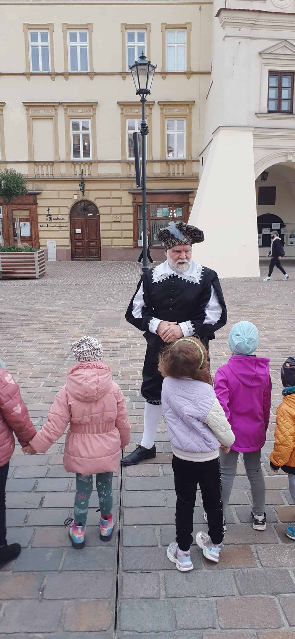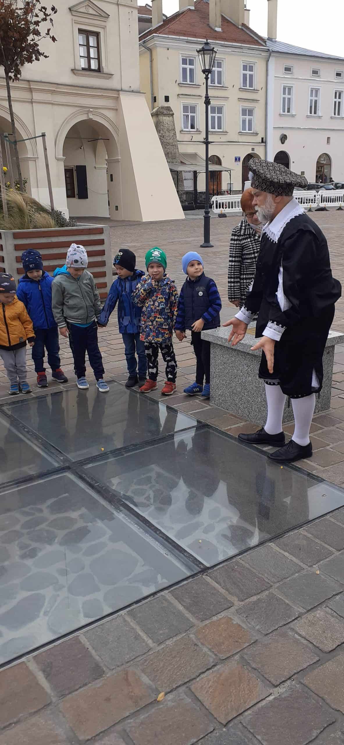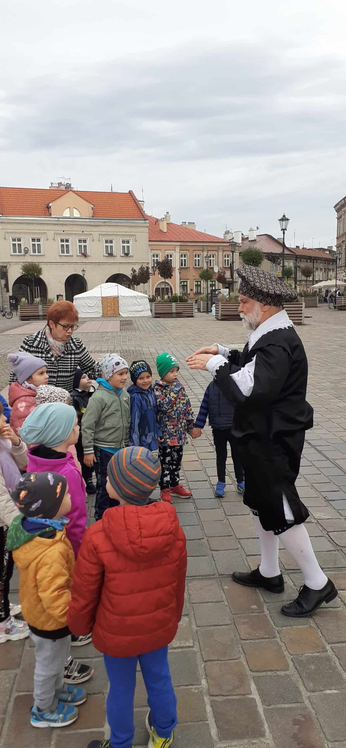 Księgarnia Kuferek Artystyczny ma zawsze wiele ciekawych propozycji dla dzieci, nie tylko związanych z rozwijaniem czytelnictwa, ale także z historią naszego miasta. Tym razem za sprawą pana Jerzego Paszka dzieci miały możliwość uczestniczyć w żywej lekcji historii dotyczącej naszego miasta. Pan Jerzy oprowadzając dzieci po Rynku i okolicznych uliczkach przepięknie opowiadał o historii miasta, a także o historii niektórych kamienic i uliczek. Oczywiście nie zabrakło ciekawostek, związanych m. in. z różą wiatrów na Małym Rynku, z instalacją Królowa Marysieńka. Dzieci także obejrzały wiele wyjątkowych miejsc, które do tej pory nie były im znane. Żywo reagowały na ciekawostki. Pogoda sprzyjała, było ciepło, Rynek wyglądał wyjątkowo pięknie. Spacer po Rynku z historią w tle był wyjątkowo udany. Serdecznie dziękujemy panu Jerzemu Paszkowi i pani Marzenie Dudek za wyjątkowo interesujące spotkanie i otrzymane w darze smakowite pierniczki.