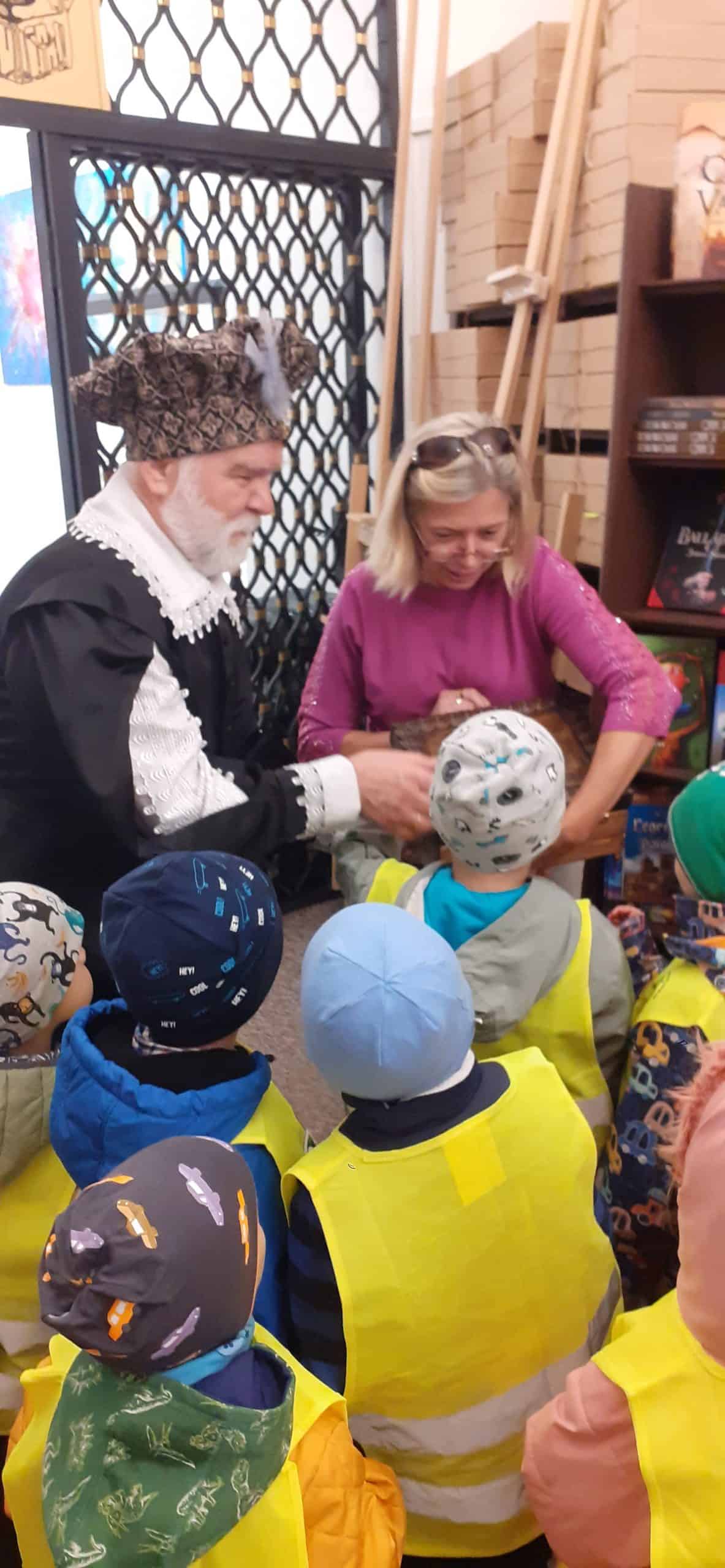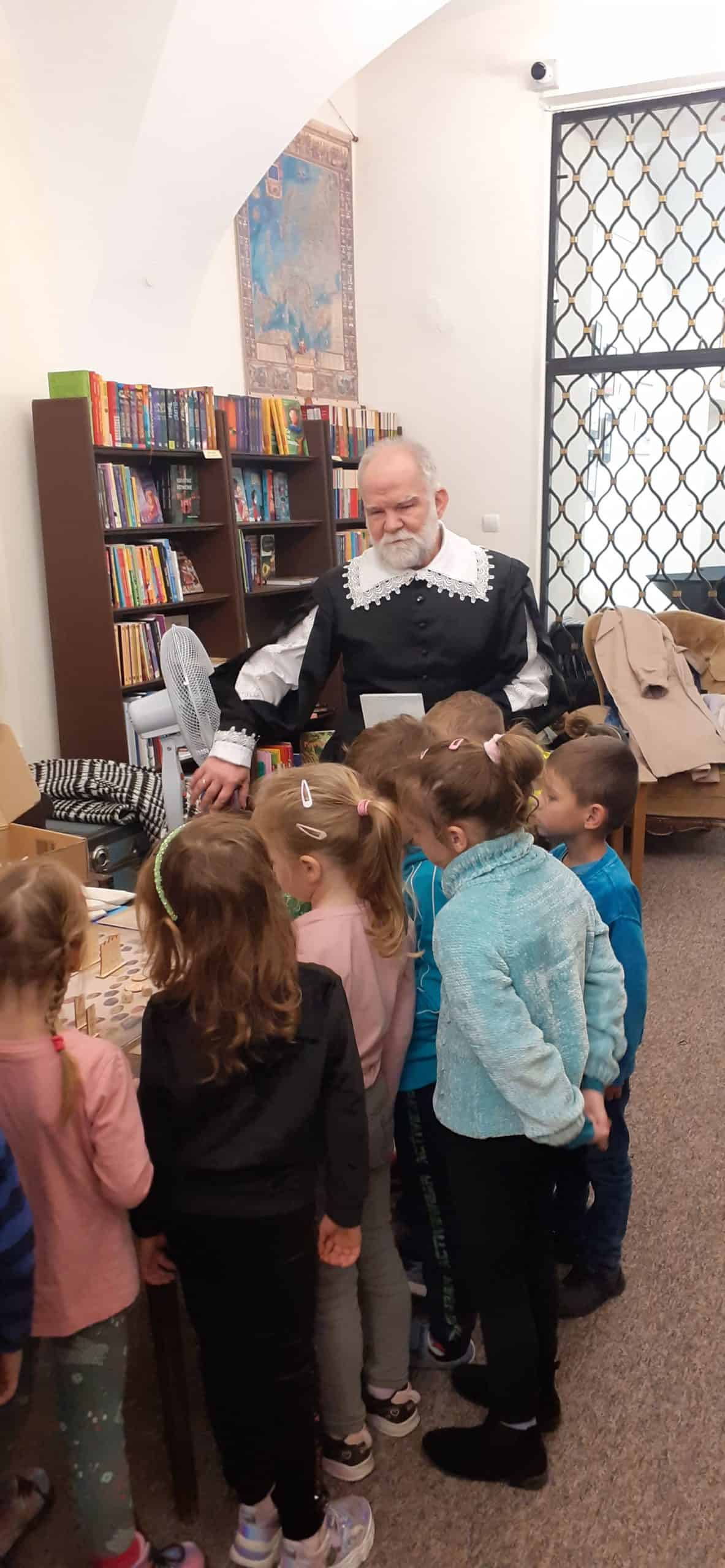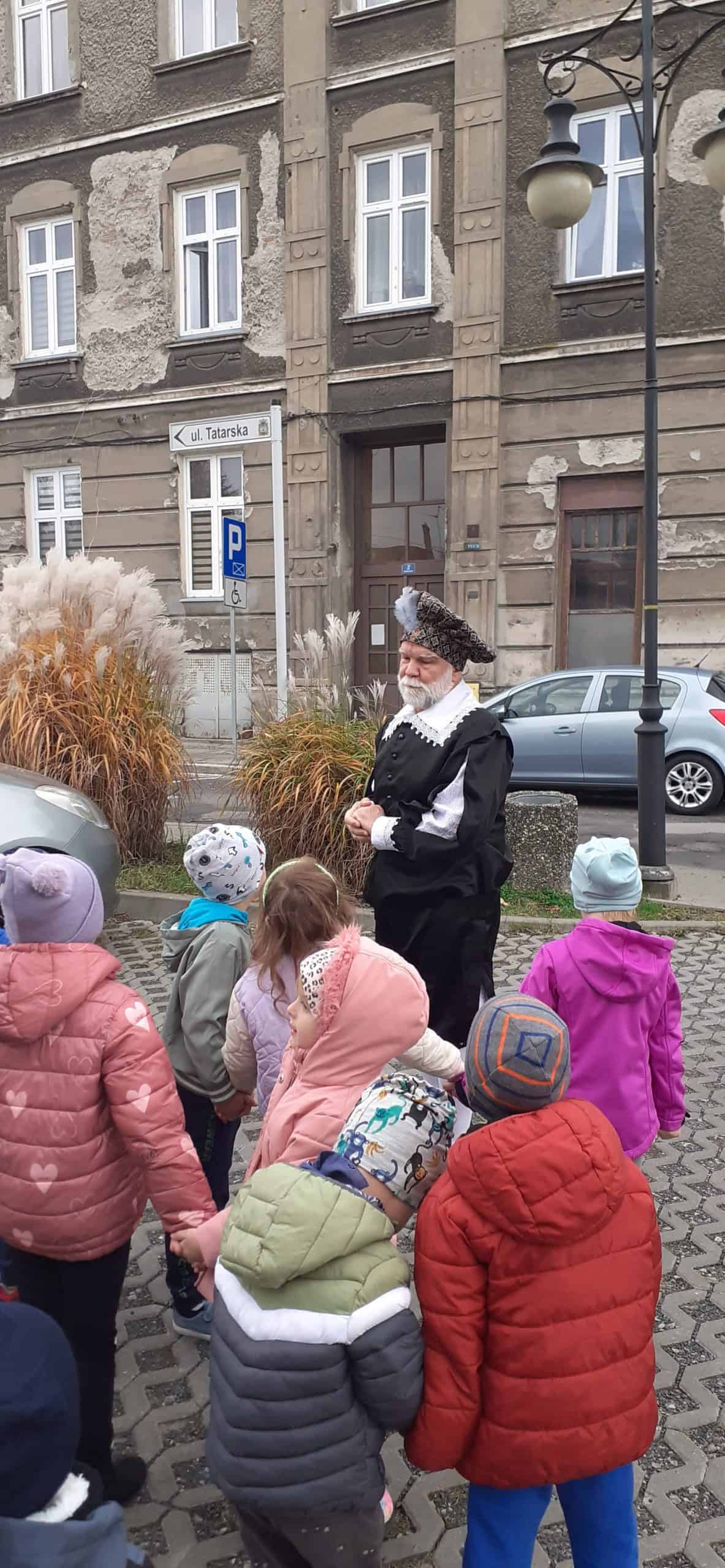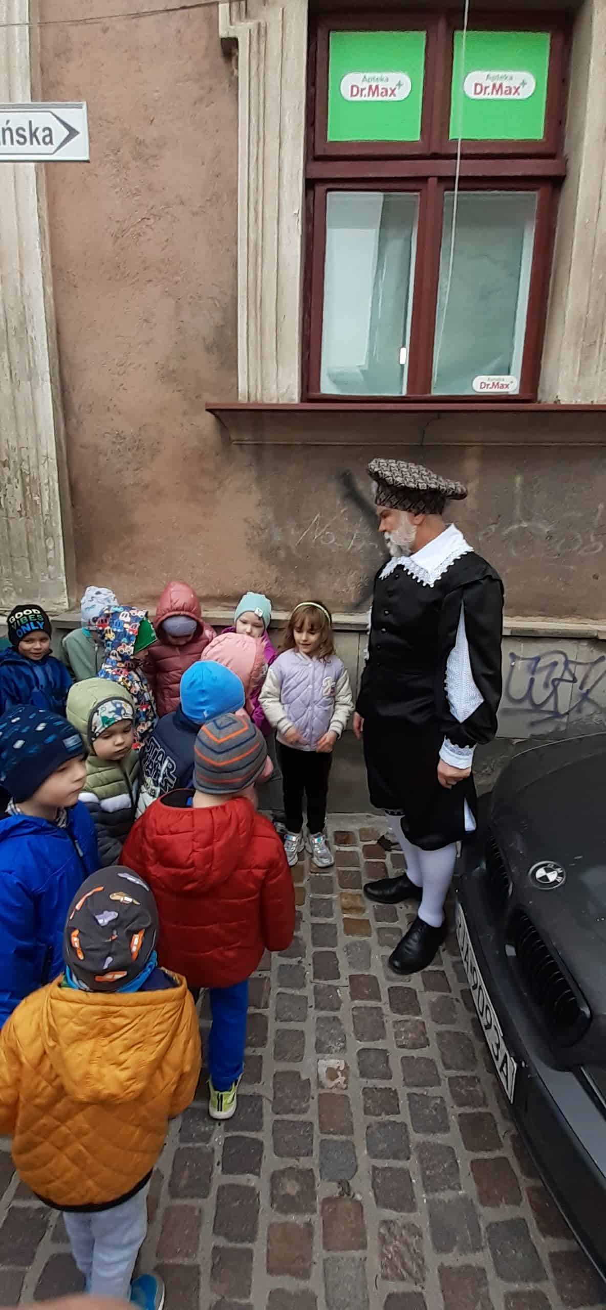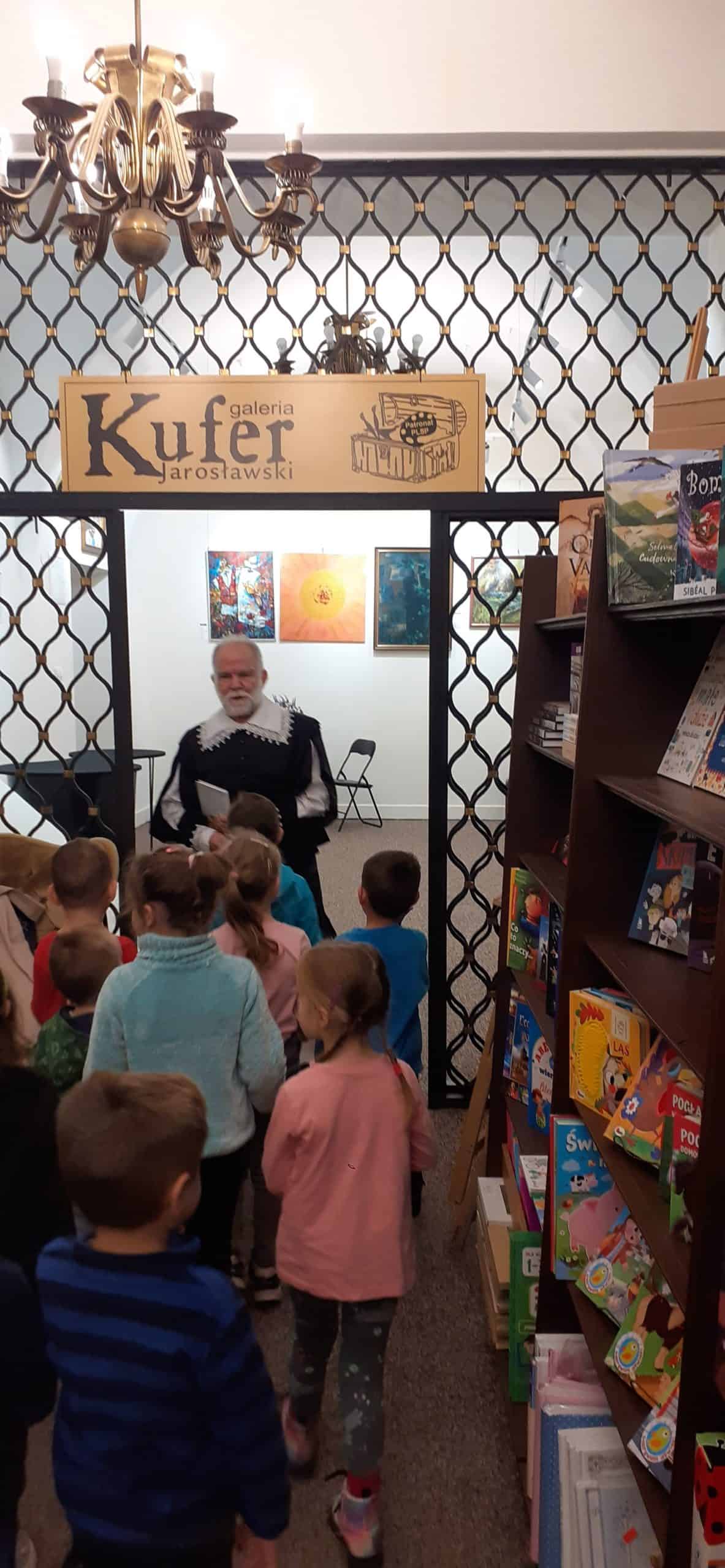 Księgarnia Kuferek Artystyczny ma zawsze wiele ciekawych propozycji dla dzieci, nie tylko związanych z rozwijaniem czytelnictwa, ale także z historią naszego miasta. Tym razem za sprawą pana Jerzego Paszka dzieci miały możliwość uczestniczyć w żywej lekcji historii dotyczącej naszego miasta. Pan Jerzy oprowadzając dzieci po Rynku i okolicznych uliczkach przepięknie opowiadał o historii miasta, a także o historii niektórych kamienic i uliczek. Oczywiście nie zabrakło ciekawostek, związanych m. in. z różą wiatrów na Małym Rynku, z instalacją Królowa Marysieńka. Dzieci także obejrzały wiele wyjątkowych miejsc, które do tej pory nie były im znane. Żywo reagowały na ciekawostki. Pogoda sprzyjała, było ciepło, Rynek wyglądał wyjątkowo pięknie. Spacer po Rynku z historią w tle był wyjątkowo udany. Serdecznie dziękujemy panu Jerzemu Paszkowi i pani Marzenie Dudek za wyjątkowo interesujące spotkanie i otrzymane w darze smakowite pierniczki.