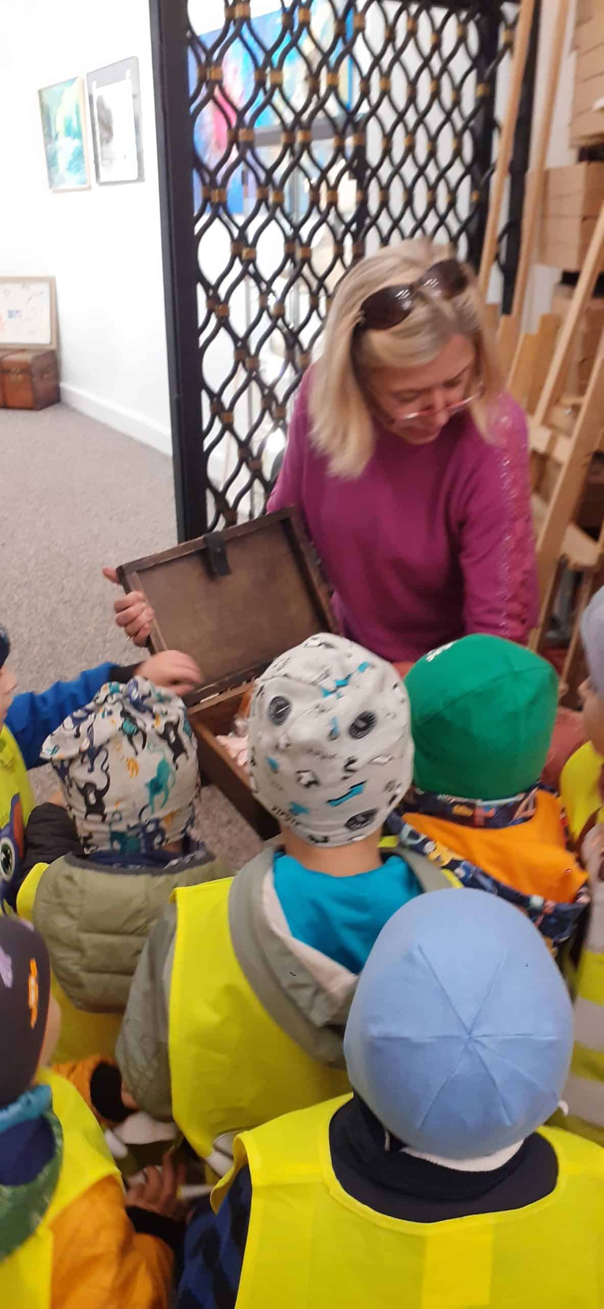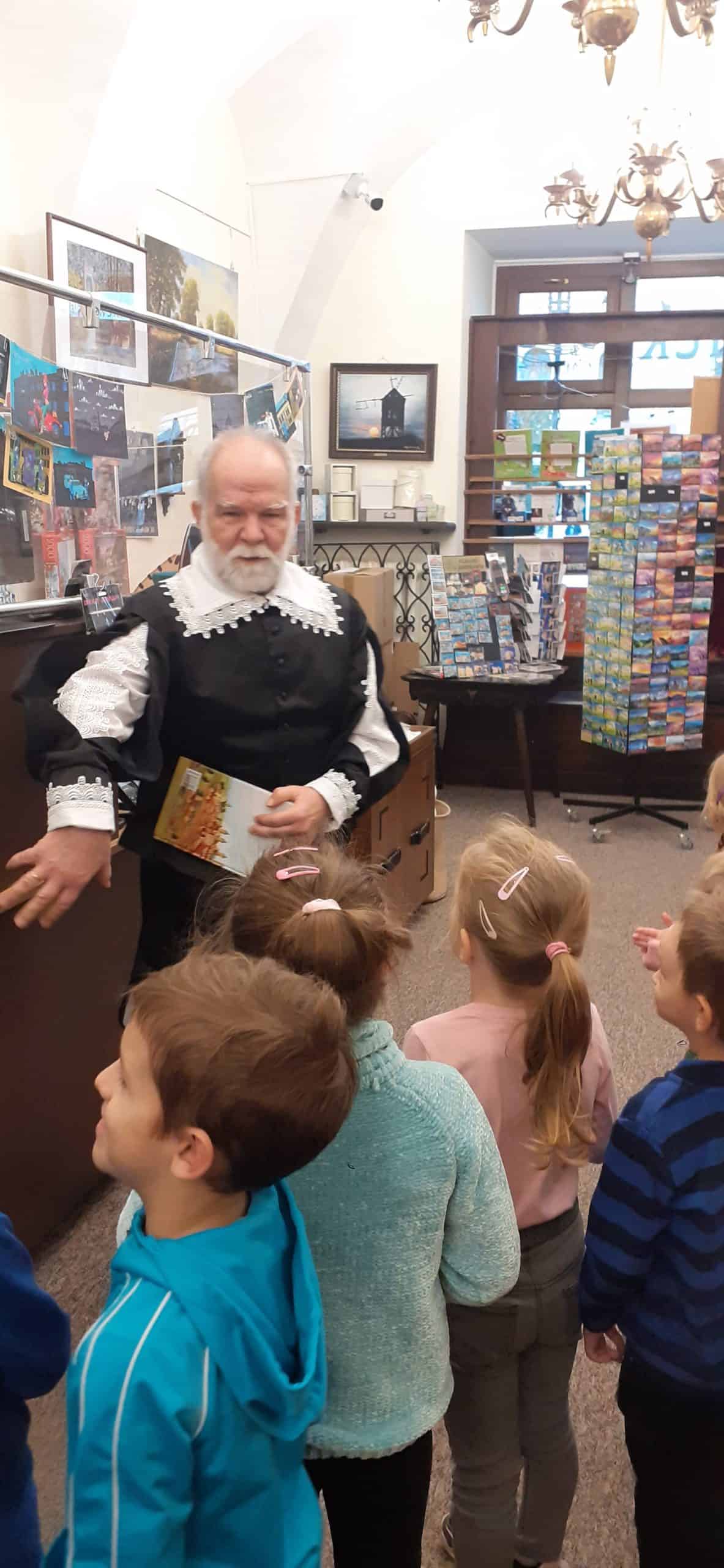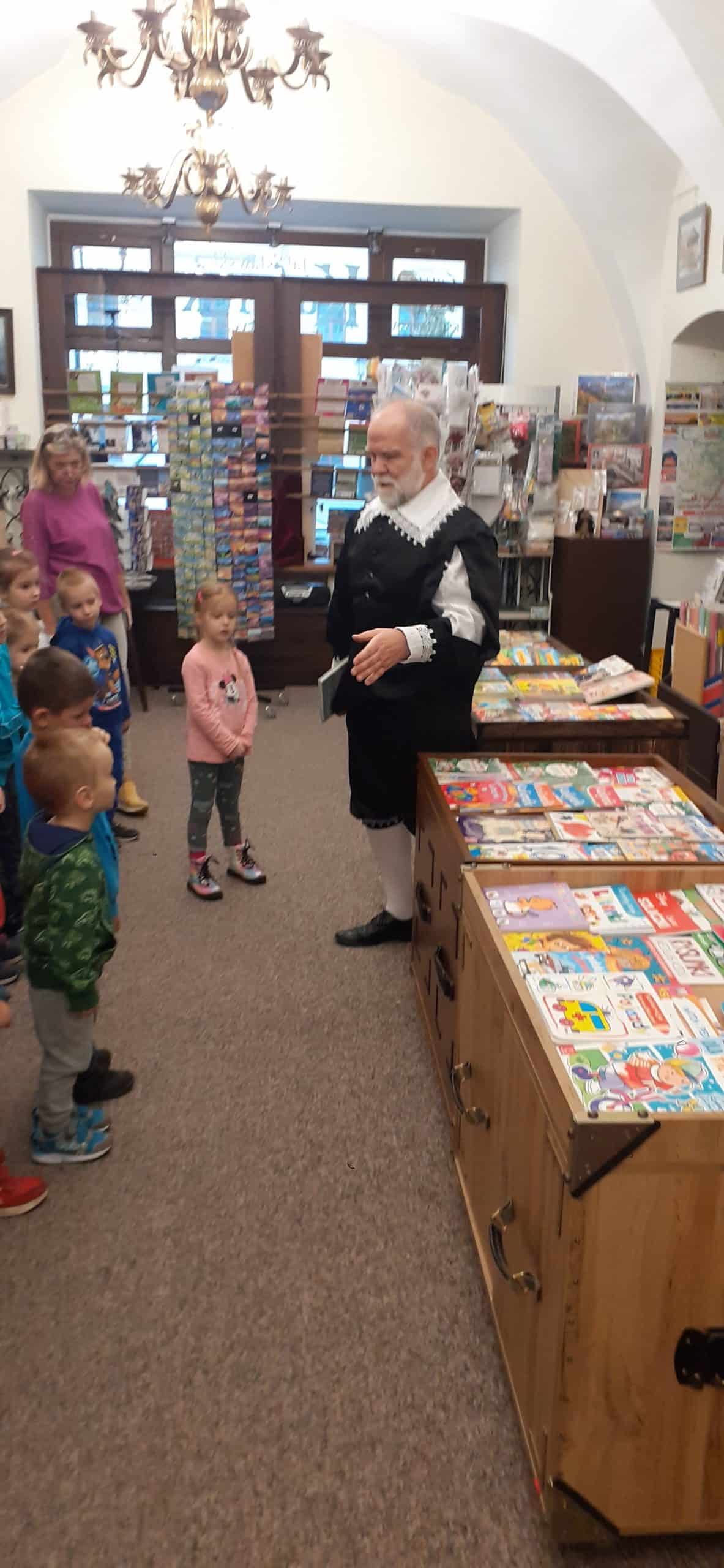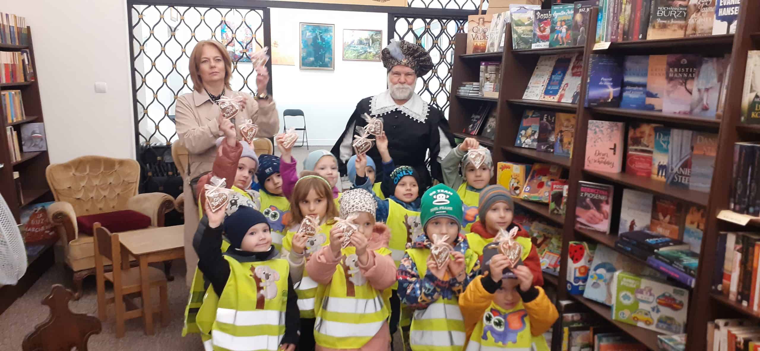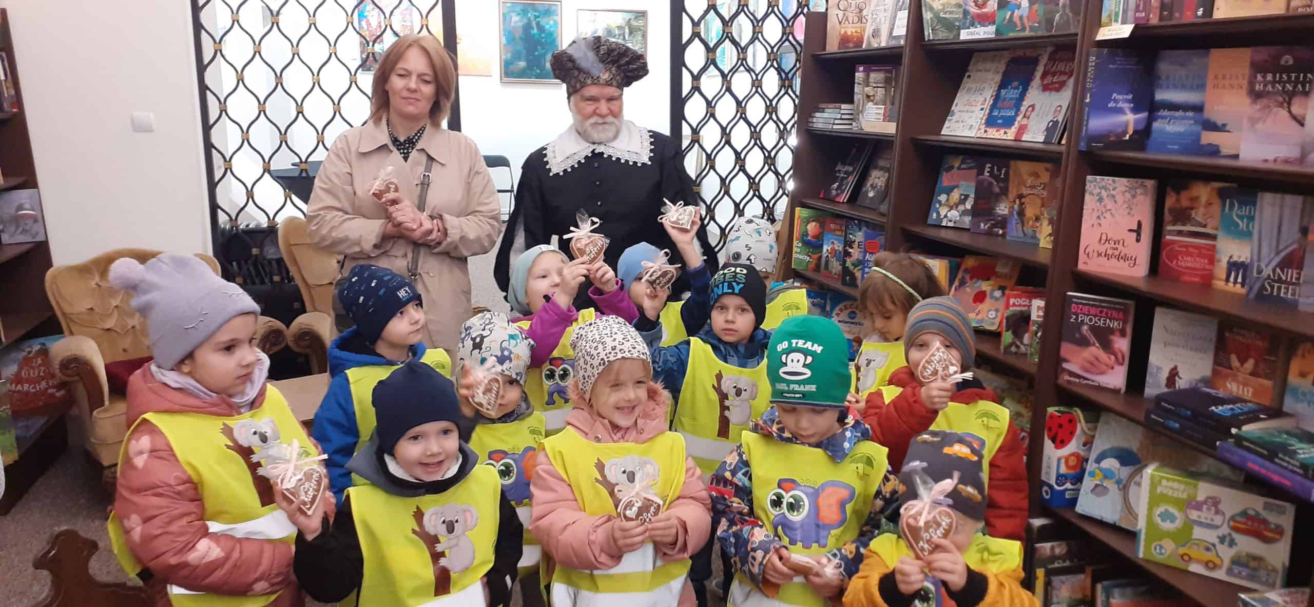 Księgarnia Kuferek Artystyczny ma zawsze wiele ciekawych propozycji dla dzieci, nie tylko związanych z rozwijaniem czytelnictwa, ale także z historią naszego miasta. Tym razem za sprawą pana Jerzego Paszka dzieci miały możliwość uczestniczyć w żywej lekcji historii dotyczącej naszego miasta. Pan Jerzy oprowadzając dzieci po Rynku i okolicznych uliczkach przepięknie opowiadał o historii miasta, a także o historii niektórych kamienic i uliczek. Oczywiście nie zabrakło ciekawostek, związanych m. in. z różą wiatrów na Małym Rynku, z instalacją Królowa Marysieńka. Dzieci także obejrzały wiele wyjątkowych miejsc, które do tej pory nie były im znane. Żywo reagowały na ciekawostki. Pogoda sprzyjała, było ciepło, Rynek wyglądał wyjątkowo pięknie. Spacer po Rynku z historią w tle był wyjątkowo udany. Serdecznie dziękujemy panu Jerzemu Paszkowi i pani Marzenie Dudek za wyjątkowo interesujące spotkanie i otrzymane w darze smakowite pierniczki.