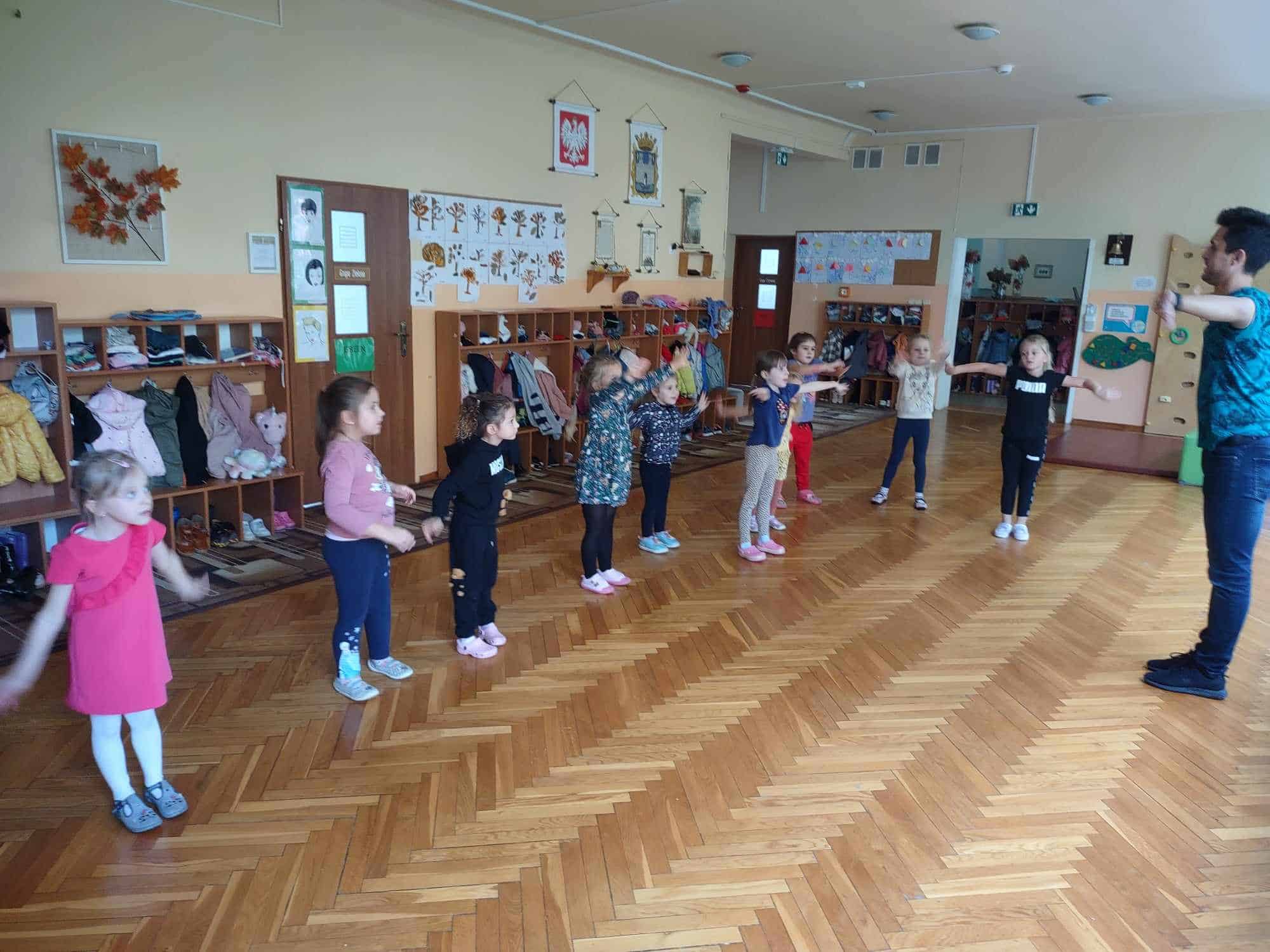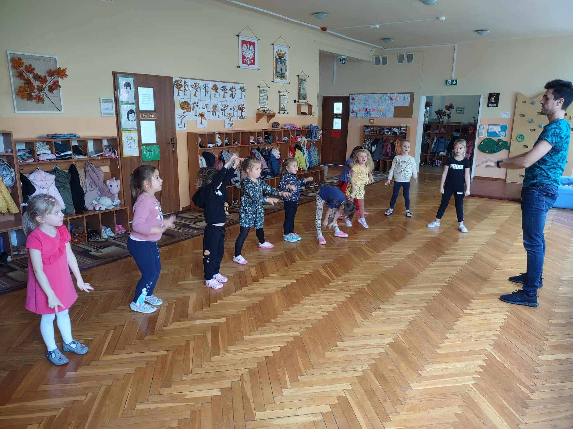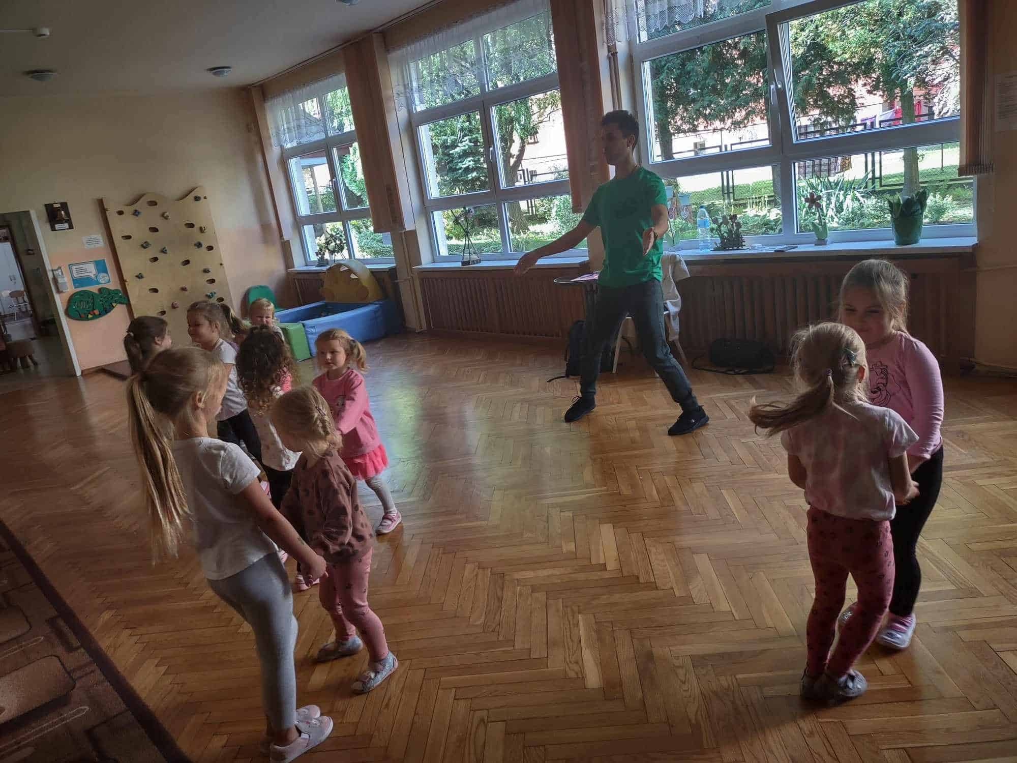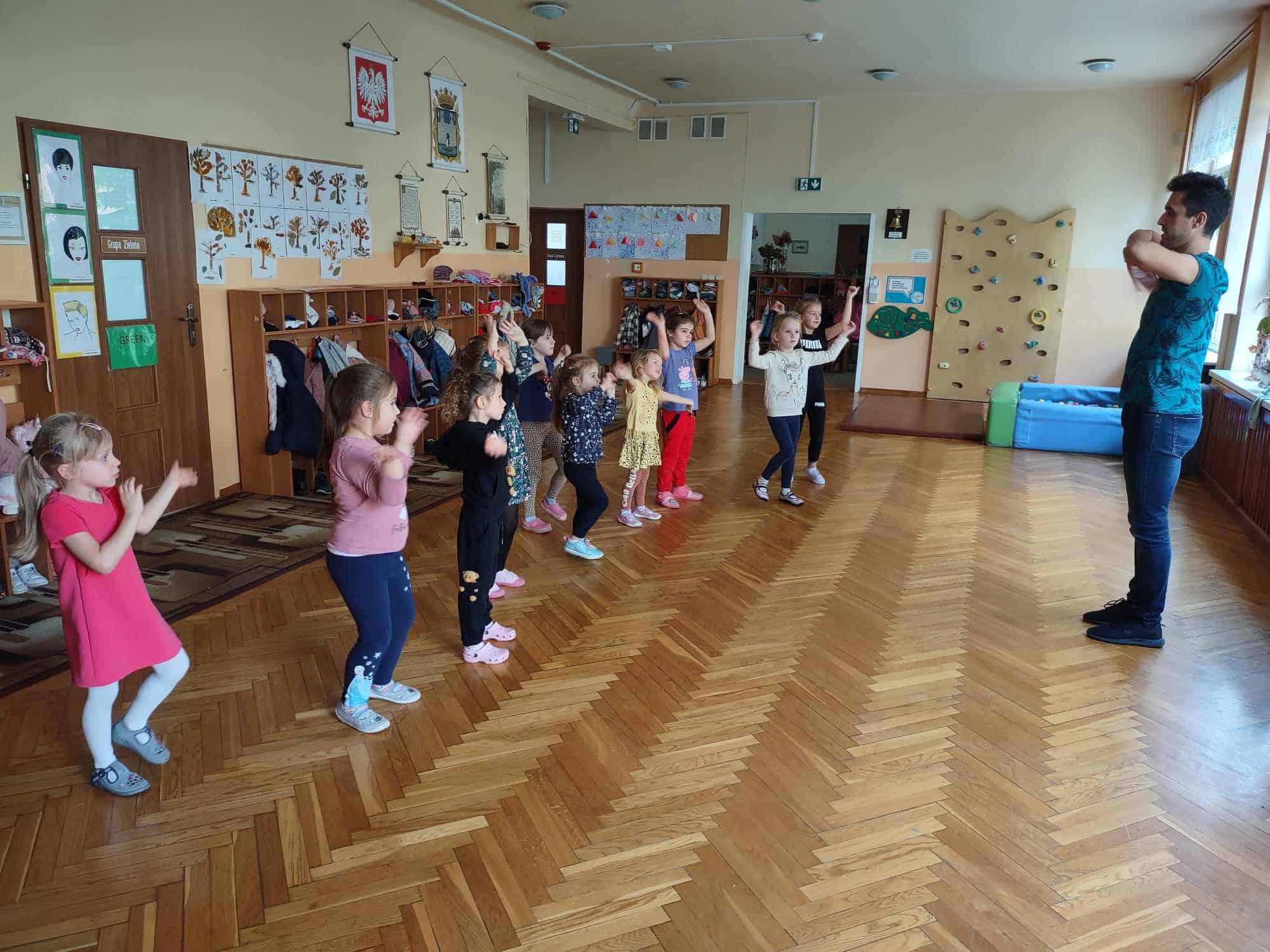 To już kolejny rok w naszym przedszkolu podczas którego dzieci mogą cieszyć się z zajęć tanecznych prowadzonych przez fantastycznego i uwielbianego przez wszystkich Pana Michała 🙂 Taniec dla dzieci to nieocenione dobro i wszechstronne korzyści dla jego rozwoju. Oprócz świetnej zabawy, zajęcia taneczne wspierają rozwój dziecka we wszystkich sferach: fizycznej, poznawczej, emocjonalnej, społecznej a nawet duchowej. Ponadto, angażując zmysły: słuch, wzrok, dotyk, ruch, stymuluje integrację sensoryczną. Dziecko nabywa umiejętności współdziałania w grupie, akceptacji samego siebie i innych, poszukiwania i pokonywania barier swoich możliwości. Co ważne, taniec rozwija pamięć, myślenie, spostrzegawczość, uwagę, orientację, wyobraźnię i inteligencję twórczą. Tańczące dzieci mogą pochwalić się lepszą motoryką, postawą ciała, a także lepszą niż ich rówieśnicy umiejętnością zachowania równowagi. Taniec pomaga wyrażać emocje, które trudno nam ubrać w słowa, a to sprawia, że nauka tańca staje się często terapią dla ducha 🙂 Dziękujemy Panie Michale za kolejny rok owocnej współpracy ☺️ A my kochani tańczmy…wszędzie…wszak taniec to ukryty język duszy 🤗 🤩